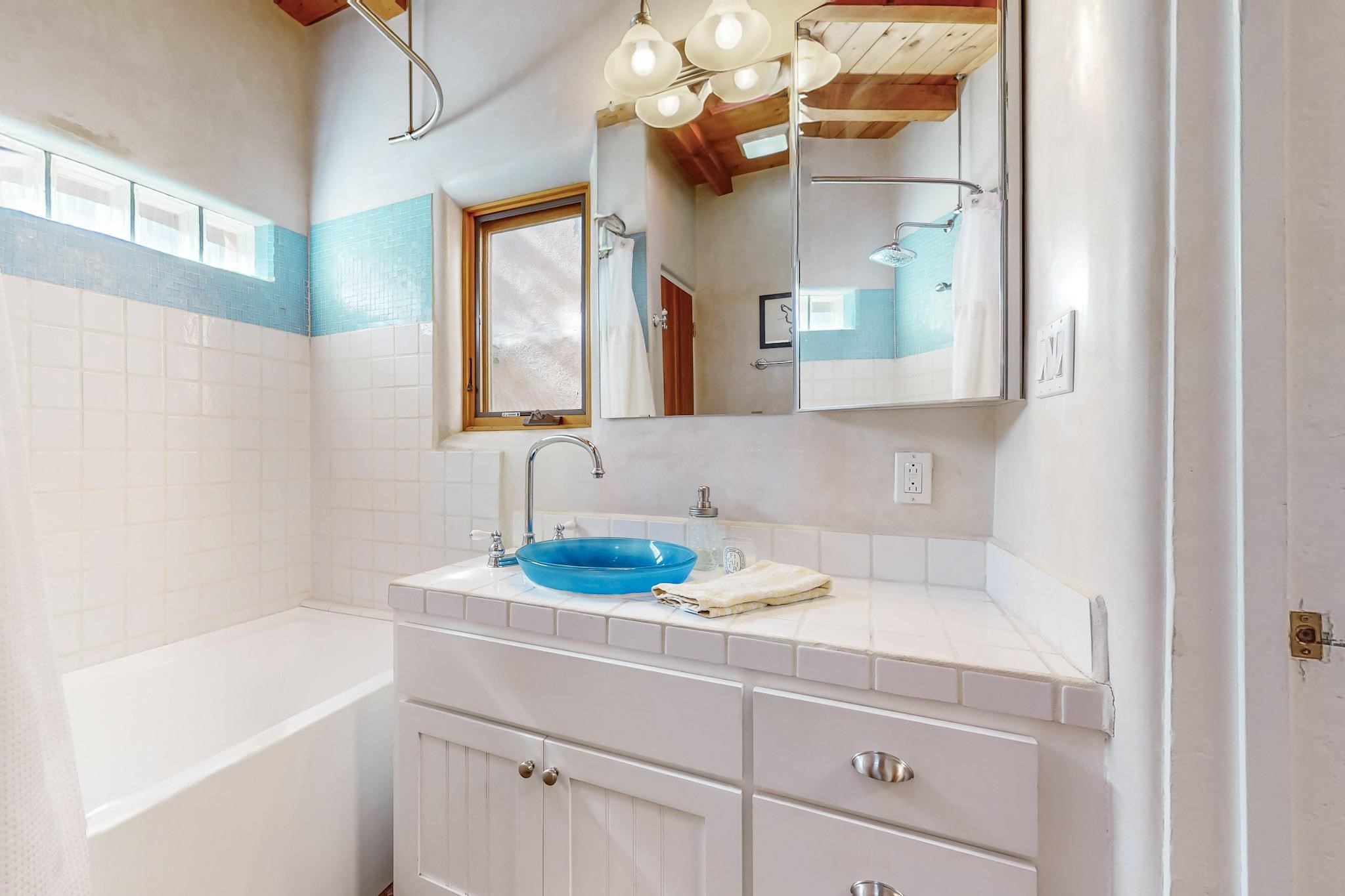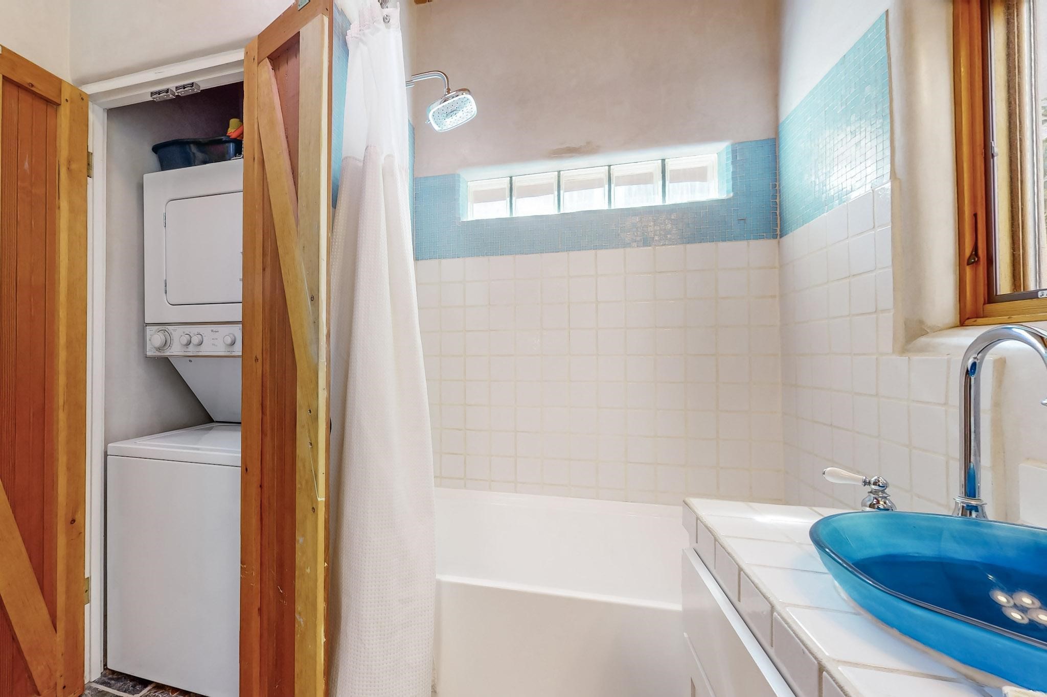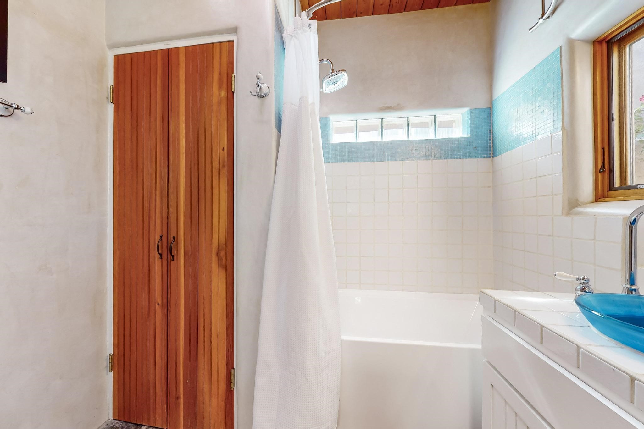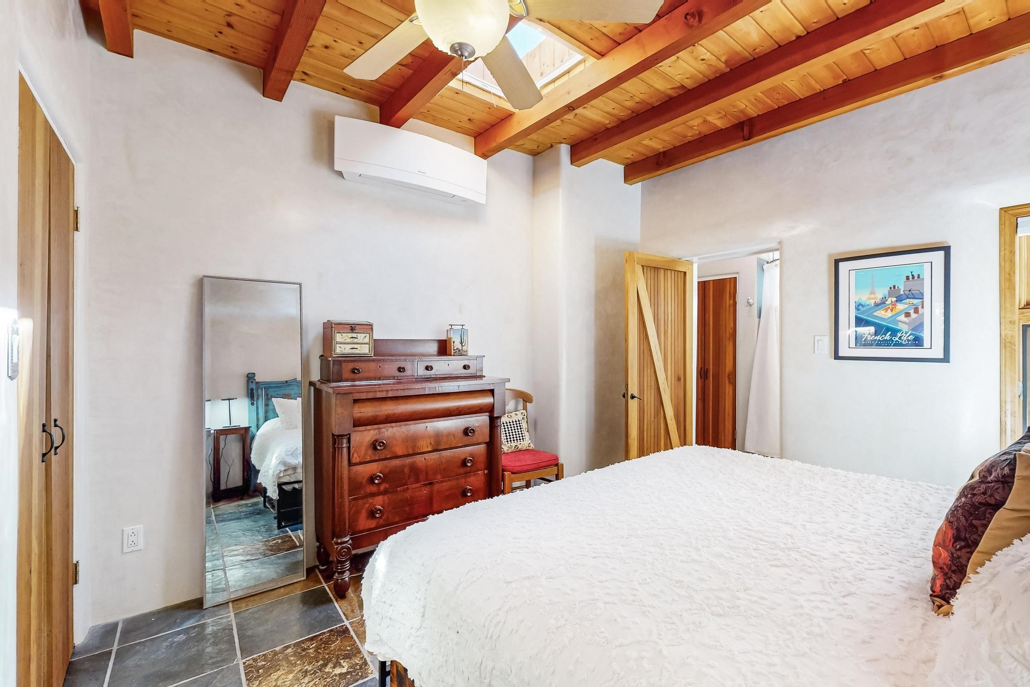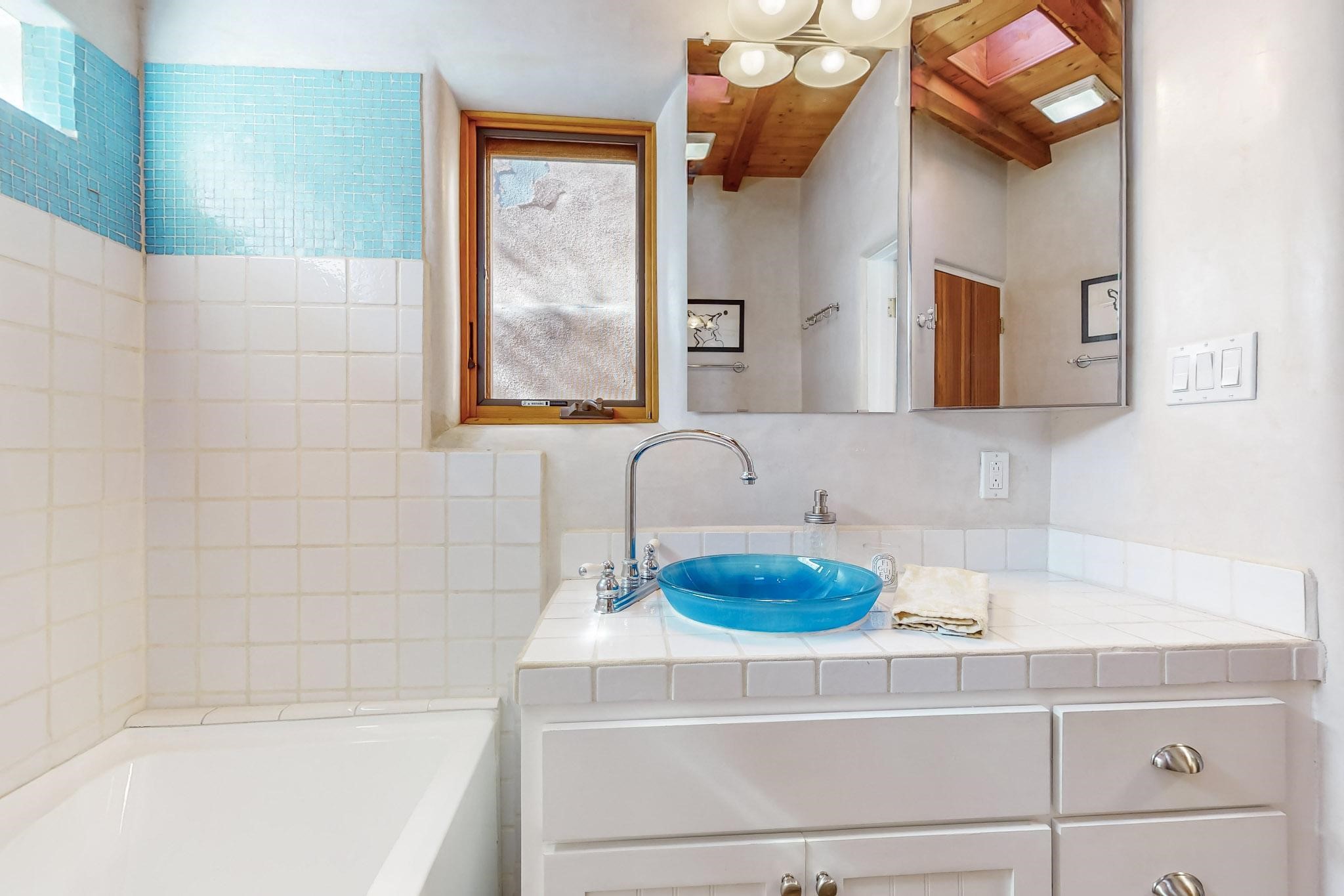 Rarely does a condo in the gated Assisi Compound become available. The Compound is beautifully maintained, landscaped and located in the vibrant Railyard/Guadalupe area. Oozing with charm, character and attention to detail, Casa Wren is one of the seven distinctively unique units. A gracious vigas and beamed portal shelters the front entrance. Inside, elegant architectural details including rounded bullnose corners, clerestory windows, beamed ceilings, Venetian plaster, skylights and a Kiva fireplace. Galley-style kitchen with wood cabinetry, Quartz countertops, ceramic double sink, tile backsplash and new appliances. Open and bright Living/Dining with a wood burning Kiva fireplace and stone flooring that continues into the en-suite bedroom. Matisse wall tiles, slate floors, new mini-splits, bathroom tub and tankless hot water. Private garden, off the living room, with its' own secret entrance. Water feature, fire pit, landscaping and storage shed. Stucco walls enclose the property. 1 parking place and no street parking permit required.