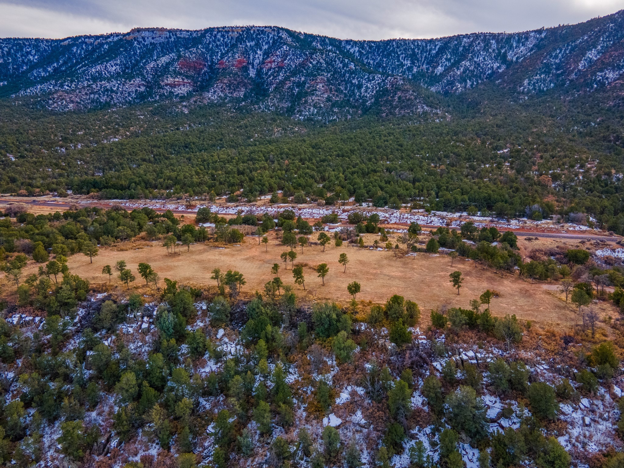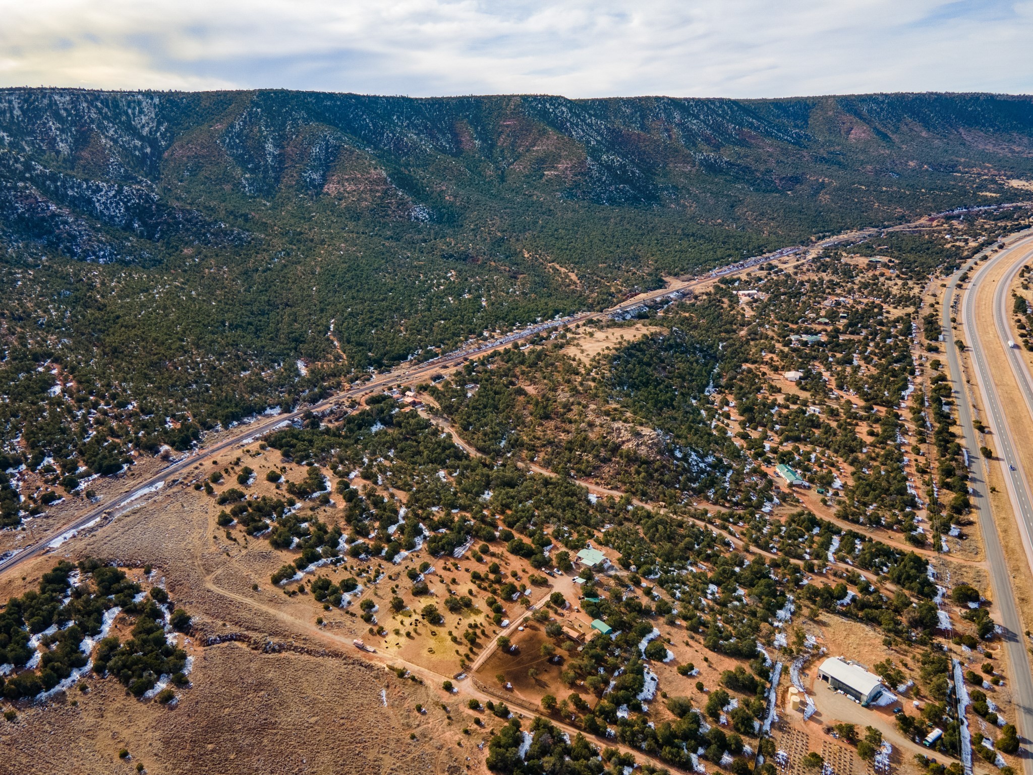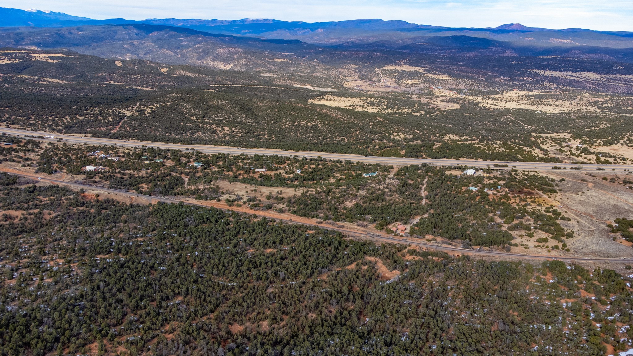 Two great lots being sold together located halfway between Santa Fe and Las Vegas backing up to Santa Fe National Forest land with views and lots of potential. Lots are a total of approximately 58.79 acres with 3.5 acres fenced with barbed wire. The property contains many unique features: caves that, based on folklore, may have been Tewa Indian dwellings, a man-made lake that is beginning to fill with rainwater and attract wildlife, and an 8ft x 8ft historic 1927 tunnel from the front lot to the back lot under the railroad tracks. Electric is underground to the lot line. Well and septic are both needed. Newly created access road comes from Monte Ver off the Frontage Road 2116. Horses allowed.