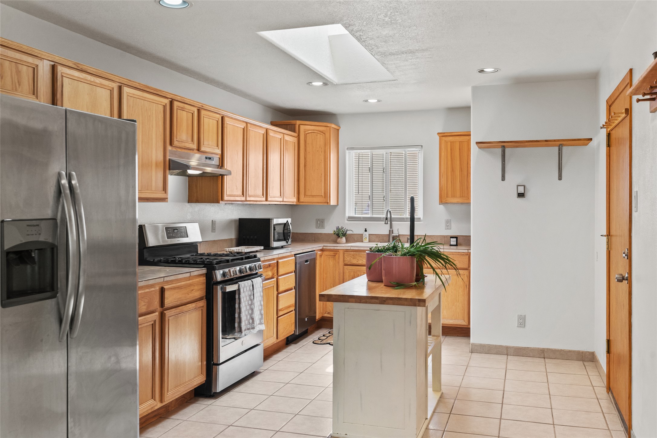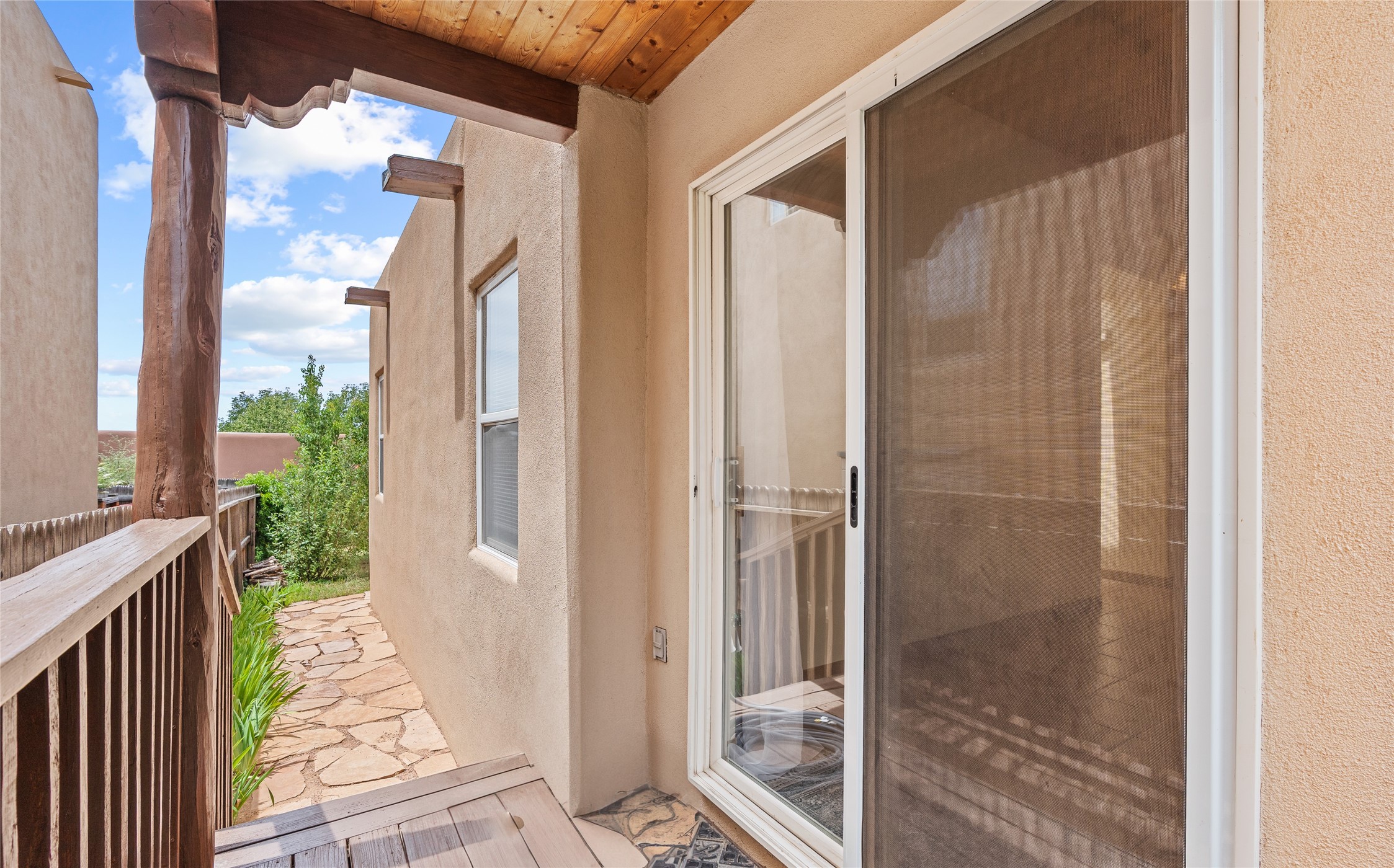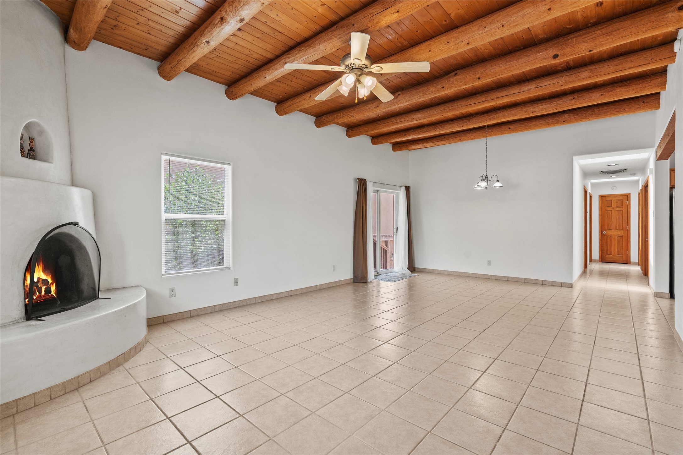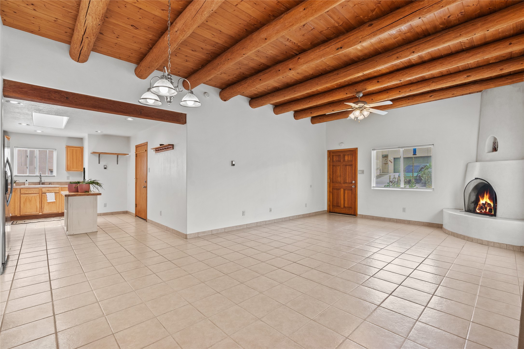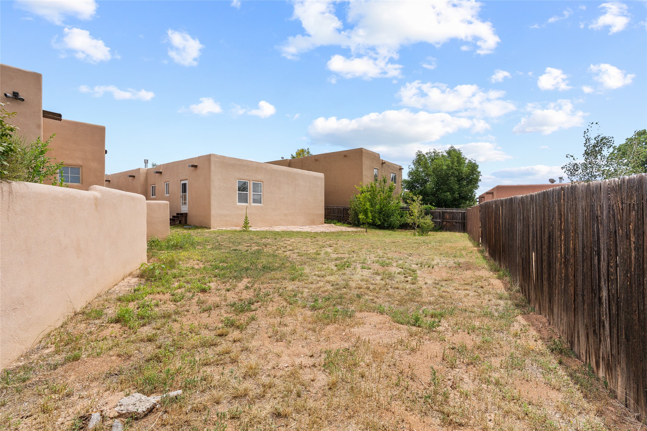 Welcome to 2866 Pueblo Jacona, a move-in ready gem tucked into one of Santa Fe's most beloved communities--Pueblos Del Sol. This sweet and sunny 3-bedroom, 2-bath home sits on an oversized lot with lovely front landscaping and an expansive backyard that offers room to relax, play, and dream. Step inside to find a warm and inviting interior with beautiful tongue-and-groove ceilings accented by classic vigas, adding rich character and Southwestern charm. The open living and dining area flows easily to the outdoors, where a covered deck leads to a flagstone path, mature trees, and a large flagstone patio--a perfect spot for entertaining or enjoying Santa Fe's beautiful weather. Freshly painted and newly carpeted in all bedrooms, the home feels fresh and move-in ready. Three comfortable bedrooms, two full baths, and a 2-car garage round out this thoughtfully maintained home. Pueblos Del Sol is known for its beautiful walking trails, community parks, and proximity to schools, shopping, and restaurants, making this a perfect location for full-time living or a second home retreat. Come experience the charm, character, and light of 2866 Pueblo Jacona--your next chapter starts here.