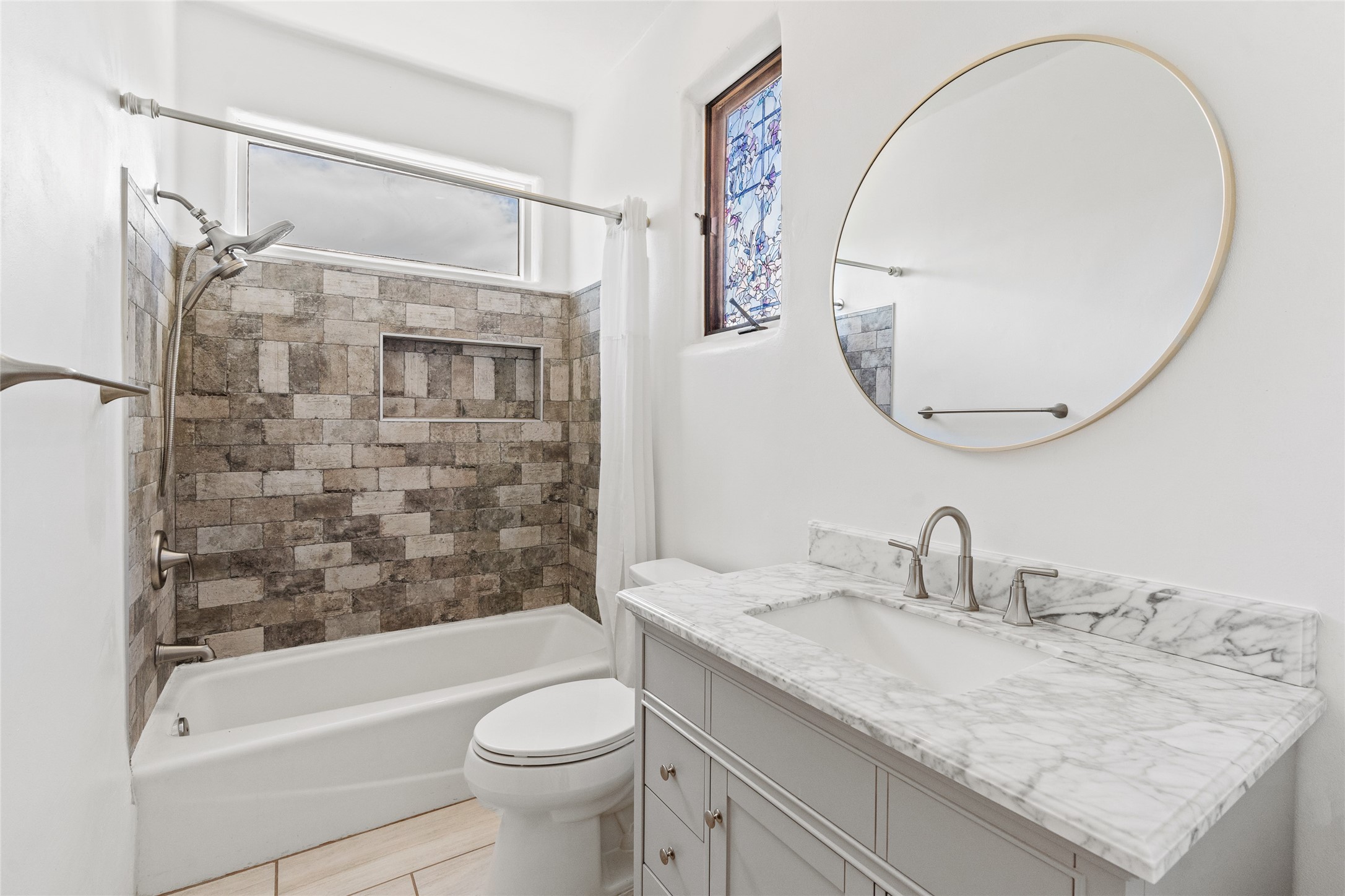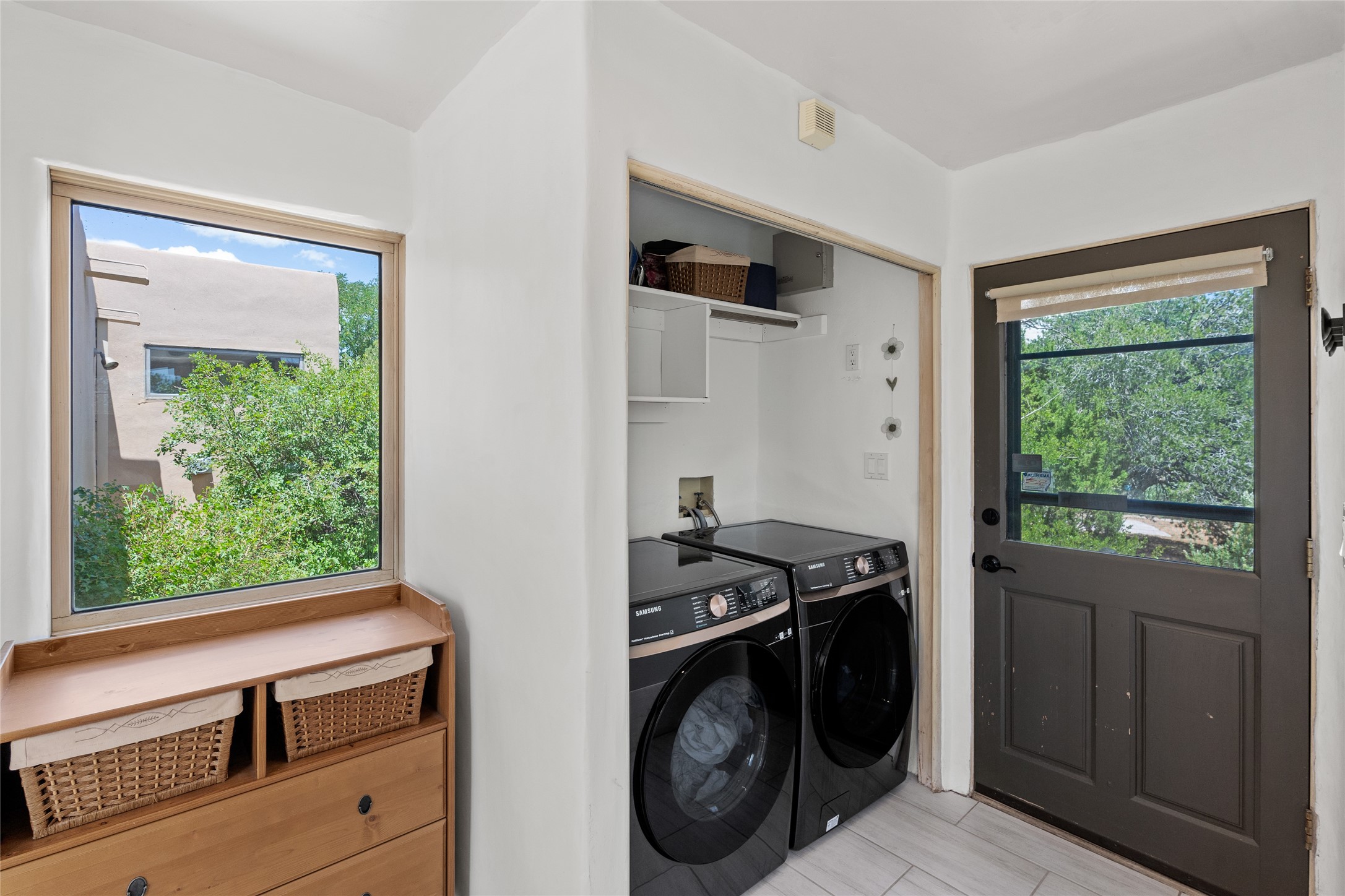 Located on over an acre with unbeatable access to all that Santa Fe has to offer, this beautifully updated home offers views of Sun andMoon Mountains and an open, flexible layout ideal for modern living. Tongue-and-groove ceilings with recessed lighting run throughout themain living areas, complementing the abundant natural light that pours in through large windows. The updated kitchen features new granitecountertops, newer Bosch and Samsung appliances, plus a RO filtration in the kitchen. The kitchen flows seamlessly into the open-conceptliving and dining spaces. Two cozy fireplaces create warmth and ambiance, while radiant heating and mini splits provide efficient heatingand cooling year-round. With three spacious bedrooms--including two that function well as primary suites. A standout feature is theattached studio with its own entrance, carport, skylights, and plentiful windows--perfect for an art space, home office, or guest retreat.Outside, the expansive lot offers endless possibilities for gardening, recreation, or expansion. Just a 5-minute walk from Christus St.Vincent Regional Medical Center and only 10 minutes to the historic Santa Fe Plaza, this home combines peaceful privacy with centralconvenience. Don't miss this rare opportunity to own a flexible, light-filled property in one of Santa Fe's most desirable locations.