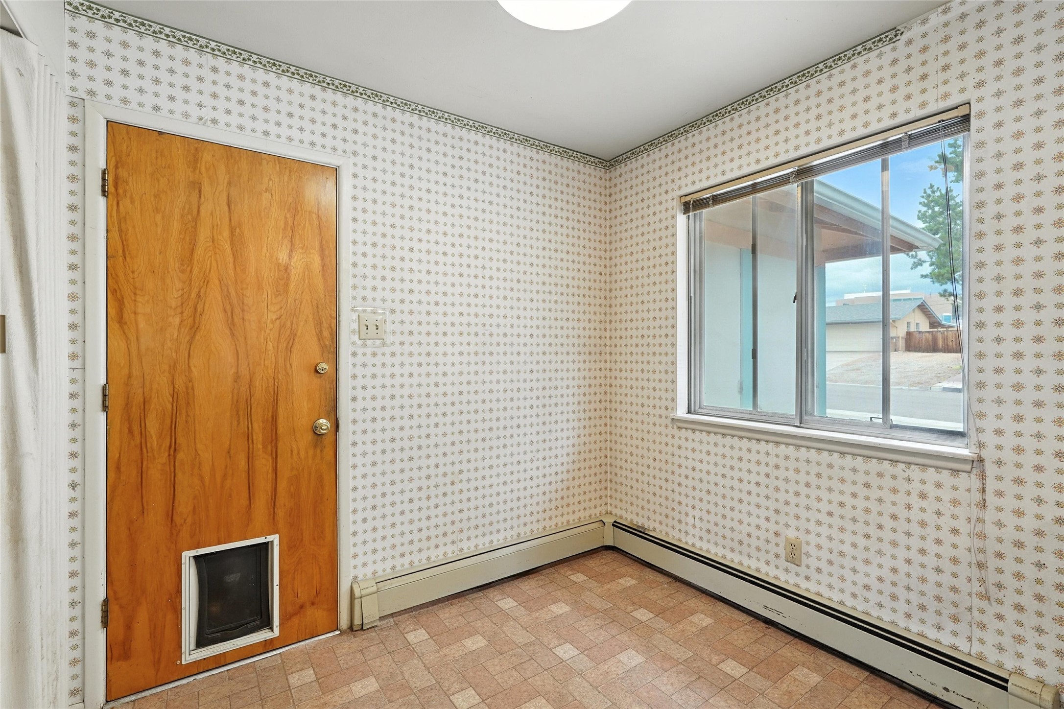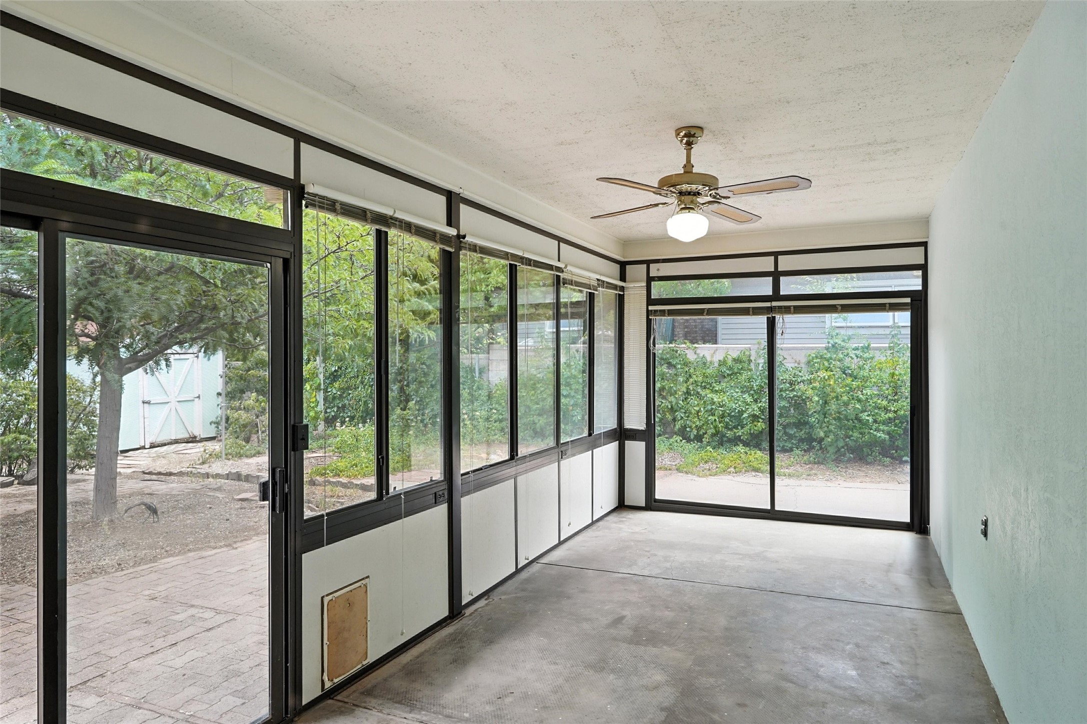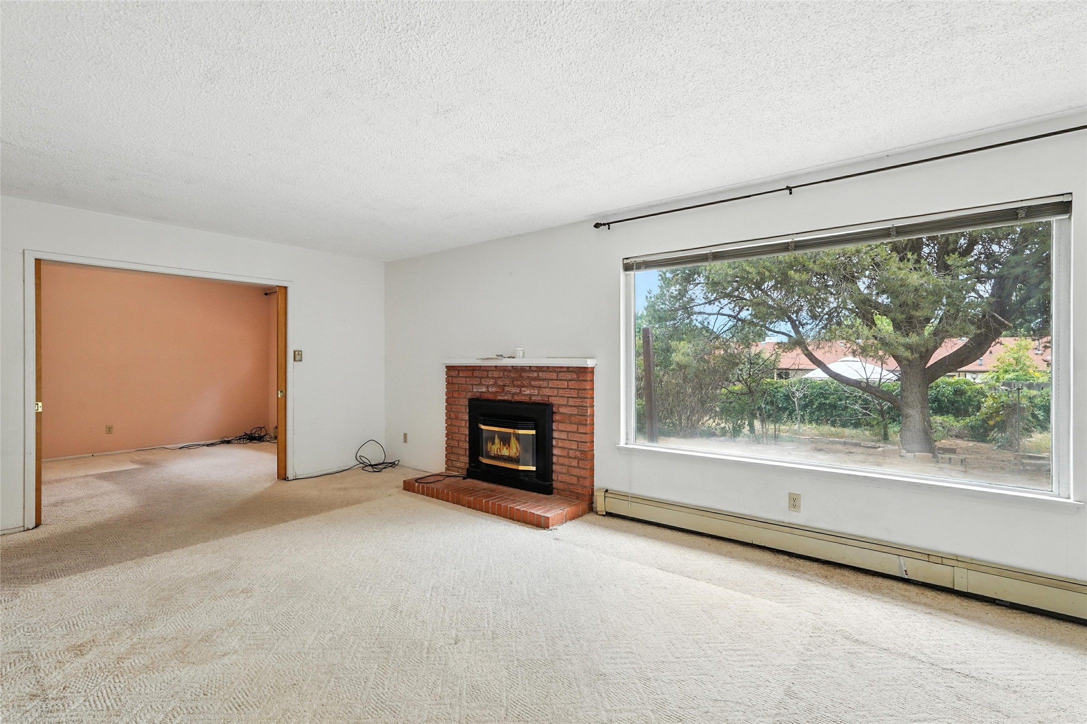 This charming ranch style stucco home is ready for your special touch and updates that will make it uniquely yours. Located in a quiet neighborhood, it comes with three bedrooms, one full bath, one 3/4 bath, an office/den and an attached three season room (not included in the assessed square footage). Heated via a boiler system and a gas fireplace in the living room to keep you warm in the winter months (any fire image is depicted and not real). A large two car garage provides ample storage, there's even space to park an RV or boat near the garage. The property has a large fenced partially private backyard with dedicated garden/flower spaces along with a garden/storage shed to store all your needed components. Several Pinion pines adorn the property providing shaded places to play, sit or read while you enjoy the beautiful spring, summer and fall days in northern New Mexico. Located near the "downtown" area of White Rock, it is within walking distance to the White Rock Library, White Rock Youth Activity Center, Rocket Park (with splash pad, skate park & tennis courts), Pinion Elementary School, local walking trails, Smiths Food and Drug and the White Rock Post Office.