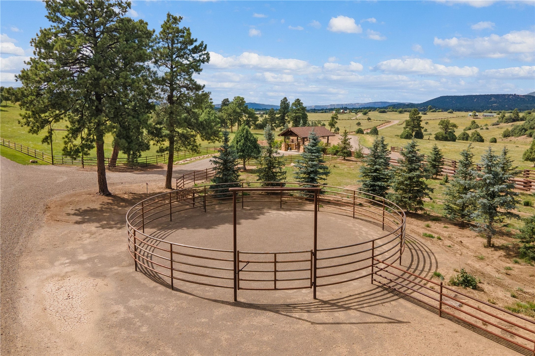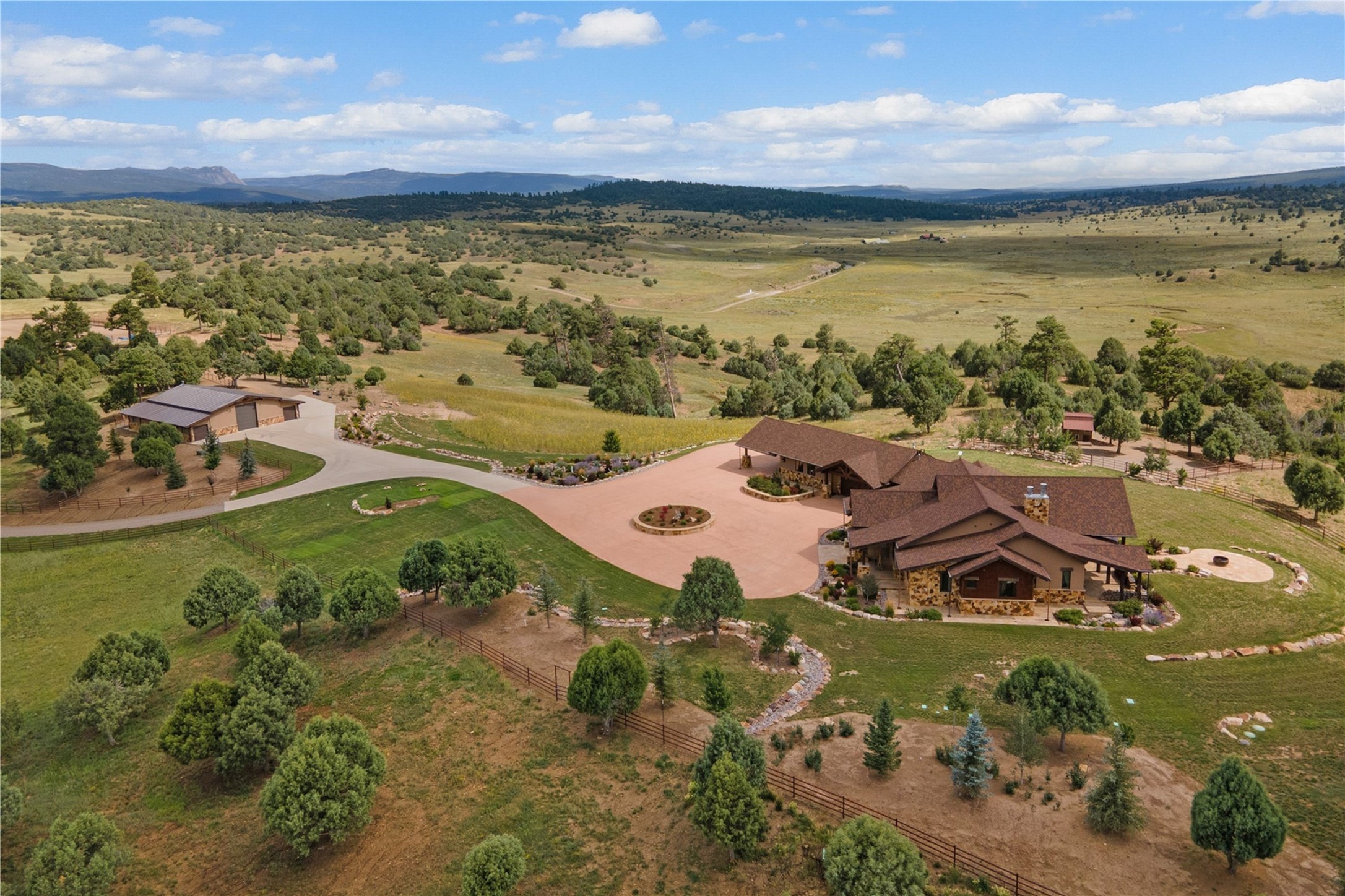 Priced to Sell! Welcome to Palomino Pines Ranch Estate luxury equestrian paradise set in the serene Southern Rockies. Encompassing 400 acres of enclosed, private land at over 8,000 feet, this custom-built estate offers breathtaking 360-degree views and a perfect blend of elegance and craftsmanship.The 3,400-square-foot living space plus garages is a masterpiece, featuring riverbed stone accents, antlered lighting, high wood beams, and chestnut floors. The gourmet kitchen is equipped with custom cabinets, granite countertops, and stainless steel appliances. Spacious living areas include a wine cooler, abundant storage, and outdoor walkways and gazebos that enhance the home's charm. A large, oversized, fully finished heated garage is perfect for your vehicles and side-by-sides. For the passionate/professional equestrian, this estate is an unparalleled dream. Bring your Quarter horses, Palominos, Thoroughbreds, Arabians, Morgans, and even bison to this state-of-the-art facility. The property features a 13,000-square-foot heated domed indoor arena with 9 stalls and caretakers' quarters, ensuring the utmost protection for your animals and safety for riders. Additionally, the estate boasts an Olympic-style outdoor training arena, 7 outdoor stables, a 150' x 350' riding area, and multiple steel-fenced pastures. With 5 RV spots equipped with full hookups, ponds, and water tanks, the estate is as functional and beautiful. This property isn't just for horses--it's also a haven for all your pets. A acre pet hotel, complete with fencing, a large dog house, and a spacious run, ensures every family member, whether two-legged or four-legged, has a luxurious place to call home. Built as a "forever home," no expense was spared in crafting this one-of-a-kind sanctuary. The Estate represents a rare and extraordinary opportunity. It's the life you've always dreamed of. Additional living space of 1000 sq ft in a separate garage. Bonus! 330 acres added to the listing! Now 400 acres!