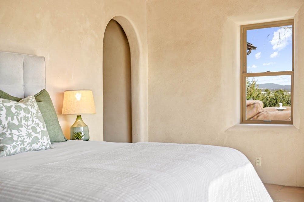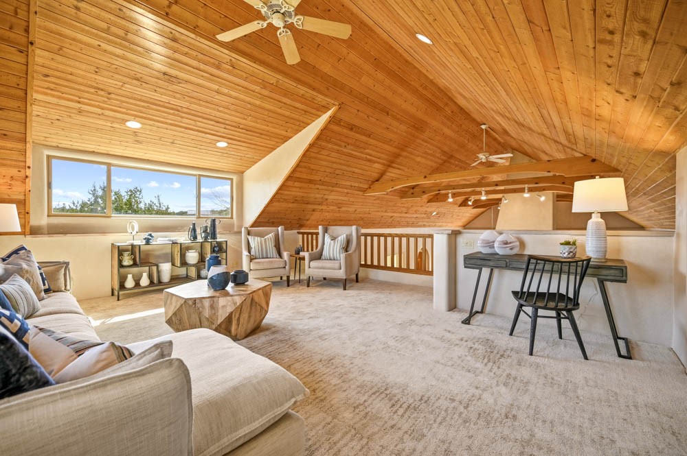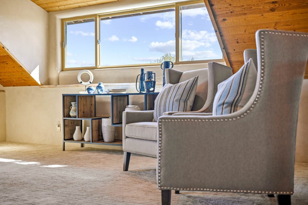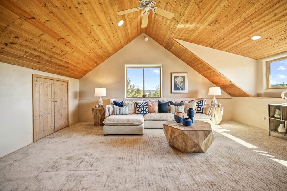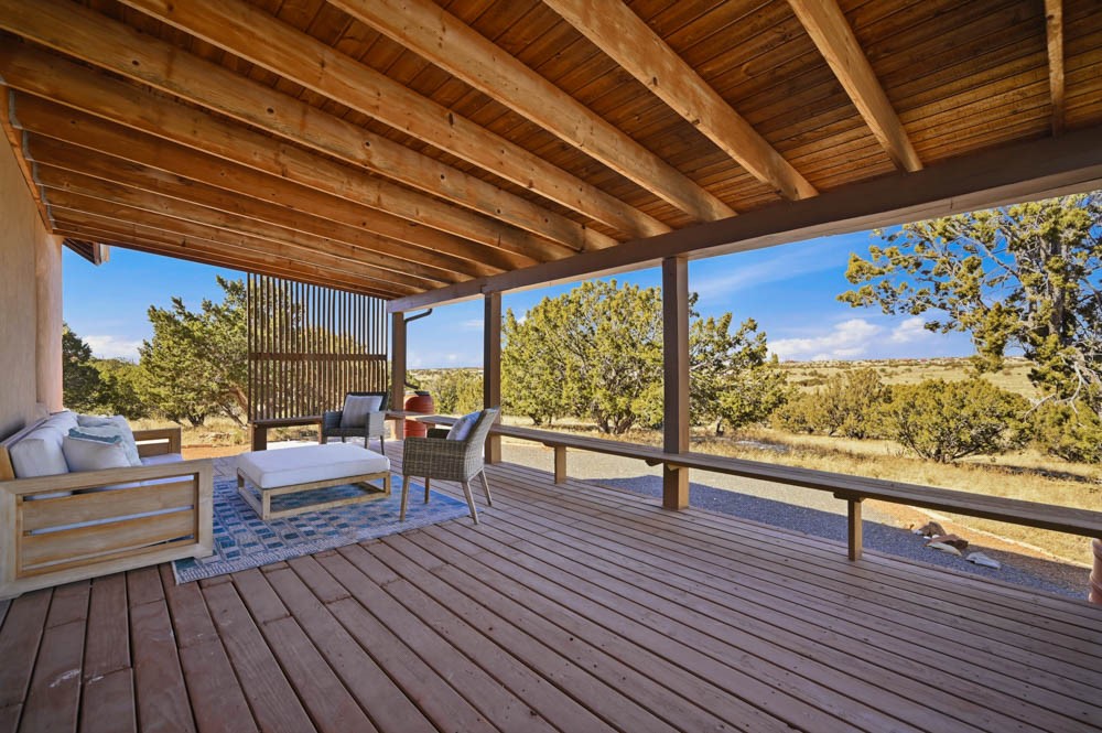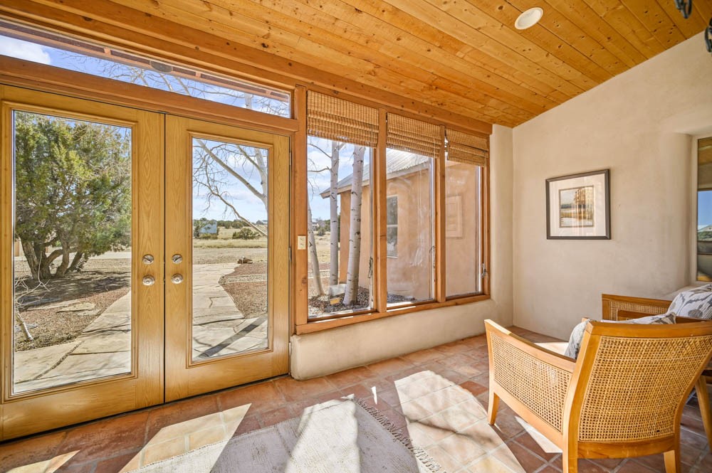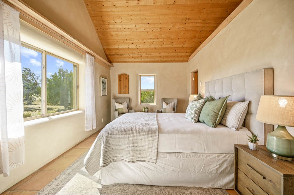Nestled in the sought-after Art Barns area of Lamy, just a scenic 20-minute drive from Santa Fe, this distinctive 2-bedroom, 2-bath home offers a rare blend of privacy, character, and sweeping mountain views on 5.86 acres. Spanning 2,563 square feet, the residence features beautiful Saltillo tile flooring, comfortable in-floor radiant heating, and a flexible loft space ideal for a home office or family room. A pitched roof and classic Southwestern styling complement the surrounding landscape, while recent 2025 updates--including a new boiler, stucco repairs on the home, and brand-new stucco on the detached oversized 2-car garage--provide peace of mind. With expansive outdoor space, stunning vistas, and easy access to Eldorado's and Santa Fe's amenities, this property is an exceptional opportunity to enjoy serene high-desert living at its finest.