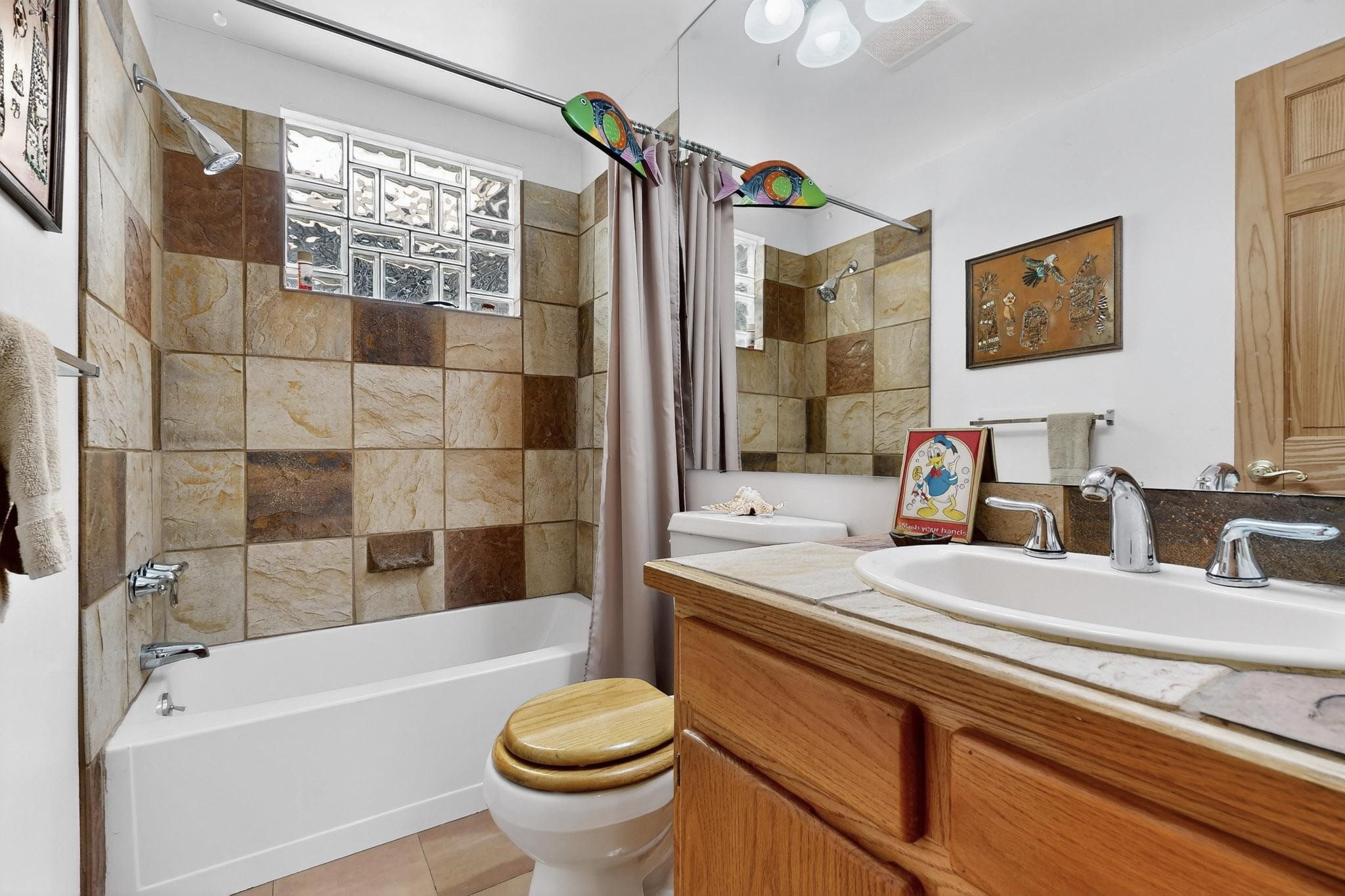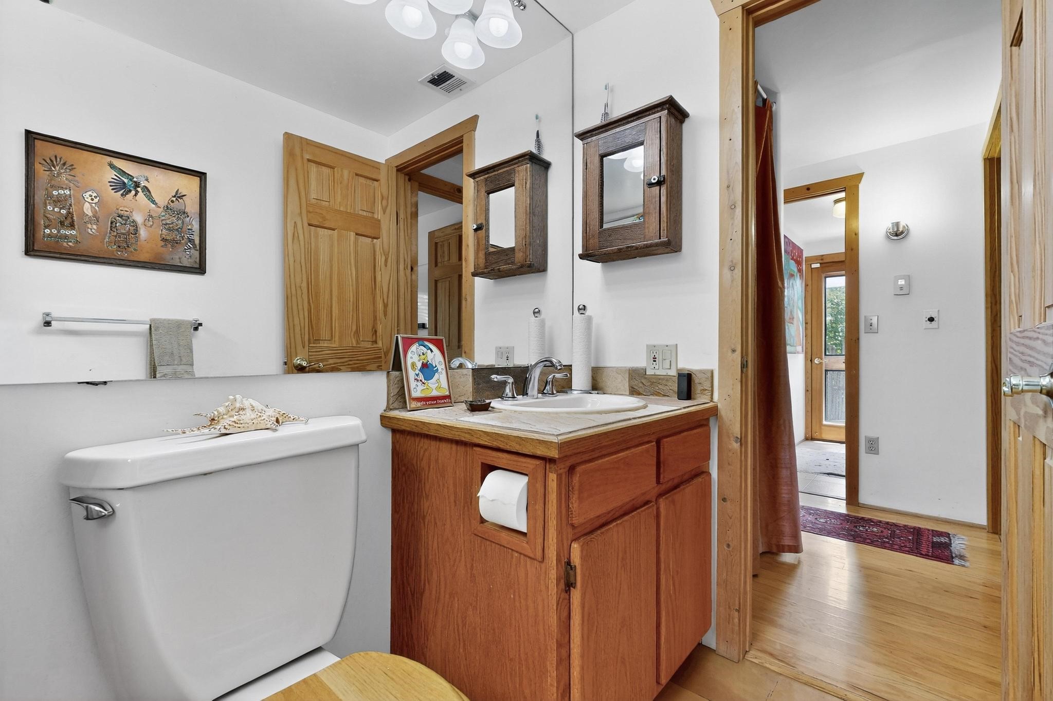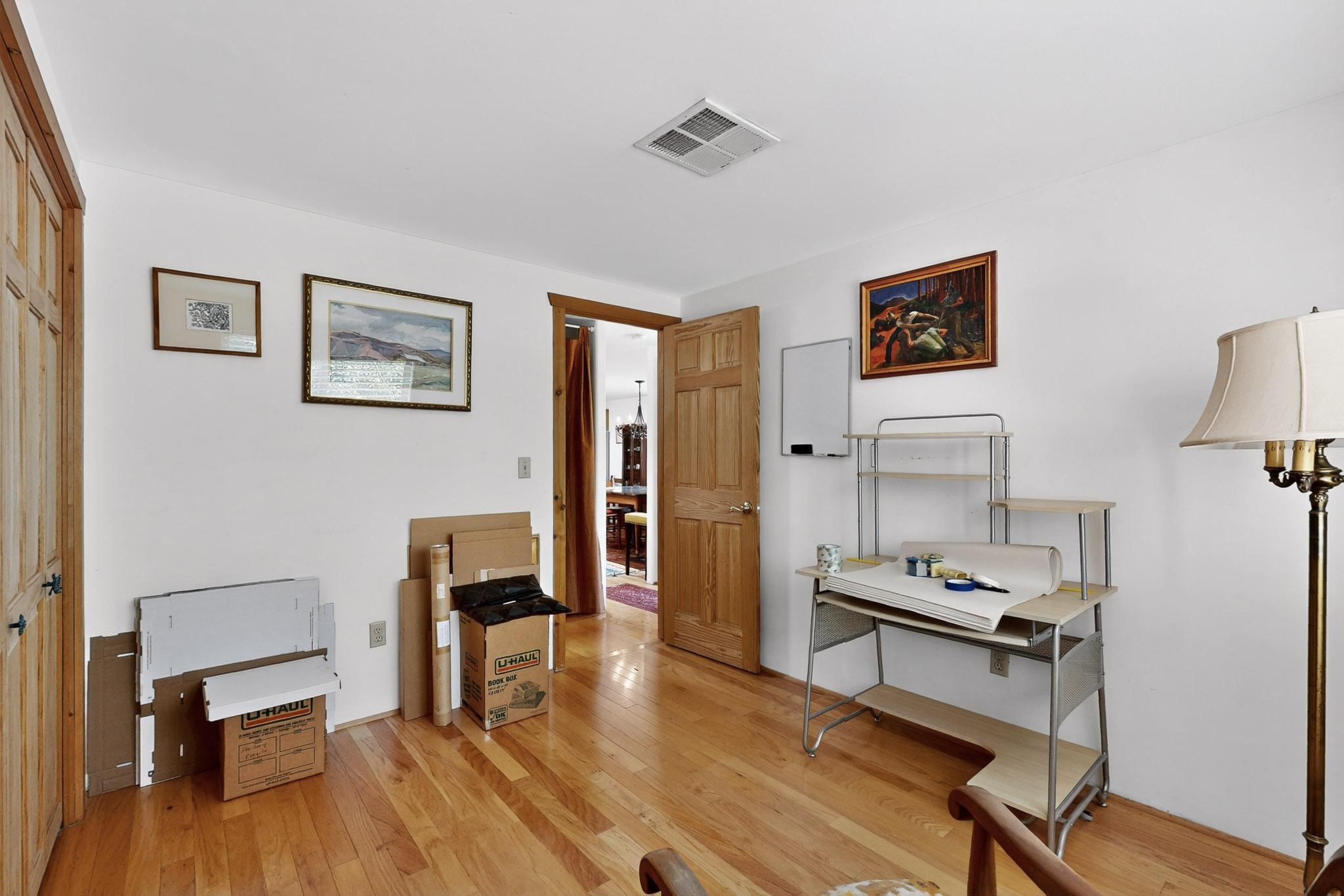 Unique and charming property at the end of Paseo De La Conquistadora on just under a 1/2 acre corner lot. Potentially an ideal ADU (accessory dwelling unit). The property lends itself to multigenerational living with the elderly parents, an offspring and a caregiver living in close proximity but with separate living spaces for privacy. Nestled under mature tree cover this property has three residential dwellings. The site built house is composed of two units. One is a one bedroom with three quarter bath and has its own walled courtyard with flagstone pavers. The smaller unit is an efficiency with a three quarter bath. There is a manufactured home with two bedrooms, two office areas and two baths. It features oak and tile floors and has a nice ambience accented by a kiva fireplace. It also has a 684 square porch running the length of the building. There is a wonderful nicely landscaped side yard that is fenced and very private. The lot has numerous fruit trees, lilacs and tall pines and sits up high above the Santa Fe river and there is a nice view of the Sangres. The Santa Fe river trail is just below the lot. The property has secure access via a remote controlled gate.