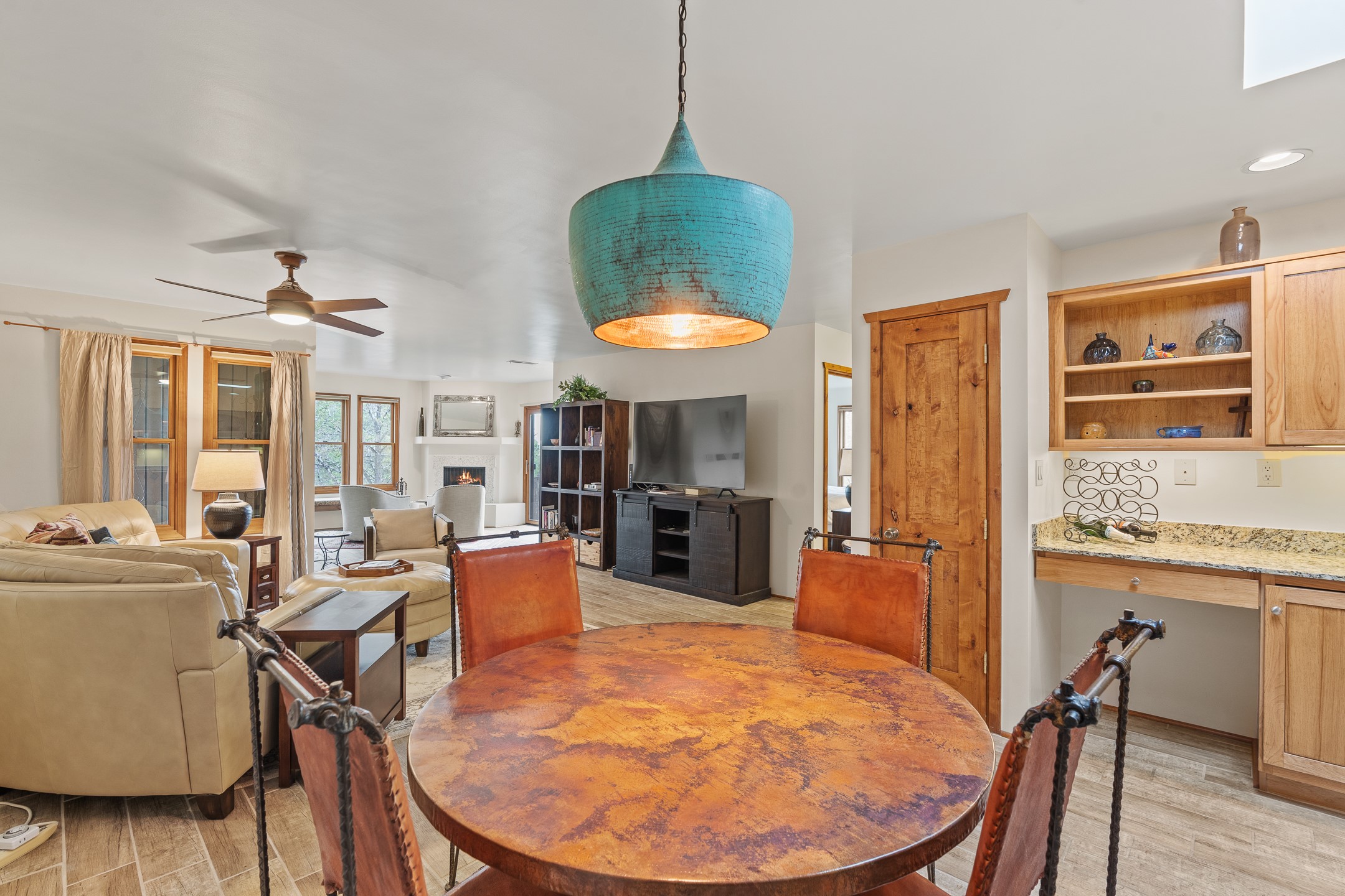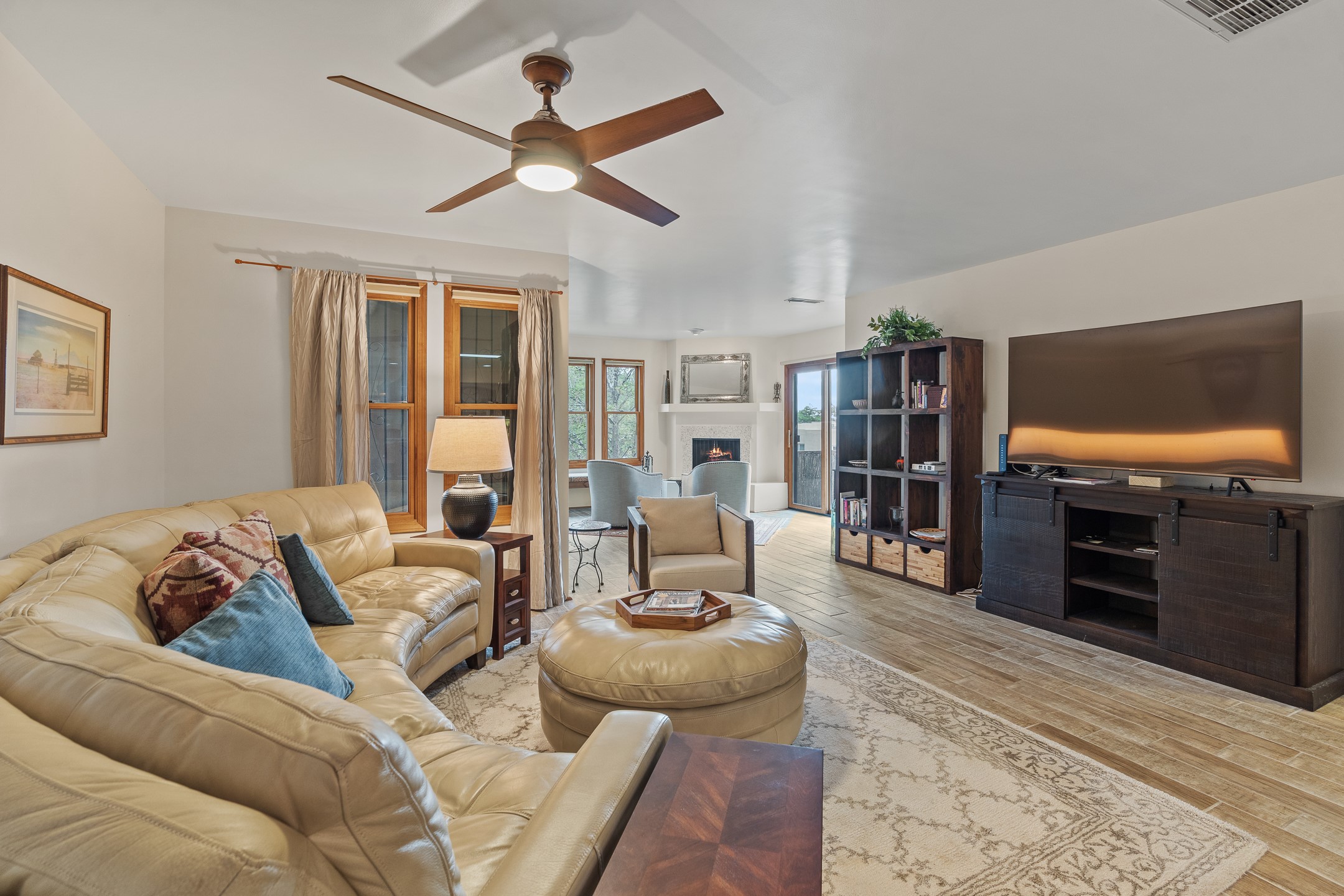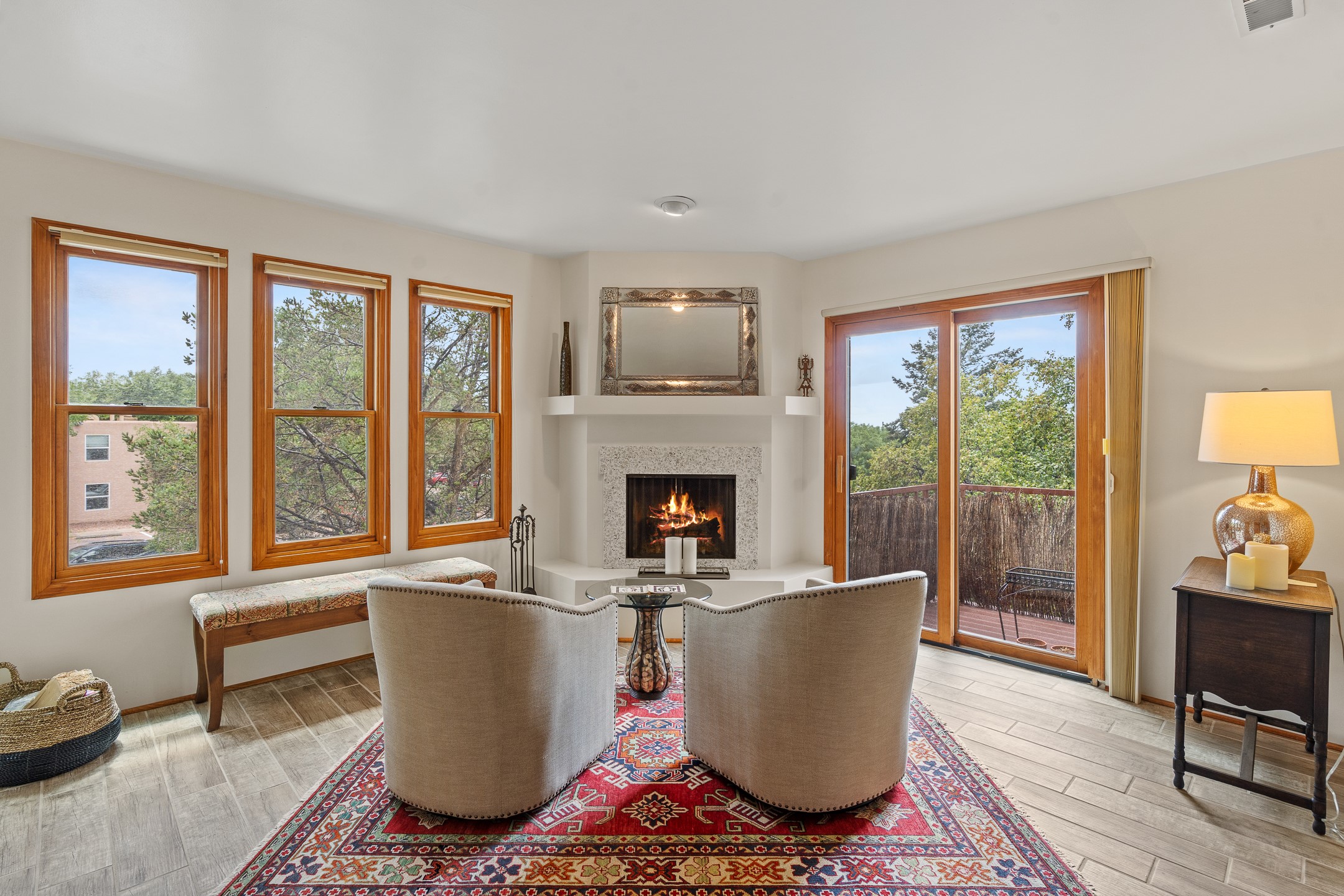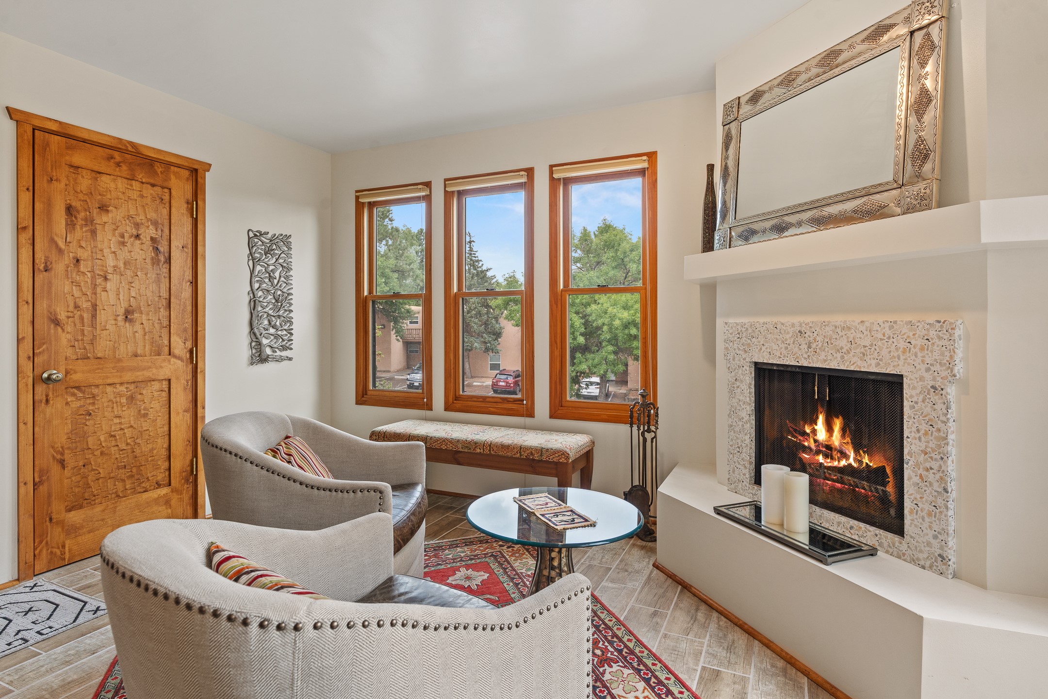 Located in the sought-after South Capital neighborhood, this beautifully updated condo in Los Pueblos is a hidden gem offering both comfort and convenience. Just under 1.5 miles to the Santa Fe Plaza and less than a mile to the Railyard District, enjoy easy access to Whole Foods, Trader Joe's, Natural Grocers, popular restaurants, and local amenities.Spanning 1,472 sqft, this 2-bedroom, 1-bath home (originally a 2-bath and still plumbed for a second bath) features a spacious open-concept layout that seamlessly blends the kitchen, dining, and living areas. A cozy sitting area with a fireplace and sliding glass doors opens to a private balcony, also accessible from the primary bedroom--perfect for relaxing.The home is tiled throughout, offering ease of maintenance and a clean, cohesive look. The tastefully updated kitchen is a standout with granite countertops, a bar-top counter, pantry, and chic lighting fixtures over both the kitchen and dining areas. Newer double-paned windows and a ceiling fan in the living room add comfort and energy efficiency.The large primary suite connects directly to the oversized bathroom, which also serves as the guest bath with a secondary entrance from the hallway. The bathroom includes a walk-in shower and generous space for comfort. The guest bedroom is privately situated down the hall.A former second bathroom has been thoughtfully converted into a large laundry and storage room, complete with a stackable washer and dryer (included) and ample closet space throughout.Additional highlights include:An 8x8 storage unit in the secure underground garage,furniture package available,prime location near Santa Fe's best shopping, dining, and cultural attractions.Whether you're looking for a full-time residence, weekend retreat, or investment opportunity, this stylish condo offers the best of Santa Fe living in an unbeatable location.