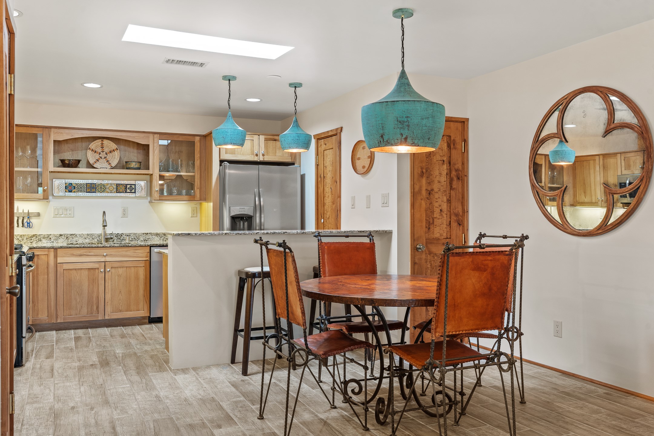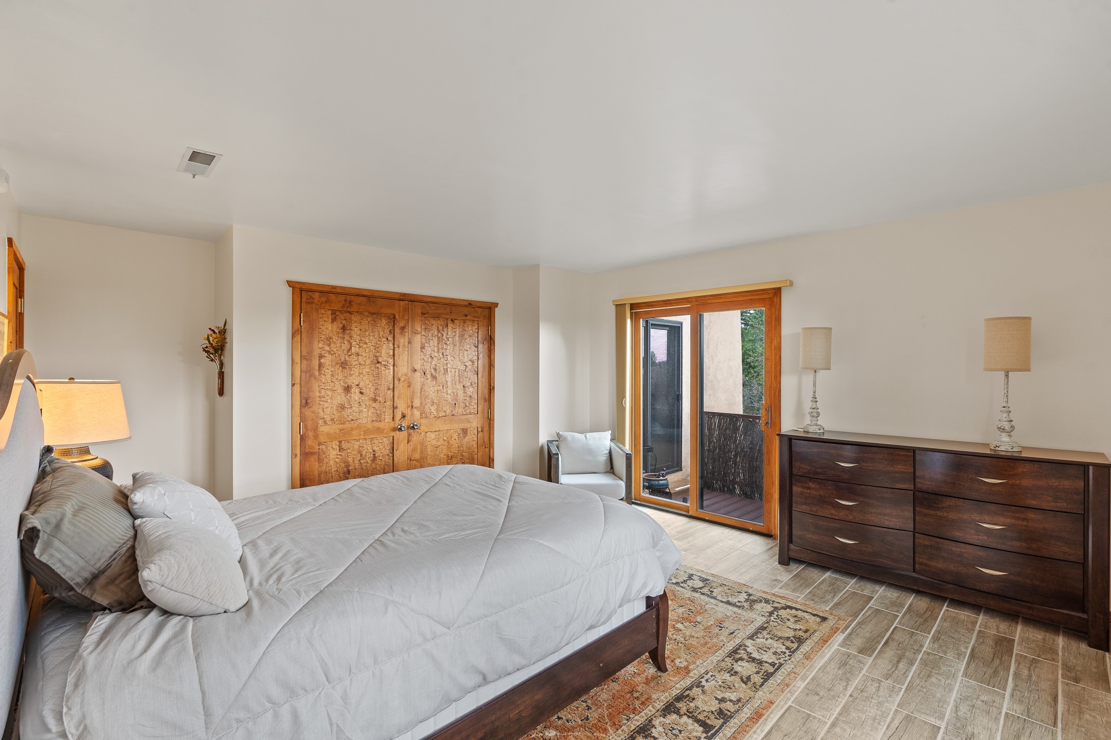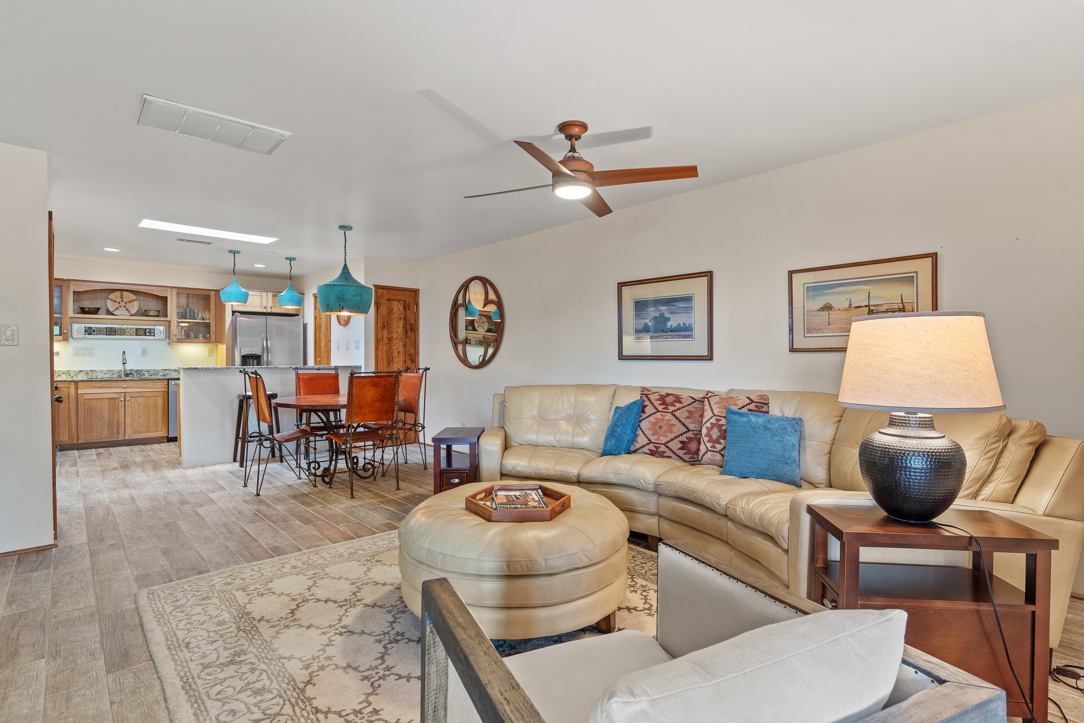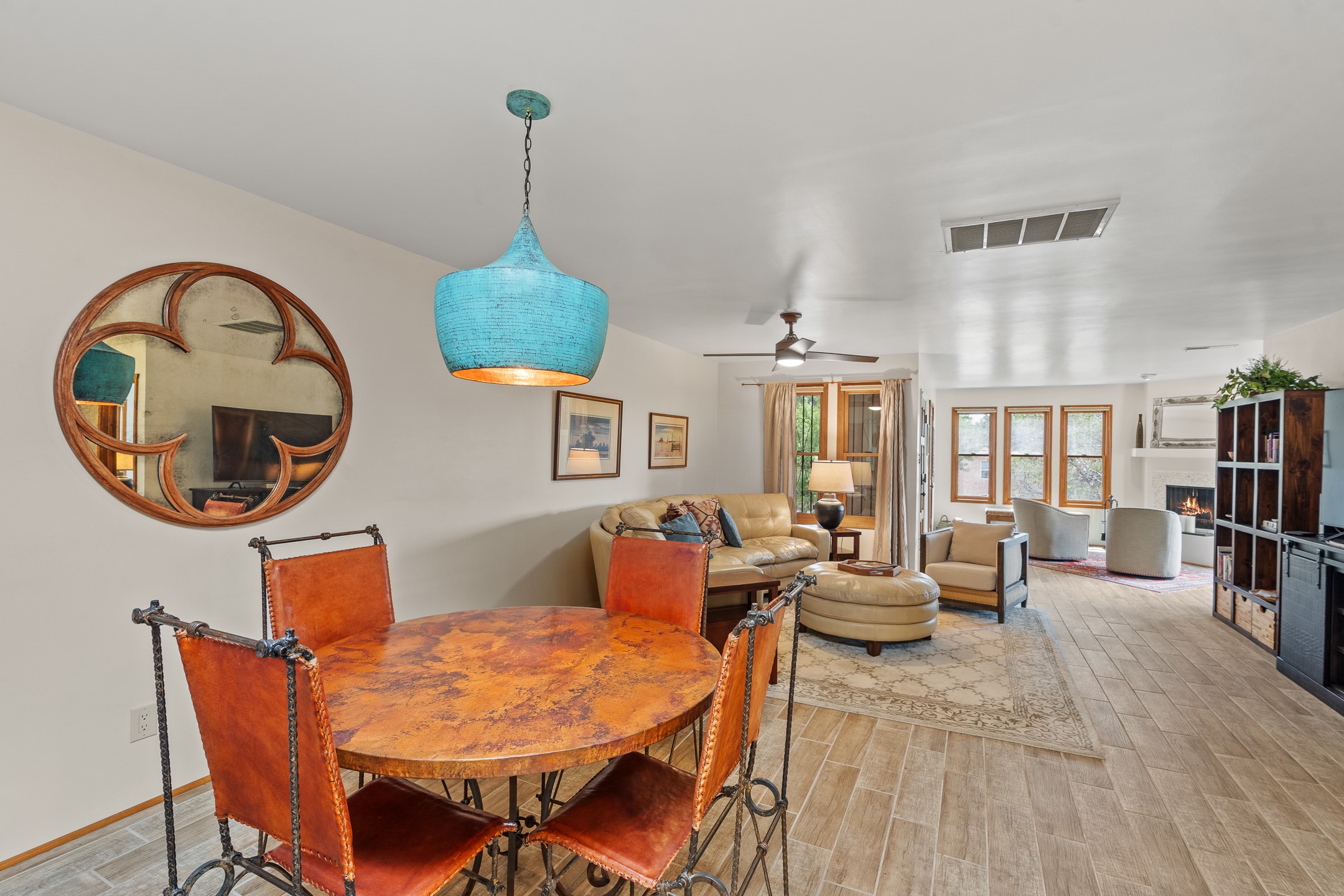 Located in the sought-after South Capital neighborhood, this beautifully updated condo in Los Pueblos is a hidden gem offering both comfort and convenience. Just under 1.5 miles to the Santa Fe Plaza and less than a mile to the Railyard District, enjoy easy access to Whole Foods, Trader Joe's, Natural Grocers, popular restaurants, and local amenities.Spanning 1,472 sqft, this 2-bedroom, 1-bath home (originally a 2-bath and still plumbed for a second bath) features a spacious open-concept layout that seamlessly blends the kitchen, dining, and living areas. A cozy sitting area with a fireplace and sliding glass doors opens to a private balcony, also accessible from the primary bedroom--perfect for relaxing.The home is tiled throughout, offering ease of maintenance and a clean, cohesive look. The tastefully updated kitchen is a standout with granite countertops, a bar-top counter, pantry, and chic lighting fixtures over both the kitchen and dining areas. Newer double-paned windows and a ceiling fan in the living room add comfort and energy efficiency.The large primary suite connects directly to the oversized bathroom, which also serves as the guest bath with a secondary entrance from the hallway. The bathroom includes a walk-in shower and generous space for comfort. The guest bedroom is privately situated down the hall.A former second bathroom has been thoughtfully converted into a large laundry and storage room, complete with a stackable washer and dryer (included) and ample closet space throughout.Additional highlights include:An 8x8 storage unit in the secure underground garage,furniture package available,prime location near Santa Fe's best shopping, dining, and cultural attractions.Whether you're looking for a full-time residence, weekend retreat, or investment opportunity, this stylish condo offers the best of Santa Fe living in an unbeatable location.