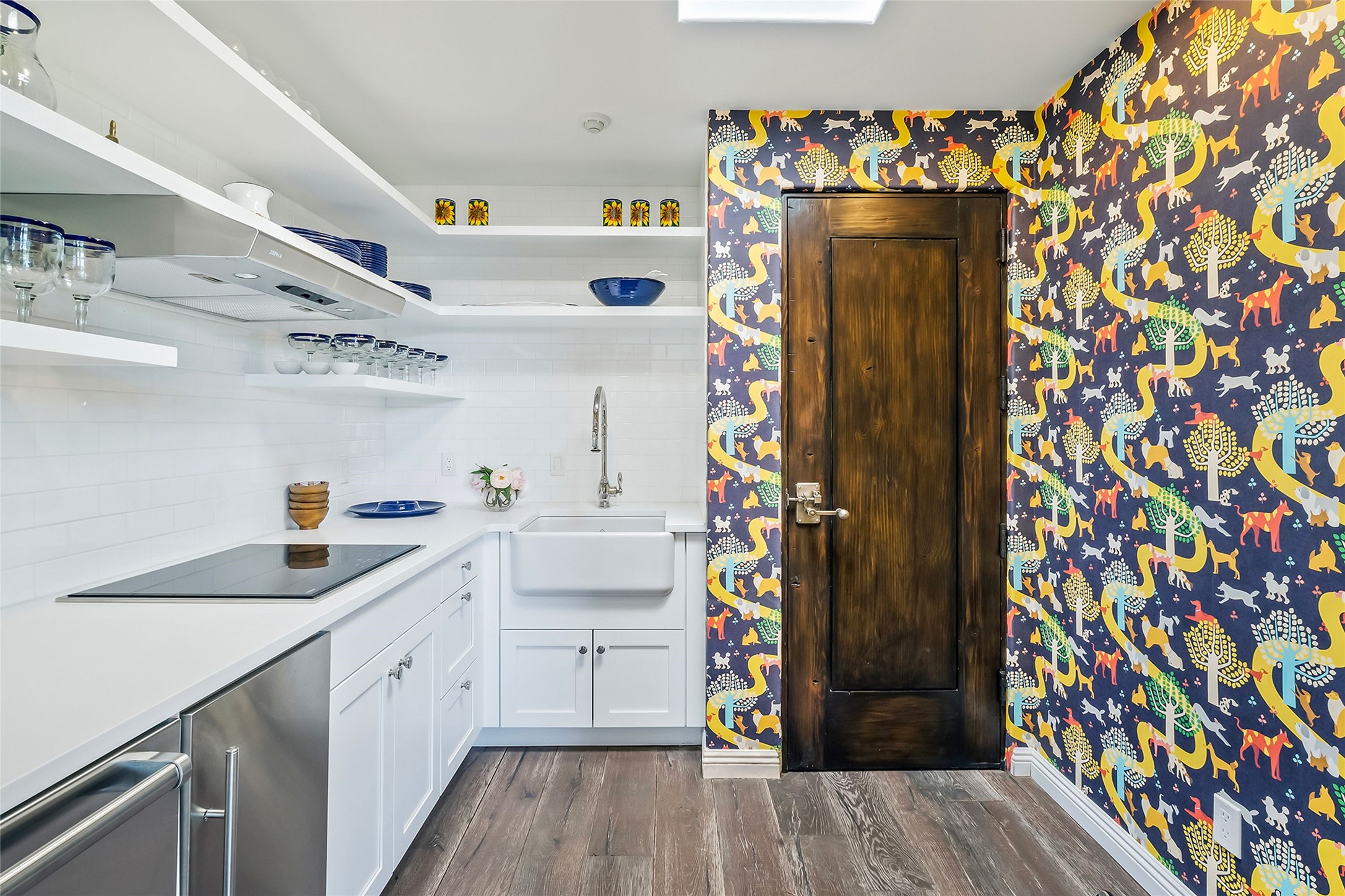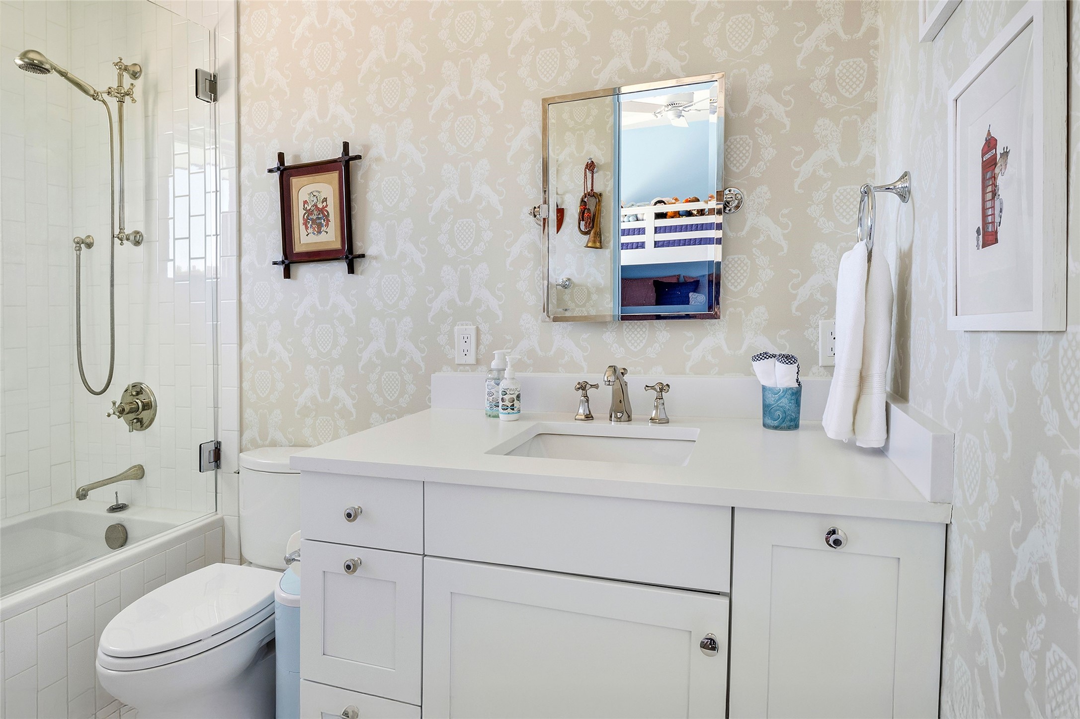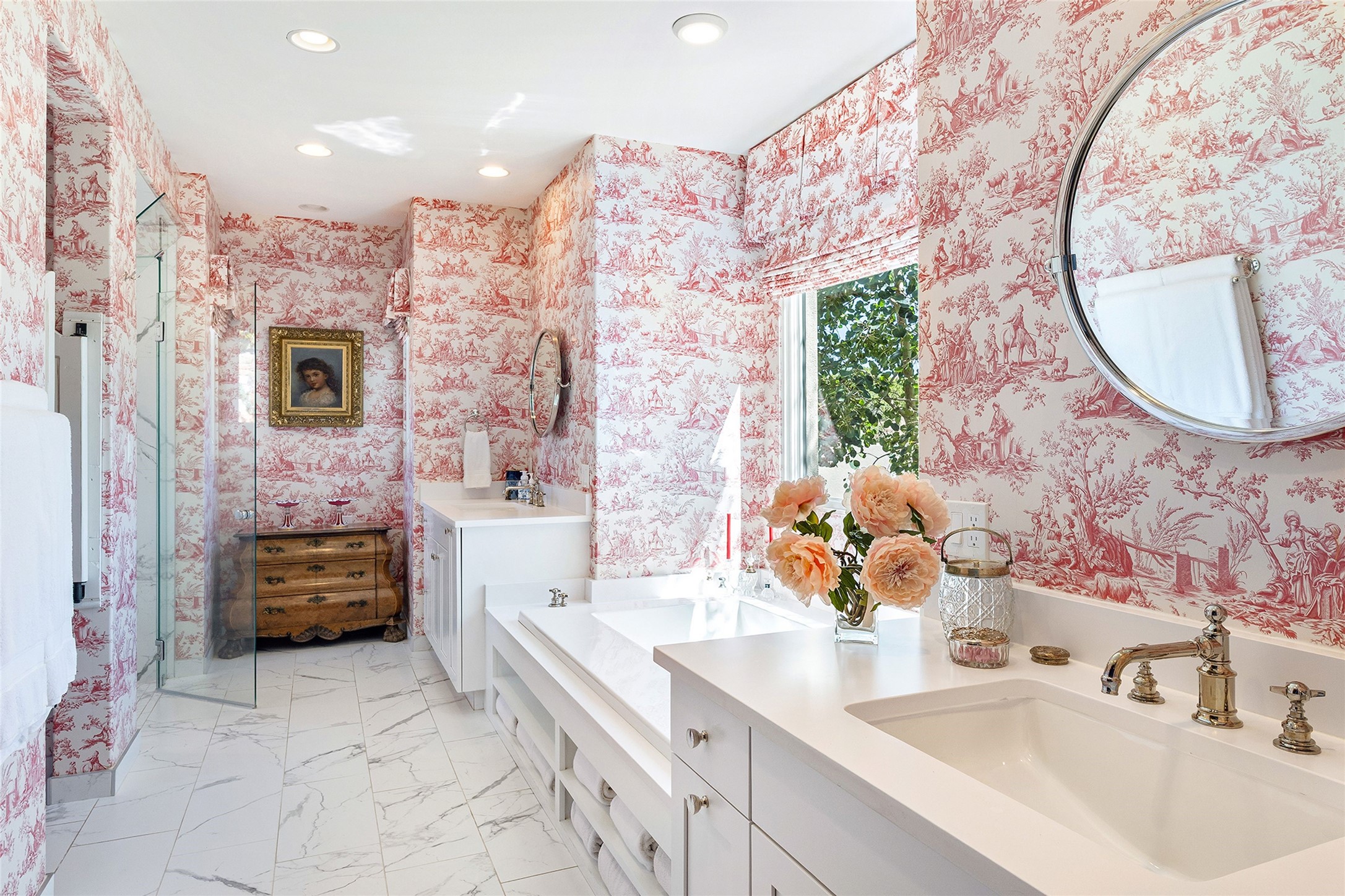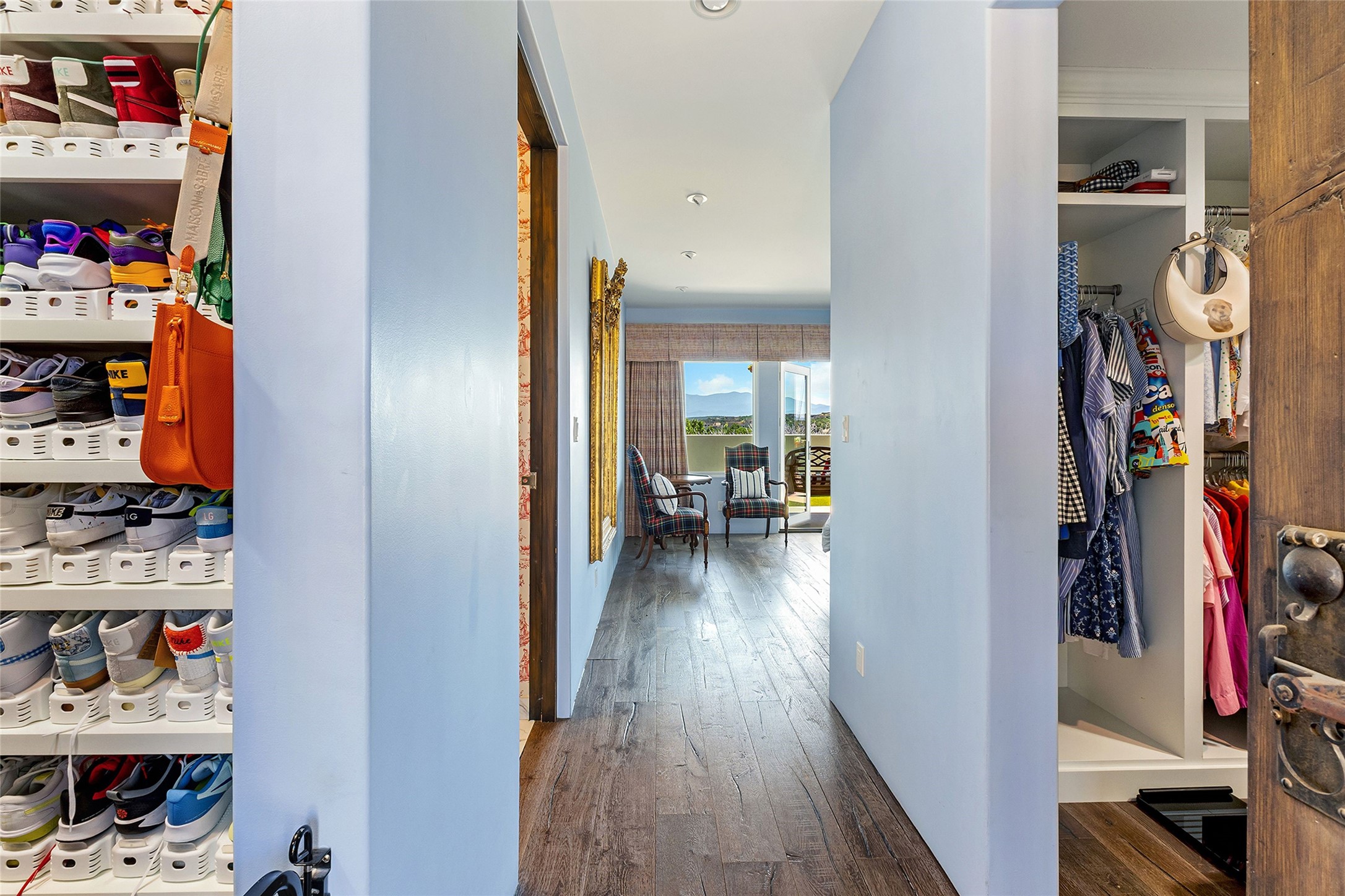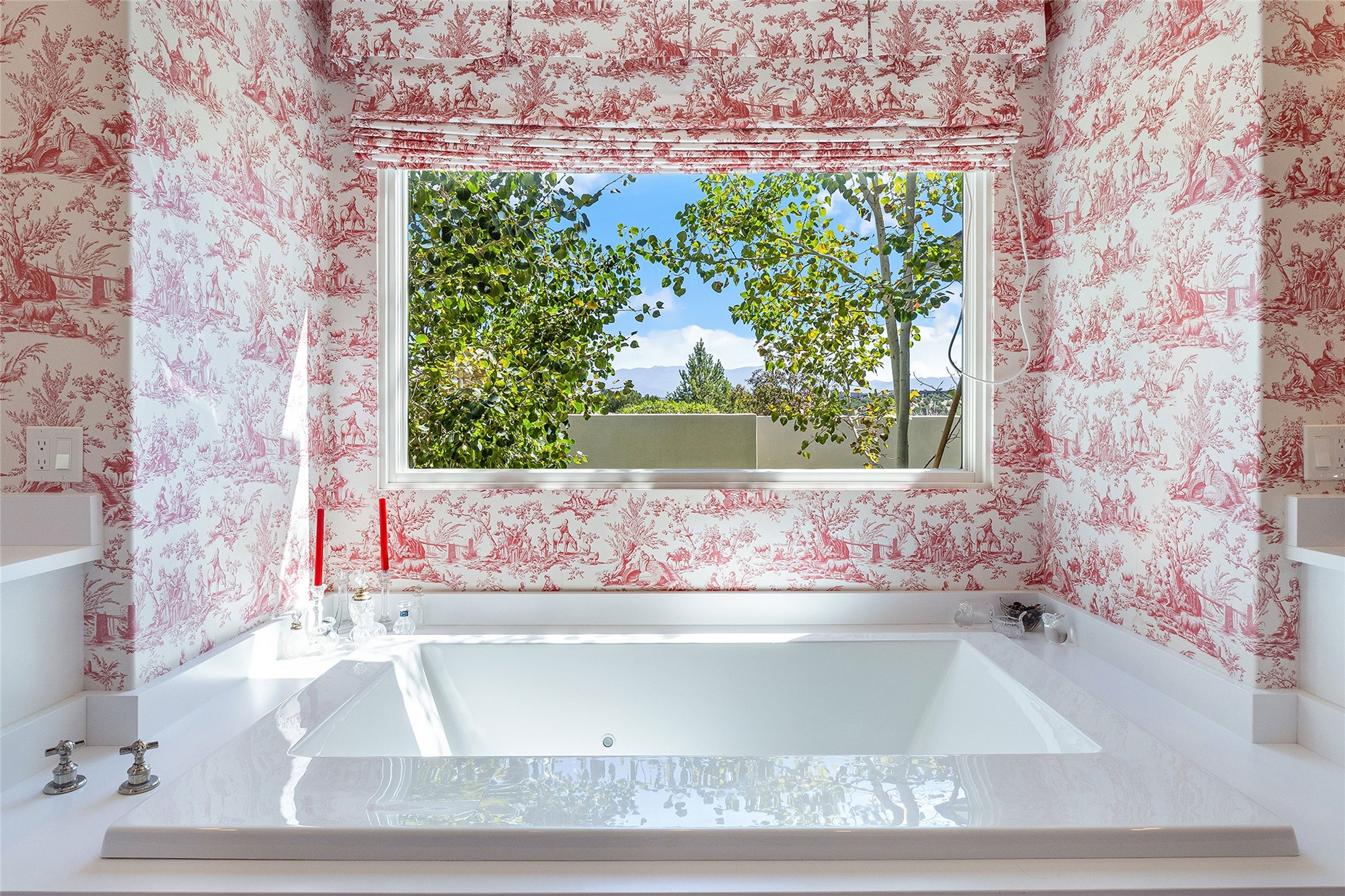Set within the secure gates of Las Campanas, 96 Sunflower Drive pairs a clean contemporary design with unexpected Victorian-inspired details, where rich wall colors and patterned wallpapers bring warmth and character to the interiors. The four-bedroom main residence and one-bedroom casita are oriented to capture protected, unobstructed views of the Sangre de Cristo Mountains--most dramatically enjoyed from the home's two-tiered outdoor living spaces. The lower terrace centers on an infinity-edged pool, outdoor shower, and wood deck for sunbathing or lounging. Above, an expansive east-facing portal and patio feature a turf lawn, fully equipped outdoor kitchen, and generous dining and seating areas, all framed by the same striking mountain panorama. Inside, the open living, dining, and kitchen area flows naturally for gatherings, with the kitchen offering Wolf appliances, abundant counter space, and bar seating. The primary suite includes two closets, dual vanities, a soaking tub, mountain views, and direct portal access, while three guest suites are privately positioned across the home. A gated driveway leads to the three-car garage. This property is modern yet unexpected with exceptionally polished and inviting outdoor spaces. In one of the closest parts of Las Campanas to town, the next owner gets the benefit of Las Campanas' 24-hour security and on-site emergency medical services while being only 10 minutes from downtown.