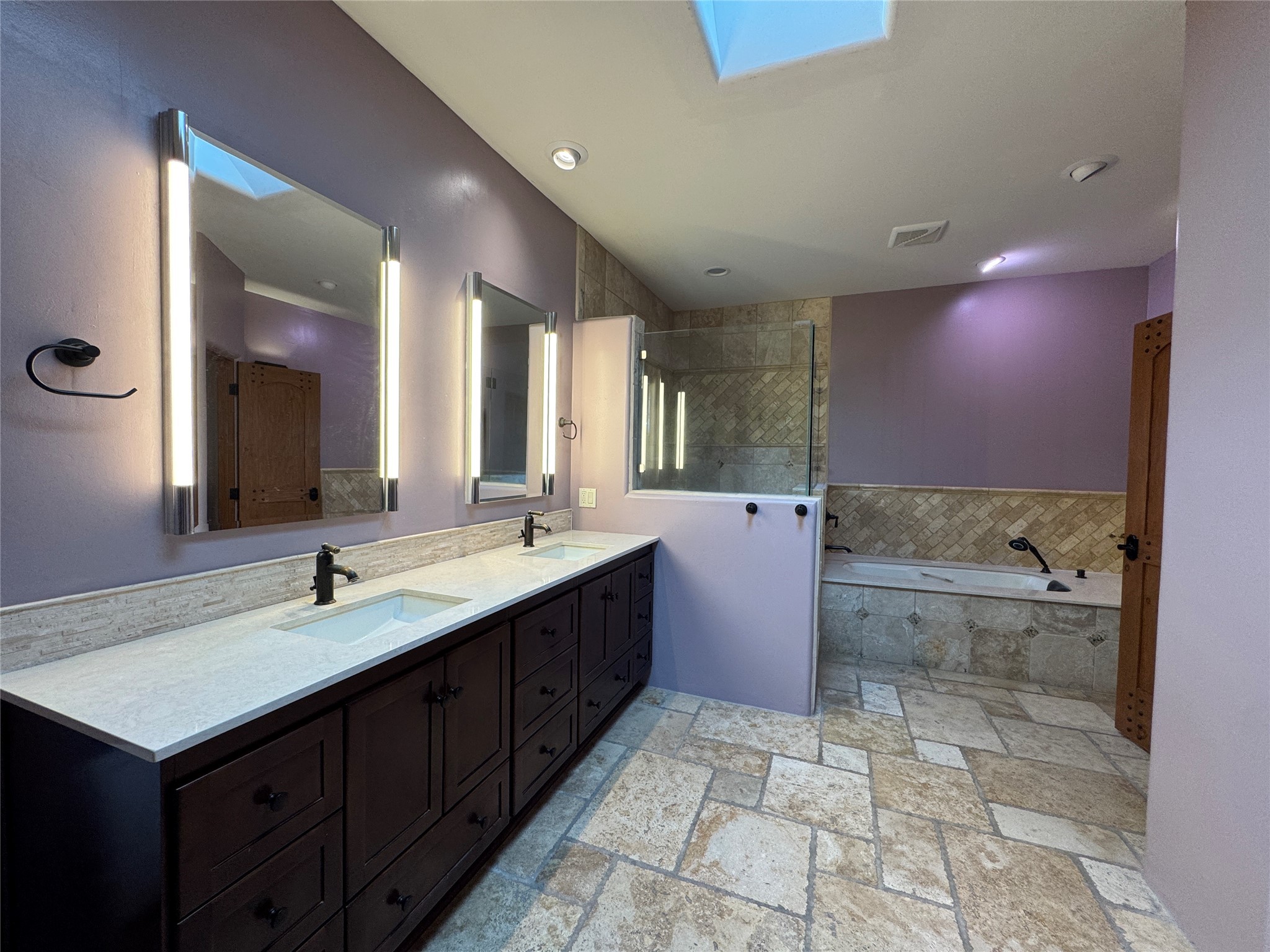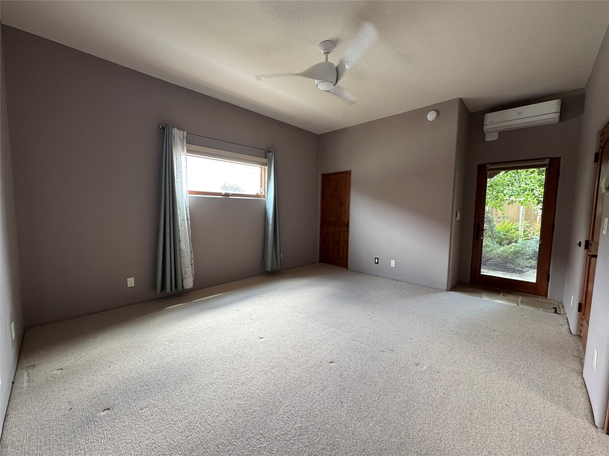 Check out the magical courtyards in the coveted Oshara Village community home featuring abundant natural light and open concept living. The main house has 2 bedrooms and 2 bathrooms. High ceilings with skylights bring the outdoors in and large traditional southwestern vigas remind you that you are in the Southwest. The beautifully remodeled chef's kitchen features a KitchenAid gas stove and oven alongside a Samsung smart refrigerator. The spacious living room has gallery lighting throughout, perfect for your art collection. The wood burning kiva creates a quintessential Santa Fe ambiance with hand chiseled solid wood doors, top of the line window shades, stone tile are found throughout this dreamy home. Enjoy the privacy of room separation from guests with the second bedroom having its own entrance via the courtyard. At the end of the day relax in your Jason Hydrotherapy tub in a spa-like main bathroom with a Japanese smart heated toilet. The walk-in closet is ready for your wardrobe for all four seasons. Other features include miniSplit cooling and heating, tankless water heater, $50K Solar Panel system (paid off), and 2 car garage with finished floor including 2 Tesla generator batteries and an electric charging station, ready for your green vehicle. Natural landscaping with mature aspen trees, gorgeous water features, and outdoor fireplace create your own oasis for entertaining or sipping that first cup of coffee/tea in the morning, listening to the birds in one of the most beautiful courtyards in Santa Fe. This property also includes a 30 sf heated casita/guest house with a separate entrance featuring a mini kitchen with Wolf burners , mini fridge and a kitchen sink. Two minutes and you are at Pantry Dos Restaurant and a few minutes drive to the Community College, Genoveva Chavez Center, stores, grocery stores, cafes, restaurants and much more. Come experience 3 Craftsman Road, your private oasis in the desert awaits!