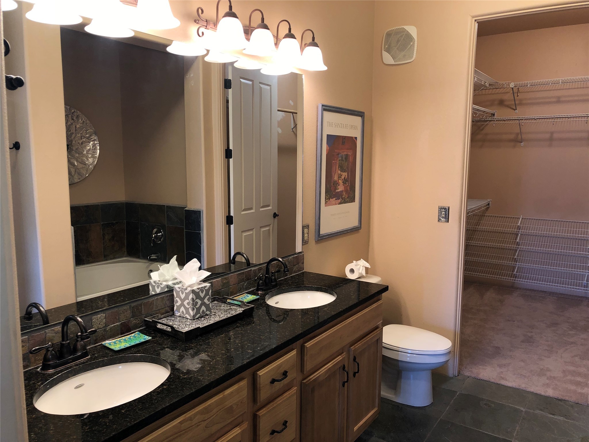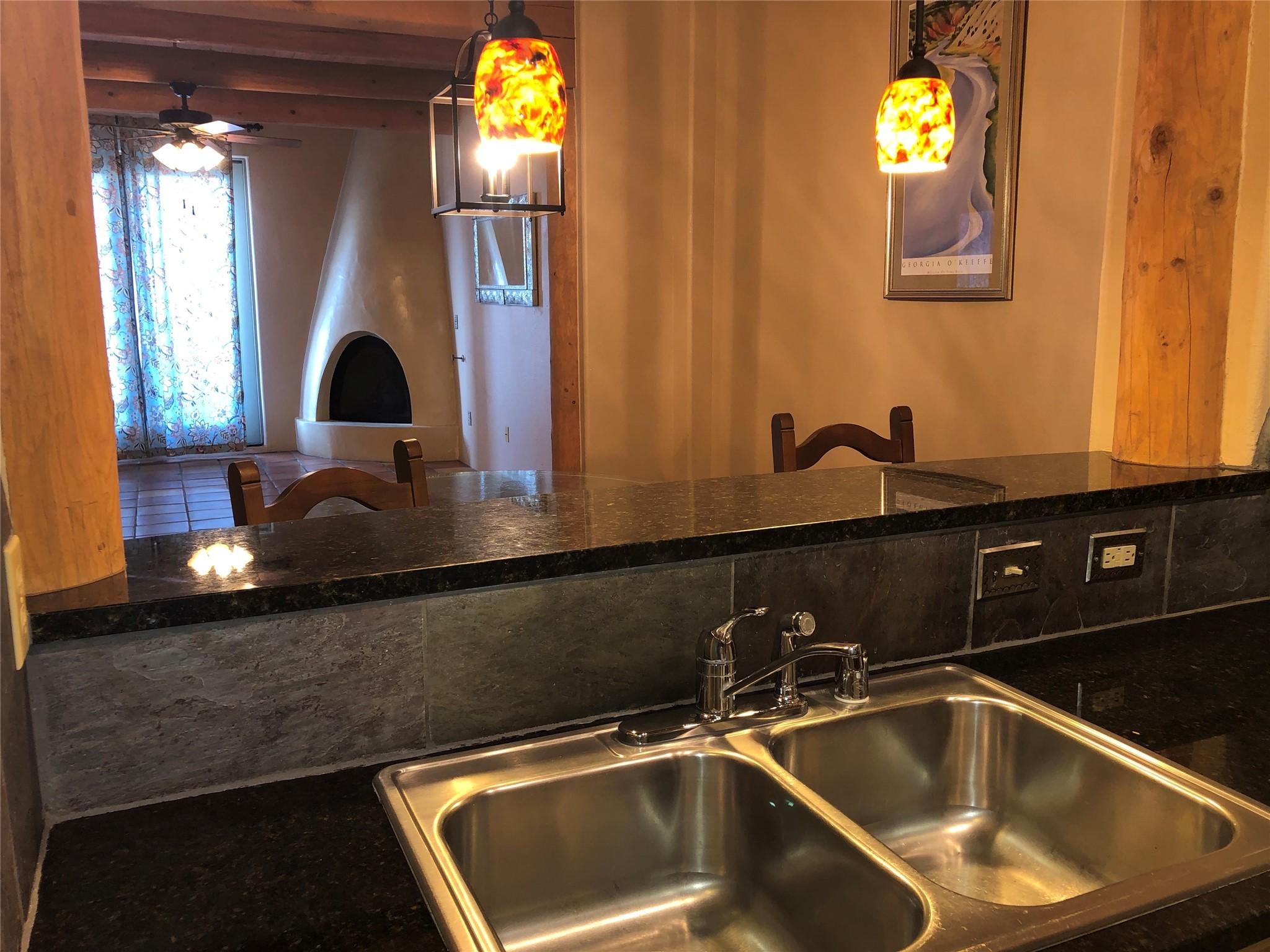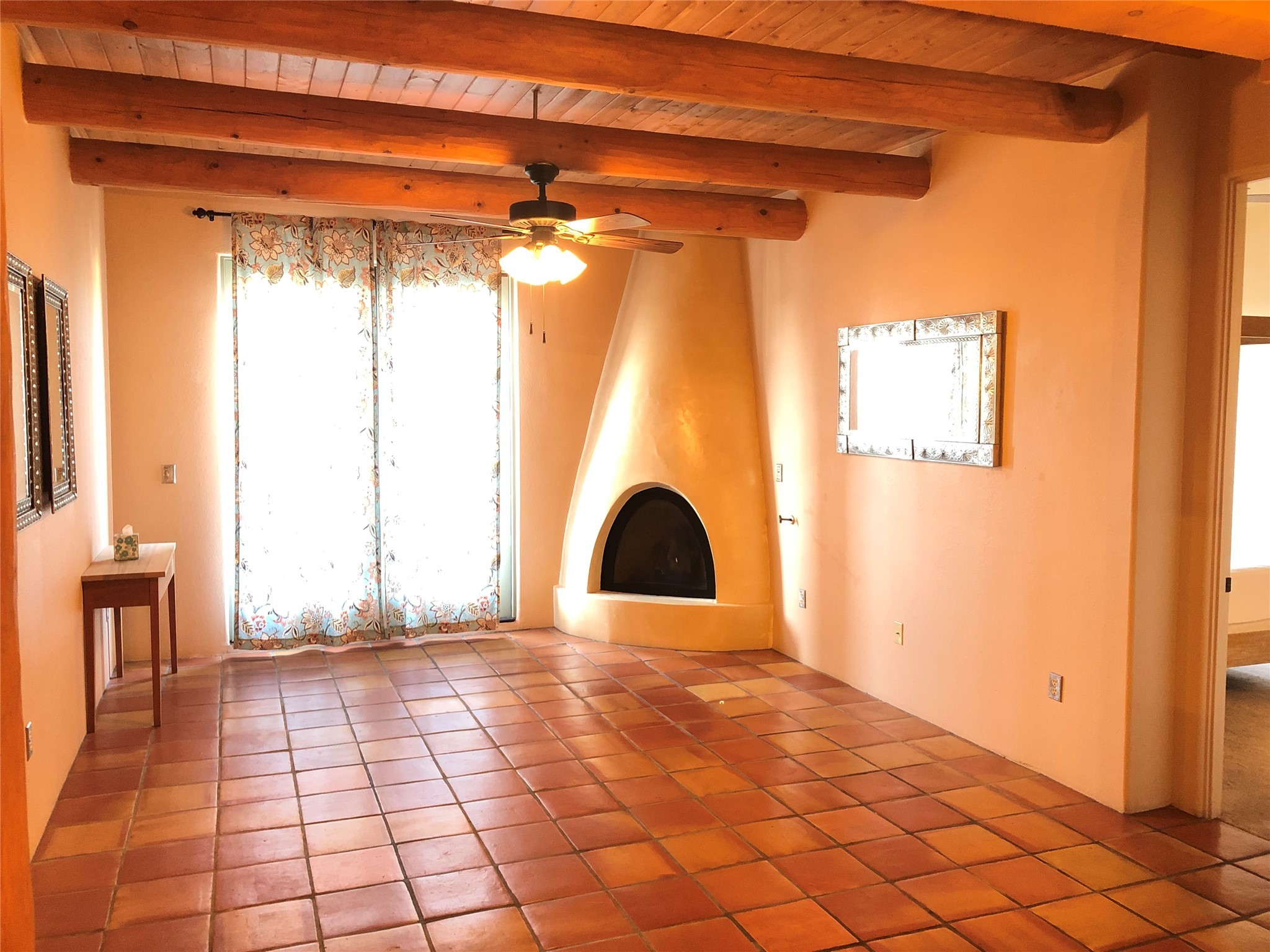 Spacious 2nd floor, Unit B-238, north facing 2 bedrooms, 2 bath condominium located in The Alameda. Extra attached storage area plus a large detached garage. This well done unit features vigas, tongue and groove ceilings, Saltillo and slate floors beautifully done. tile and granite counter tops in kitchen and baths, stainless appliances, washer and dryer included, high ceilings with vigas, Natural gas kiva fireplace, refrigerated air and nice deck area. Amenities: The Alameda is a secure complex, security patrols, with gated parking areas, located in the heart of Santa Fe's prime recreational, entertainment and shopping corridor and boasts a private fitness center, fabulous inner courtyard and outdoor pool, conference center, offices, public gathering area, wine tasting room and is 24 hour access controlled. It's a fantastic unit in a great building & allows for good quality of life.