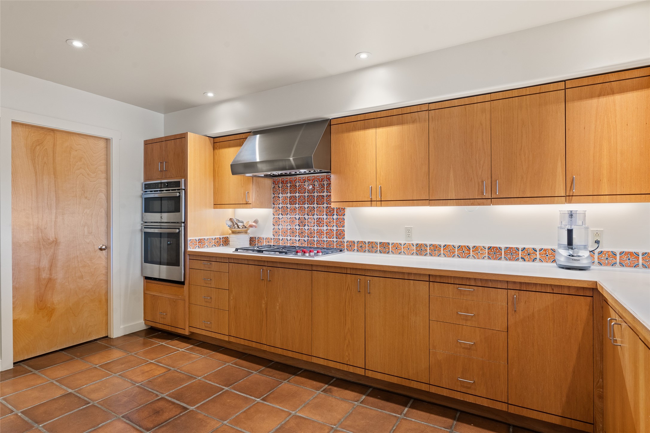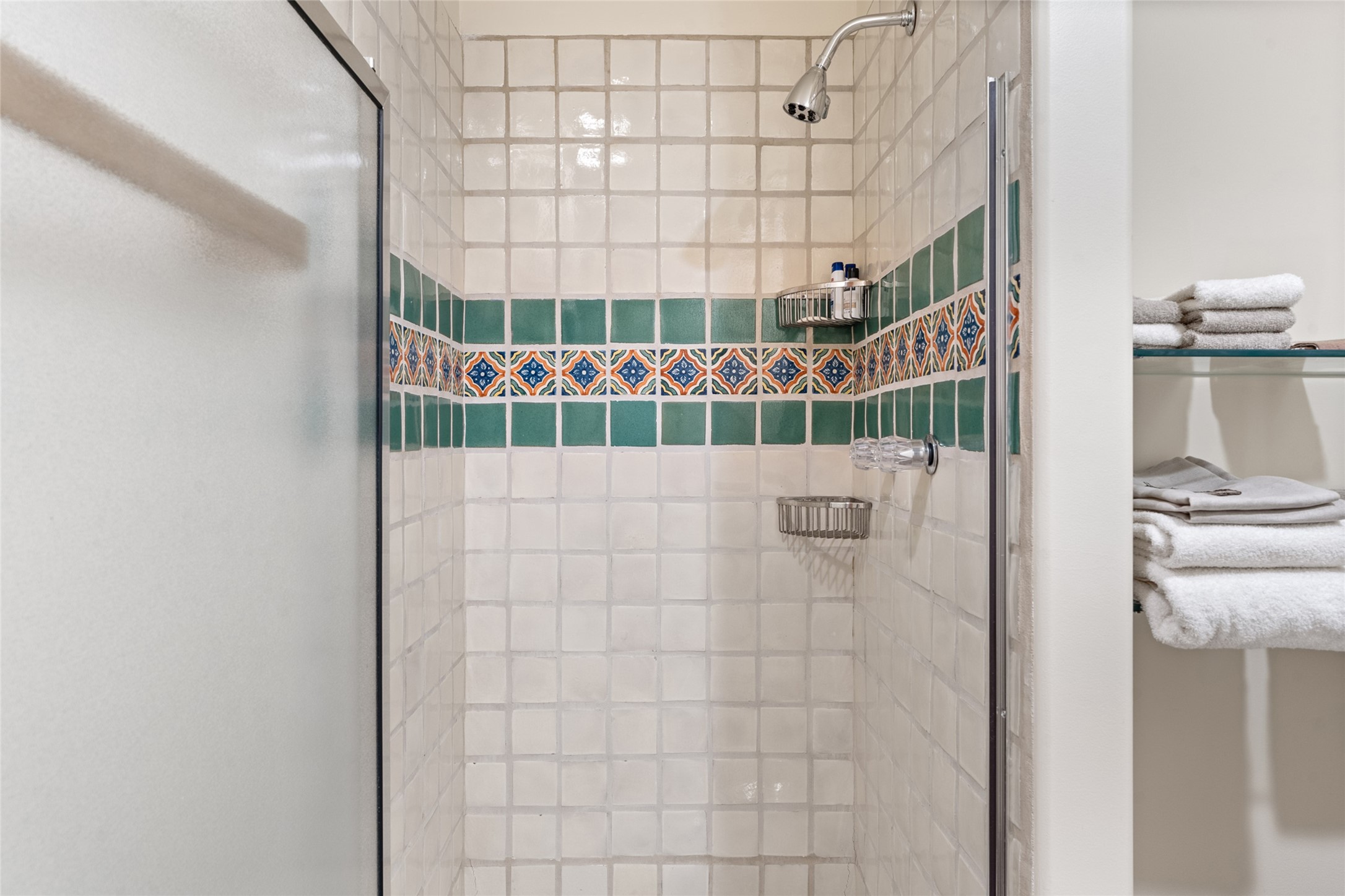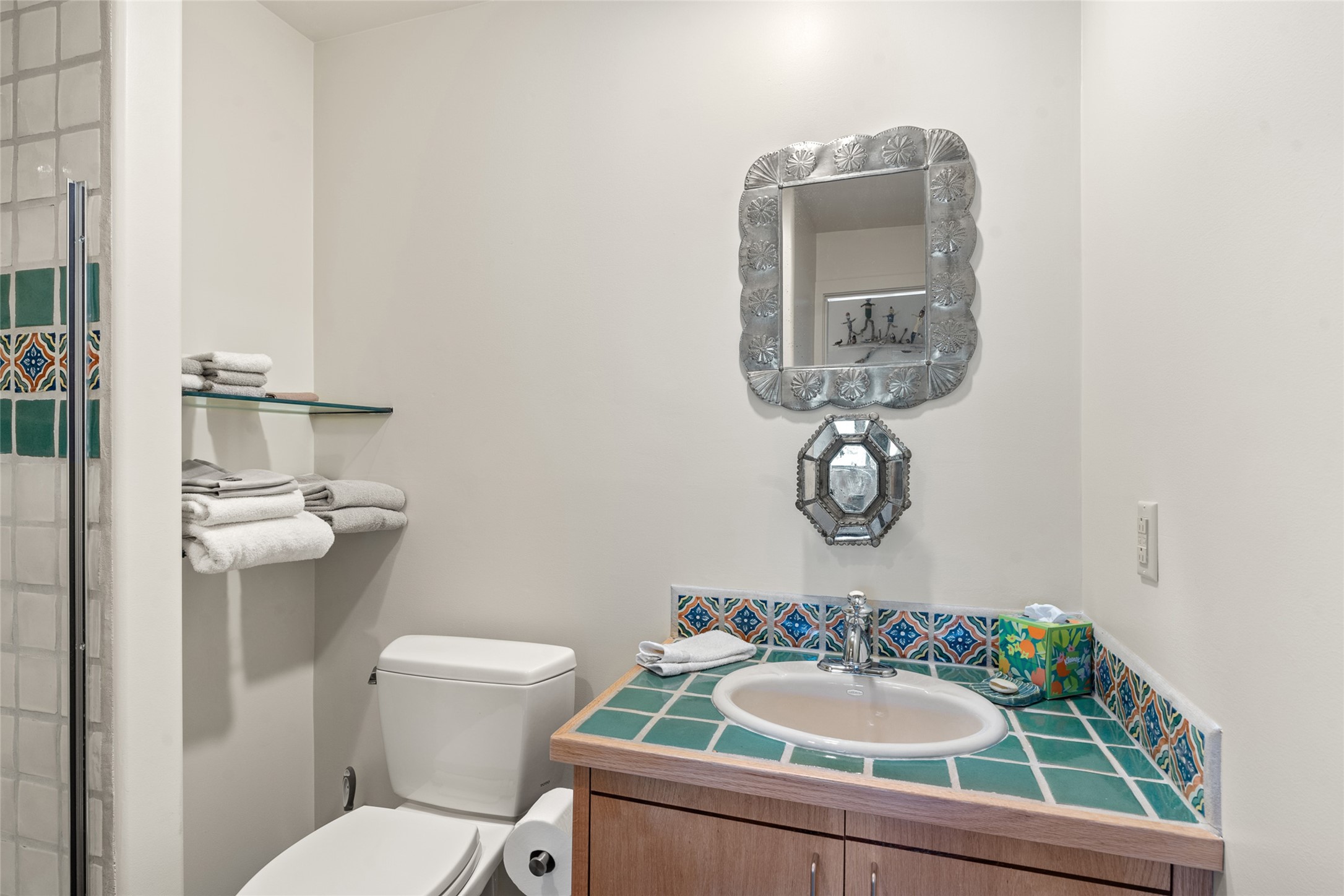 This Eastside gem in the prestigious La Vereda Compound offers an enviable location and stunning views. Unit 30, perched at the highest point of the compound, boasts breathtaking vistas of Sun & Moon Mountain from the dining room deck and spectacular city light and sunset views of the Jemez Range from the upper-level outdoor deck. This tri-level condo, elegantly updated, embodies the quintessential Santa Fe style. It features three bedrooms and three baths, with the ground floor bedroom suite doubling as a media room and its own private outdoor deck. Delight in three separate outdoor spaces with Trex decking, rich wood beamed ceilings, Saltillo tile floors, and a Kiva fireplace in the main living area. The open floor plan is bathed in natural light, ideal for entertaining and refined living. The owner's suite is a retreat of its own, complete with a fireplace, a beautifully tiled bath with double vanity, and a walk-in shower. The spacious chef's kitchen includes hardwood cabinetry, stainless steel appliances, and a sizable pantry. Additional conveniences include a two-car garage with ample storage, including a full-sized wine refrigerator, and a Carrier HVAC unit for central refrigerated A/C and forced air heating. La Vereda Compound is renowned for its gorgeous grounds with a mature tree canopy and its proximity to the Historic Plaza and Canyon Road, offering an unparalleled Eastside location.