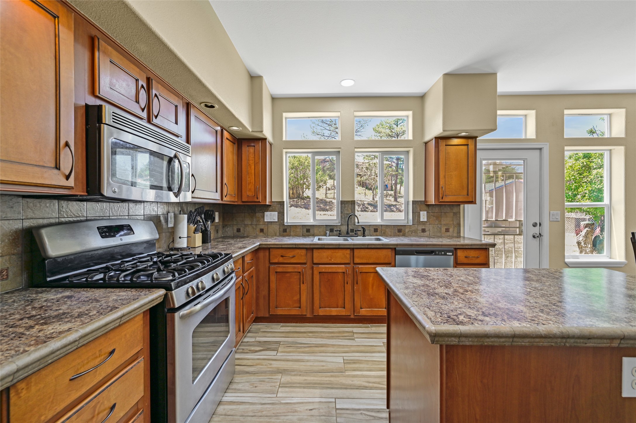 This beautifully maintained home is PRICED BELOW APPRAISED VALUE. Single-level home in a great location. Quiet neighborhood with wide-open views that capture the serenity of Northern New Mexico, filled with natural light, creating a bright and airy feel throughout. The open-concept living and dining areas feature modern finishes--perfect for everyday comfort and entertaining. At the heart of the home is a thoughtfully designed kitchen, complete with stainless steel appliances, rich wood cabinetry, an island, and windows that frame the tranquil landscape. The generous lot offers endless potential. Embrace the stunning skies and natural beauty that define Northern New Mexico living. WILLING TO ACCEPT REASONABLE OFFERS