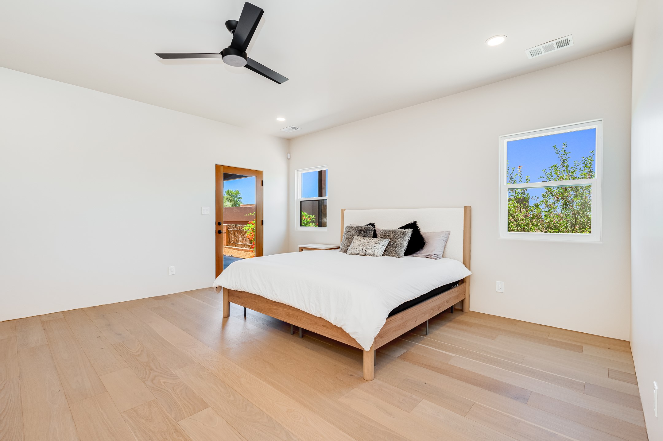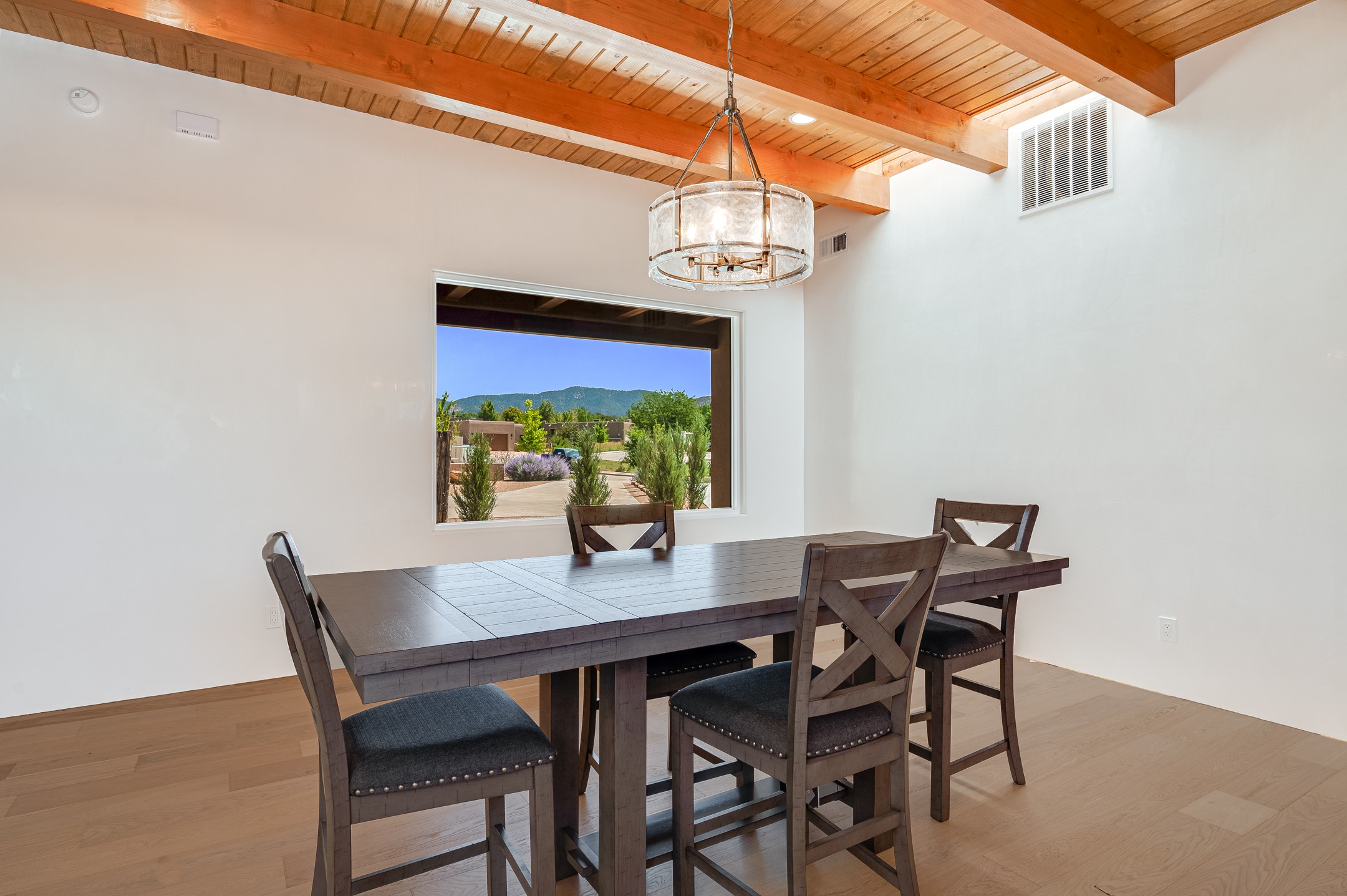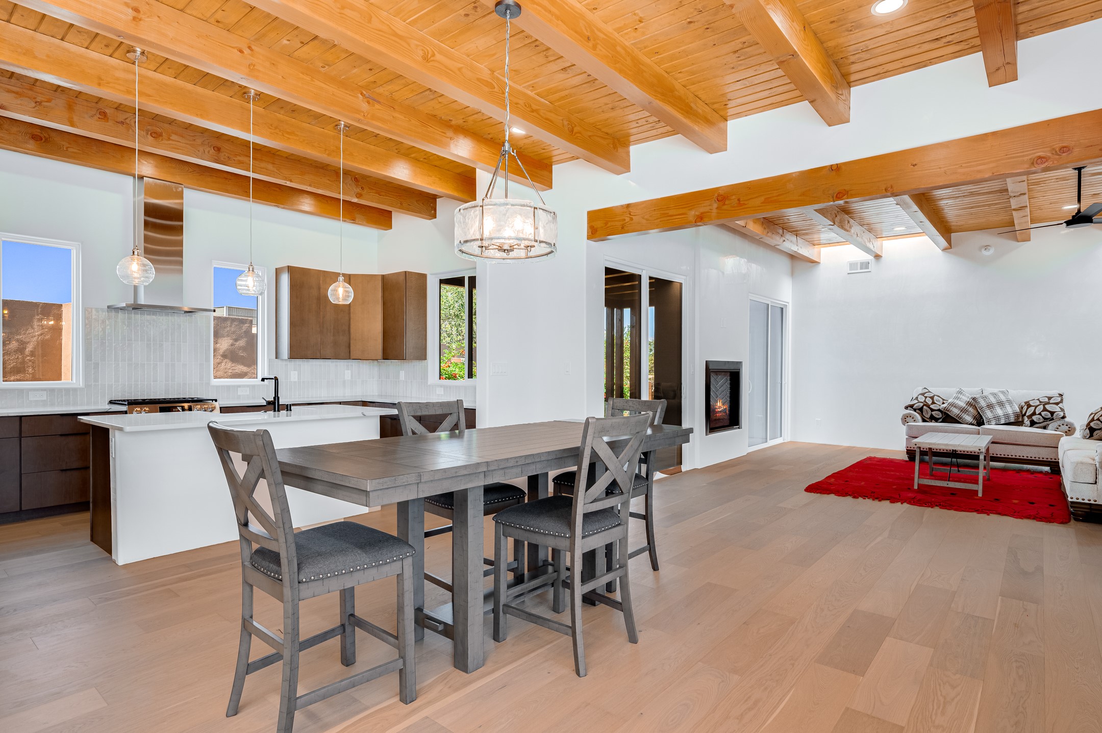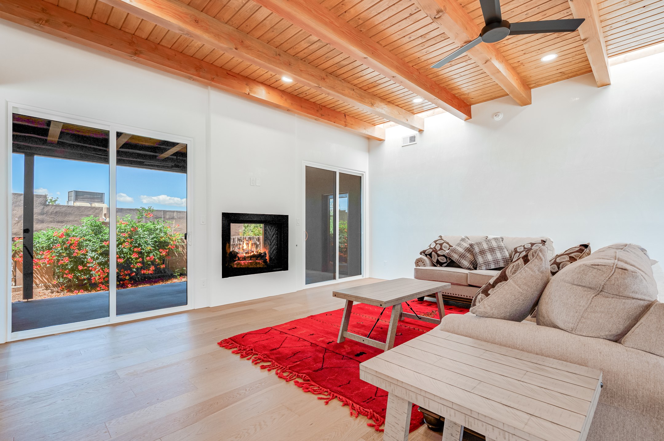 Crafted by Borrego Construction, this home exudes a blend of inviting elegance and modern flair. Boasting 3 bedrooms and 2 baths, it offers luxury amenities and a seamless open floor layout. Delight in Venetian Plaster accents, a lavish master suite with a spacious walk-in closet, an expansive shower and exquisite tile finishes. The living space features a gas linear fireplace, visible from both indoors and outdoors. Situated in the coveted Plaza Bonita neighborhood. This property offers convenience with it's proximity to the hospital and shopping amenities. Enjoy the sought-after lifestyle in Santa Fe's Plaza Bonita enclave.