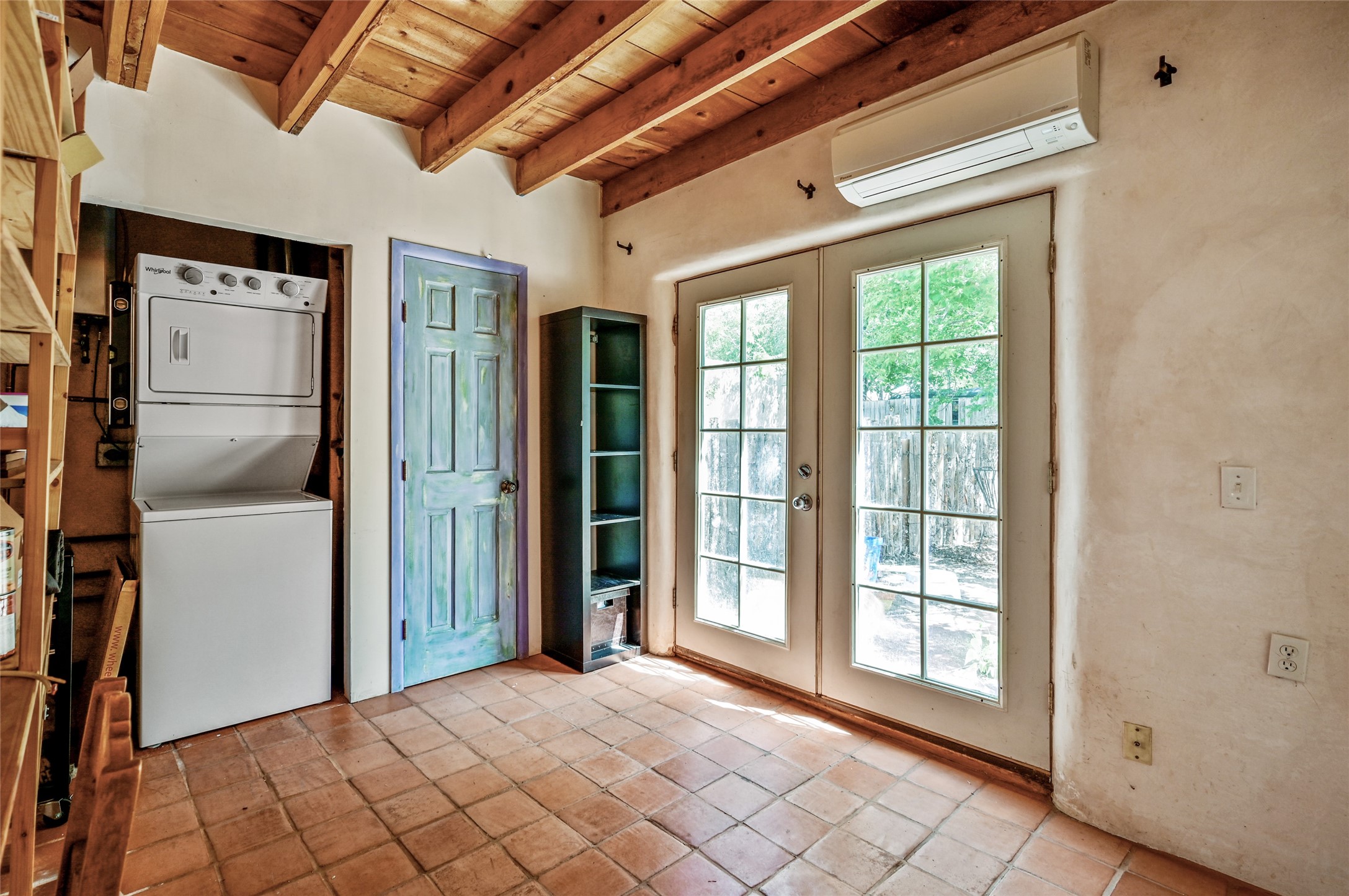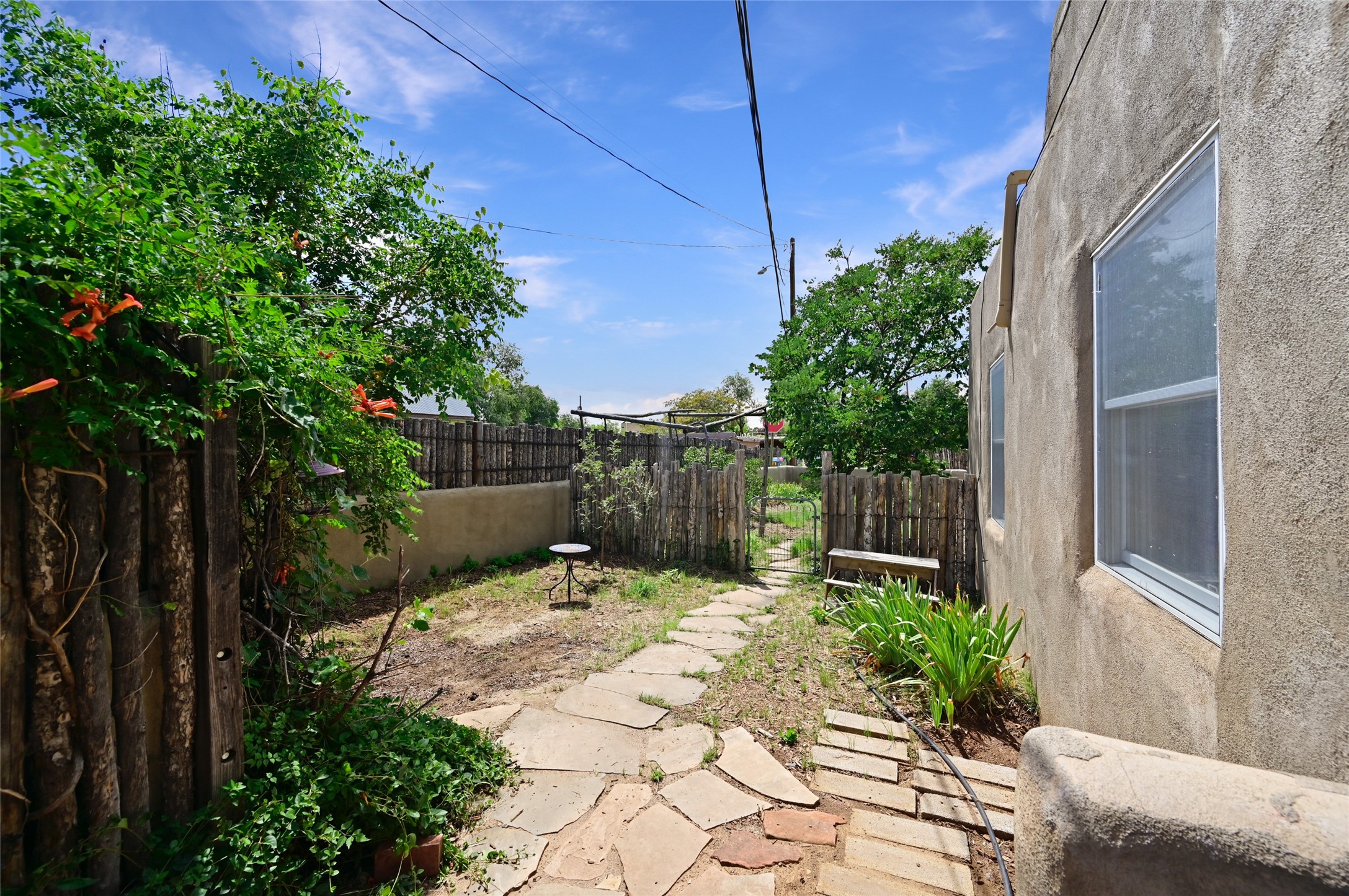 Charming 2 bed/2.5 bath + bonus room/office single level adobe home on corner lot w/thoughtful modern upgrades in centrally located neighborhood. Walk to coffee shops, restaurants, parks, and ride the Rail Trail to the farmers market, concerts, and events in the Railyard District and historic Santa Fe Plaza just minutes away. Versatile ~1400sf layout w/bright South facing living room & eat-in kitchen w/abundant cabinet space, designer AGA oven, & new stainless-steel appliances. Classic Santa Fe details throughout with hardwood floors, vigas, niches, Talavera tile, and plaster walls paired with recent updates such as a brand new renovated half bath in the bonus room/office. Enjoy customizable temperature control with zoned heating/cooling with mini splits and gas fireplaces & heaters. Ample outdoor living and entertaining space with large walled front and back yards with mature apricot trees. Don't miss your chance to own this cozy adobe home in the heart of Santa Fe!