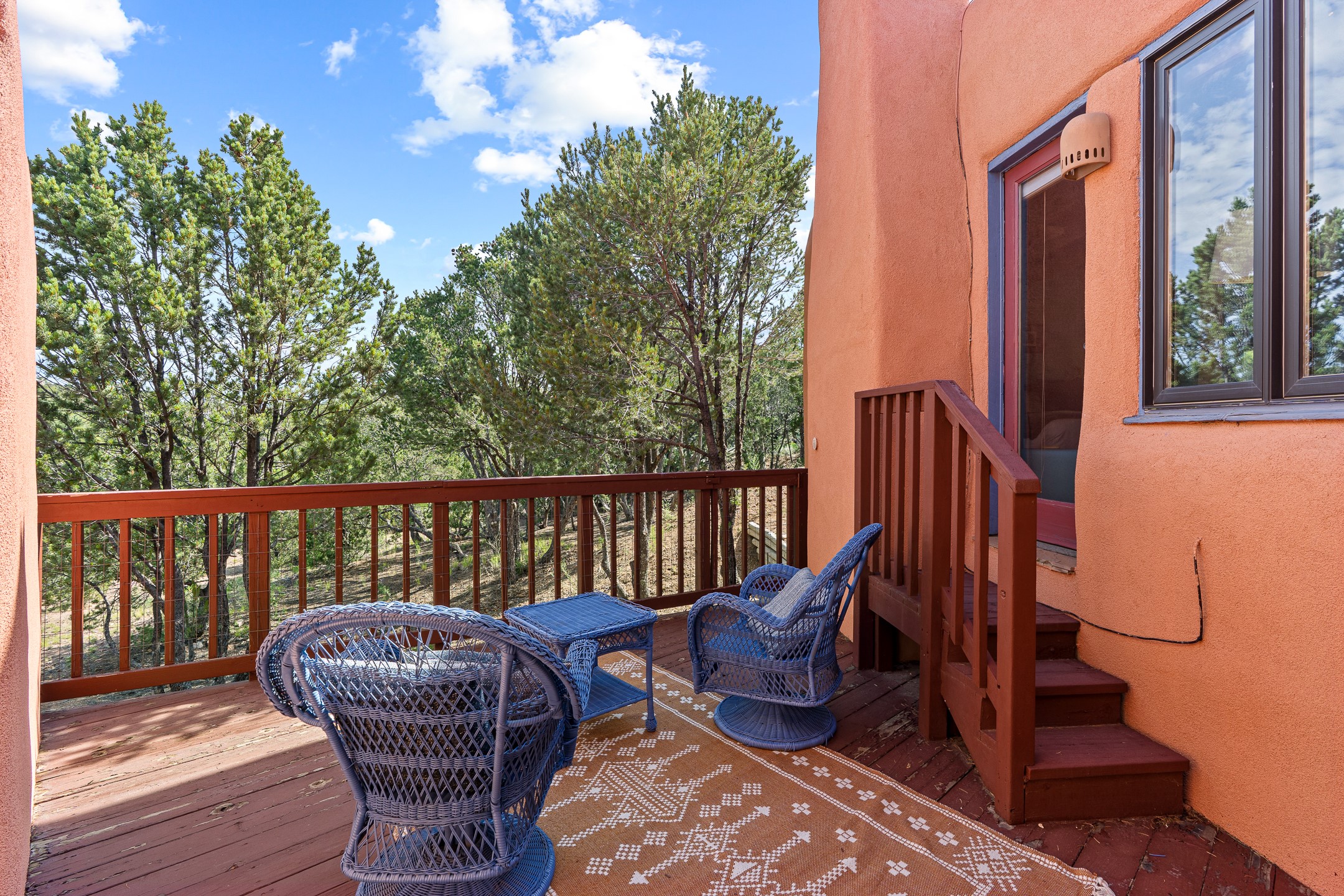 A truly rare opportunity in the heart of Santa Fe, this 3,896 sq. ft. home on 1.2 acres offers exceptional flexibility and timeless Southwestern style. Designed with versatility in mind, the property can live as one four-bedroom residence or as two fully independent 2-bedroom, 2-bath homes. Whether you're seeking a multi-generational retreat, a live/rent investment, or the ease of a duplex, the options are abundant. Vigas, Saltillo tile, and effortless indoor-outdoor living bring warmth and authenticity throughout. Though distinct in character, both living spaces reflect the region's soulful charm. Privately sited with a 2-car garage and minutes from the Plaza, Canyon Road, and the Railyard District, this is a rare chance to live, share, or invest in one extraordinary property.