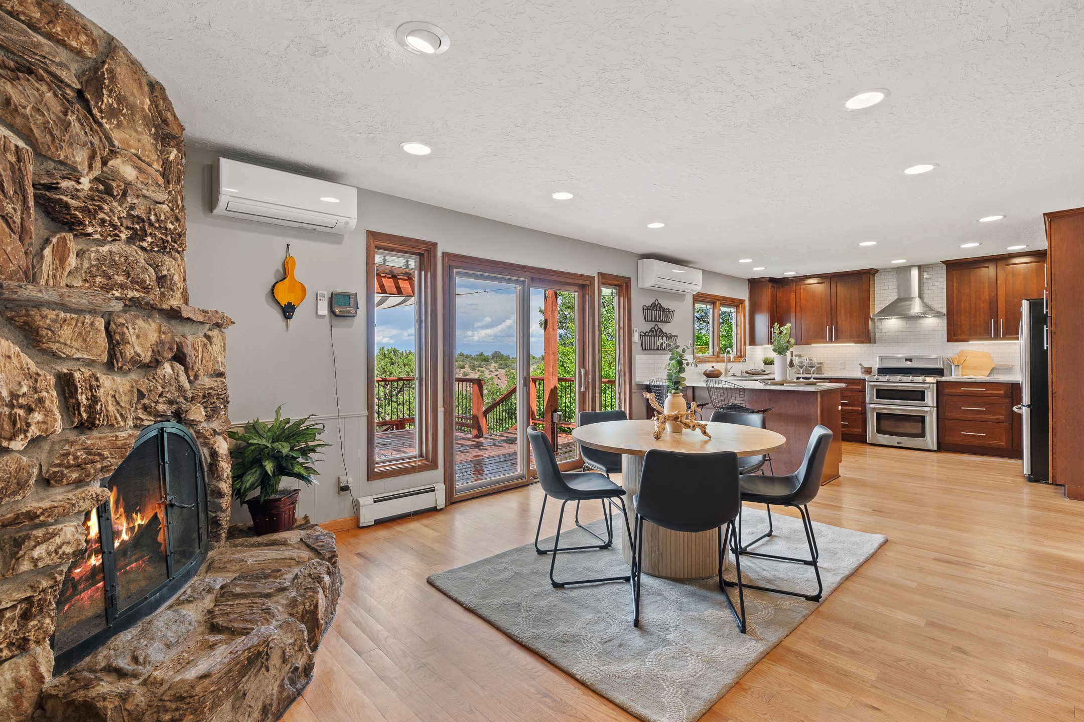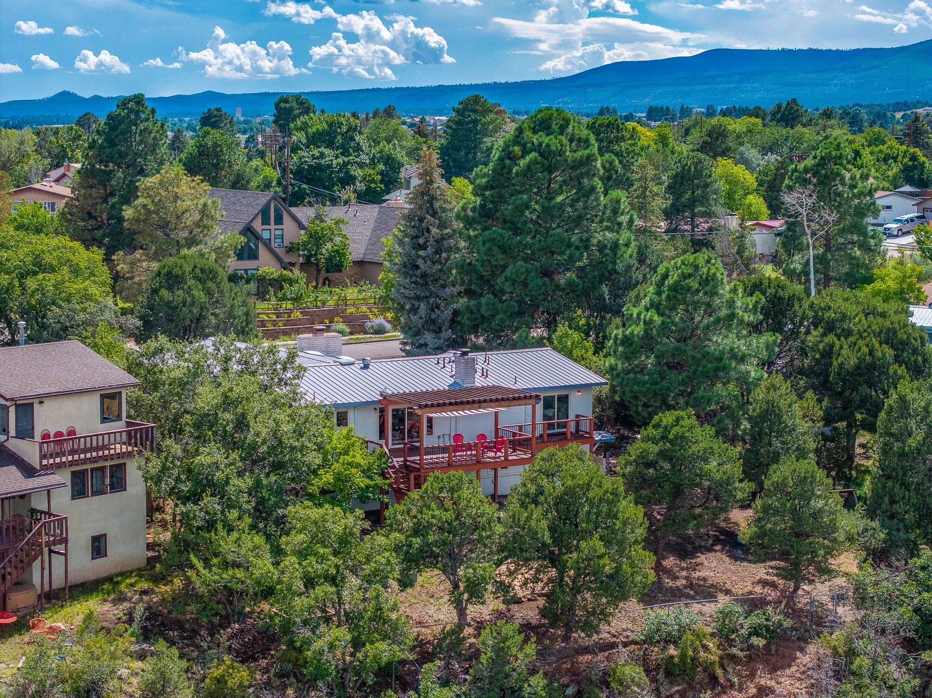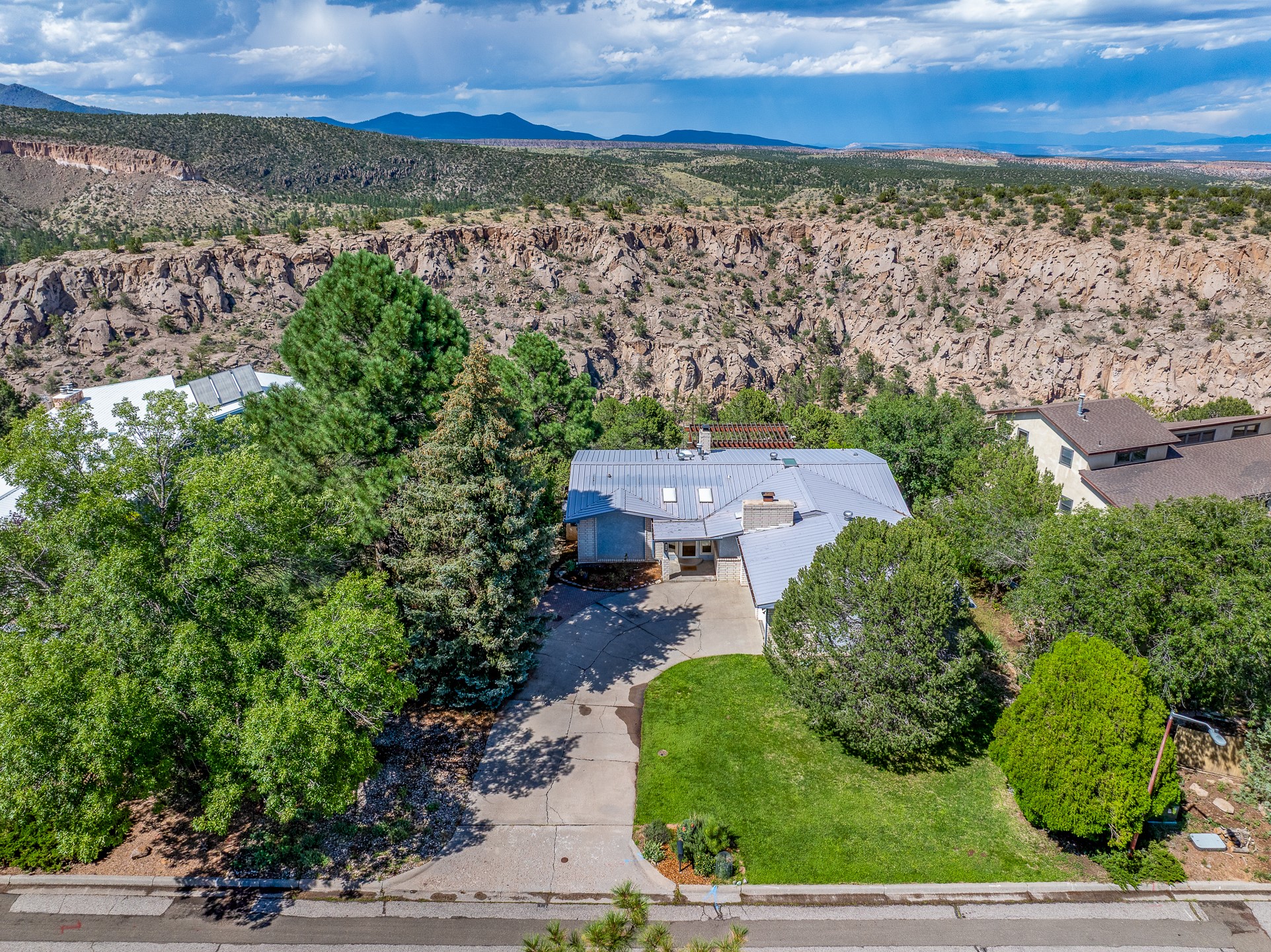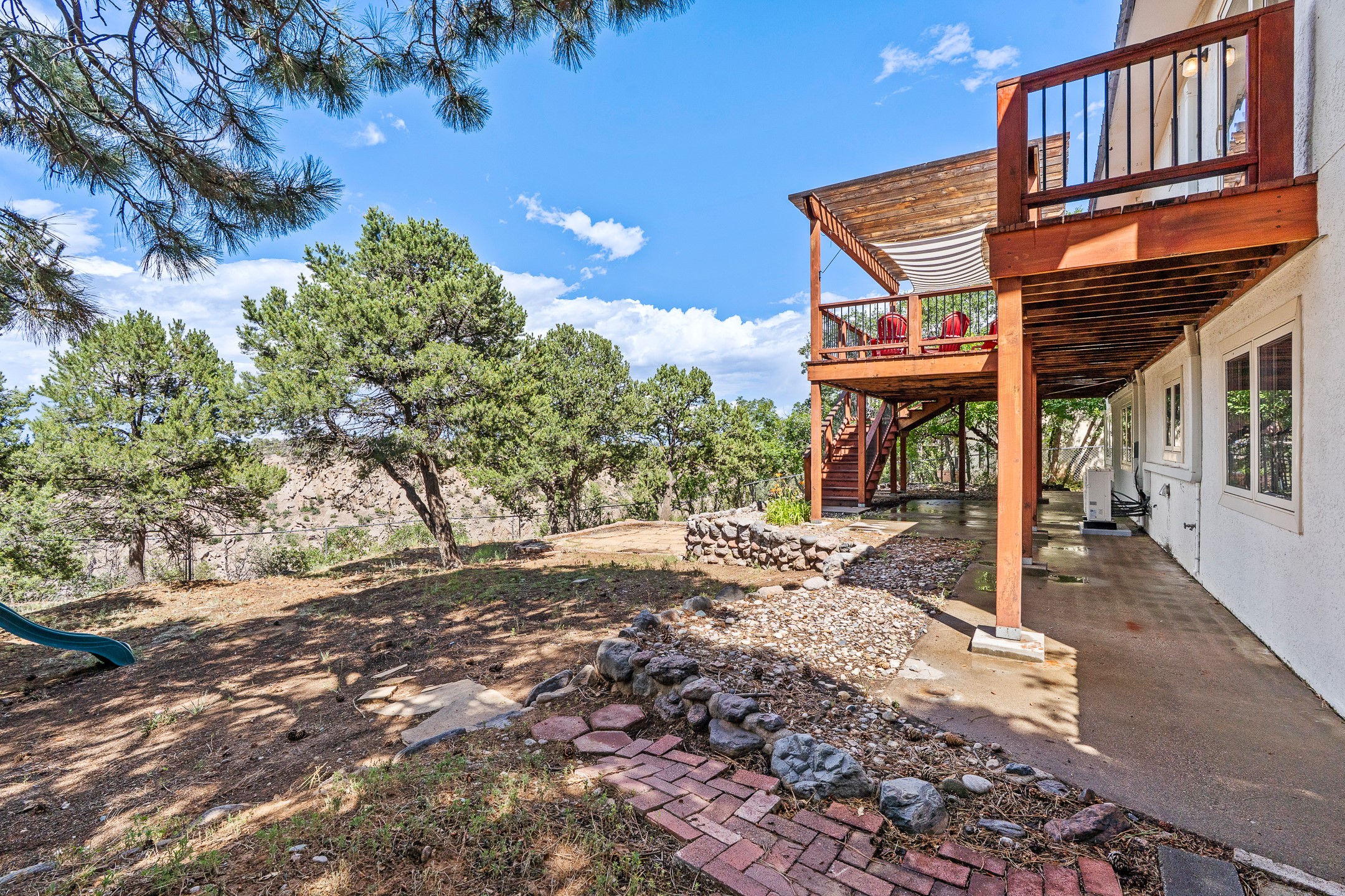 Updated Barranca Mesa Home on the Canyon, Deck with Stunning Views, 5+ Bedrooms, 3000+ Sq Ft, Mini-Split Cooling, Updated Kitchen, Primary Suite, Two-Car Garage, Landscaping, and More! Welcome to 490 Barranca Mesa! This updated Barranca Mesa property checks all the boxes. Upon arrival, you'll immediately notice the great landscaping, two-car garage, and overall great curb appeal. After walking through the front door, you'll be greeted by hardwood floors and skylights, providing you with a high-end living experience.The main floor provides you with the opportunity for single-level living, as it includes the primary suite, kitchen, dining room, living room, home office, a guest bedroom, and a guest bathroom.The updated kitchen is the heart of the home, and it features stainless steel appliances, gas cooking, granite countertops, a white subway tile backsplash, a peninsula with barstool seating, generous cabinets with updated bar-style pulls, and a mini-split to keep you comfortable while cooking up a summertime meal. The kitchen flows into the dining room, which features a stone fireplace and opens onto the deck for indoor/outdoor entertaining. The deck features great views of both the canyon and the Sangre de Cristo mountain range for stunning sunrise and sunset views. The primary suite includes its own mini-split to keep you cool while you sleep, as well as its own en suite bathroom for privacy and comfort.Downstairs, you'll find plenty of additional space, including three additional bedrooms, a full bathroom, a laundry room, two large storage rooms, and additional bonus room perfect for an art studio or game room. Outside, you'll find a fenced back yard with a play structure, a flagstone patio, and more great canyon views. This property has a lot to offer for the discerning buyer. As a bonus, the sellers plan to install a new roof prior to closing! The sellers plan to review offers on Wednesday, August 13, so schedule your showing today before this beautiful home is gone!