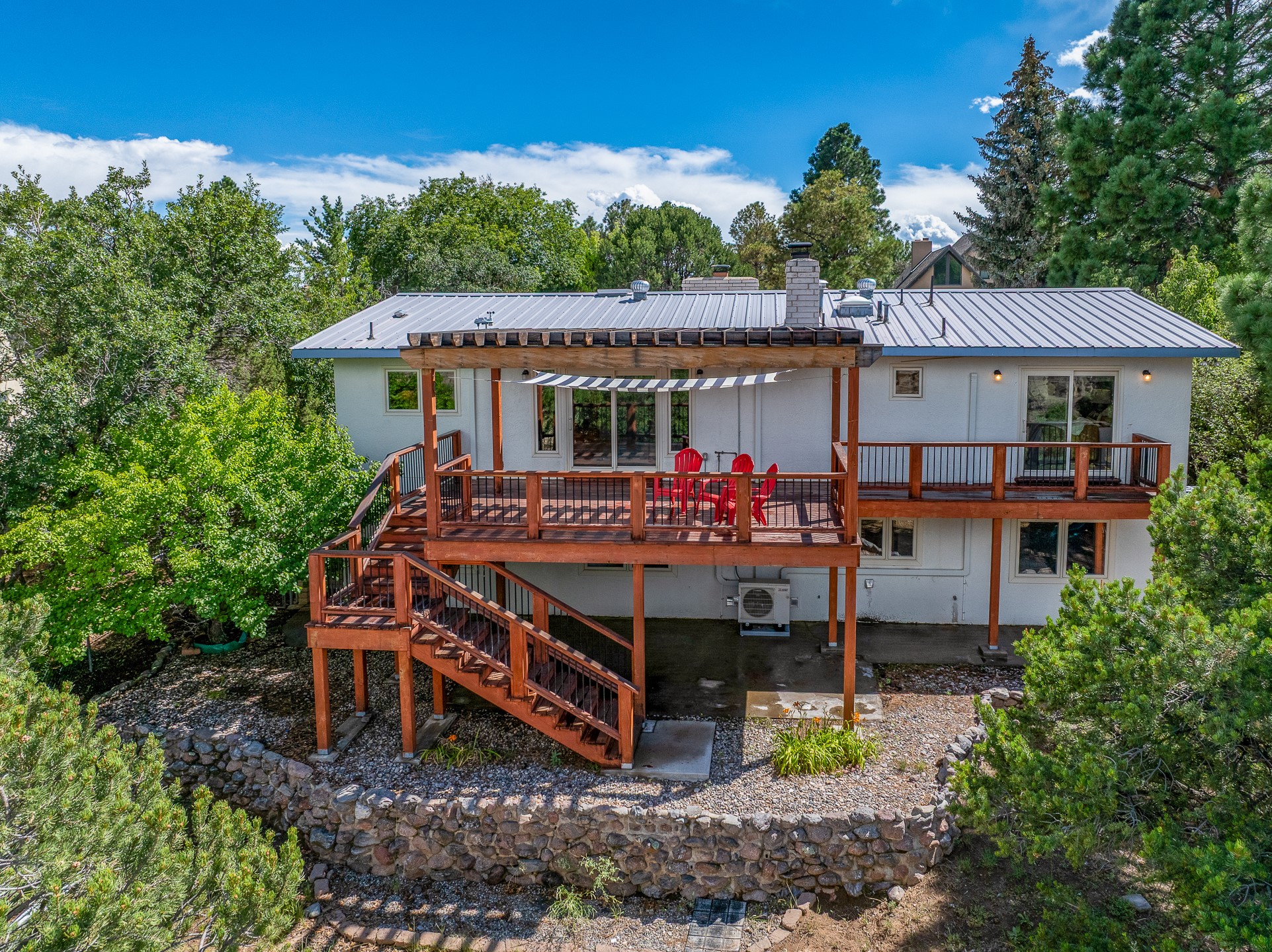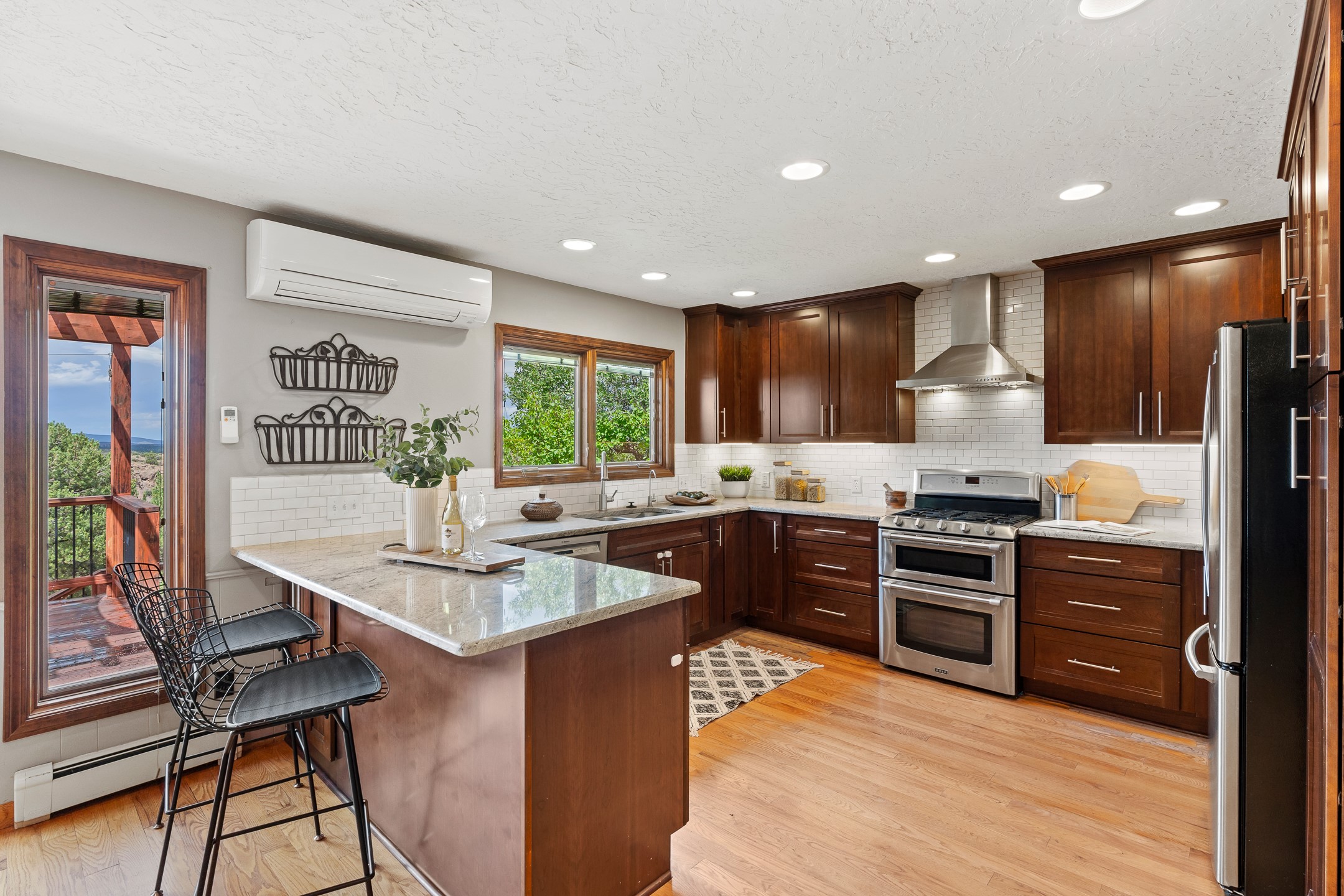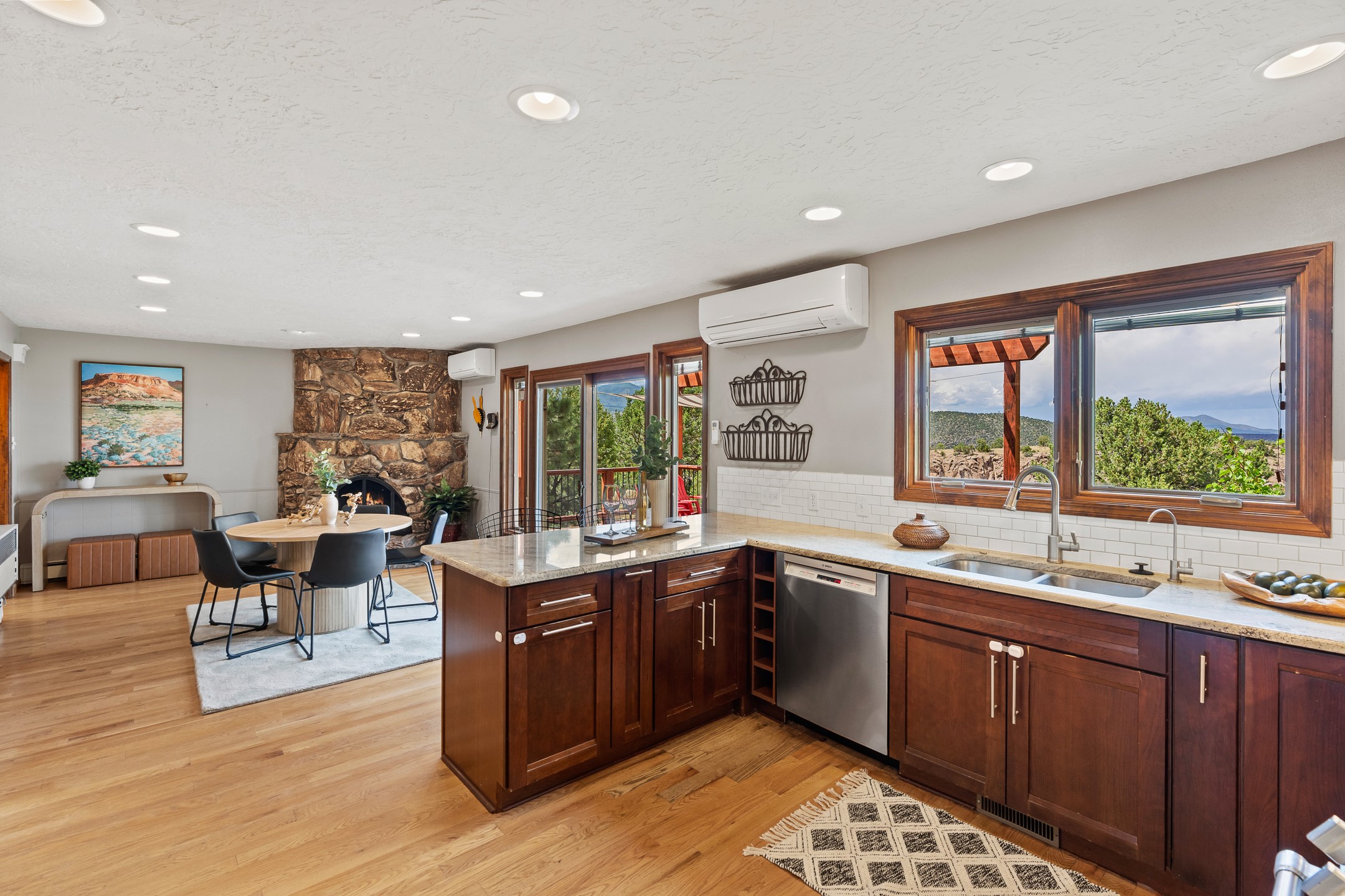 Updated Barranca Mesa Home on the Canyon, Deck with Stunning Views, 5+ Bedrooms, 3000+ Sq Ft, Mini-Split Cooling, Updated Kitchen, Primary Suite, Two-Car Garage, Landscaping, and More! Welcome to 490 Barranca Mesa! This updated Barranca Mesa property checks all the boxes. Upon arrival, you'll immediately notice the great landscaping, two-car garage, and overall great curb appeal. After walking through the front door, you'll be greeted by hardwood floors and skylights, providing you with a high-end living experience.The main floor provides you with the opportunity for single-level living, as it includes the primary suite, kitchen, dining room, living room, home office, a guest bedroom, and a guest bathroom.The updated kitchen is the heart of the home, and it features stainless steel appliances, gas cooking, granite countertops, a white subway tile backsplash, a peninsula with barstool seating, generous cabinets with updated bar-style pulls, and a mini-split to keep you comfortable while cooking up a summertime meal. The kitchen flows into the dining room, which features a stone fireplace and opens onto the deck for indoor/outdoor entertaining. The deck features great views of both the canyon and the Sangre de Cristo mountain range for stunning sunrise and sunset views. The primary suite includes its own mini-split to keep you cool while you sleep, as well as its own en suite bathroom for privacy and comfort.Downstairs, you'll find plenty of additional space, including three additional bedrooms, a full bathroom, a laundry room, two large storage rooms, and additional bonus room perfect for an art studio or game room. Outside, you'll find a fenced back yard with a play structure, a flagstone patio, and more great canyon views. This property has a lot to offer for the discerning buyer. As a bonus, the sellers plan to install a new roof prior to closing! The sellers plan to review offers on Wednesday, August 13, so schedule your showing today before this beautiful home is gone!