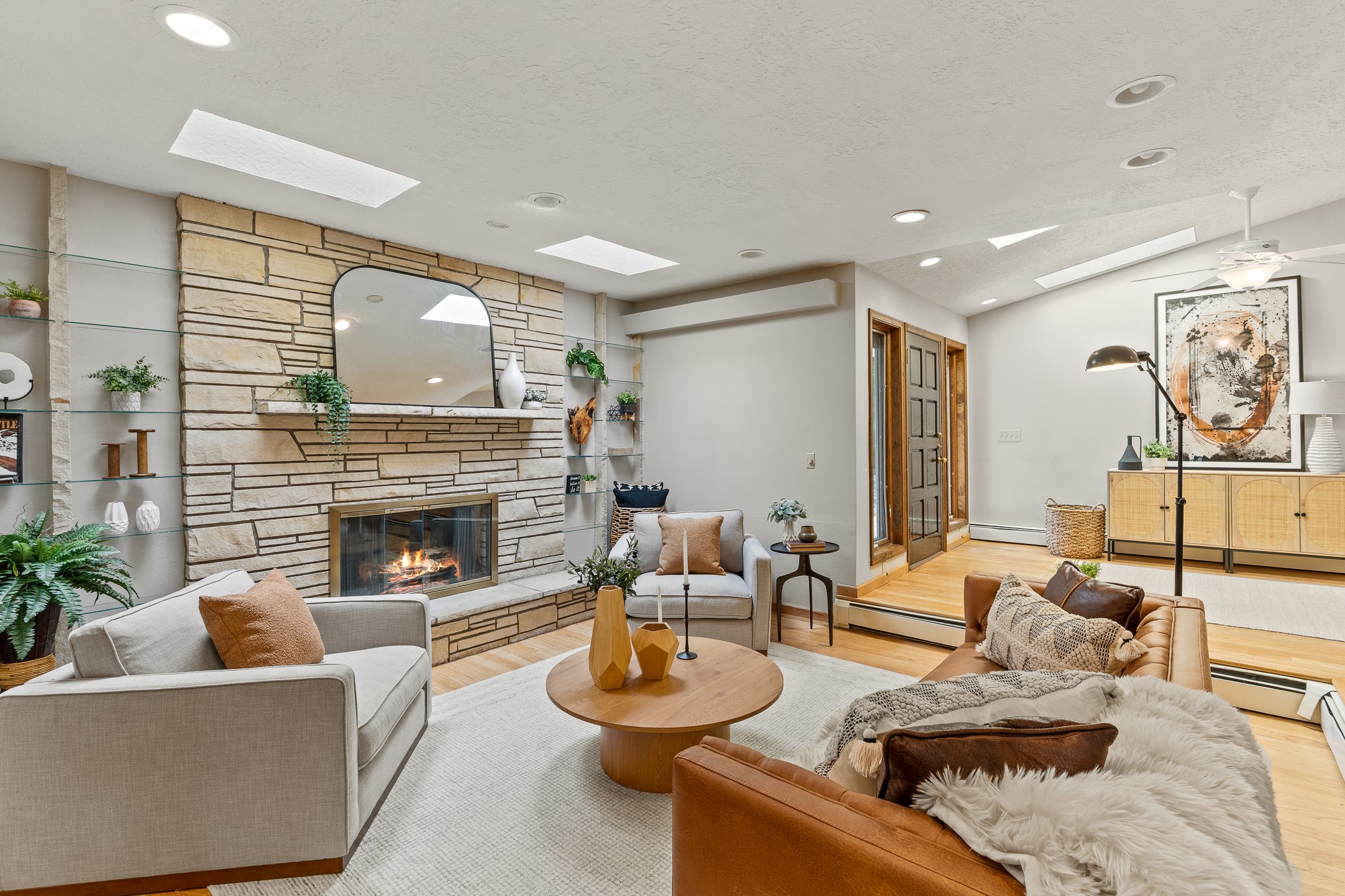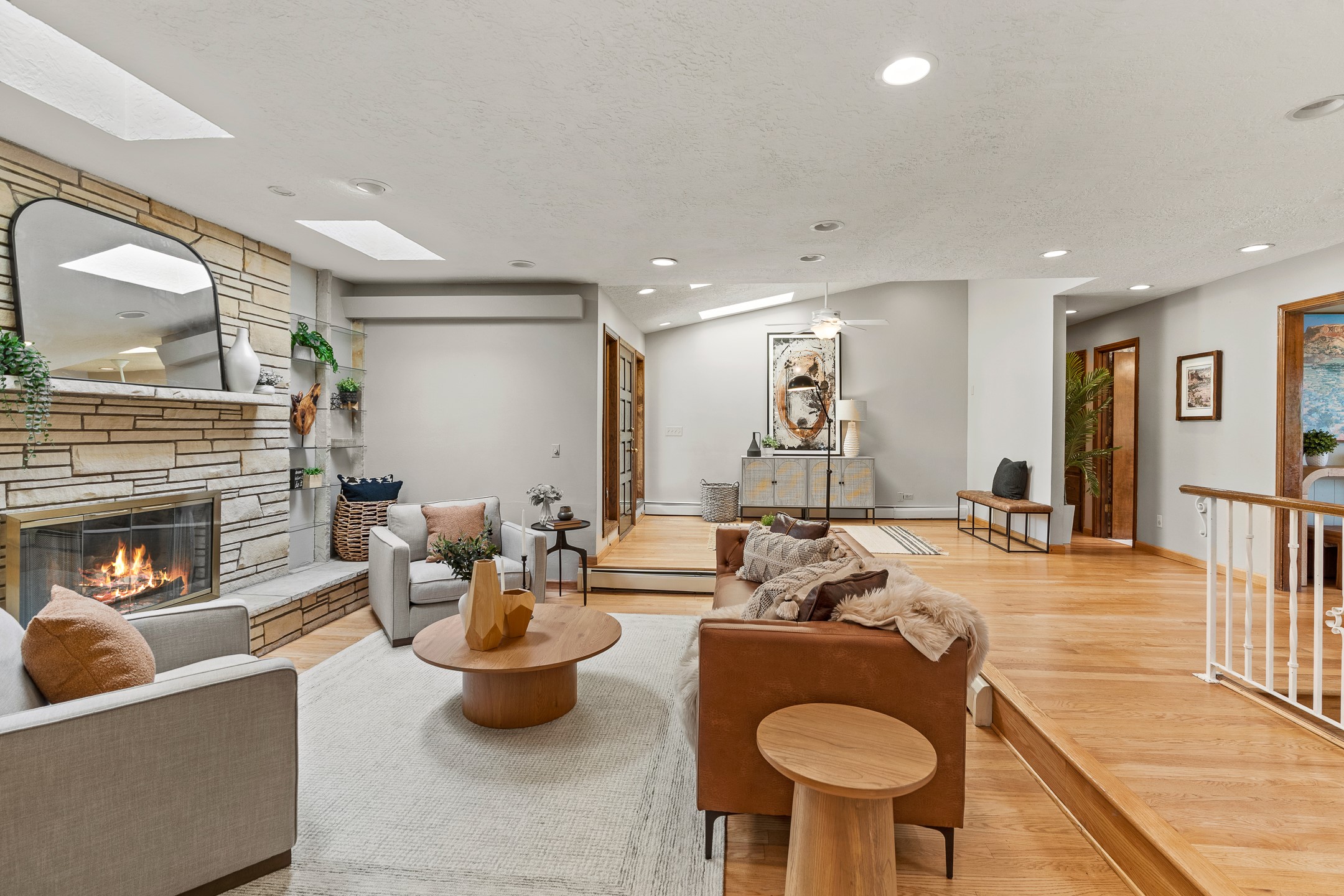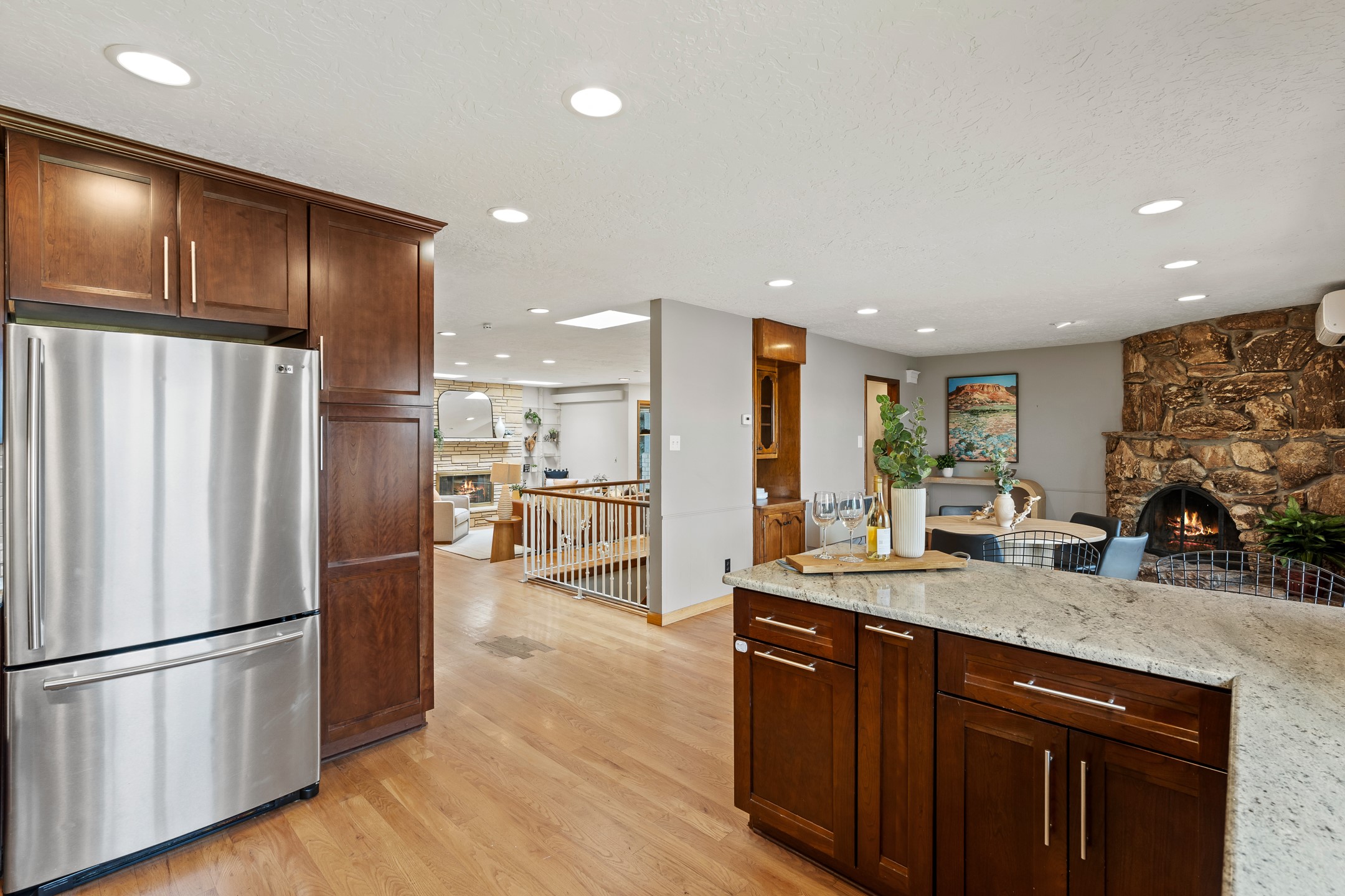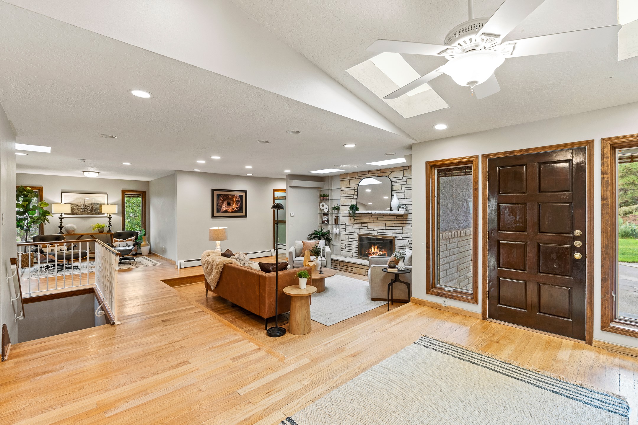 Updated Barranca Mesa Home on the Canyon, Deck with Stunning Views, 5+ Bedrooms, 3000+ Sq Ft, Mini-Split Cooling, Updated Kitchen, Primary Suite, Two-Car Garage, Landscaping, and More! Welcome to 490 Barranca Mesa! This updated Barranca Mesa property checks all the boxes. Upon arrival, you'll immediately notice the great landscaping, two-car garage, and overall great curb appeal. After walking through the front door, you'll be greeted by hardwood floors and skylights, providing you with a high-end living experience.The main floor provides you with the opportunity for single-level living, as it includes the primary suite, kitchen, dining room, living room, home office, a guest bedroom, and a guest bathroom.The updated kitchen is the heart of the home, and it features stainless steel appliances, gas cooking, granite countertops, a white subway tile backsplash, a peninsula with barstool seating, generous cabinets with updated bar-style pulls, and a mini-split to keep you comfortable while cooking up a summertime meal. The kitchen flows into the dining room, which features a stone fireplace and opens onto the deck for indoor/outdoor entertaining. The deck features great views of both the canyon and the Sangre de Cristo mountain range for stunning sunrise and sunset views. The primary suite includes its own mini-split to keep you cool while you sleep, as well as its own en suite bathroom for privacy and comfort.Downstairs, you'll find plenty of additional space, including three additional bedrooms, a full bathroom, a laundry room, two large storage rooms, and additional bonus room perfect for an art studio or game room. Outside, you'll find a fenced back yard with a play structure, a flagstone patio, and more great canyon views. This property has a lot to offer for the discerning buyer. As a bonus, the sellers plan to install a new roof prior to closing! The sellers plan to review offers on Wednesday, August 13, so schedule your showing today before this beautiful home is gone!