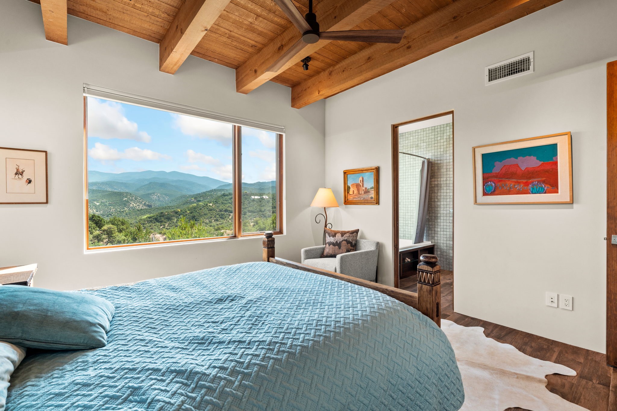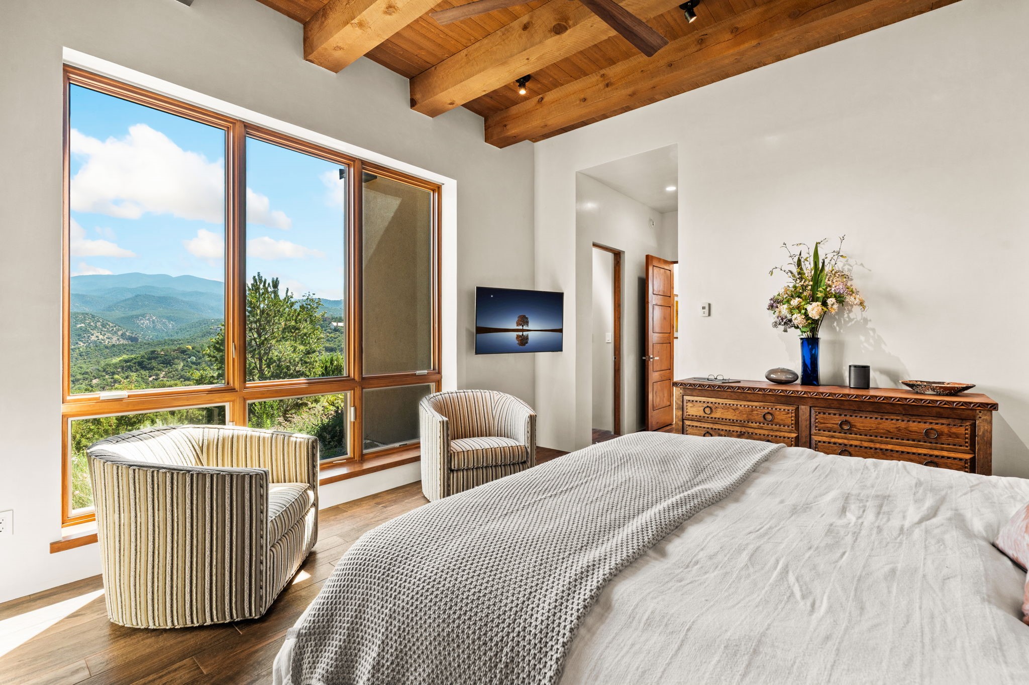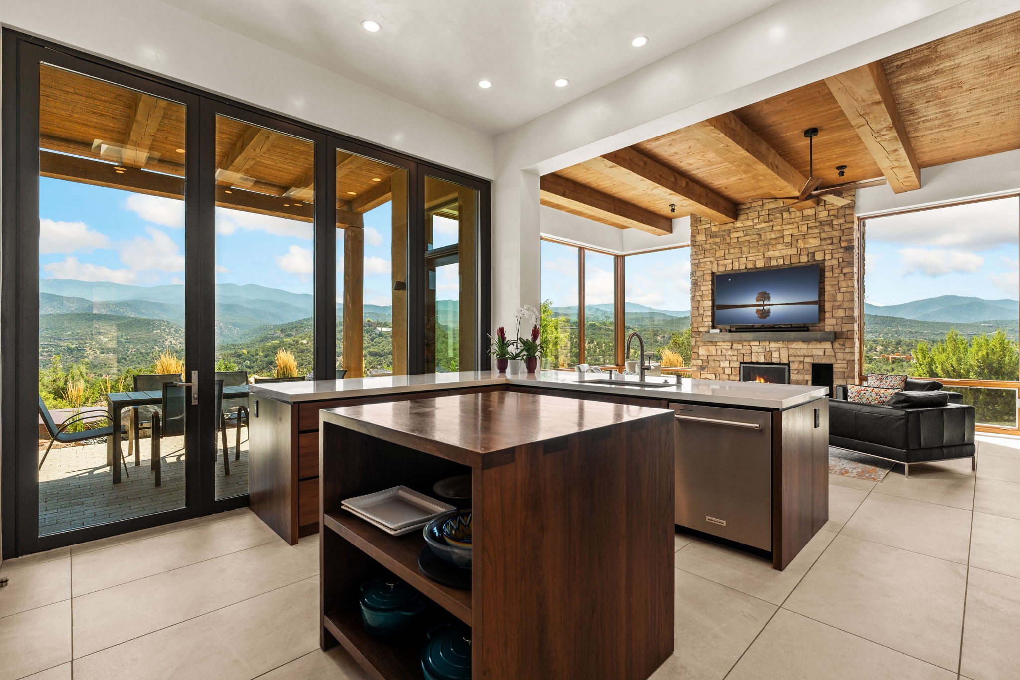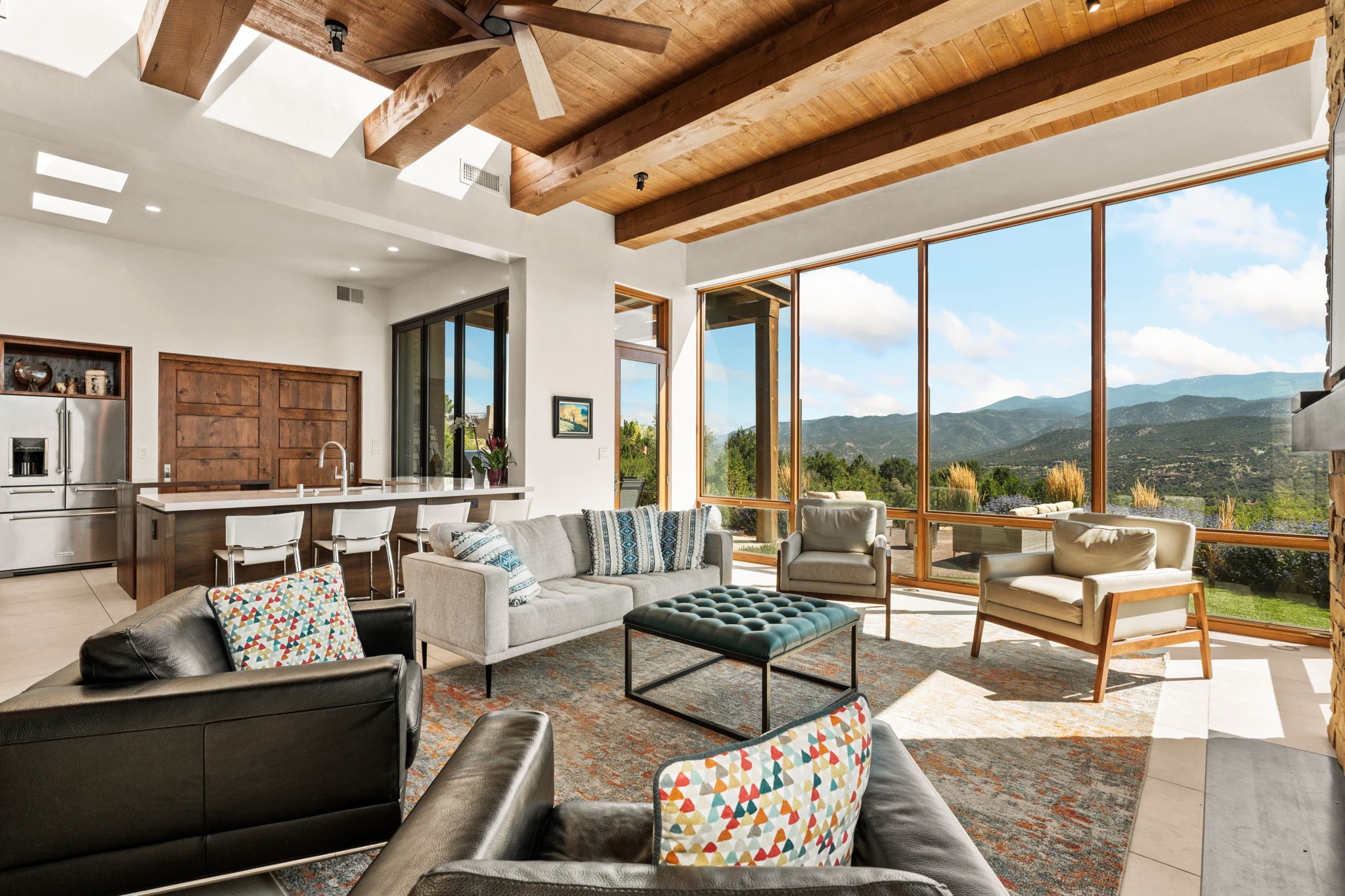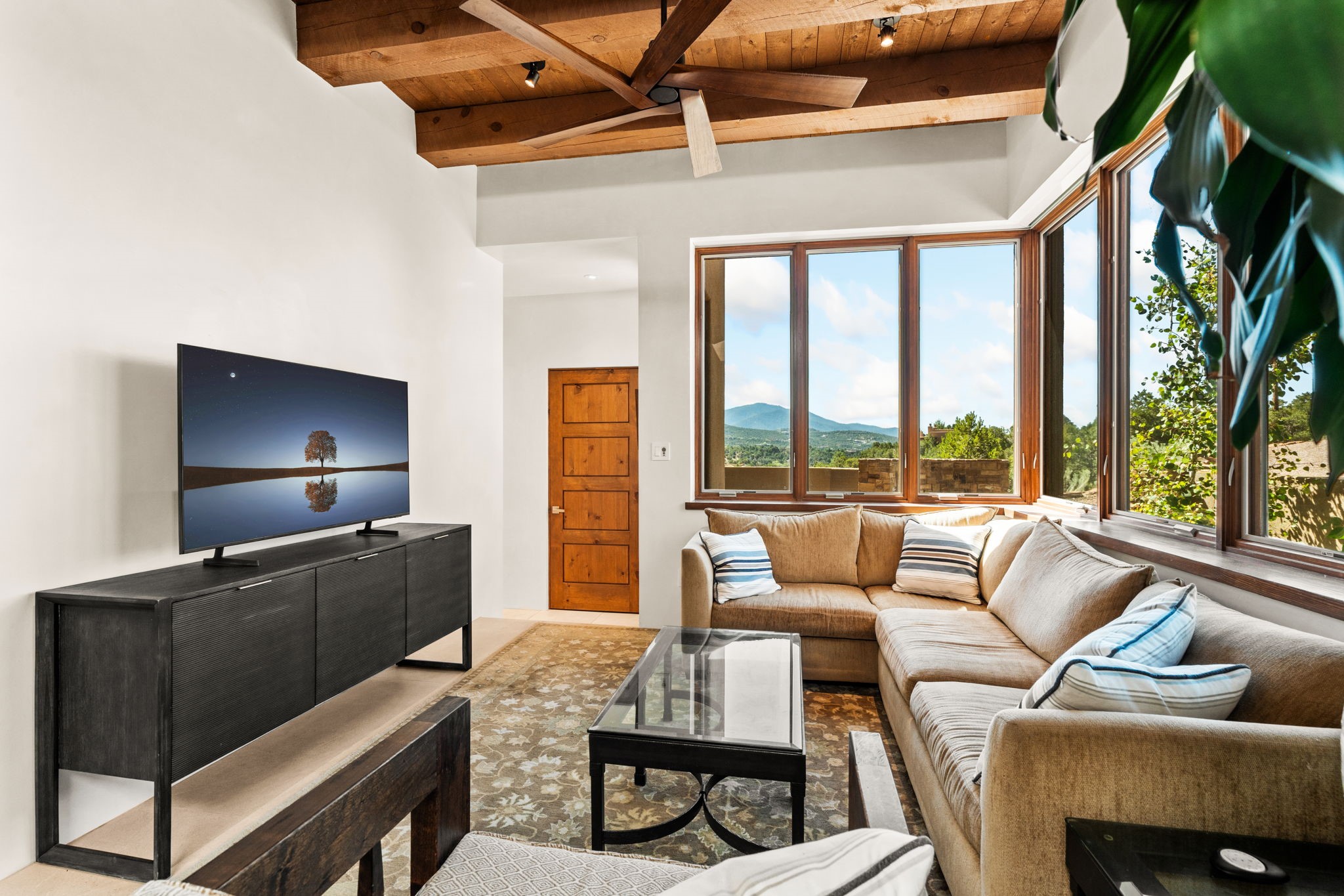 The Best Views in Santa Fe? Please come and judge for yourself! This relatively new home, designed and built by one of the owners of Tierra Concepts construction company, is a delight to live in. Owner is the Listing Broker of this property. We never tired of the changing views...watching the rainbows over the mountains, the snow plow lights at the ski basin, the deer wandering by, or the changing mountain colors! This 3 BR, 3 Bath home with a Great Room and a Den is well laid out and appointed. With many built in interior shades, the multi-opening Kitchen doors, drop down screen, and drop down wall mounted LR TV, it is easy to entertain of just cozy up and watch the grand view. The home has radiant floor heating as well as central heat and air. Hope you will love the home as much as we have!