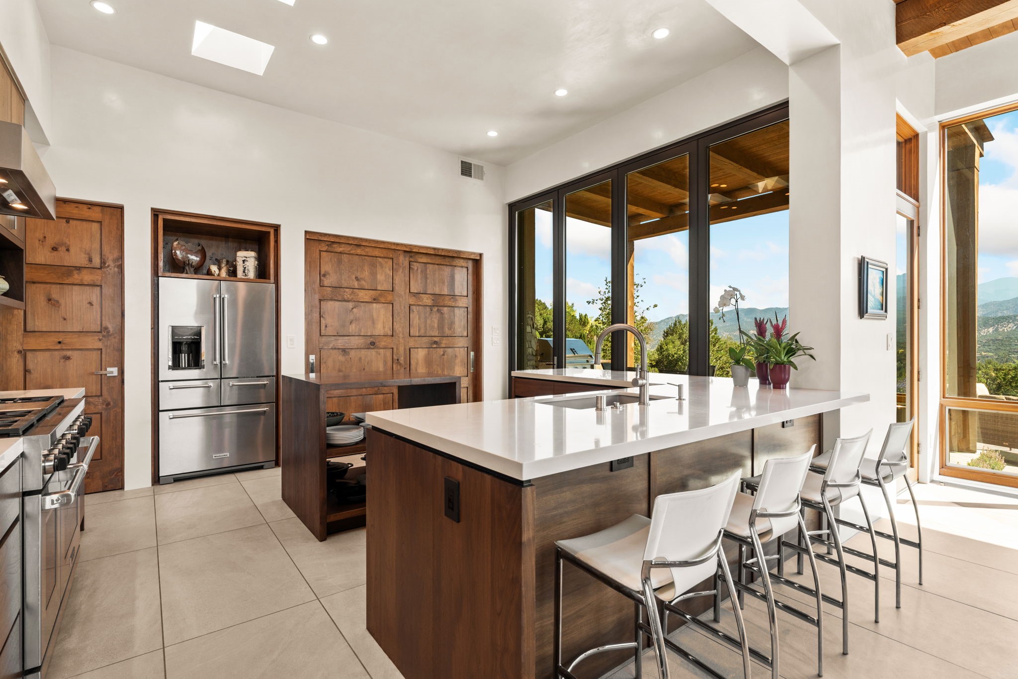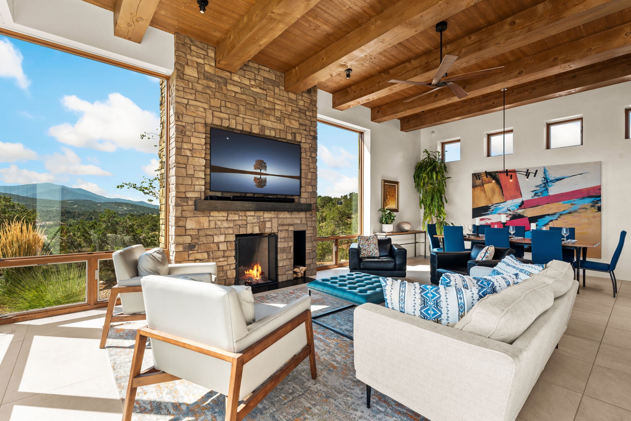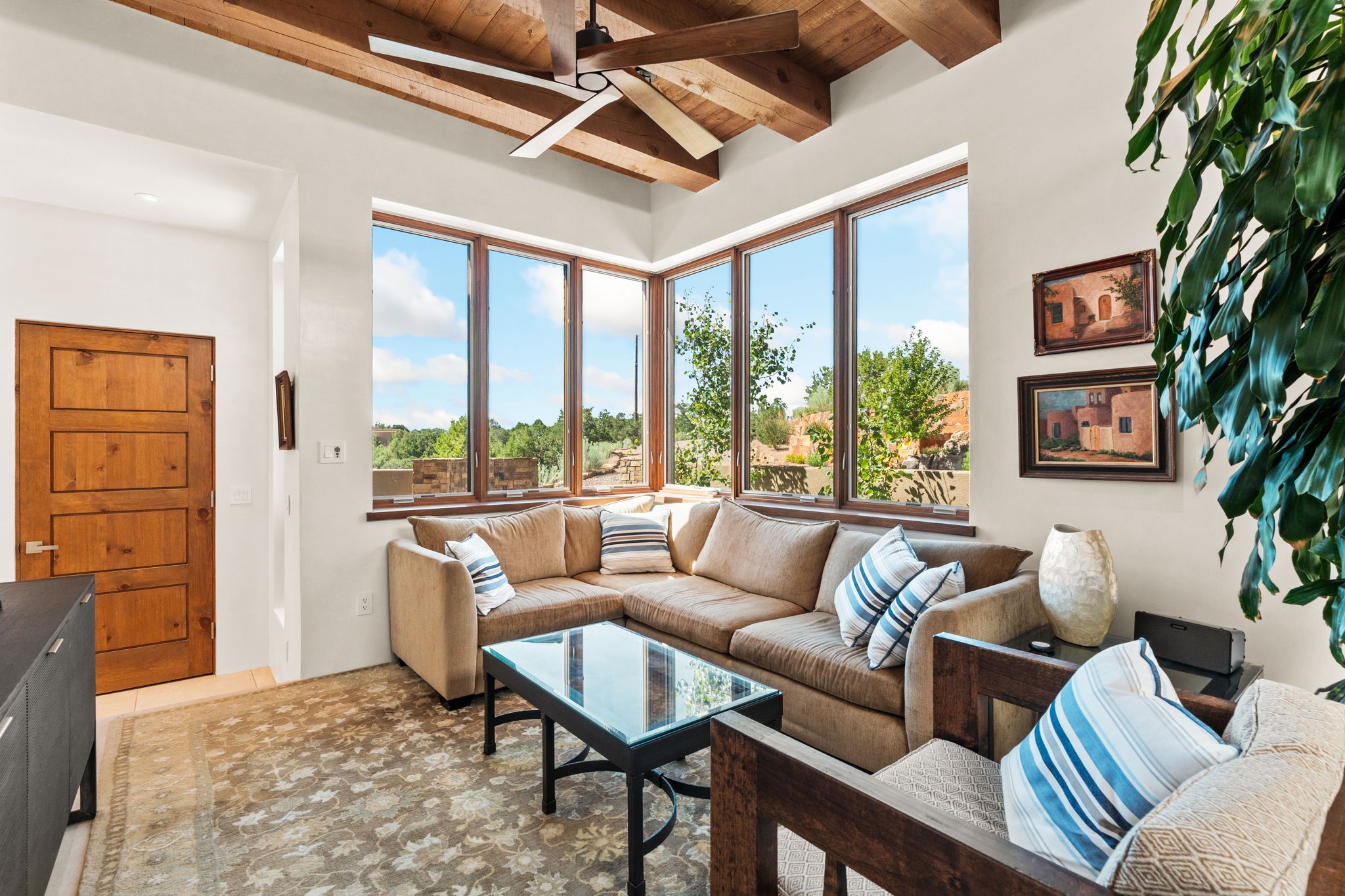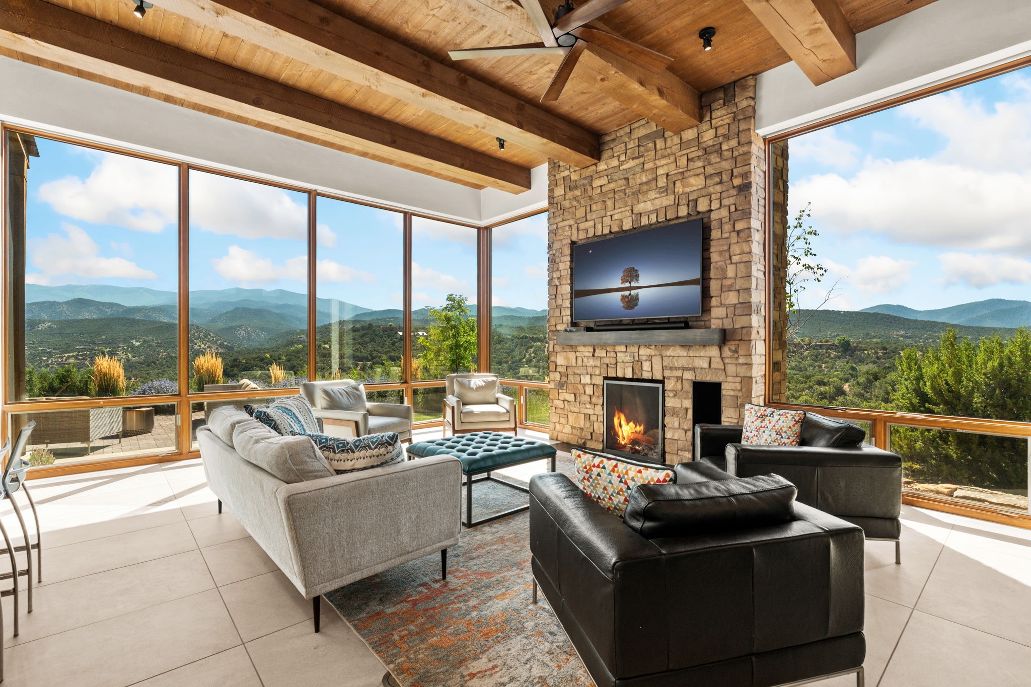 The Best Views in Santa Fe? Please come and judge for yourself! This relatively new home, designed and built by one of the owners of Tierra Concepts construction company, is a delight to live in. Owner is the Listing Broker of this property. We never tired of the changing views...watching the rainbows over the mountains, the snow plow lights at the ski basin, the deer wandering by, or the changing mountain colors! This 3 BR, 3 Bath home with a Great Room and a Den is well laid out and appointed. With many built in interior shades, the multi-opening Kitchen doors, drop down screen, and drop down wall mounted LR TV, it is easy to entertain of just cozy up and watch the grand view. The home has radiant floor heating as well as central heat and air. Hope you will love the home as much as we have!
