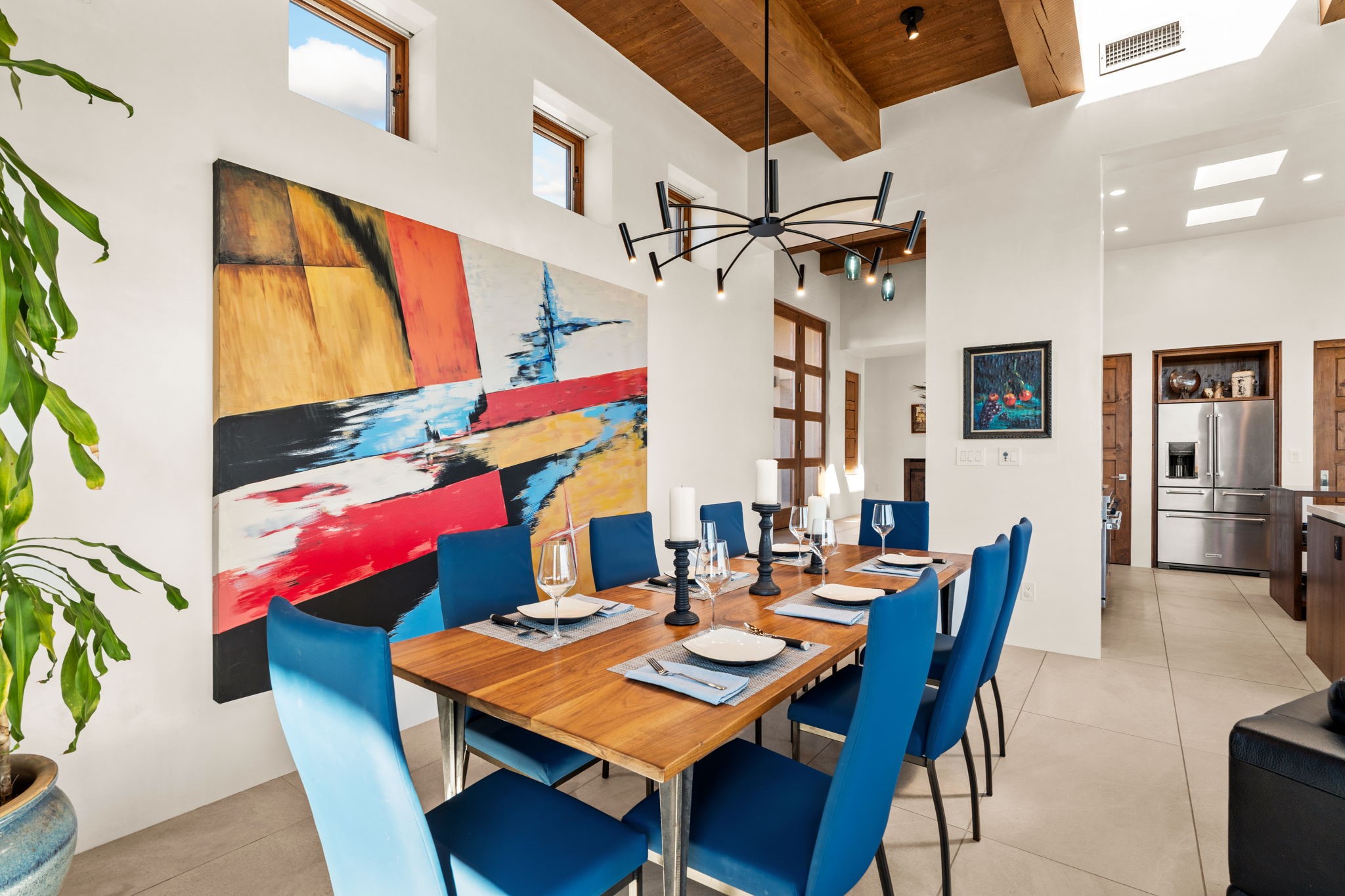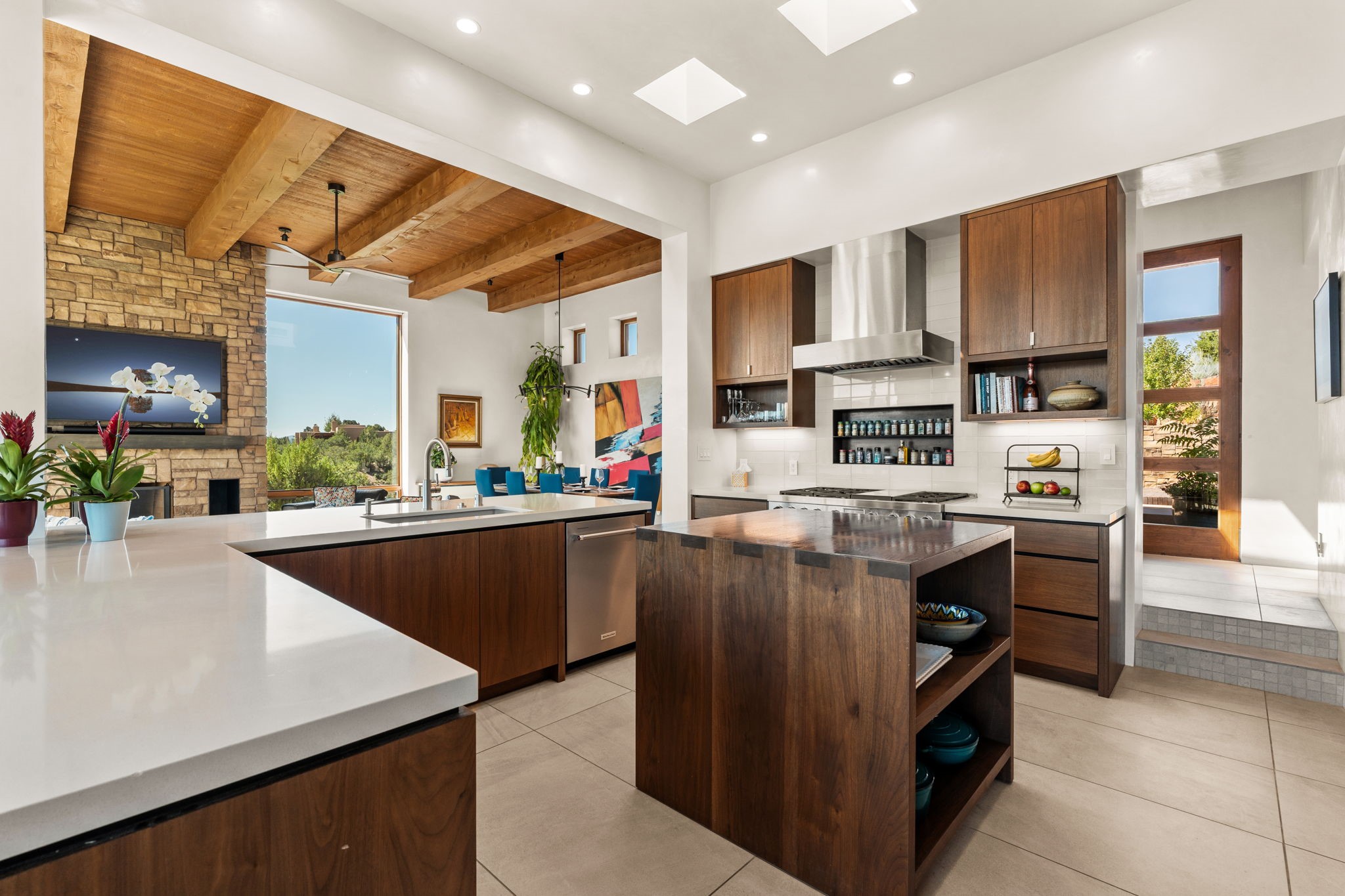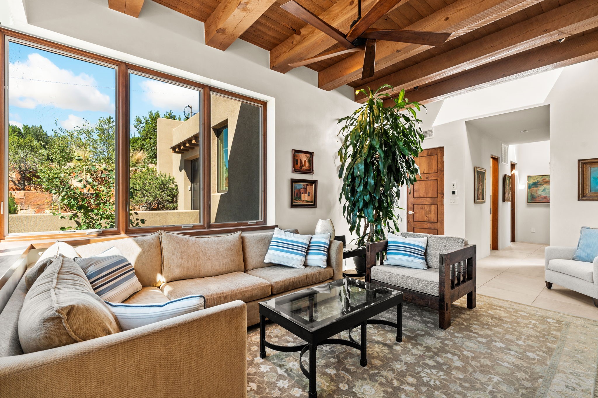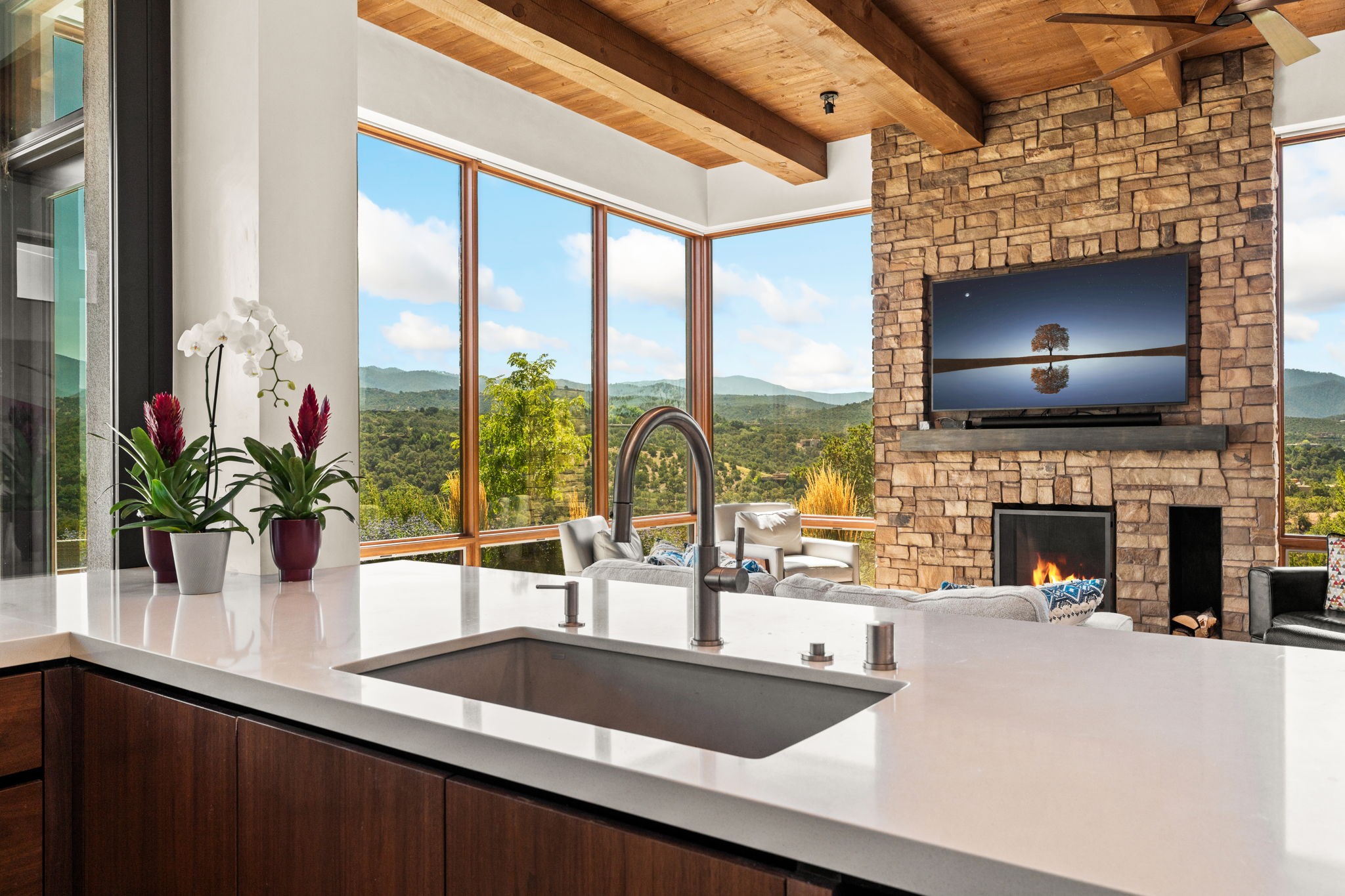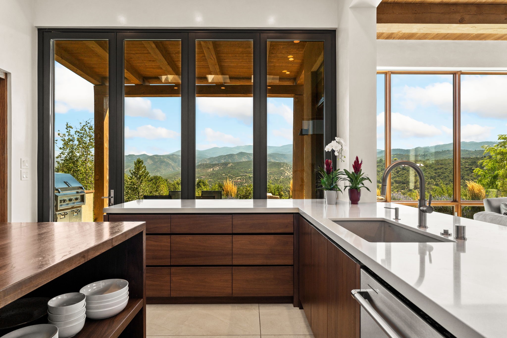 The Best Views in Santa Fe? Please come and judge for yourself! This relatively new home, designed and built by one of the owners of Tierra Concepts construction company, is a delight to live in. Owner is the Listing Broker of this property. We never tired of the changing views...watching the rainbows over the mountains, the snow plow lights at the ski basin, the deer wandering by, or the changing mountain colors! This 3 BR, 3 Bath home with a Great Room and a Den is well laid out and appointed. With many built in interior shades, the multi-opening Kitchen doors, drop down screen, and drop down wall mounted LR TV, it is easy to entertain of just cozy up and watch the grand view. The home has radiant floor heating as well as central heat and air. Hope you will love the home as much as we have!