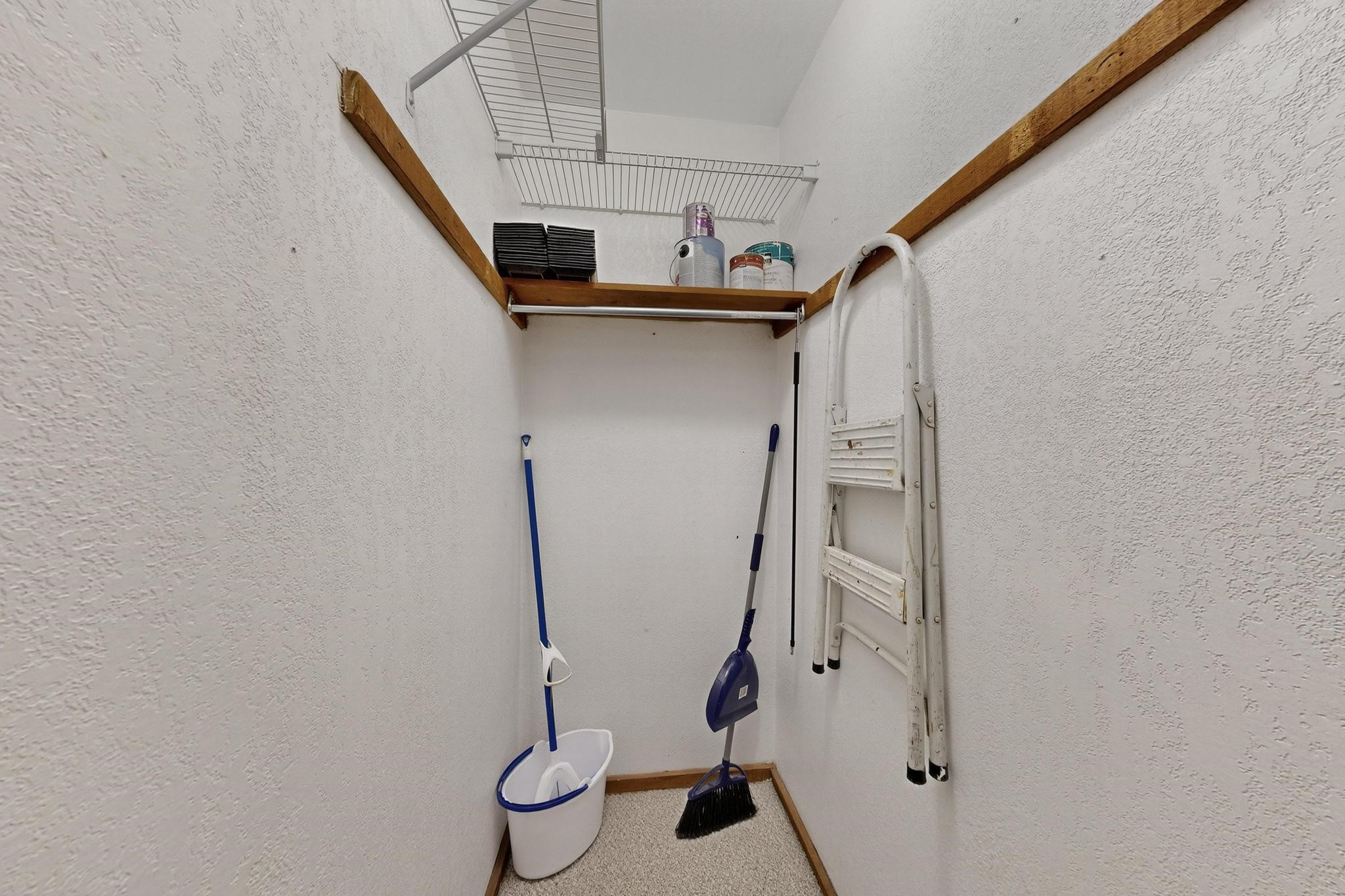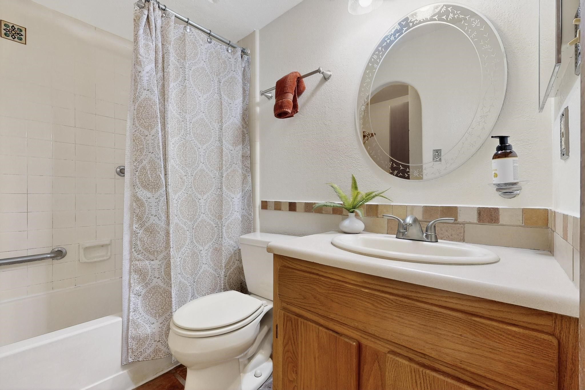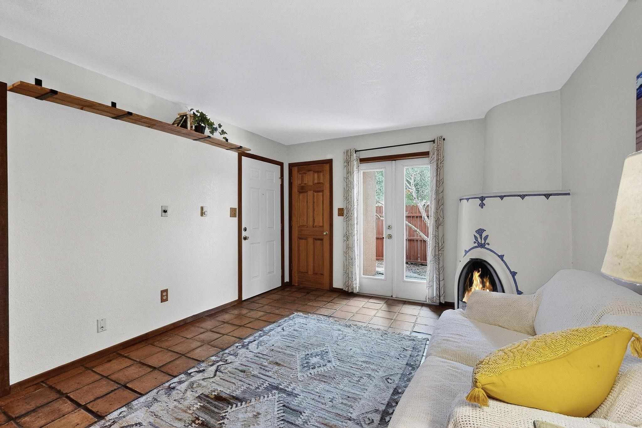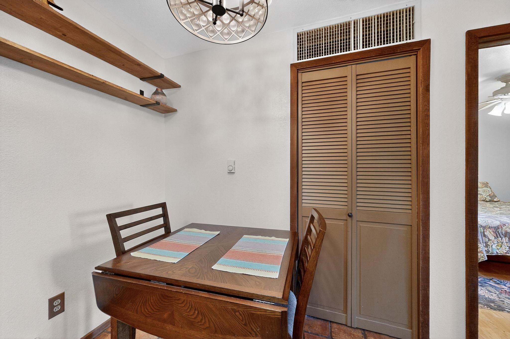 Back on the market, No fault of the Seller." Tierra de Zia ground-floor condo. The living room with a Kiva fireplace leads you into the dining area and a galley kitchen. The bedroom is en-suite with, bathroom. Tub/shower. Designated parking spot. Tierra De Zia is a gated community on 13.5 acres of native trees, plants, arroyos, fish ponds, and wooden bridges along walking trails. Seasonal swimming pool with sauna, clubhouse, outdoor grills, and a laundry facility, all in a park-like setting. Convenient to so many amenities, Restaurants, shopping, and schools.