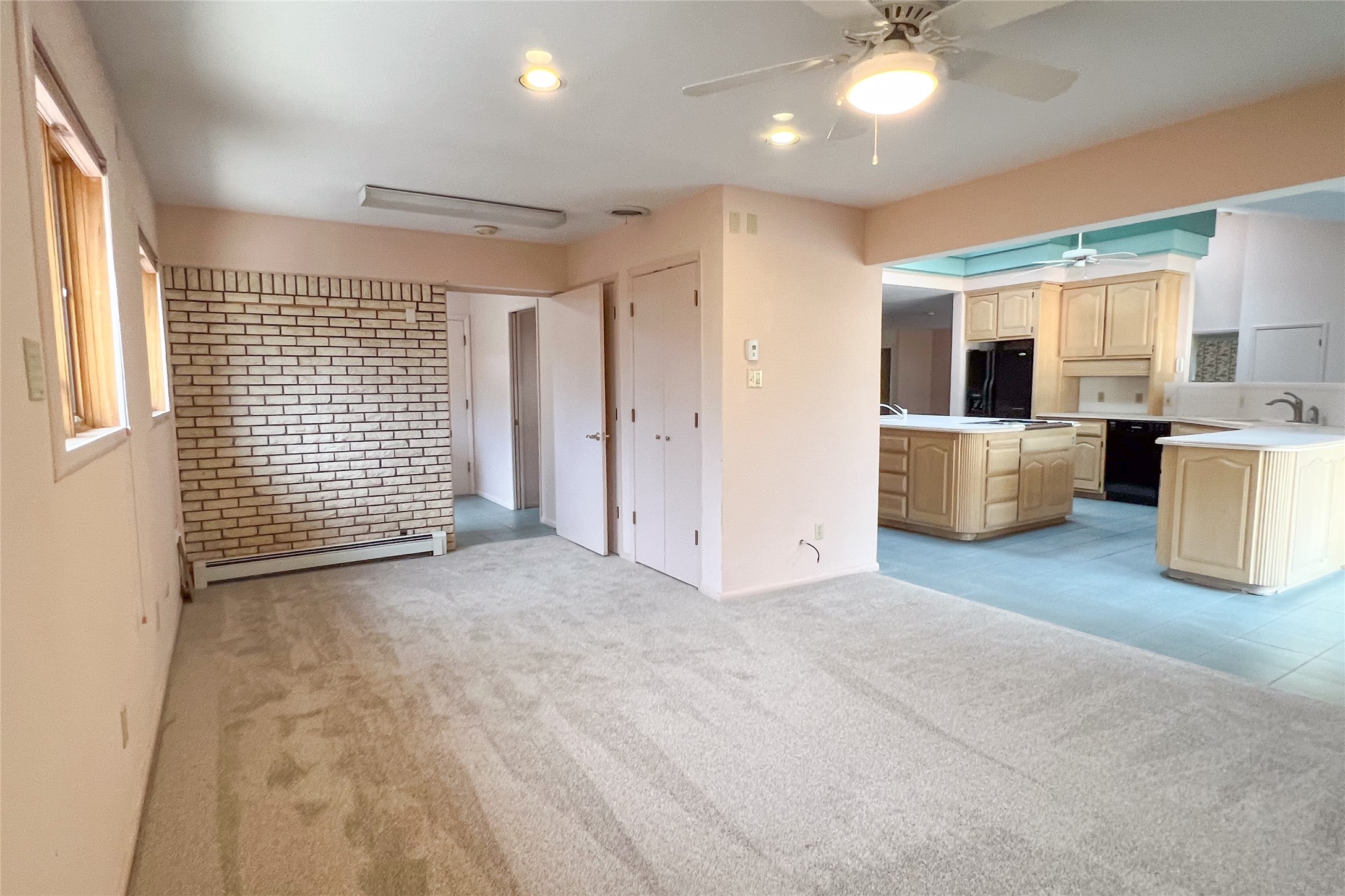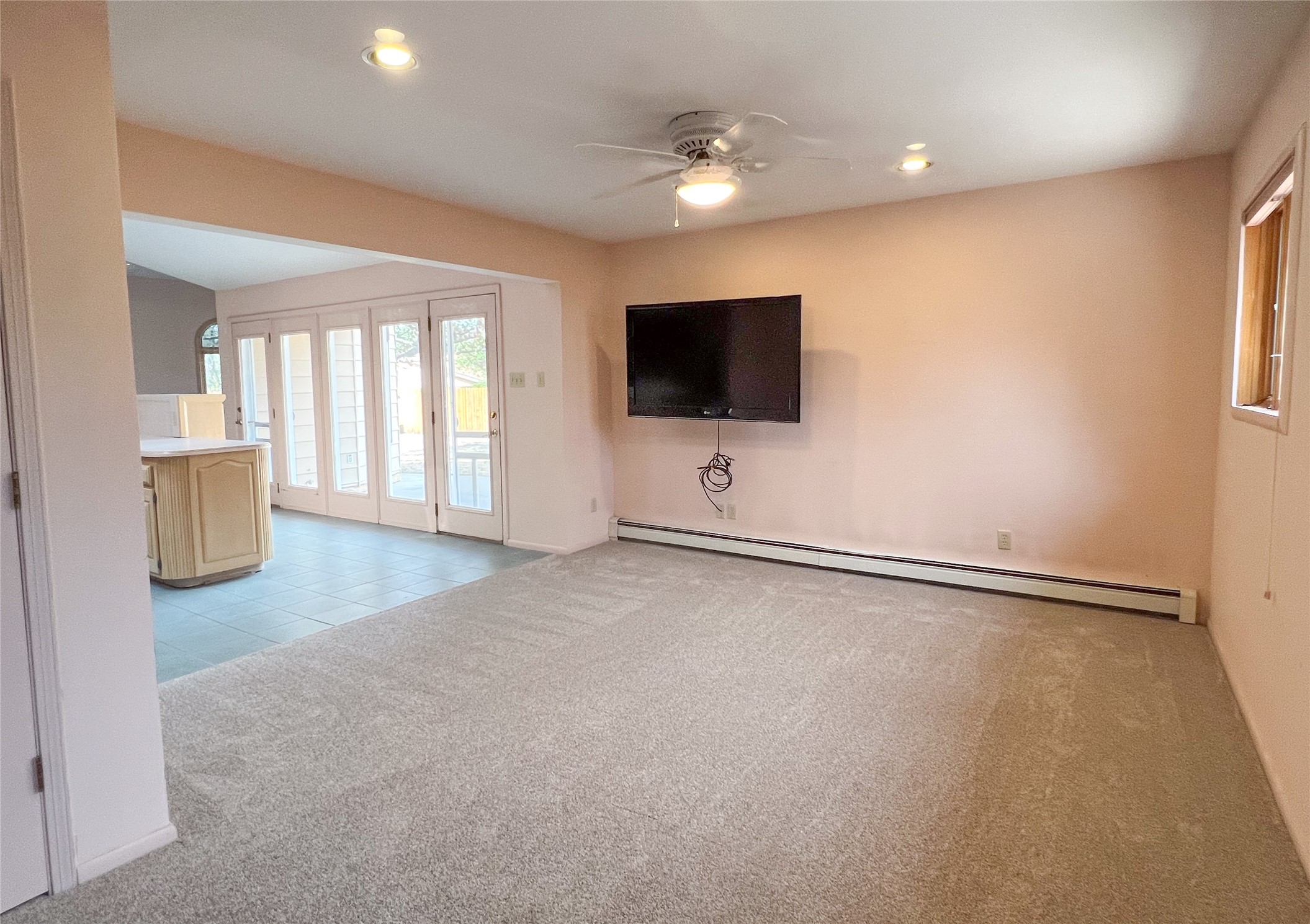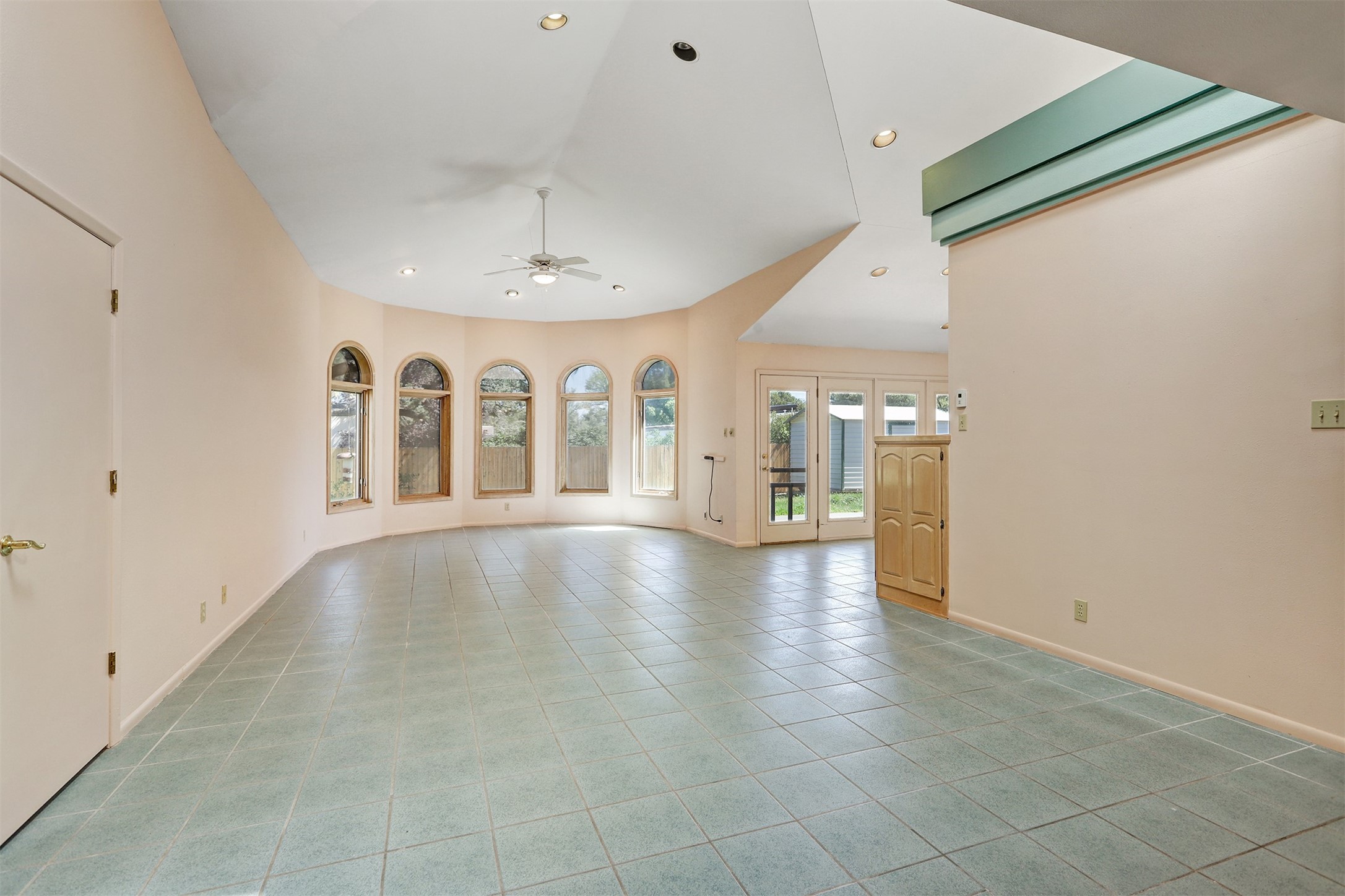 This inviting single-family offers open living space designed for comfort and functionality. The living room showcases soaring cathedral ceilings and radiant heated tile floors, creating a warm and welcoming atmosphere. At the heart of the home, the expansive kitchen features abundant storage and a central location, seamlessly connecting to the main living areas. A beautiful separate dining room provides the perfect setting for gatherings, while the cozy den/bonus room with brand-new carpet offers a more relaxed retreat. The primary suite includes an ensuite bathroom and a generous walk-in closet with built-in organizers. Two additional bedrooms and a second bathroom provide plenty of space for family or guests. The two-car garage is currently configured as a one-car garage plus a versatile rec room, with the option to convert back to a full two-car setup. Outdoors, enjoy RV parking with electrical hookup, a private backyard, and a quality Morgan shed for extra storage. This home blends thoughtful design with flexibility, offering space to live, entertain, and grow.