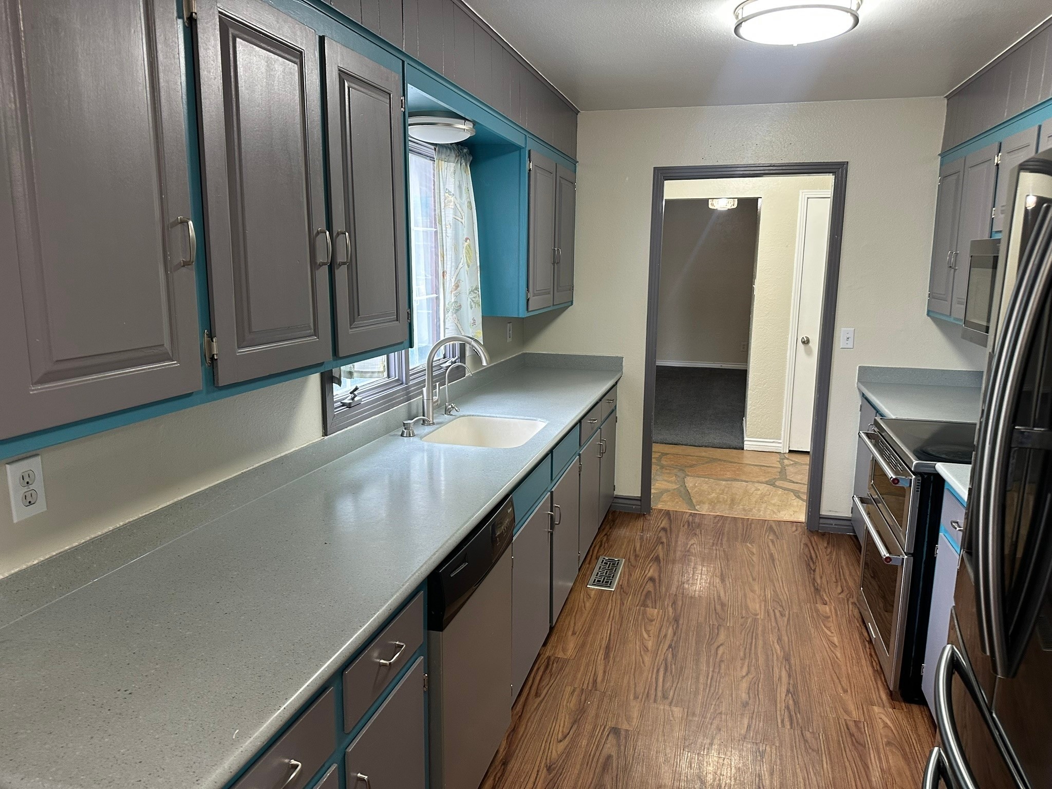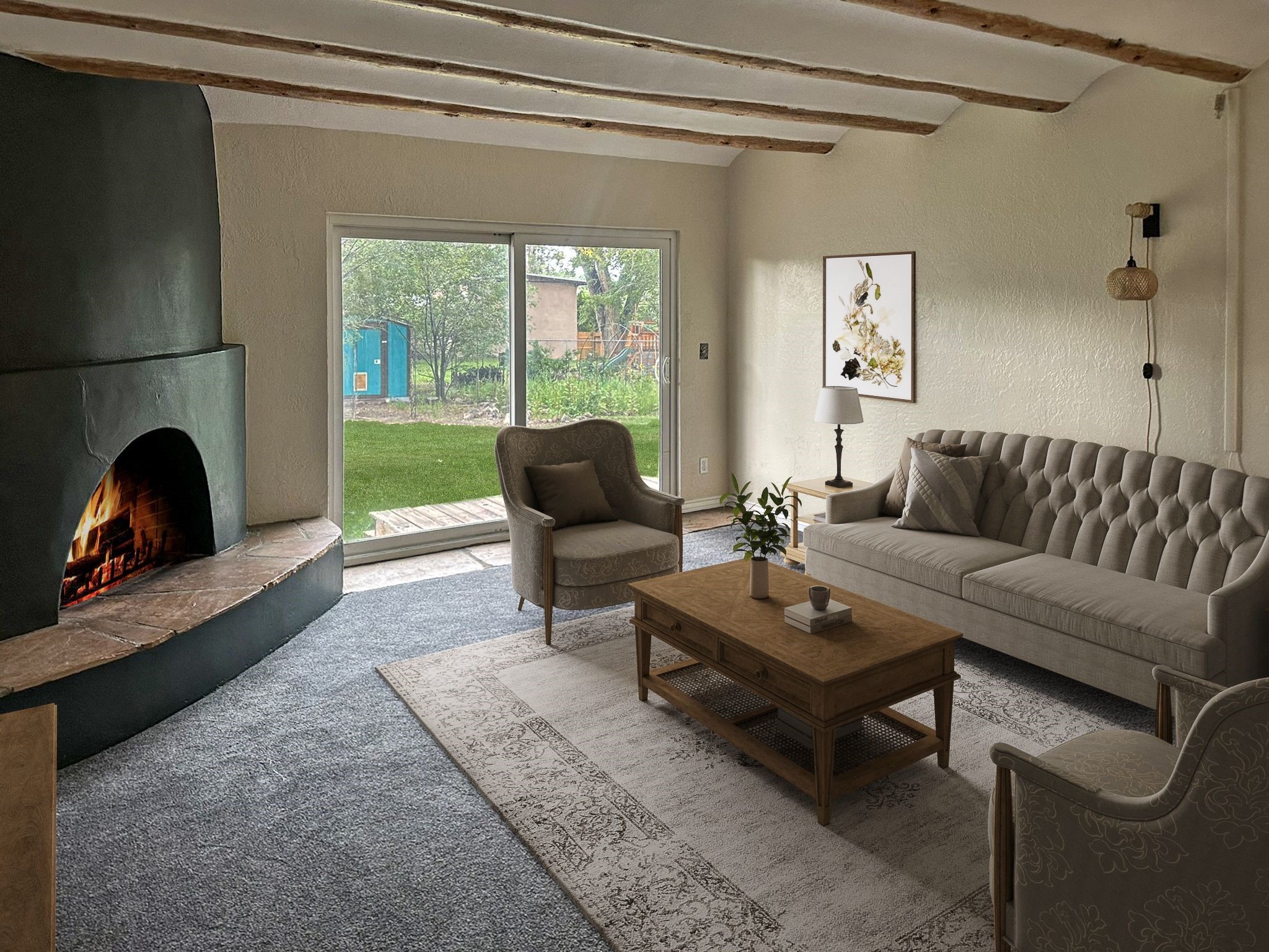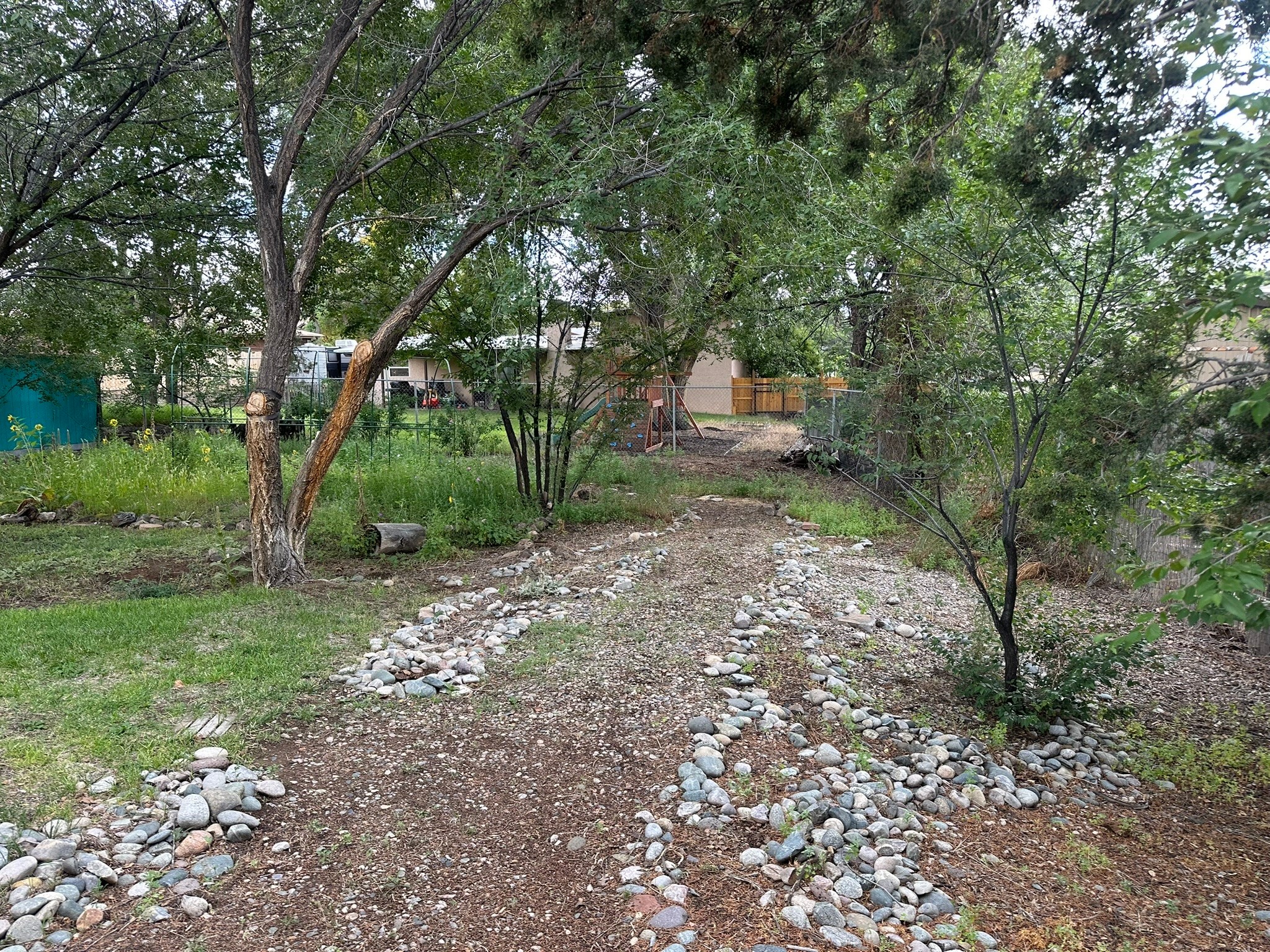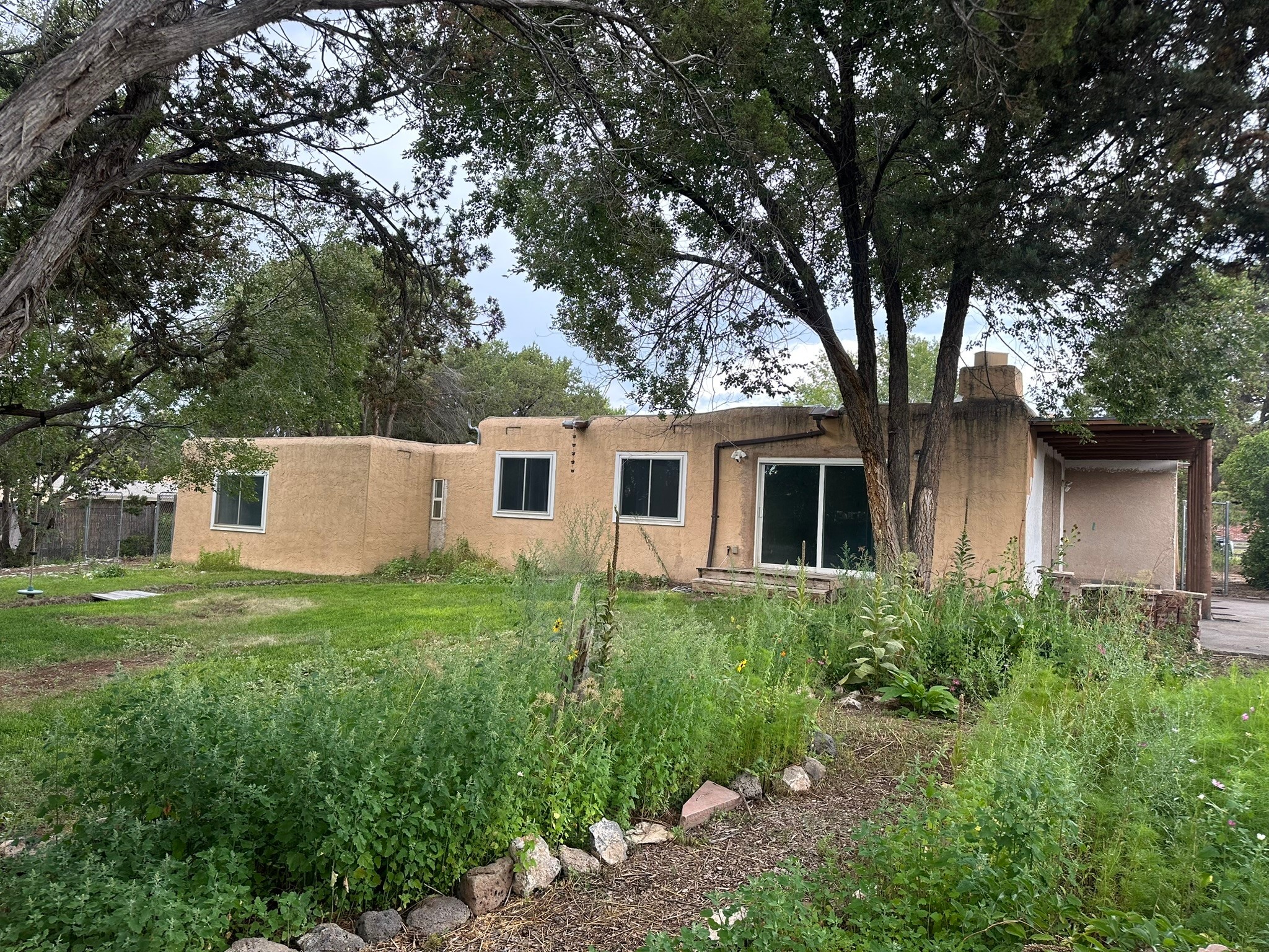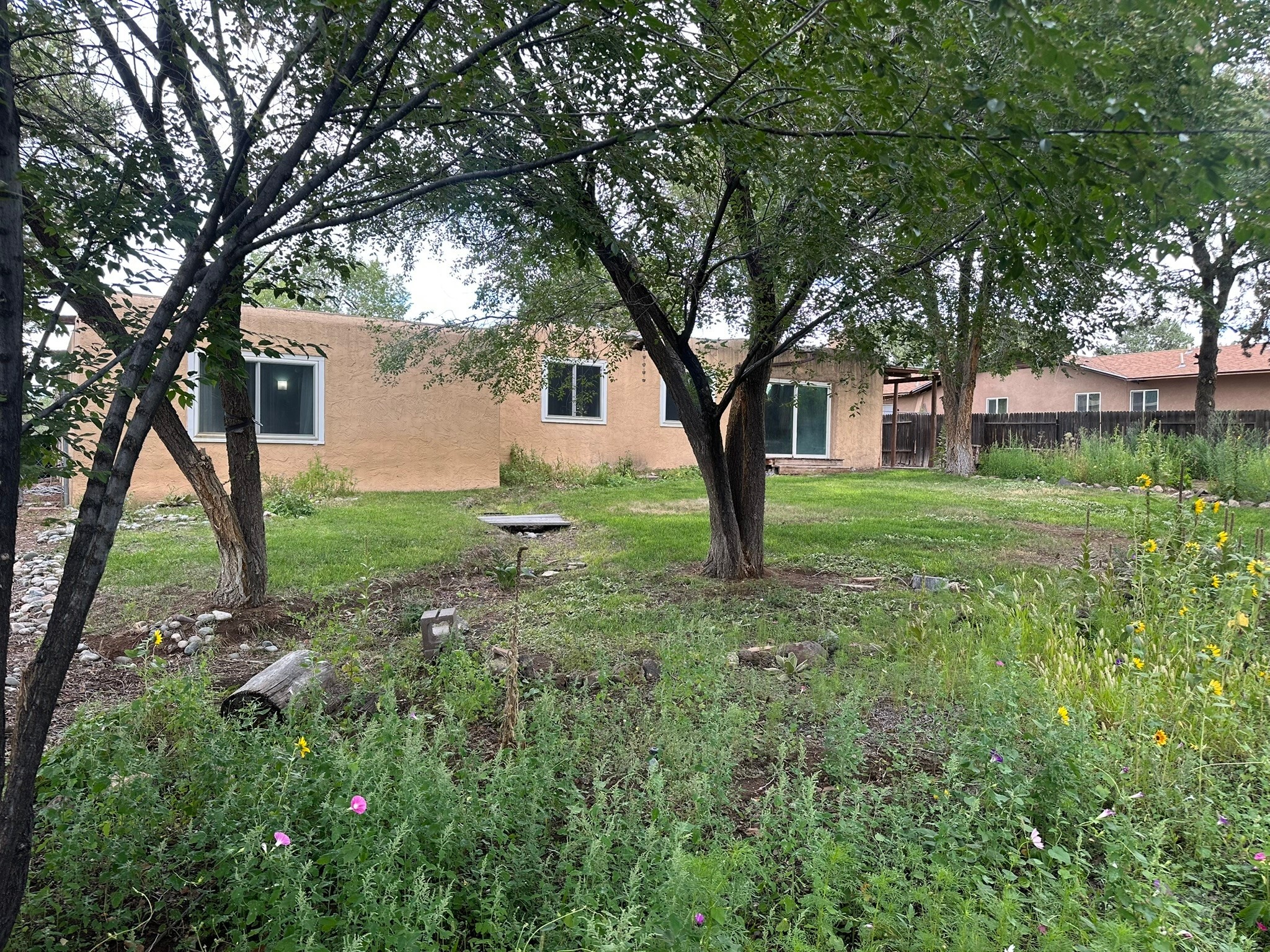 Welcome to this exceptional family home--where charm, comfort, and functionality come together to create the perfect place to grow and make memories. From the moment you arrive, the curb appeal sets the tone. Lush permaculture "food forest" gardens greet you in both the front and back yards, offering beauty, sustainability, and harvests right outside your door. Inside, the thoughtful layout provides space for every stage of life include 5 spacious bedrooms and 2 full bathrooms. A warm and inviting living room with a classic kiva fireplace is ideal for movie nights, gatherings, or simply curling up with a book. The formal dining room, perfect for everyday meals or special celebrations. A versatile flex room, perfect as an office, playroom, or library. The bright, functional kitchen features stainless steel appliances. Details that make a difference include built-in features, newer windows, and fresh carpet in select areas that add warmth and character throughout. Step outside and the home continues to impress. The fully fenced yard with irrigation offers plenty of room for pets, play, and thriving gardens. A watertight shed provides storage for tools and toys, while the two-car garage comes equipped with a sink and shelving for added convenience. This isn't just a house--it's a place where laughter fills the rooms, gardens flourish, and lasting memories are made.