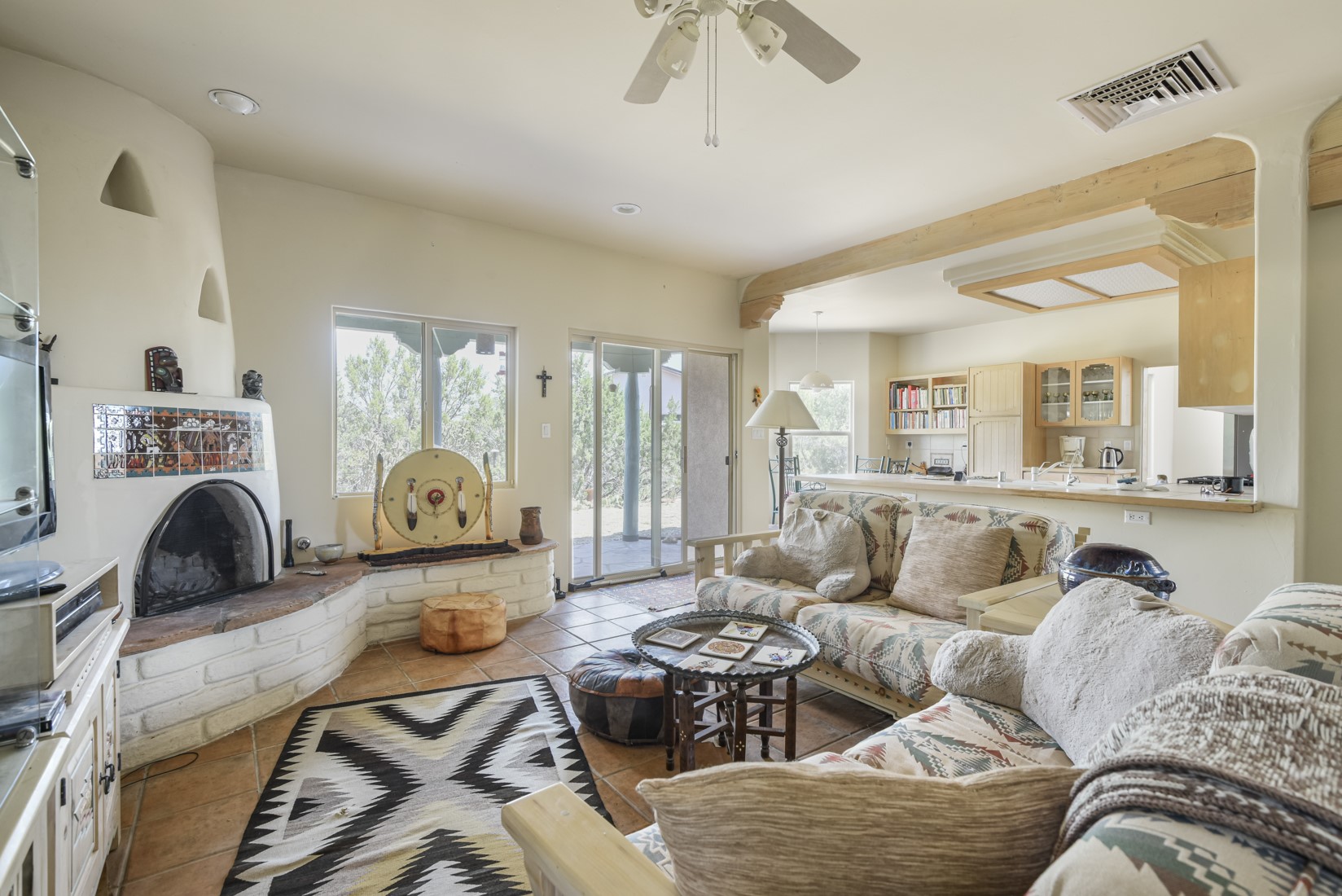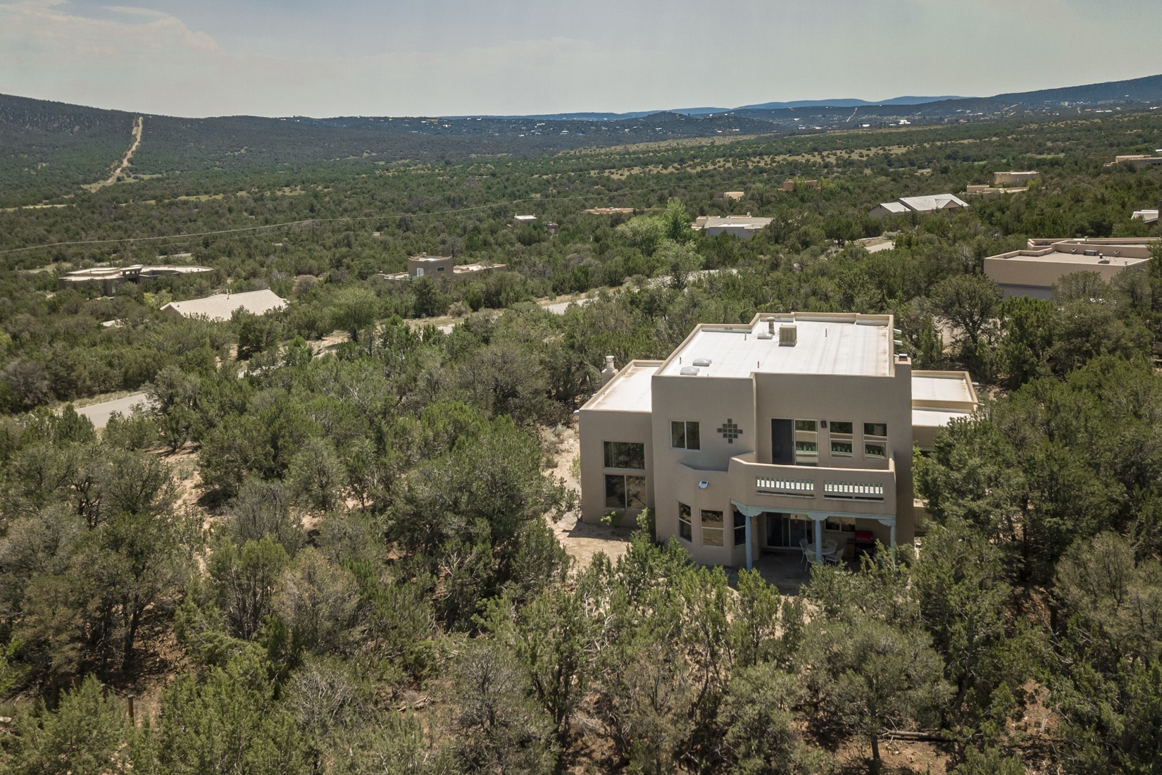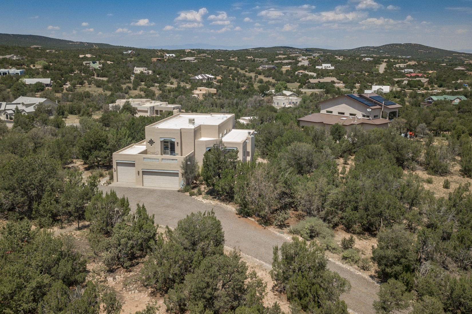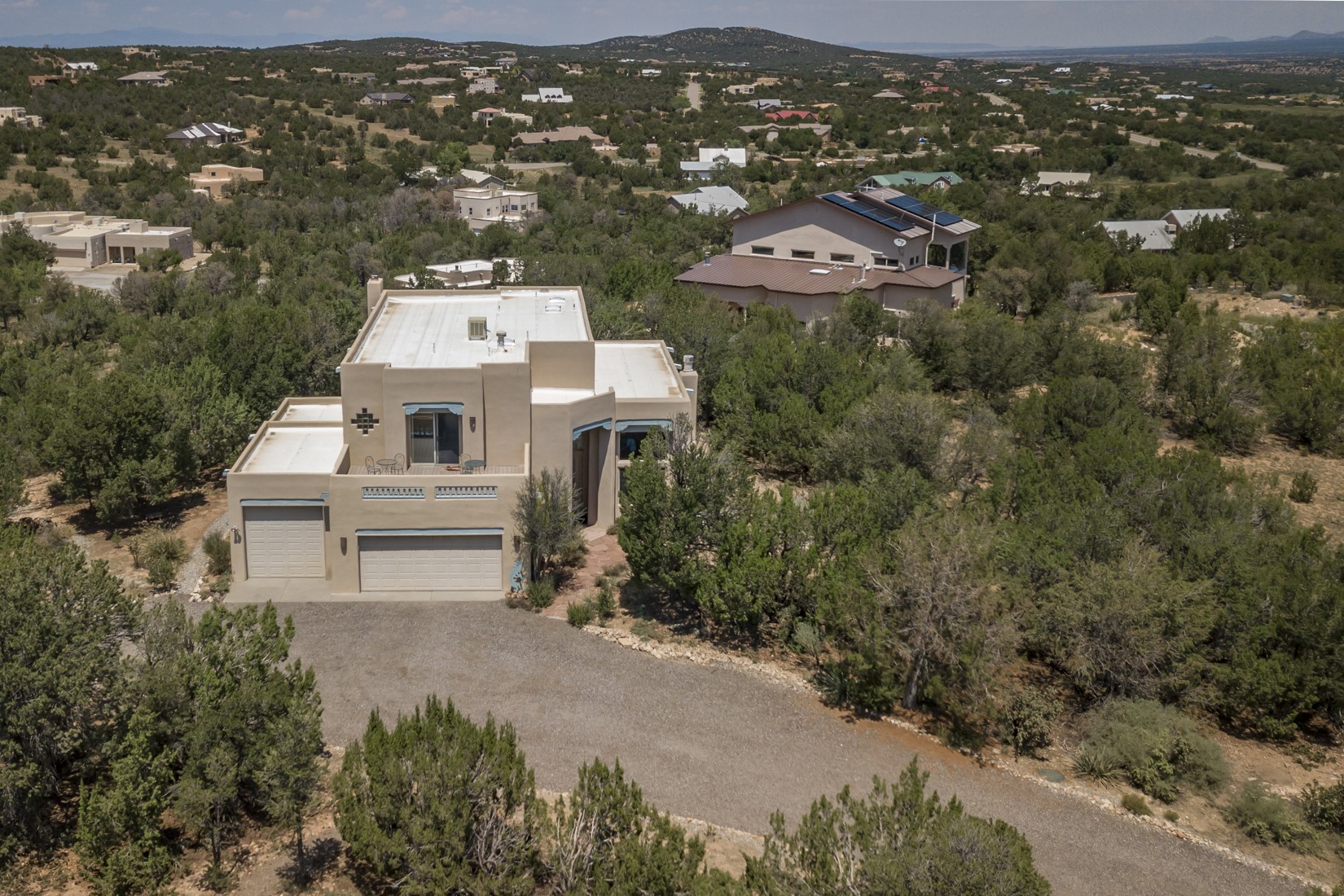 Welcome to this 1995 custom home by Elan Homes, designed and built for the original owner and rich with unique features. A grand Santa Fe Door welcomes you into a light-filled living space with a custom fireplace, exposed wood, and adobe accents. The open kitchen, breakfast area, and informal family room featuring a 2nd custom fireplace flow to a covered patio. A lower-level bedroom with a separate entrance and a close-by 3/4 bath offers flexibility. Upstairs includes a spacious main ensuite with panoramic views, two more bedrooms, a full bath, and two view decks. The 3-car garage includes an oversized bay with a raised door and ceiling for mid-size RV storage. A great Paa-Ko value and A must-see!