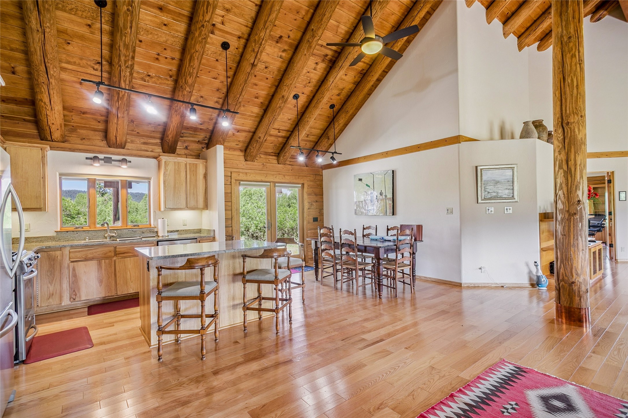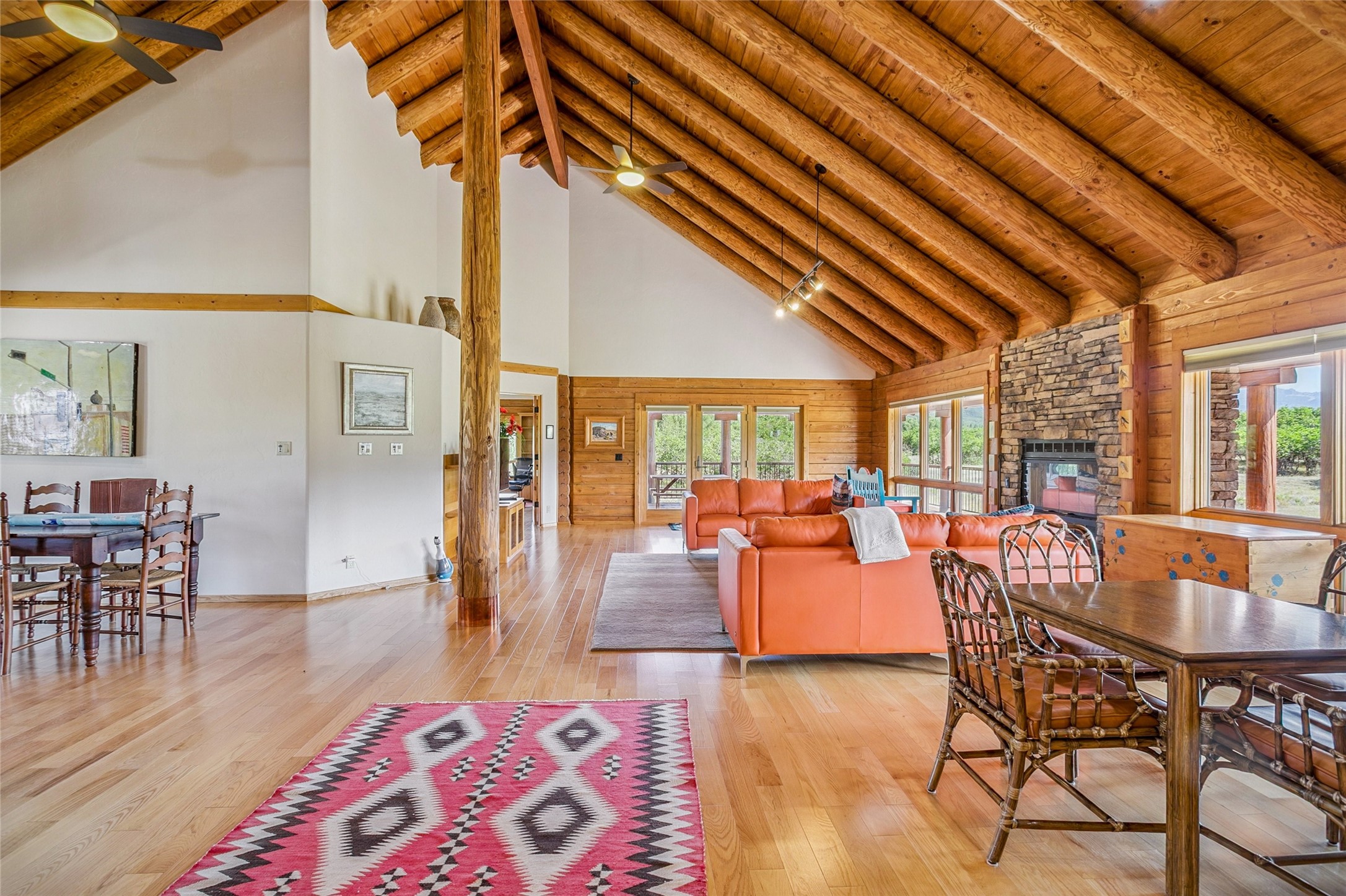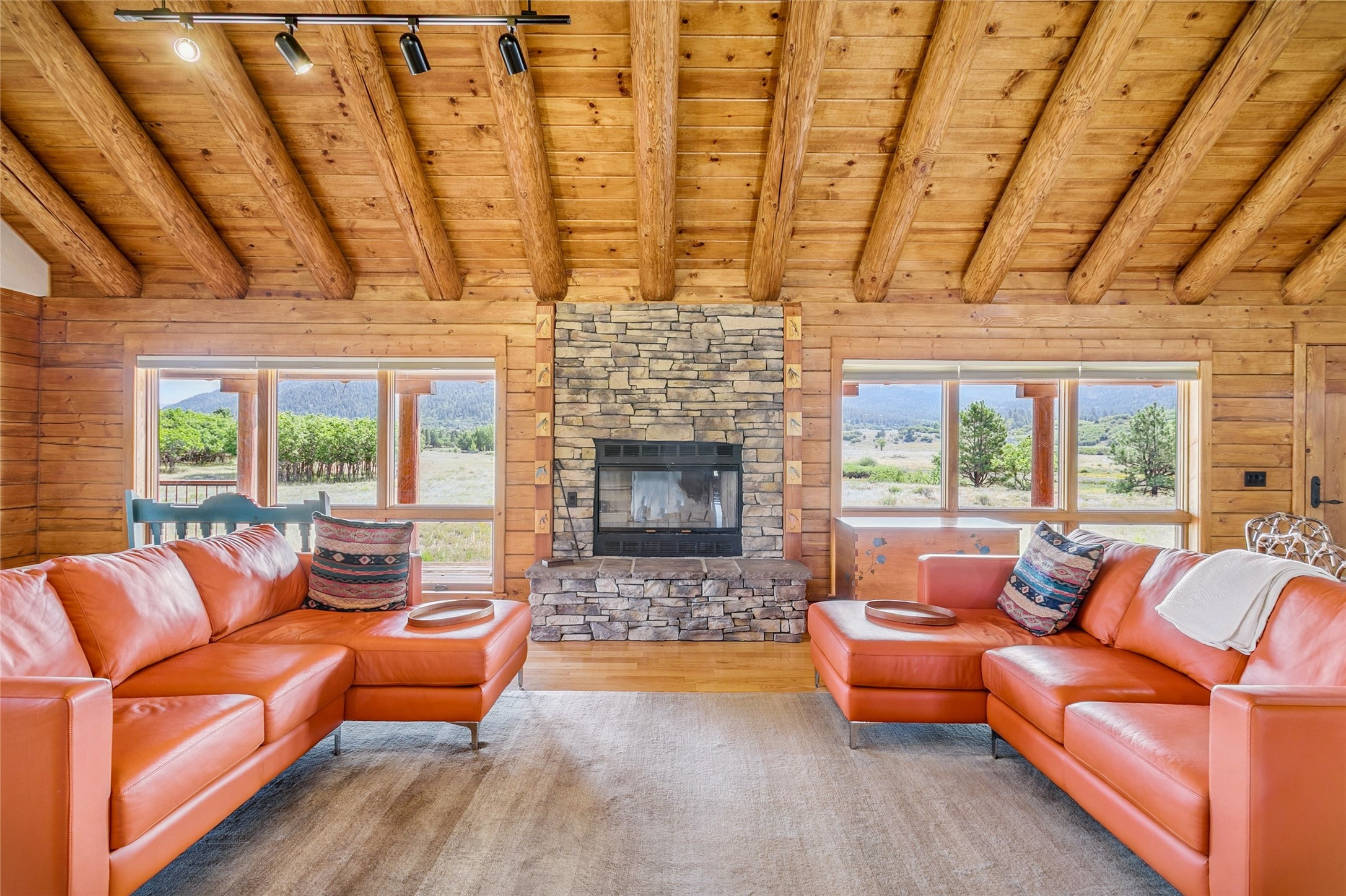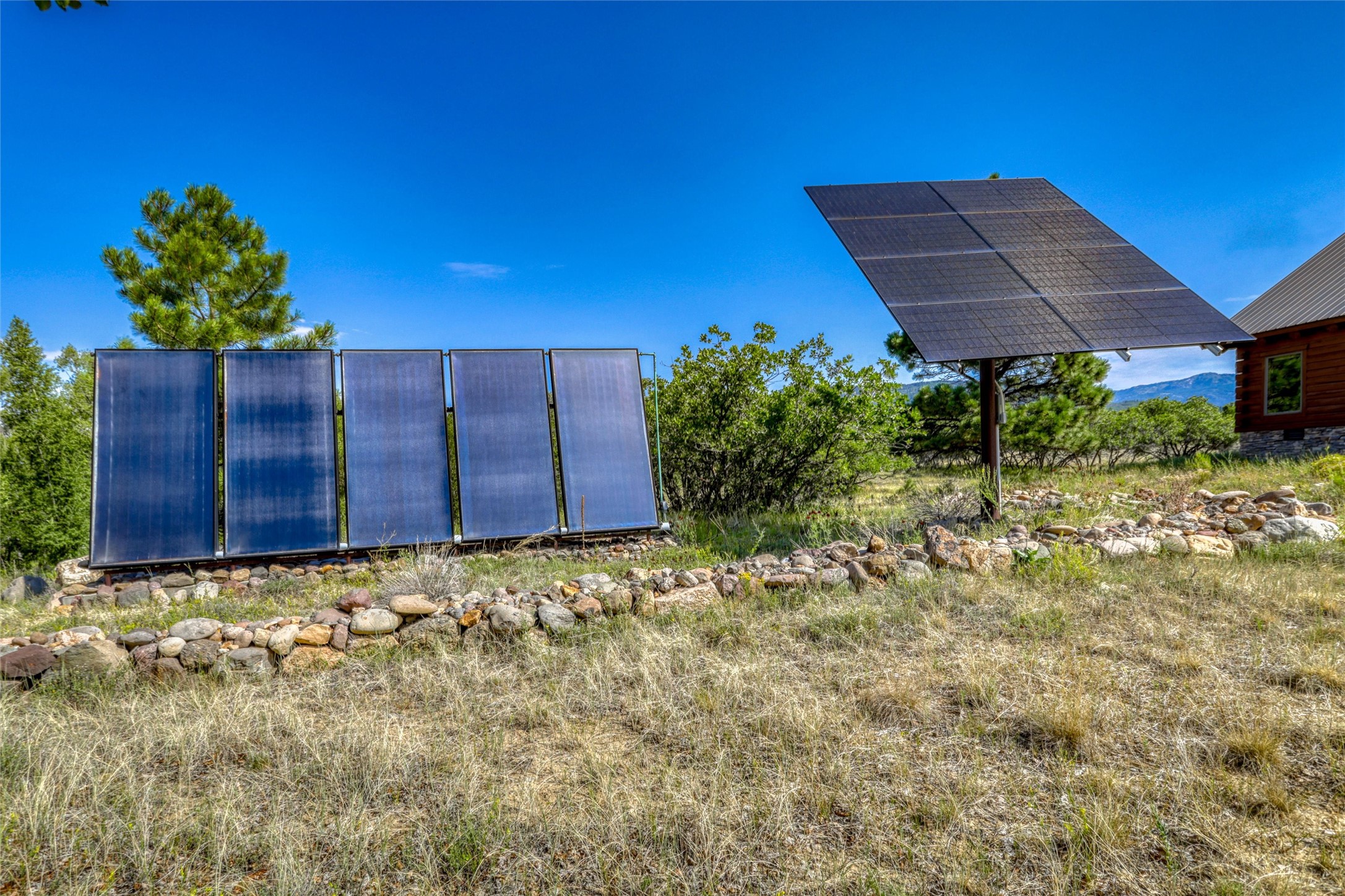 Located north of the Village of Chama, this 24.6 acres has Chama River Frontage on the west, the Cumbres and Toltec Scenic Railroad tracks on the east and it borders a large ranch holding (RDOP) on the north. The property is 2 levels with approximately 12 acres on the upper portion where the house is located and approximately 12.6 acres in the flood plain along the Chama River. Enjoy the amazing views from the covered decks of the spacious and thoughtfully designed D Log home or head down the path to the shade of the cottonwoods along the river. The main floor of the house has an open concept living and kitchen area, 2 bedrooms, 2 bathrooms and attached 2 car garage with laundry facilities. The upstairs is an open loft area, great for overflow company, office or hobby space. The main bedroom has a large walk in closet, an en suite bathroom, complete with a steam shower and soaking tub. The house has in-floor heat and a wood burning fireplace for the chilly winter nights. During the summer, the train departs the train station in Chama around 10am and heads north along the property boundary and returns in the afternoons around 4pm. This is a private location, perfect for the buyer who is looking for a self sustaining property where trout fishing is just down the hill and everything is powered by solar or generator power.