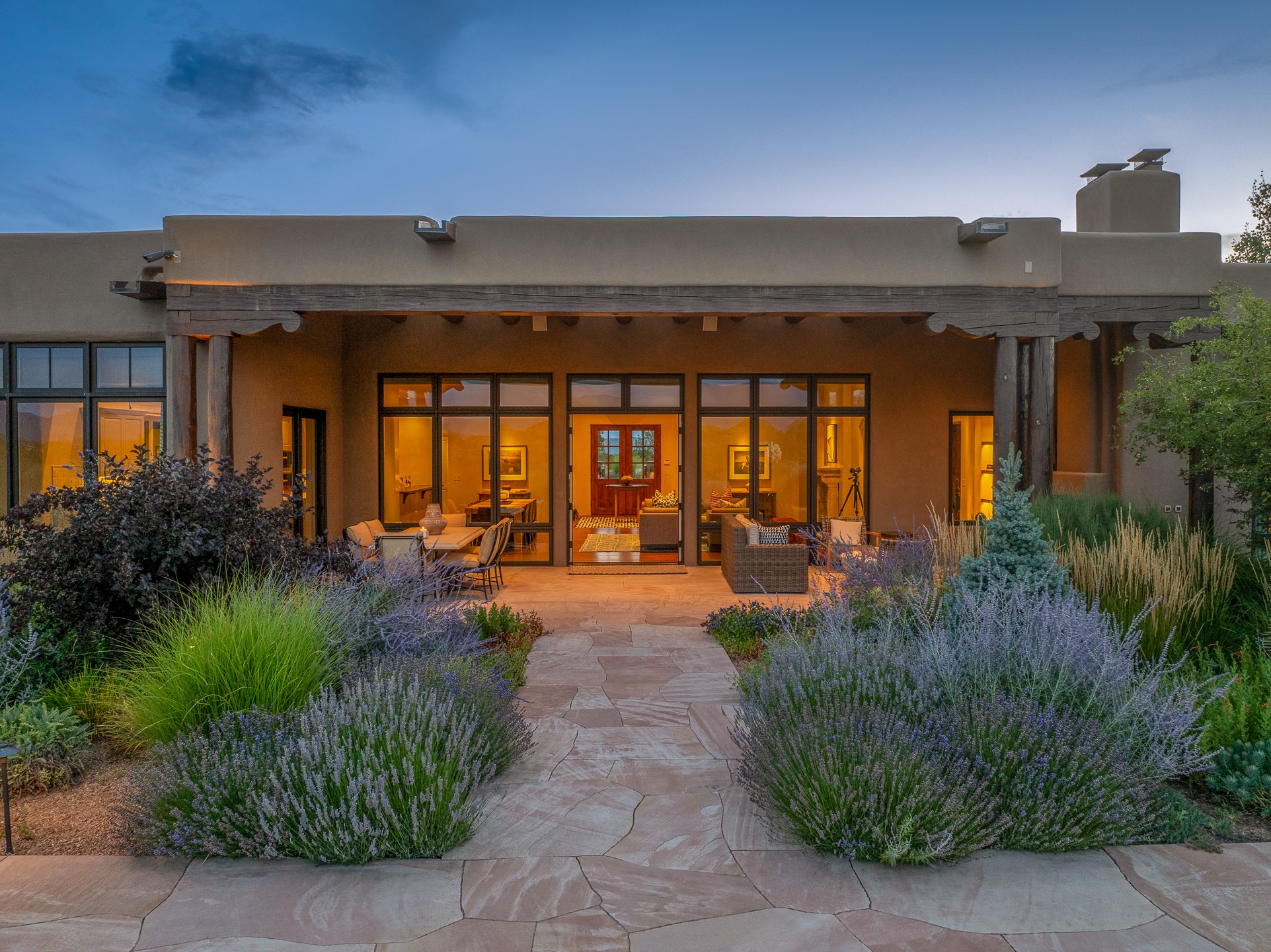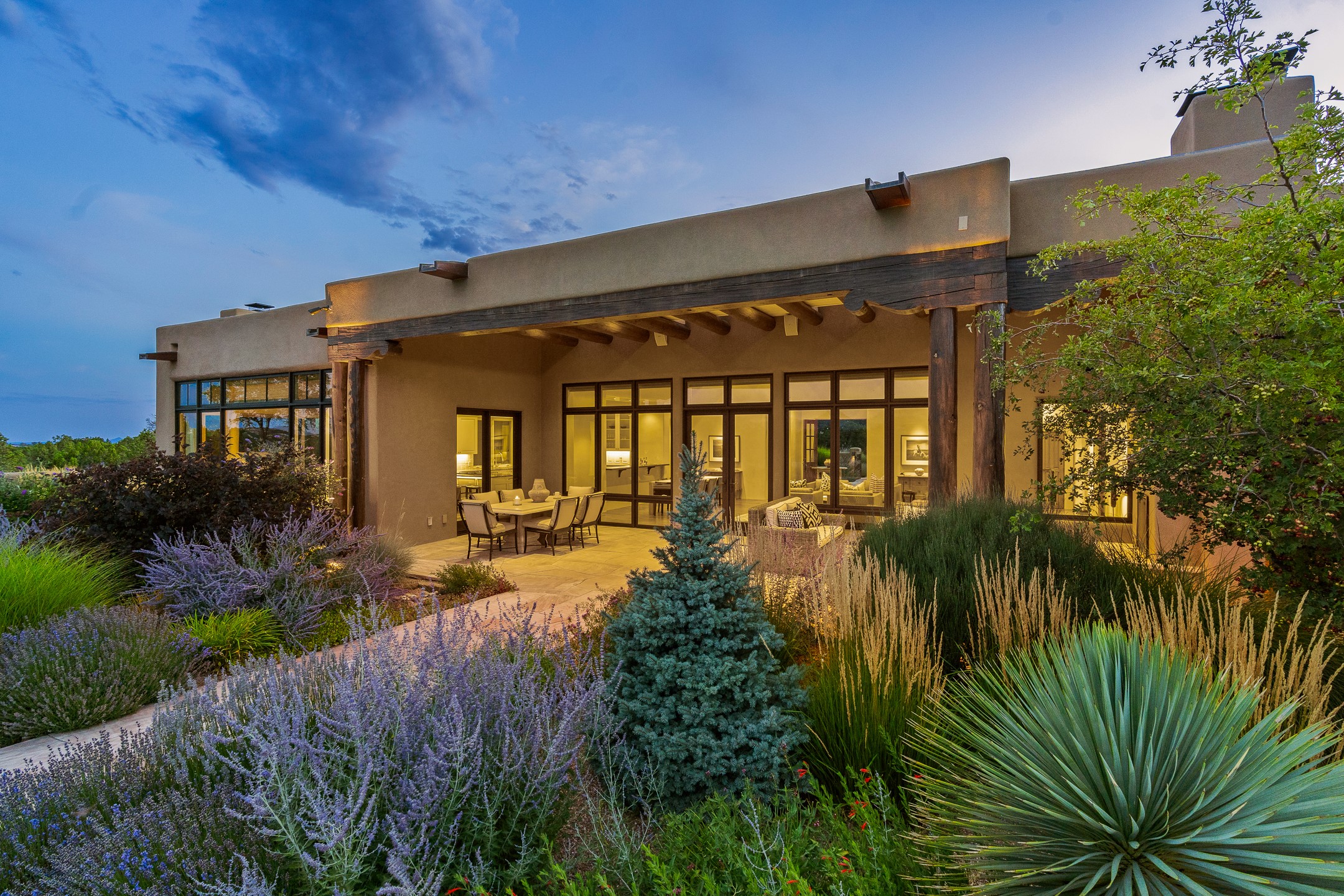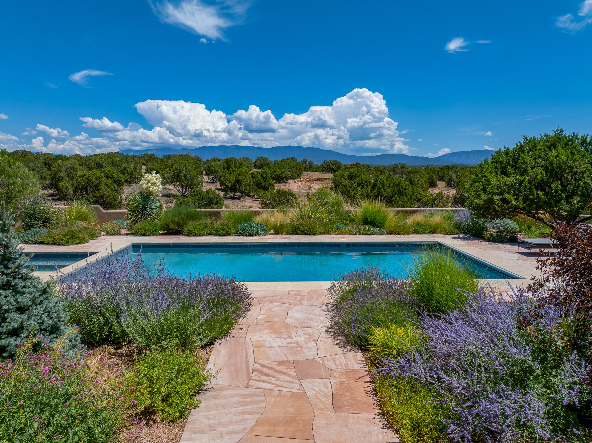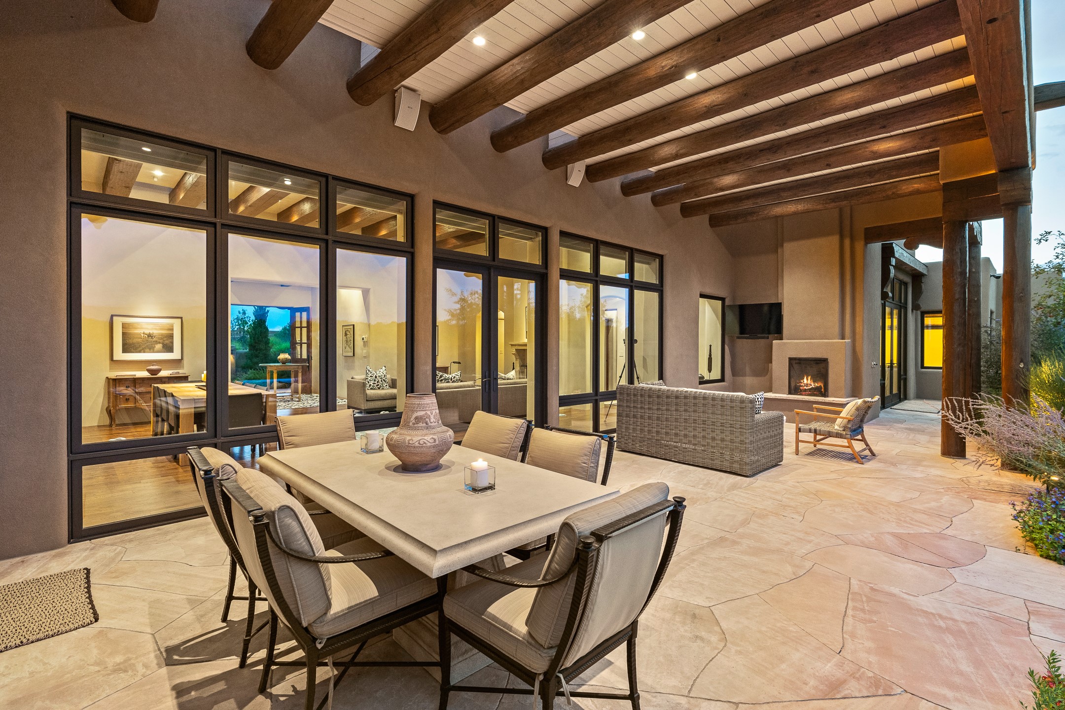 Rarely does a home achieve such a perfect balance of style, quality, natural beauty, and thoughtful design--but 20 Picacho Peak does so with ease. Set on five+ private acres off Wildhorse, this 4,800-square-foot masterpiece by Woods Design Builders offers 3 spacious, private bedrooms, five bathrooms, two dedicated offices, and exceptional indoor-outdoor living. From the primary suite and main living areas, panoramic Sangre de Cristo views create a constant backdrop, while the resort-style backyard--with its stunning in-ground pool, spa, and lush landscaping--invites year-round enjoyment.Completed in 2016 with meticulous attention to detail, the home features warm wood floors and beams, abundant natural light, and a layout that blends openness with intimate spaces. The chef's kitchen is equipped with Miele and Sub-Zero appliances, elegant Taj Mahal quartzite countertops, and a versatile wet bar seamlessly connecting to the living room. A casual den just off the kitchen offers an inviting retreat, while the adjacent great room and open dining area are ideal for entertaining. The primary suite is a true sanctuary, complete with a kiva fireplace, private portal access, a beautifully remodeled spa bath, and a grand walk-in closet. A second kiva graces the adjoining library/office--perfect for quiet work or reading by the fire. Guest quarters are thoughtfully separated, offering generous bedrooms, a private den, and comfort for family or friends. From the pool terrace, a landscaped path leads to a serene seating area - an idyllic spot for stargazing under Santa Fe's expansive skies. Additional amenities include radiant in-floor heating along with central heat & refrigerated air, a spacious two-car garage, abundant storage, and access to Las Campanas' world-class golf, dining, spa, and equestrian facilities. A golf equity membership to the club is available for separate purchase. Las Campanas HOA provides 24 hour security, gates, 24/7 Paramedic services, walking paths and maintenance. A rare offering in one of Santa Fe's most coveted communities - crafted for those who demand both beauty and quality.