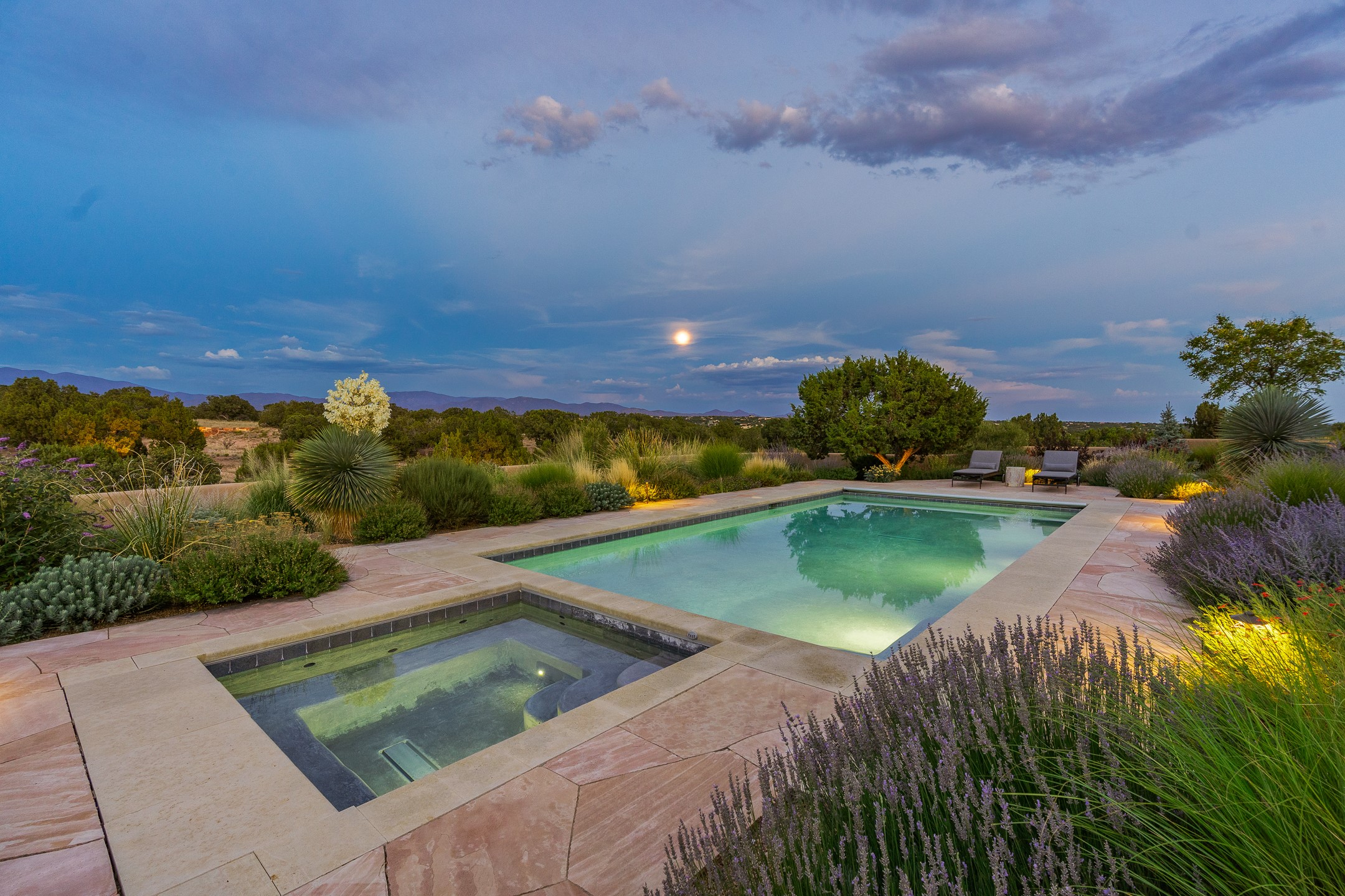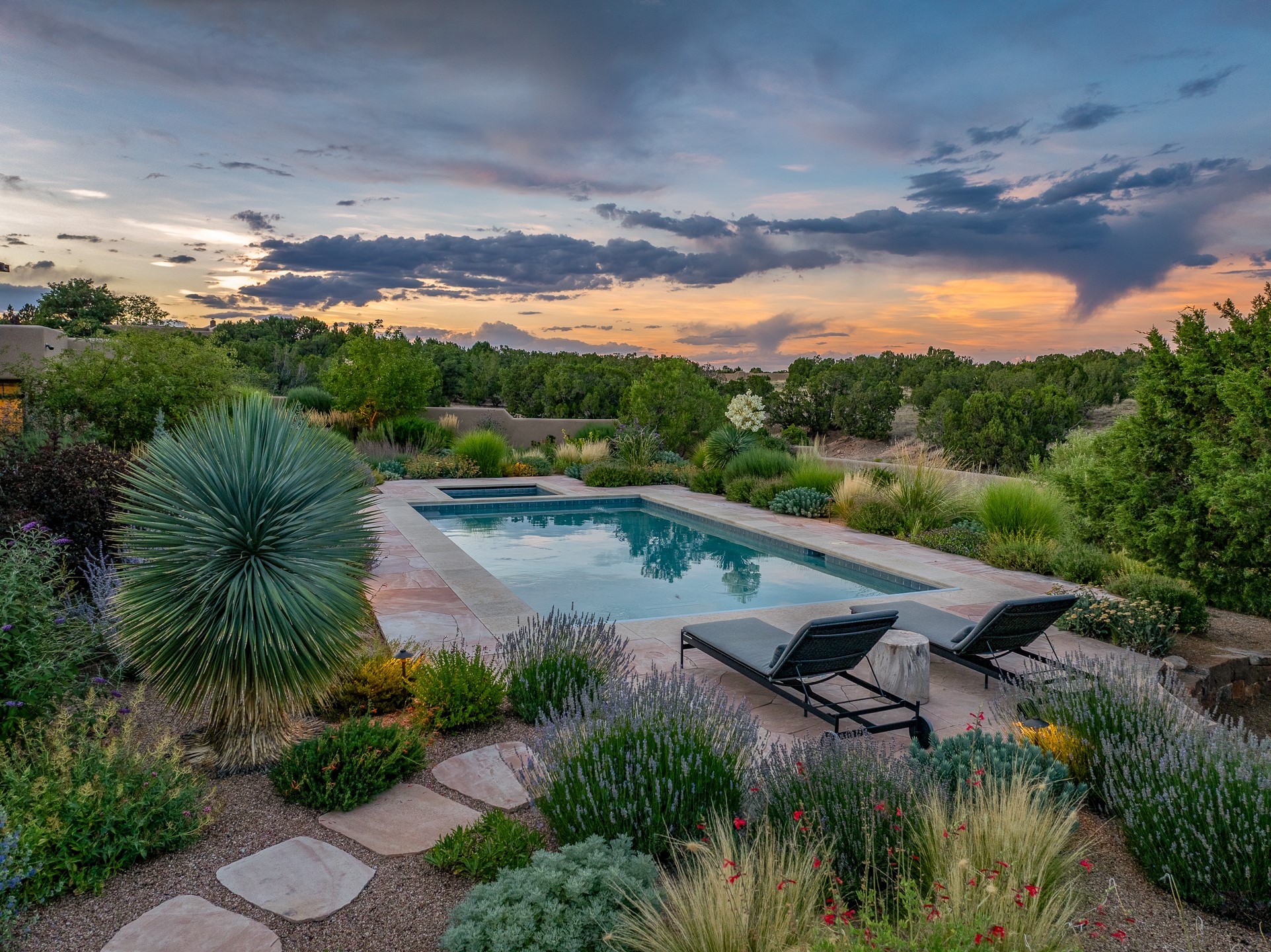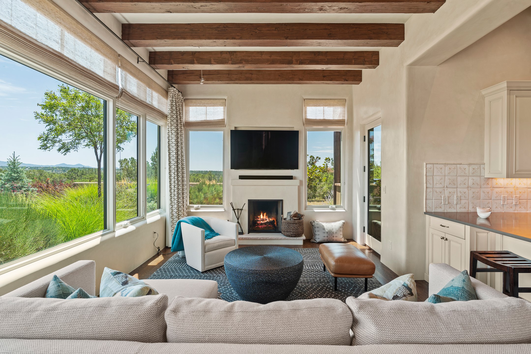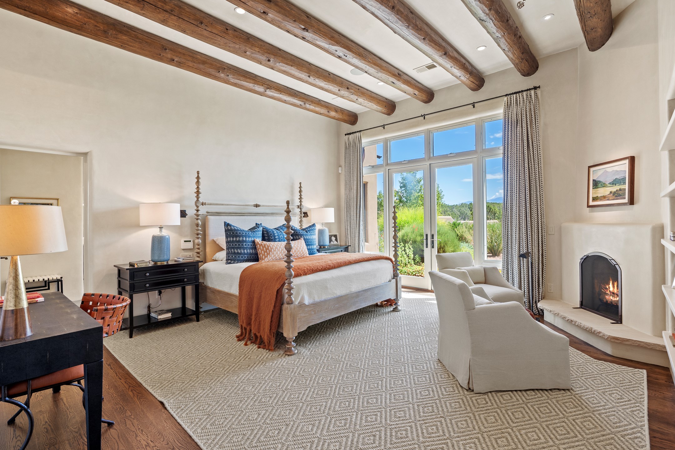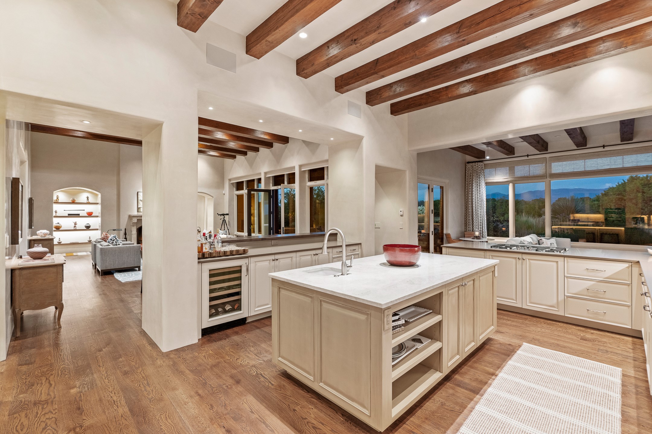 Rarely does a home achieve such a perfect balance of style, quality, natural beauty, and thoughtful design--but 20 Picacho Peak does so with ease. Set on five+ private acres off Wildhorse, this 4,800-square-foot masterpiece by Woods Design Builders offers 3 spacious, private bedrooms, five bathrooms, two dedicated offices, and exceptional indoor-outdoor living. From the primary suite and main living areas, panoramic Sangre de Cristo views create a constant backdrop, while the resort-style backyard--with its stunning in-ground pool, spa, and lush landscaping--invites year-round enjoyment.Completed in 2016 with meticulous attention to detail, the home features warm wood floors and beams, abundant natural light, and a layout that blends openness with intimate spaces. The chef's kitchen is equipped with Miele and Sub-Zero appliances, elegant Taj Mahal quartzite countertops, and a versatile wet bar seamlessly connecting to the living room. A casual den just off the kitchen offers an inviting retreat, while the adjacent great room and open dining area are ideal for entertaining. The primary suite is a true sanctuary, complete with a kiva fireplace, private portal access, a beautifully remodeled spa bath, and a grand walk-in closet. A second kiva graces the adjoining library/office--perfect for quiet work or reading by the fire. Guest quarters are thoughtfully separated, offering generous bedrooms, a private den, and comfort for family or friends. From the pool terrace, a landscaped path leads to a serene seating area - an idyllic spot for stargazing under Santa Fe's expansive skies. Additional amenities include radiant in-floor heating along with central heat & refrigerated air, a spacious two-car garage, abundant storage, and access to Las Campanas' world-class golf, dining, spa, and equestrian facilities. A golf equity membership to the club is available for separate purchase. Las Campanas HOA provides 24 hour security, gates, 24/7 Paramedic services, walking paths and maintenance. A rare offering in one of Santa Fe's most coveted communities - crafted for those who demand both beauty and quality.