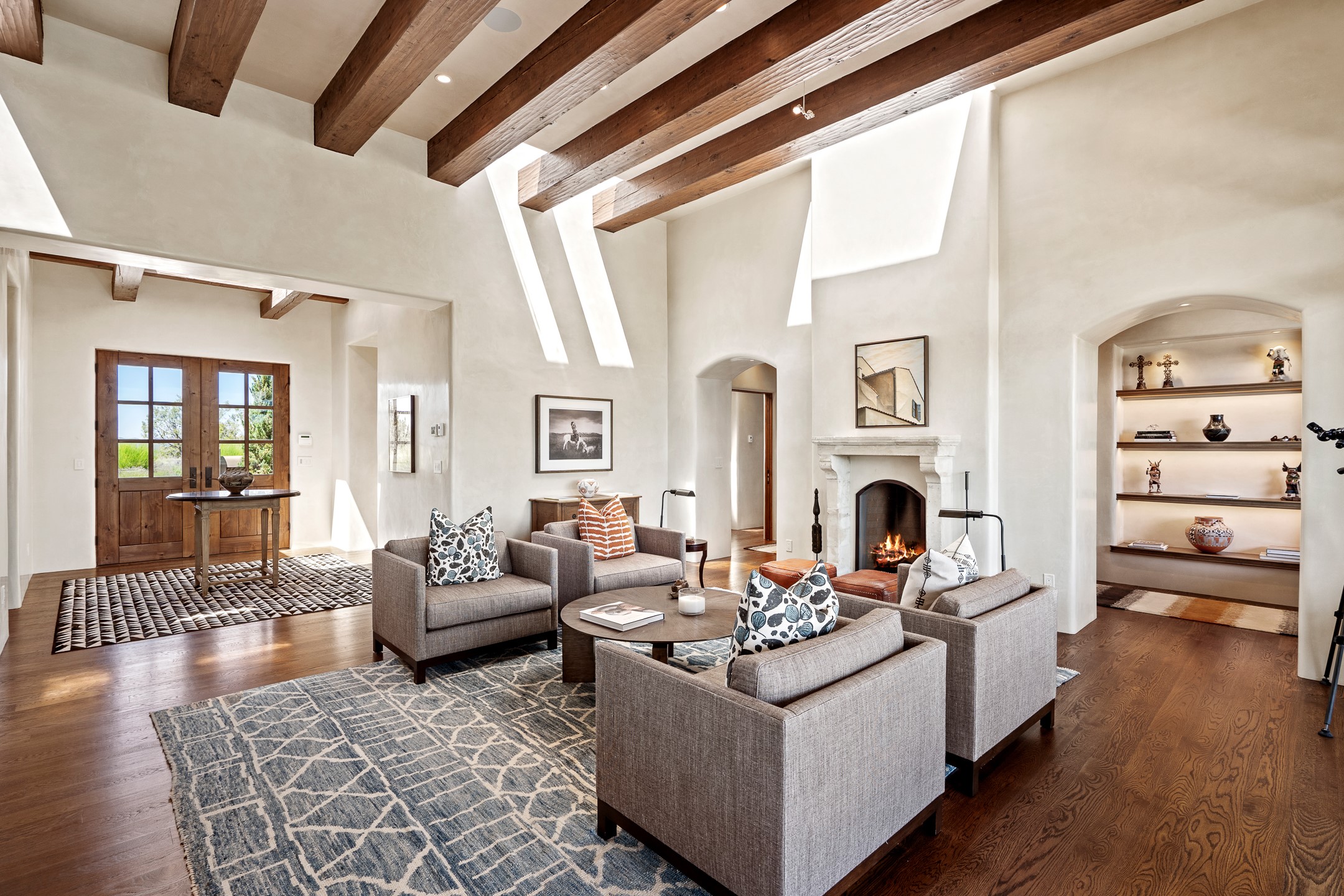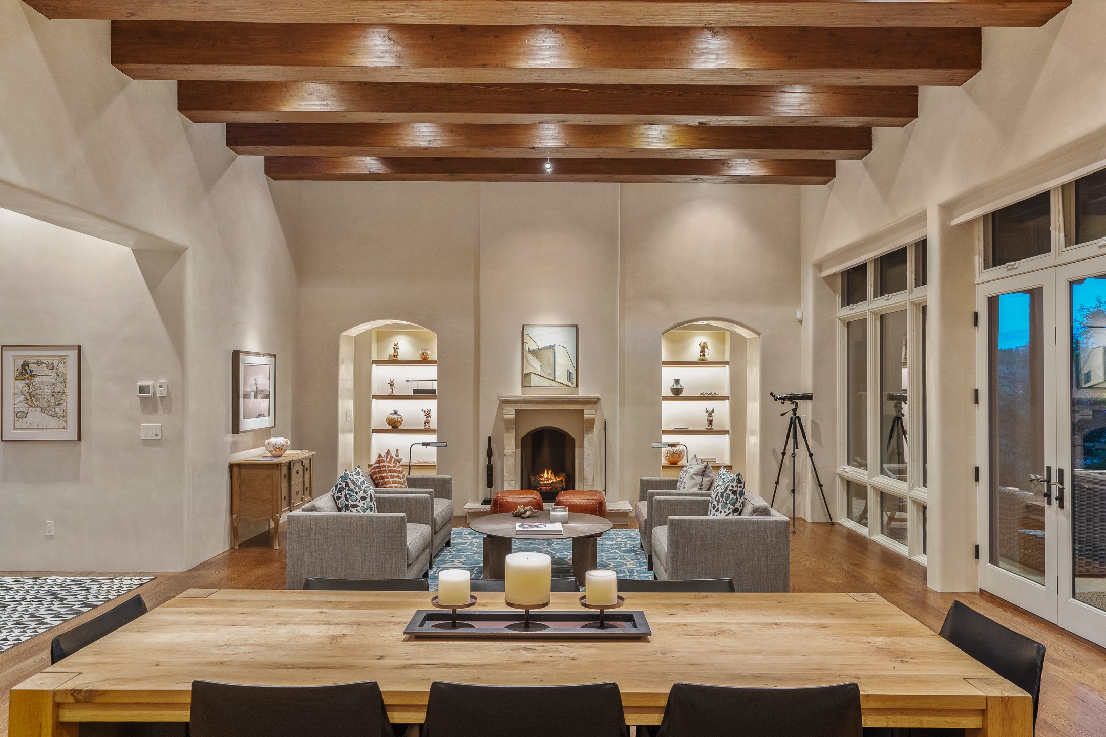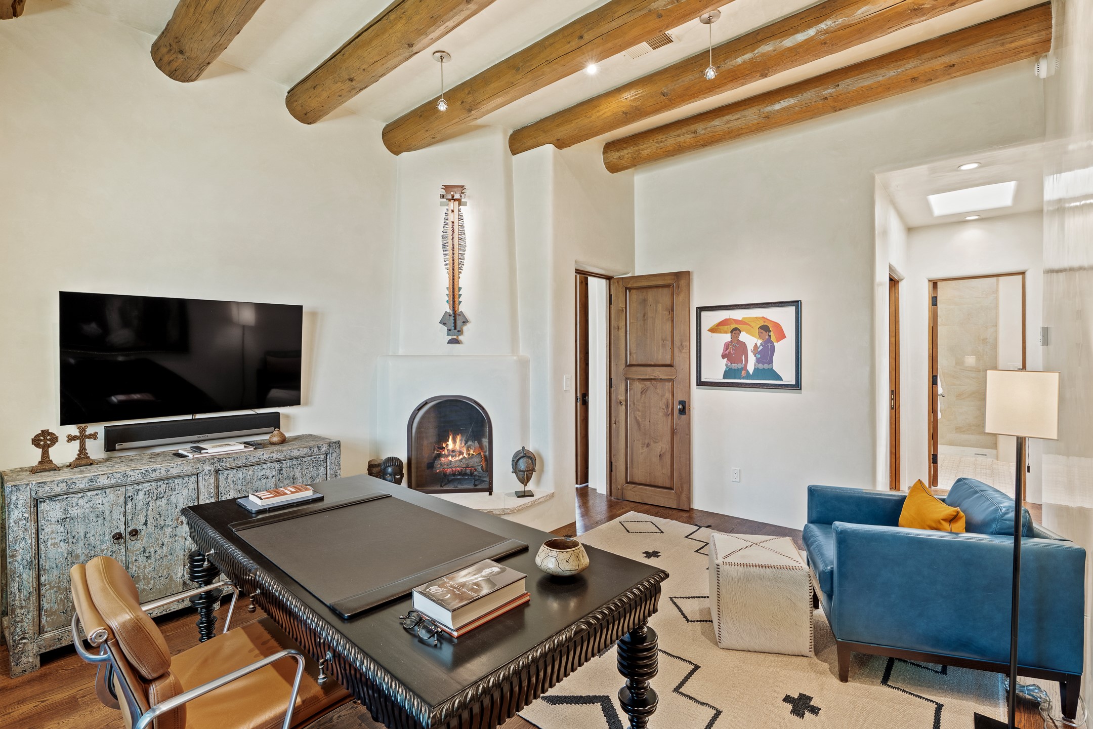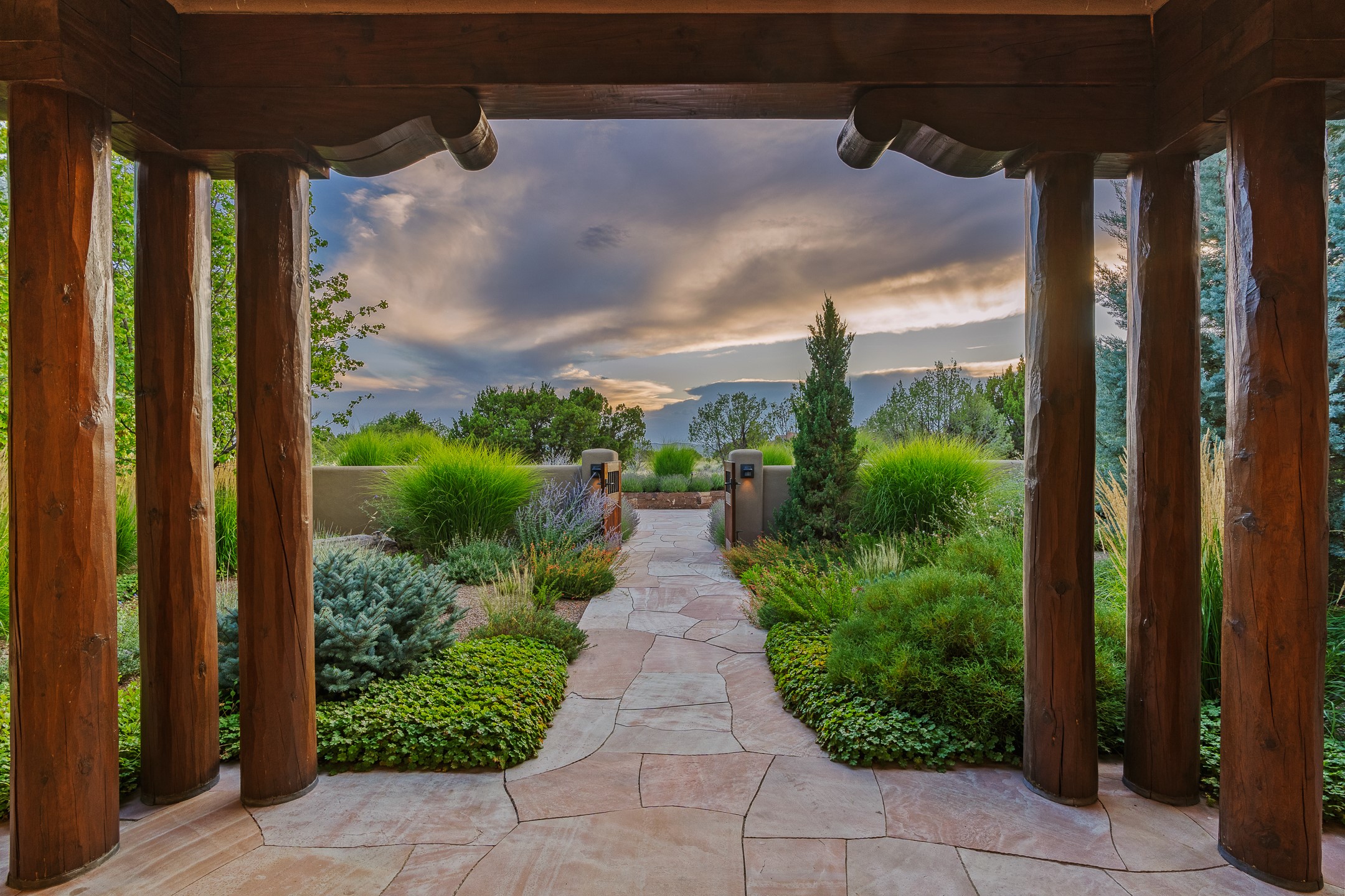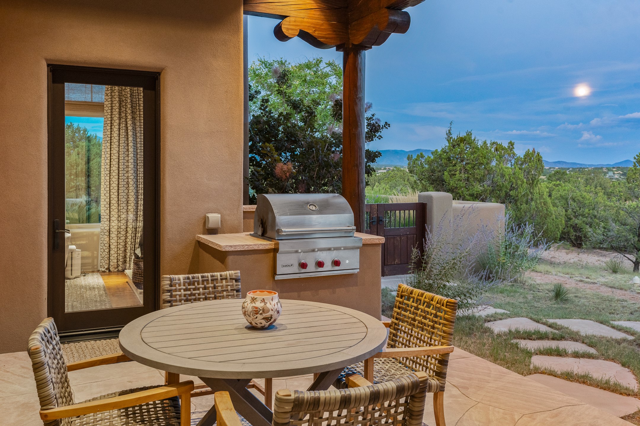 Rarely does a home achieve such a perfect balance of style, quality, natural beauty, and thoughtful design--but 20 Picacho Peak does so with ease. Set on five+ private acres off Wildhorse, this 4,800-square-foot masterpiece by Woods Design Builders offers 3 spacious, private bedrooms, five bathrooms, two dedicated offices, and exceptional indoor-outdoor living. From the primary suite and main living areas, panoramic Sangre de Cristo views create a constant backdrop, while the resort-style backyard--with its stunning in-ground pool, spa, and lush landscaping--invites year-round enjoyment.Completed in 2016 with meticulous attention to detail, the home features warm wood floors and beams, abundant natural light, and a layout that blends openness with intimate spaces. The chef's kitchen is equipped with Miele and Sub-Zero appliances, elegant Taj Mahal quartzite countertops, and a versatile wet bar seamlessly connecting to the living room. A casual den just off the kitchen offers an inviting retreat, while the adjacent great room and open dining area are ideal for entertaining. The primary suite is a true sanctuary, complete with a kiva fireplace, private portal access, a beautifully remodeled spa bath, and a grand walk-in closet. A second kiva graces the adjoining library/office--perfect for quiet work or reading by the fire. Guest quarters are thoughtfully separated, offering generous bedrooms, a private den, and comfort for family or friends. From the pool terrace, a landscaped path leads to a serene seating area - an idyllic spot for stargazing under Santa Fe's expansive skies. Additional amenities include radiant in-floor heating along with central heat & refrigerated air, a spacious two-car garage, abundant storage, and access to Las Campanas' world-class golf, dining, spa, and equestrian facilities. A golf equity membership to the club is available for separate purchase. Las Campanas HOA provides 24 hour security, gates, 24/7 Paramedic services, walking paths and maintenance. A rare offering in one of Santa Fe's most coveted communities - crafted for those who demand both beauty and quality.
