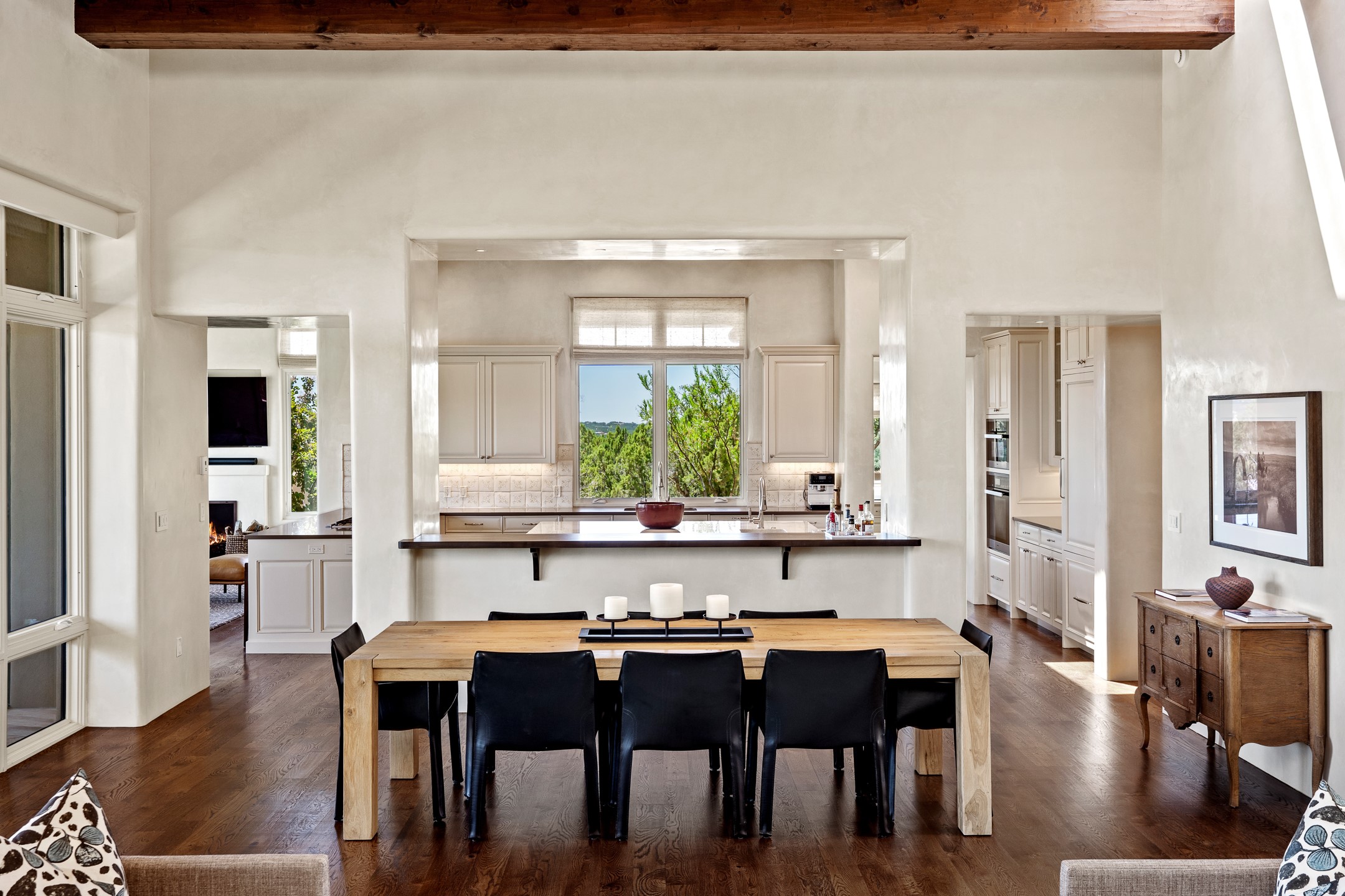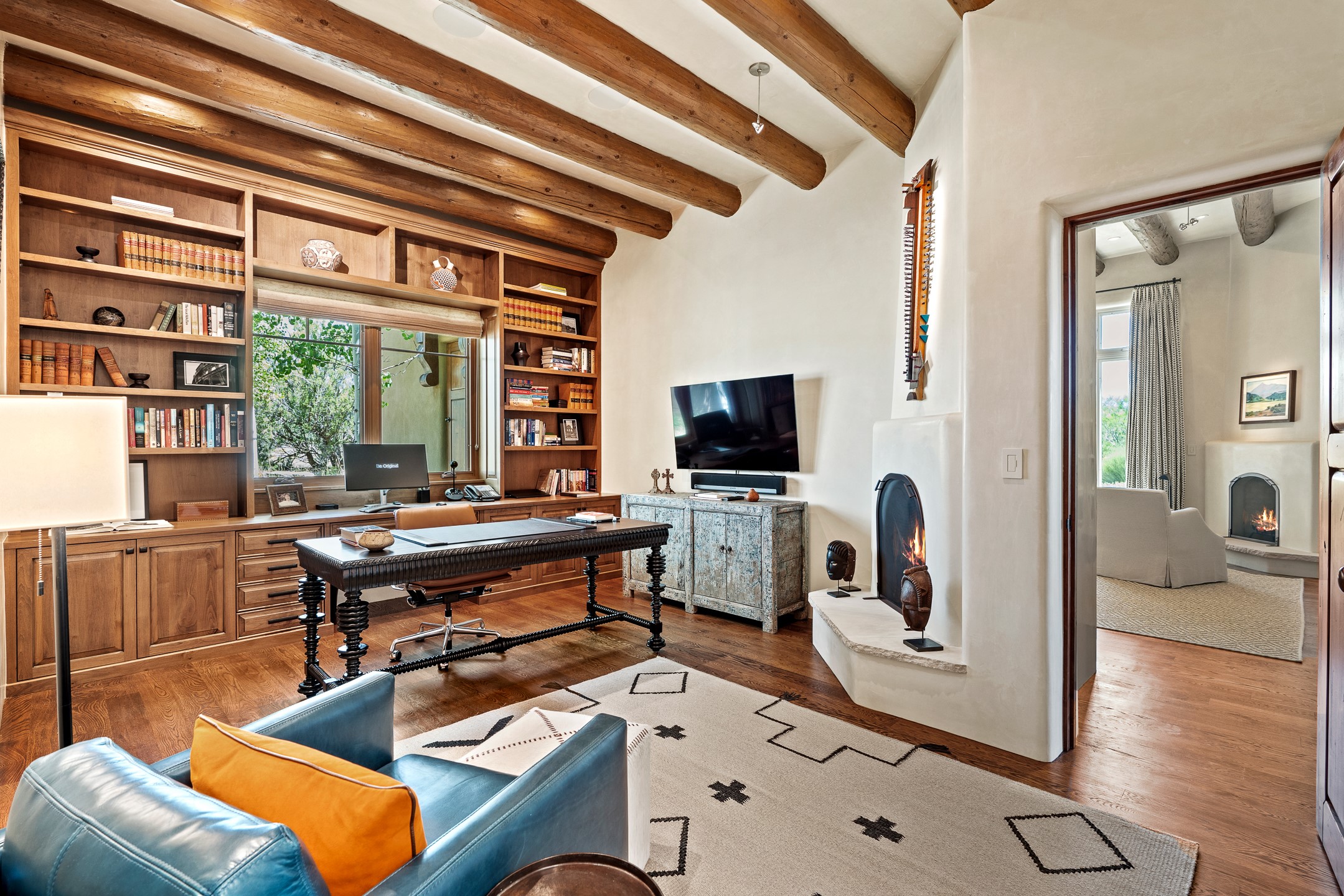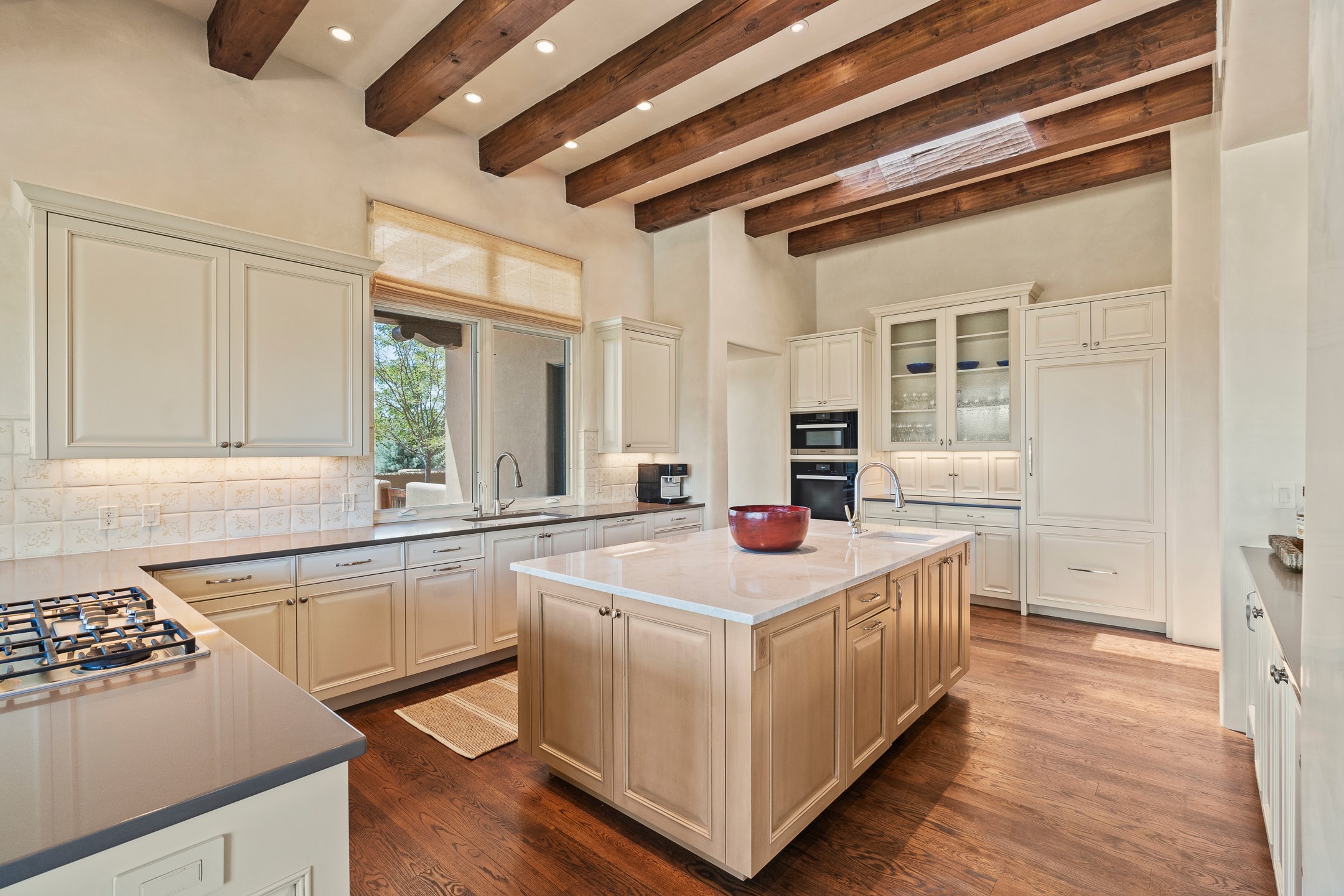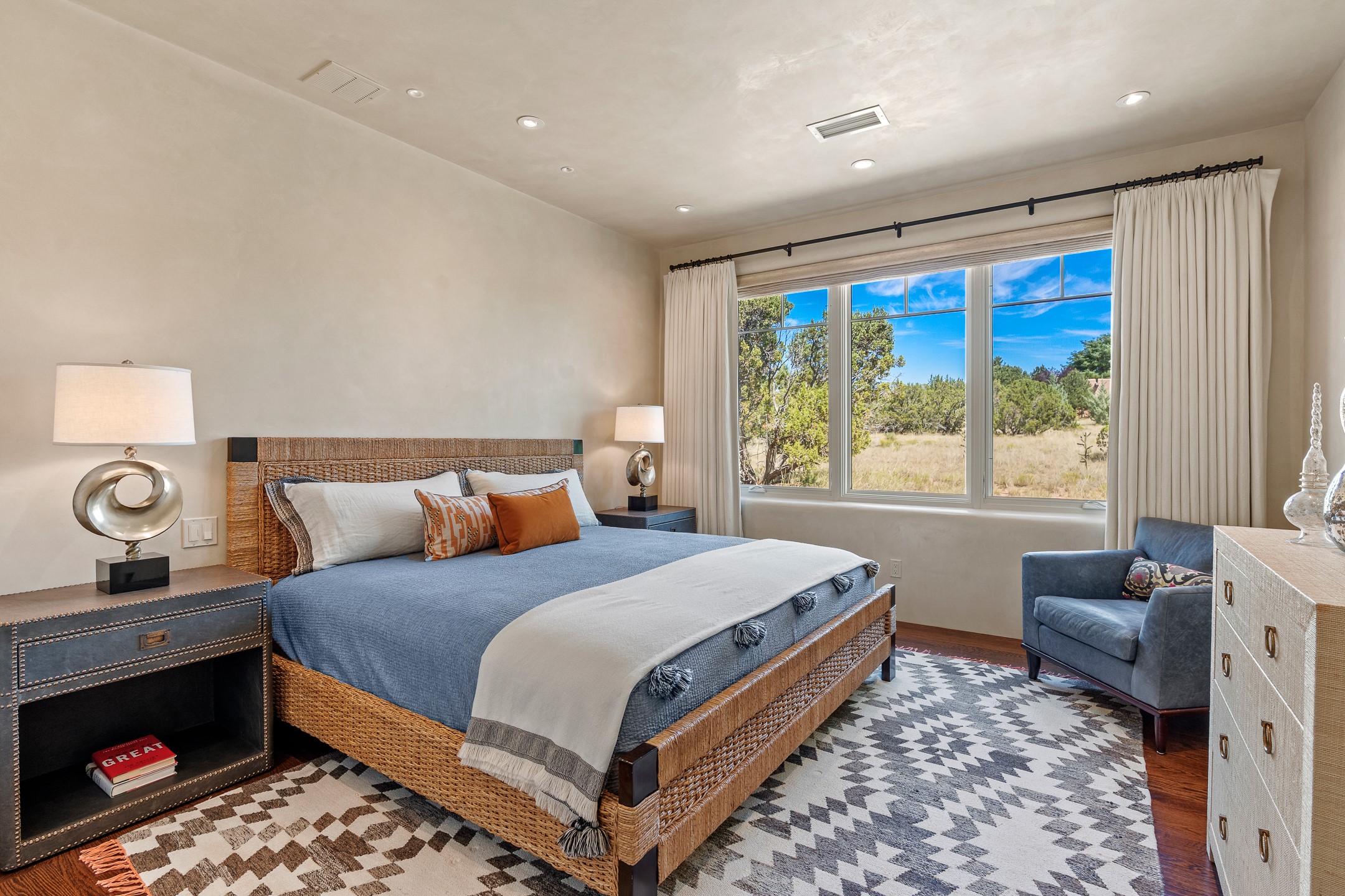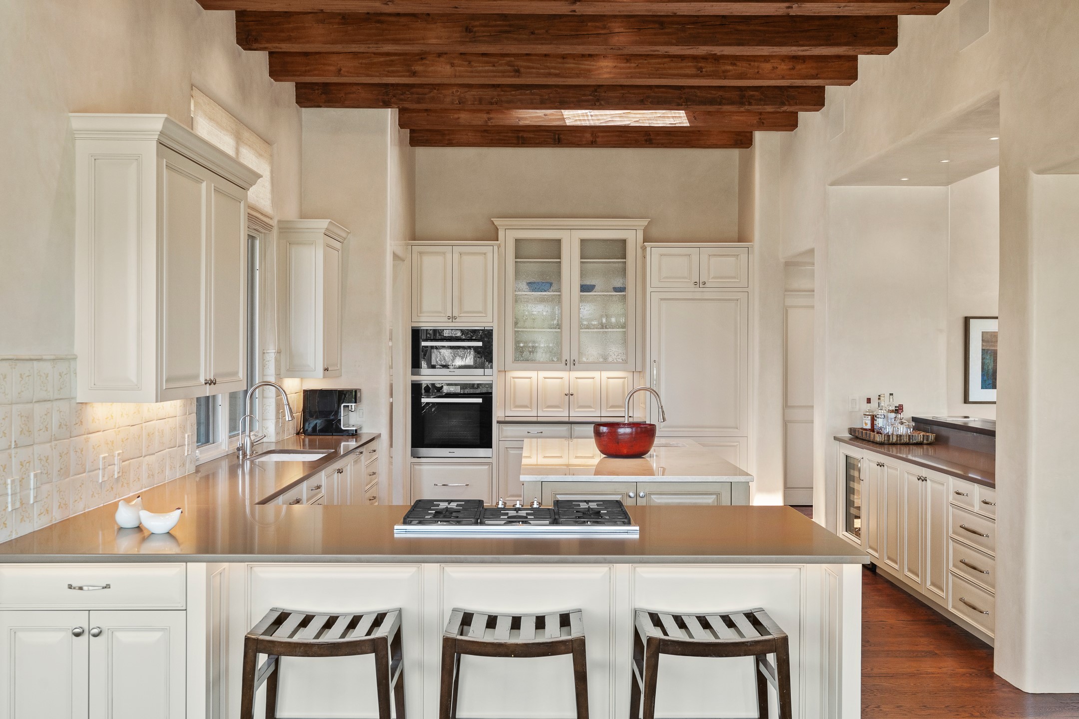 Rarely does a home achieve such a perfect balance of style, quality, natural beauty, and thoughtful design--but 20 Picacho Peak does so with ease. Set on five+ private acres off Wildhorse, this 4,800-square-foot masterpiece by Woods Design Builders offers 3 spacious, private bedrooms, five bathrooms, two dedicated offices, and exceptional indoor-outdoor living. From the primary suite and main living areas, panoramic Sangre de Cristo views create a constant backdrop, while the resort-style backyard--with its stunning in-ground pool, spa, and lush landscaping--invites year-round enjoyment.Completed in 2016 with meticulous attention to detail, the home features warm wood floors and beams, abundant natural light, and a layout that blends openness with intimate spaces. The chef's kitchen is equipped with Miele and Sub-Zero appliances, elegant Taj Mahal quartzite countertops, and a versatile wet bar seamlessly connecting to the living room. A casual den just off the kitchen offers an inviting retreat, while the adjacent great room and open dining area are ideal for entertaining. The primary suite is a true sanctuary, complete with a kiva fireplace, private portal access, a beautifully remodeled spa bath, and a grand walk-in closet. A second kiva graces the adjoining library/office--perfect for quiet work or reading by the fire. Guest quarters are thoughtfully separated, offering generous bedrooms, a private den, and comfort for family or friends. From the pool terrace, a landscaped path leads to a serene seating area - an idyllic spot for stargazing under Santa Fe's expansive skies. Additional amenities include radiant in-floor heating along with central heat & refrigerated air, a spacious two-car garage, abundant storage, and access to Las Campanas' world-class golf, dining, spa, and equestrian facilities. A golf equity membership to the club is available for separate purchase. Las Campanas HOA provides 24 hour security, gates, 24/7 Paramedic services, walking paths and maintenance. A rare offering in one of Santa Fe's most coveted communities - crafted for those who demand both beauty and quality.
