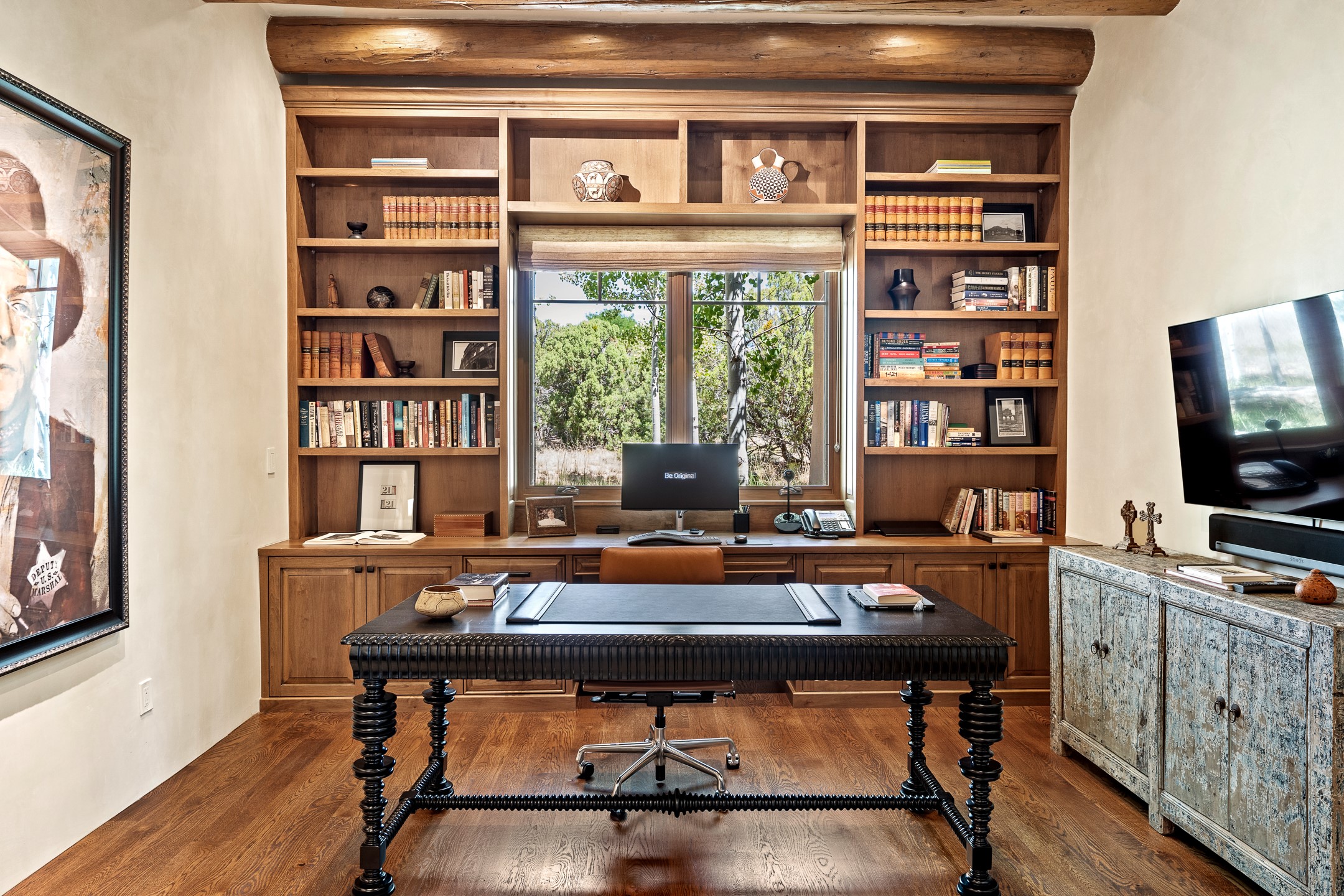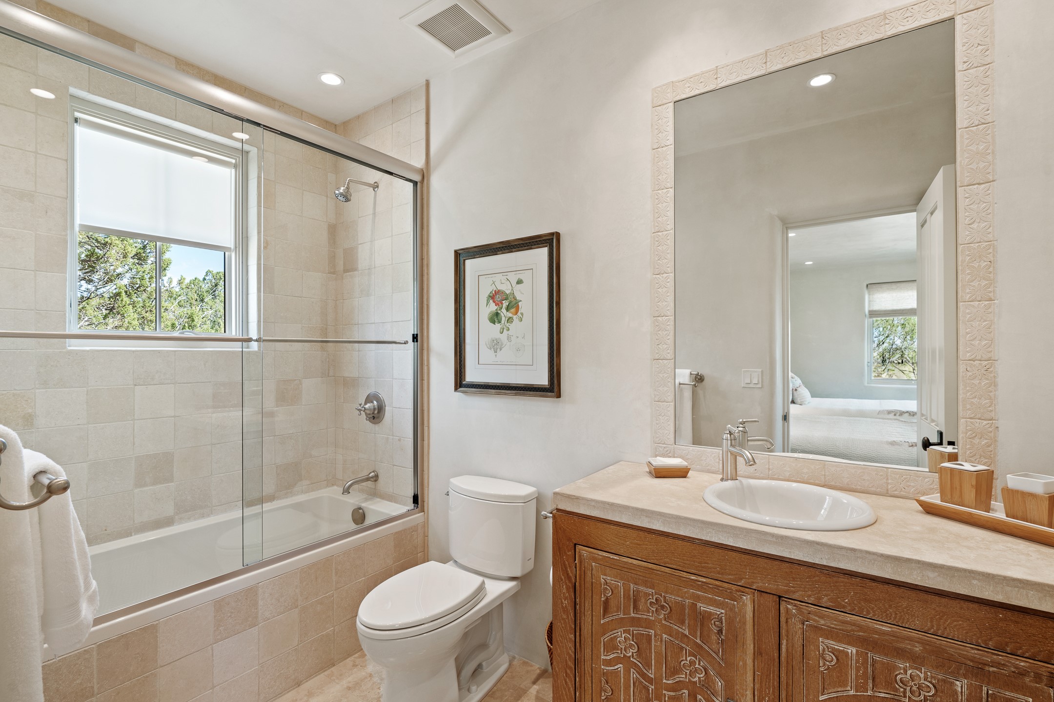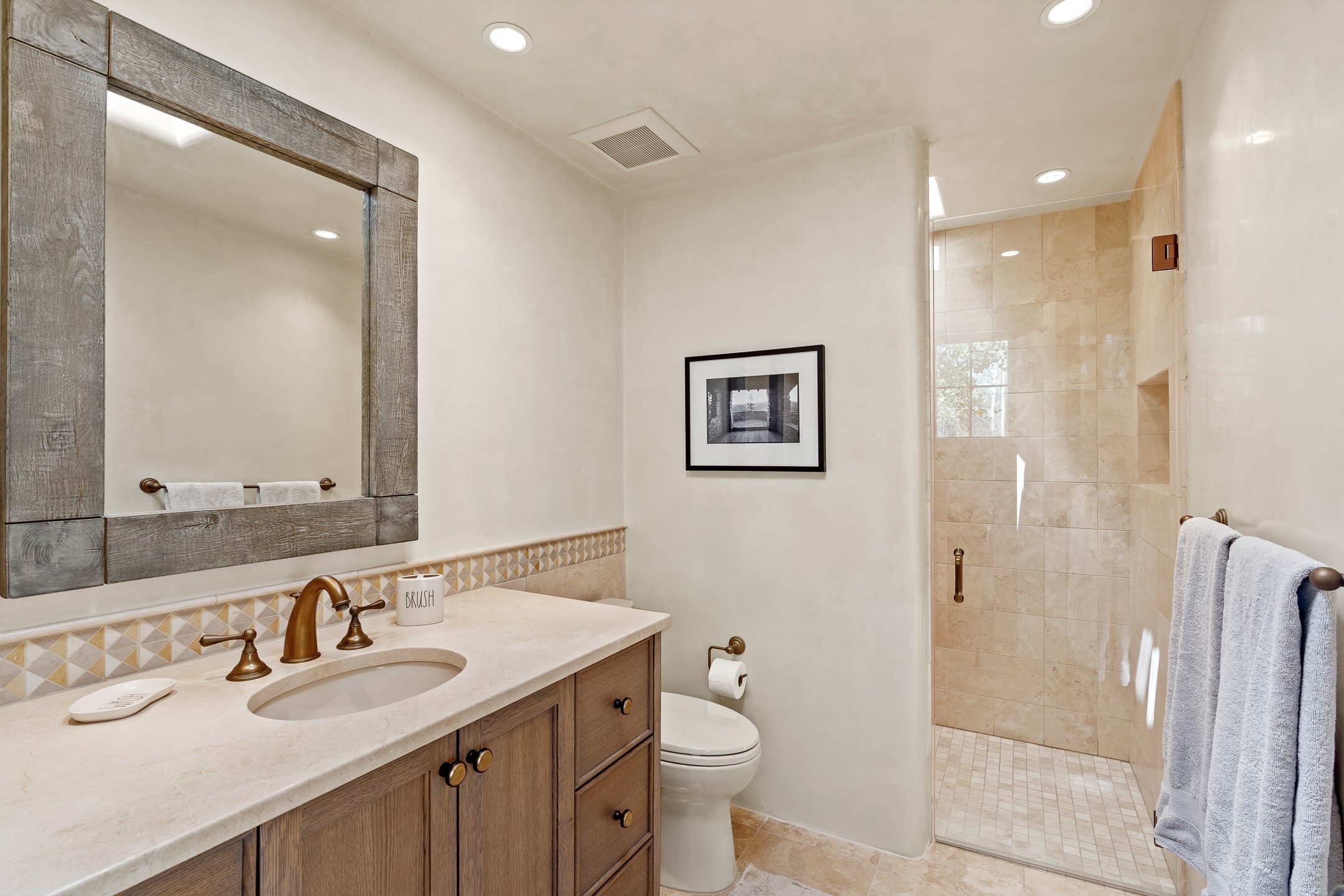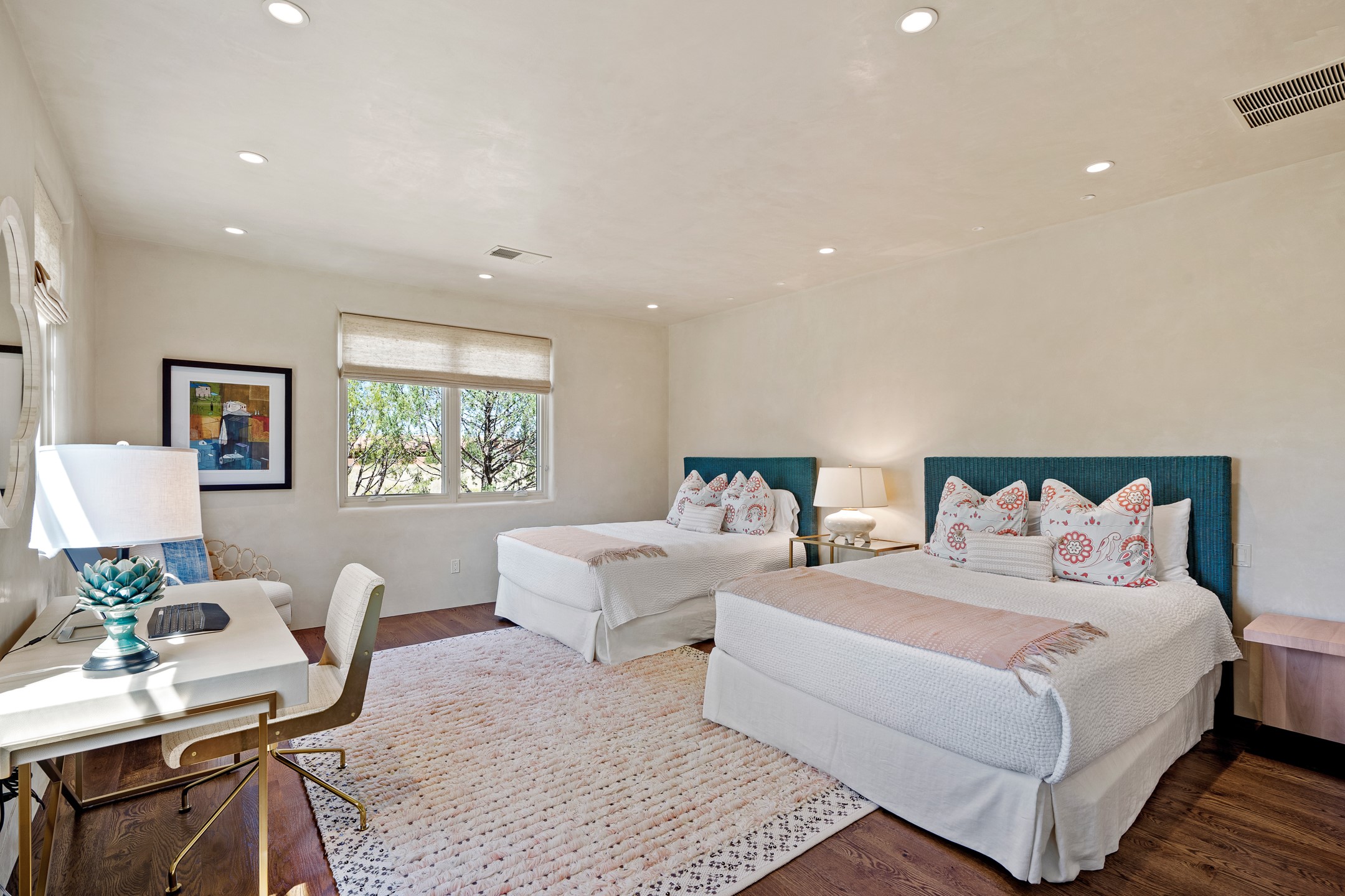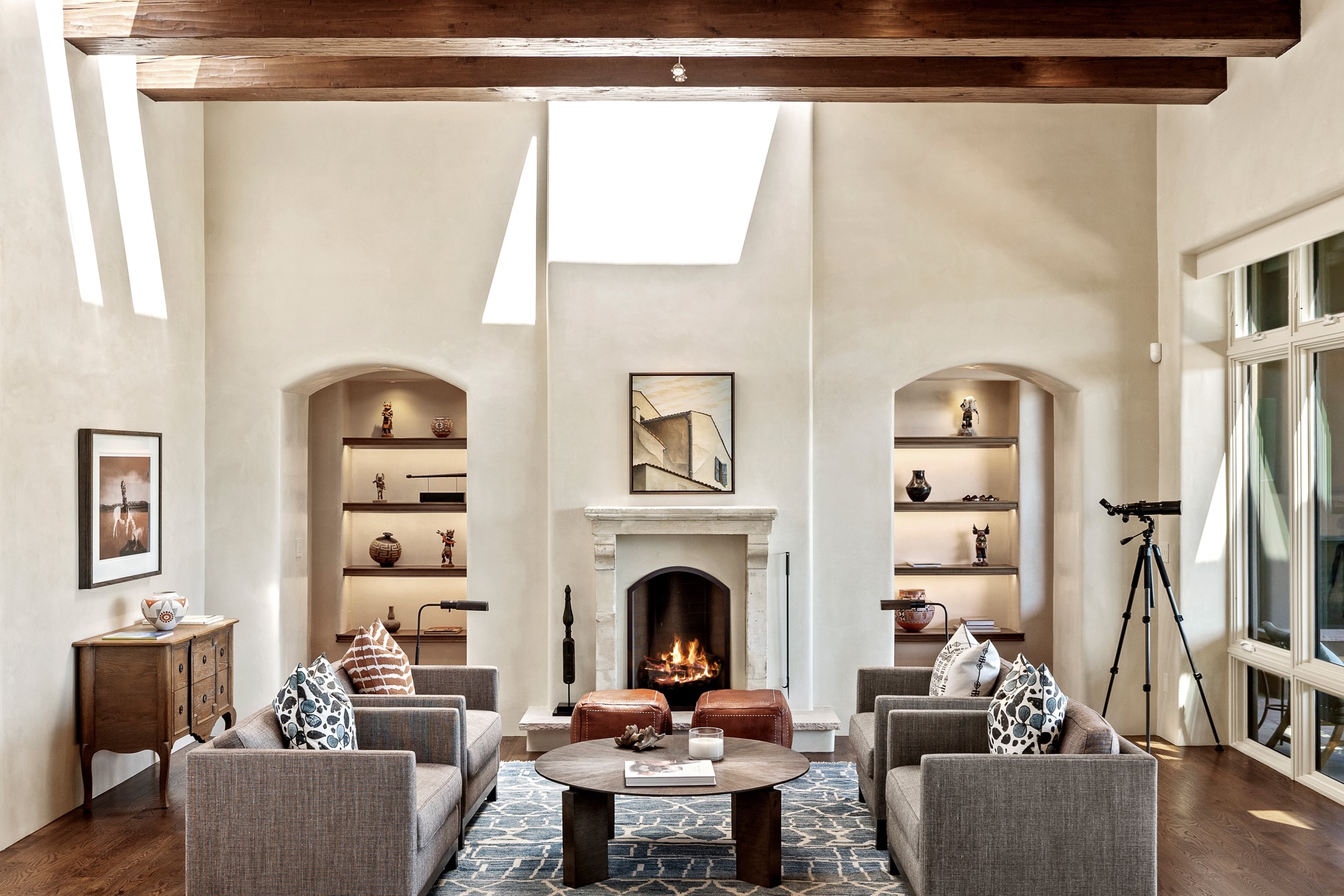 Rarely does a home achieve such a perfect balance of style, quality, natural beauty, and thoughtful design--but 20 Picacho Peak does so with ease. Set on five+ private acres off Wildhorse, this 4,800-square-foot masterpiece by Woods Design Builders offers 3 spacious, private bedrooms, five bathrooms, two dedicated offices, and exceptional indoor-outdoor living. From the primary suite and main living areas, panoramic Sangre de Cristo views create a constant backdrop, while the resort-style backyard--with its stunning in-ground pool, spa, and lush landscaping--invites year-round enjoyment.Completed in 2016 with meticulous attention to detail, the home features warm wood floors and beams, abundant natural light, and a layout that blends openness with intimate spaces. The chef's kitchen is equipped with Miele and Sub-Zero appliances, elegant Taj Mahal quartzite countertops, and a versatile wet bar seamlessly connecting to the living room. A casual den just off the kitchen offers an inviting retreat, while the adjacent great room and open dining area are ideal for entertaining. The primary suite is a true sanctuary, complete with a kiva fireplace, private portal access, a beautifully remodeled spa bath, and a grand walk-in closet. A second kiva graces the adjoining library/office--perfect for quiet work or reading by the fire. Guest quarters are thoughtfully separated, offering generous bedrooms, a private den, and comfort for family or friends. From the pool terrace, a landscaped path leads to a serene seating area - an idyllic spot for stargazing under Santa Fe's expansive skies. Additional amenities include radiant in-floor heating along with central heat & refrigerated air, a spacious two-car garage, abundant storage, and access to Las Campanas' world-class golf, dining, spa, and equestrian facilities. A golf equity membership to the club is available for separate purchase. Las Campanas HOA provides 24 hour security, gates, 24/7 Paramedic services, walking paths and maintenance. A rare offering in one of Santa Fe's most coveted communities - crafted for those who demand both beauty and quality.