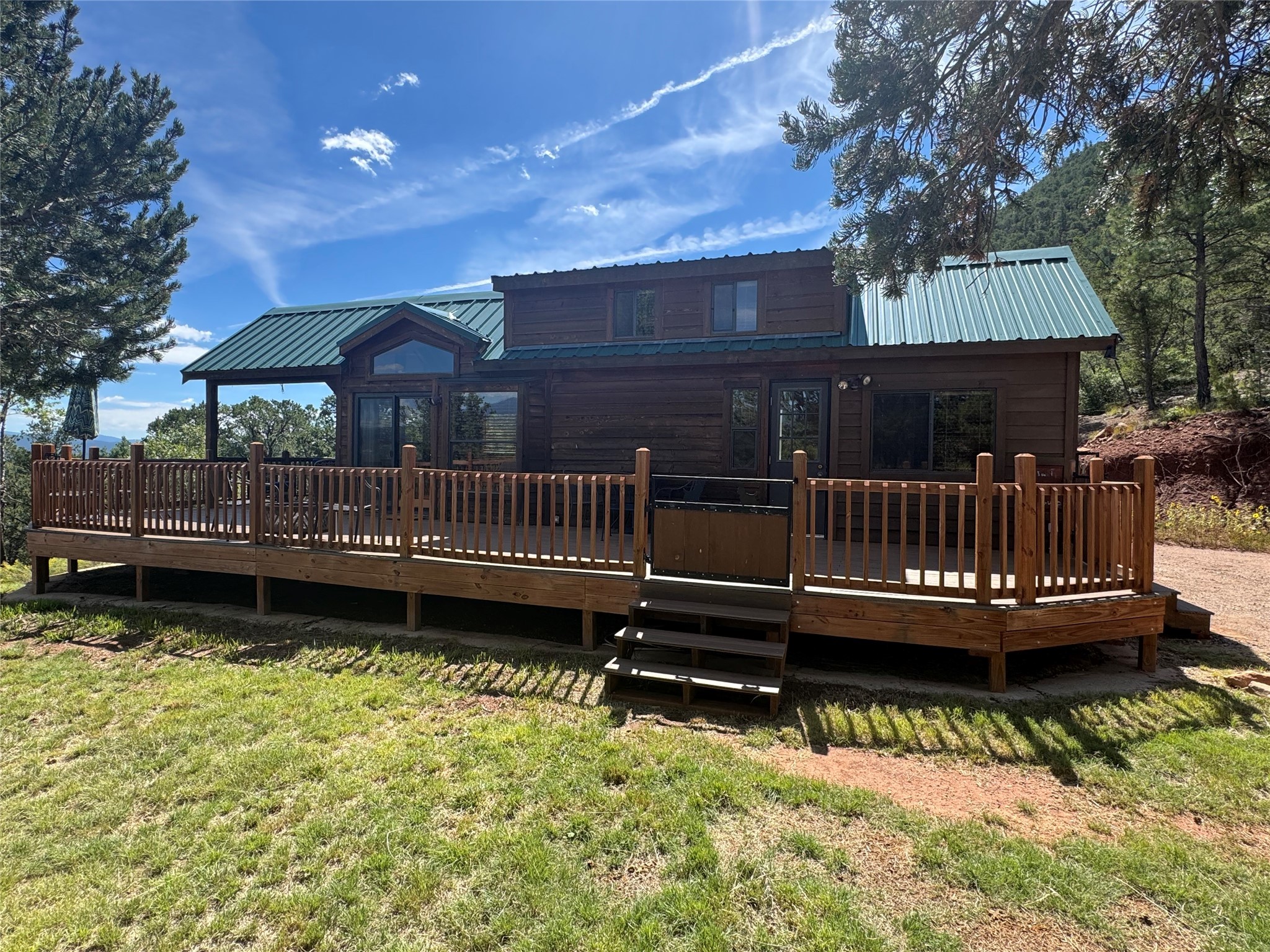 This cozy mountain cabin sits in a gated community in The Cliffs at Crystal Mesa. A stunning sanctuary in the historic Pecos Valley with access to the Santa Fe National Forest. This well thought out development is located on 400 acres, with a remaining 16 home sites ranging from 5-50 acres, offering residents a retreat feeling environment for their home and lifestyle. The infrastructure offers shared wells, electric, phone lines, fire hydrants, and well-maintained roads. A mere 20 - 25 mins to Santa Fe, these home sites sit high on the mesa providing incredible views, hiking and biking trails and never-ending nature and landscape with privacy and serenity. The Cliffs also offer community picnic area with BBQ pits and forever views for entertaining. All covenants are designed to work smoothly with some leniency to assist people in building their perfect property. This opportunity brings sustainable living, a modern natural construction style, in-door/outdoor living, passive solar and low maintenance design and very desirable underground utilities!