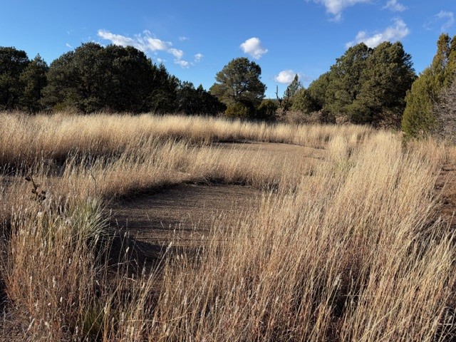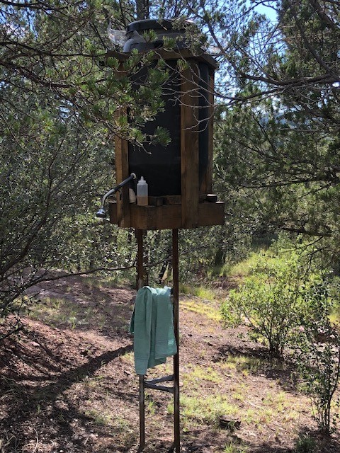 Fascinating geodesic dome home on five fenced acres which can be subdivided into 2 acre lots. The home features two primary suites with adjoining living areas. Downstairs suite has a Jacuzzi tub and a new Andersen window with eastern exposure. Awaken with the morning sun! Sunsets illuminate the upstairs suite with an unobstructed view of Hermit's Peak and beyond. New Andersen windows catch the breeze through the trees for cross ventilation.The manicured front yard is great for bocce ball or chipping from the rough. Enclosed carport and workshop are joined by a concrete pad. The 464' deep well pumps 15 GPM and is sufficient to water the trees, raised beds, a garden, and wash the cars, as well as provide for all domestic needs.The lower acreage is heavily forested and has a separate entrance. Water and power are available on the road. There is a 40' x 60' paved tennis court that has been protected by a retaining wall.