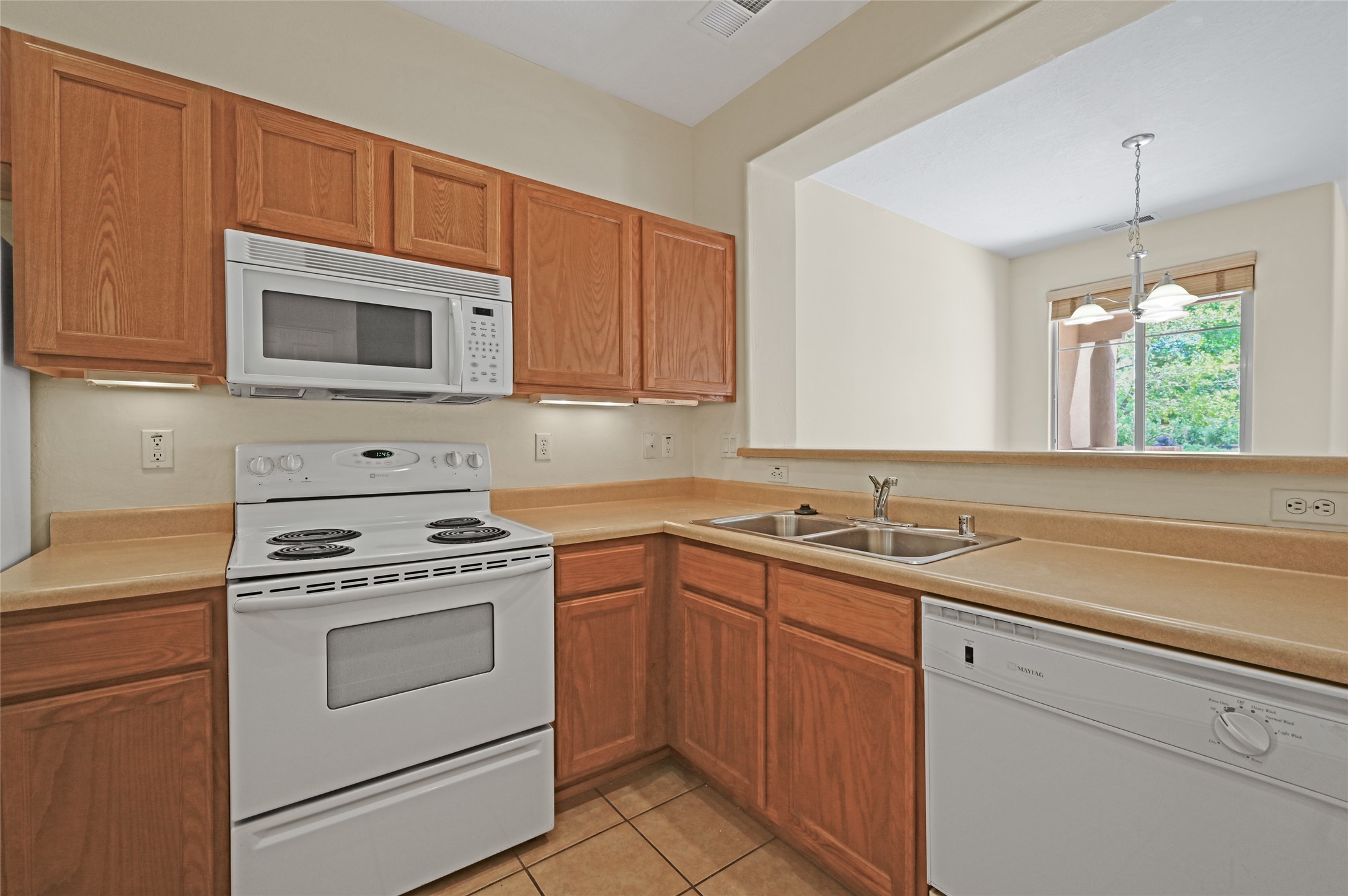 This contemporary pueblo-designed townhome offers 1264 square feet of comfortable living space spread across two levels. On the ground floor, you'll discover a spacious living room featuring a cozy fireplace, a well-appointed kitchen complete with appliances, and a convenient half bathroom. Upstairs, there are two generously sized bedrooms, each boasting its own full bathroom and an extra-large closet providing ample storage. The primary bedroom also includes a private outdoor deck, offering a perfect spot to relax and enjoy the stunning western sunset views. With its private entrance and courtyard, this townhome is designed for very easy and comfortable living. Its location is situated directly across from the Rancho Viejo Village Park Plaza, which provides a peaceful environment with mature trees, lush green grass, and convenient walking trails. The townhome is ideally located on the southwestern side of Santa Fe, surrounded by ample open space perfect for various outdoor activities. Schedule a showing today.