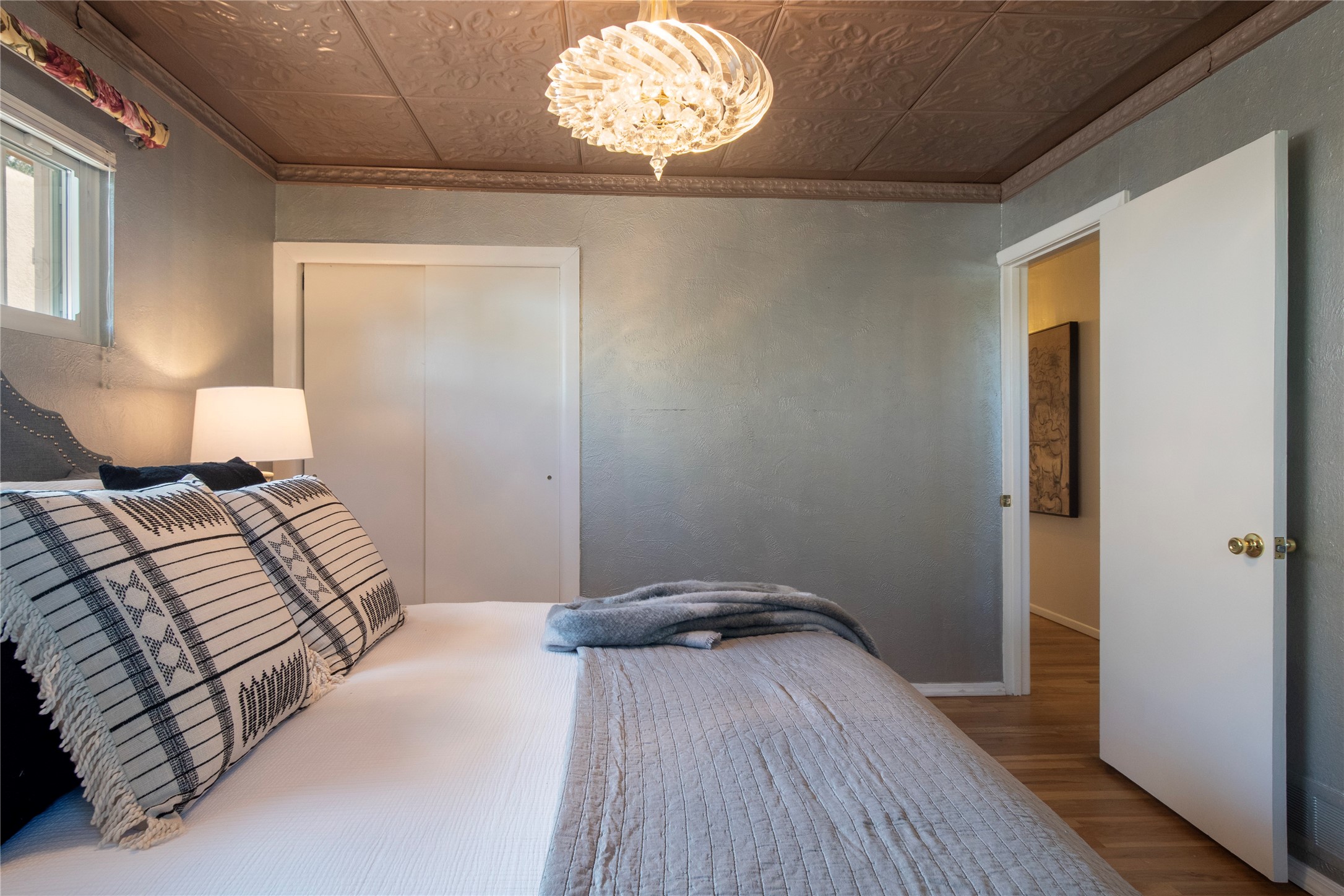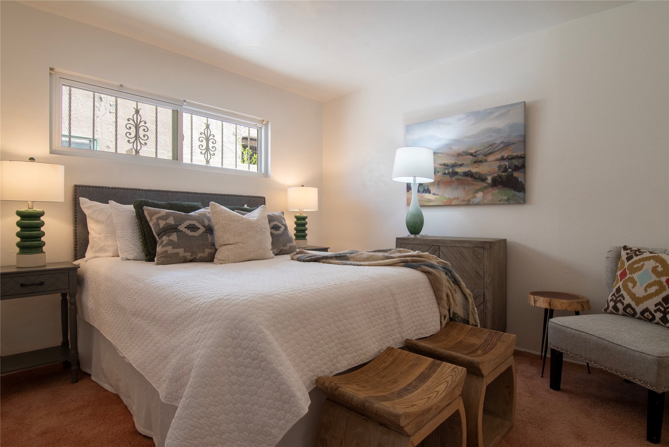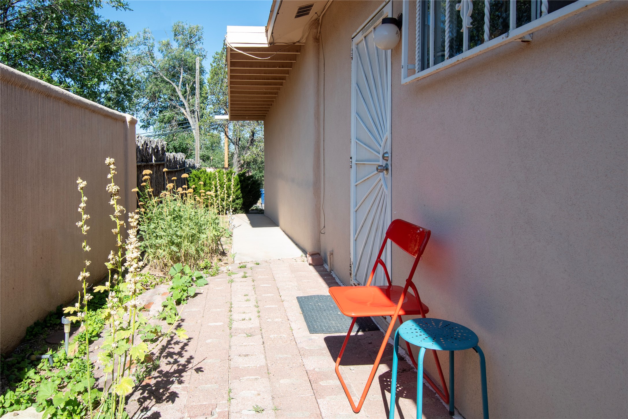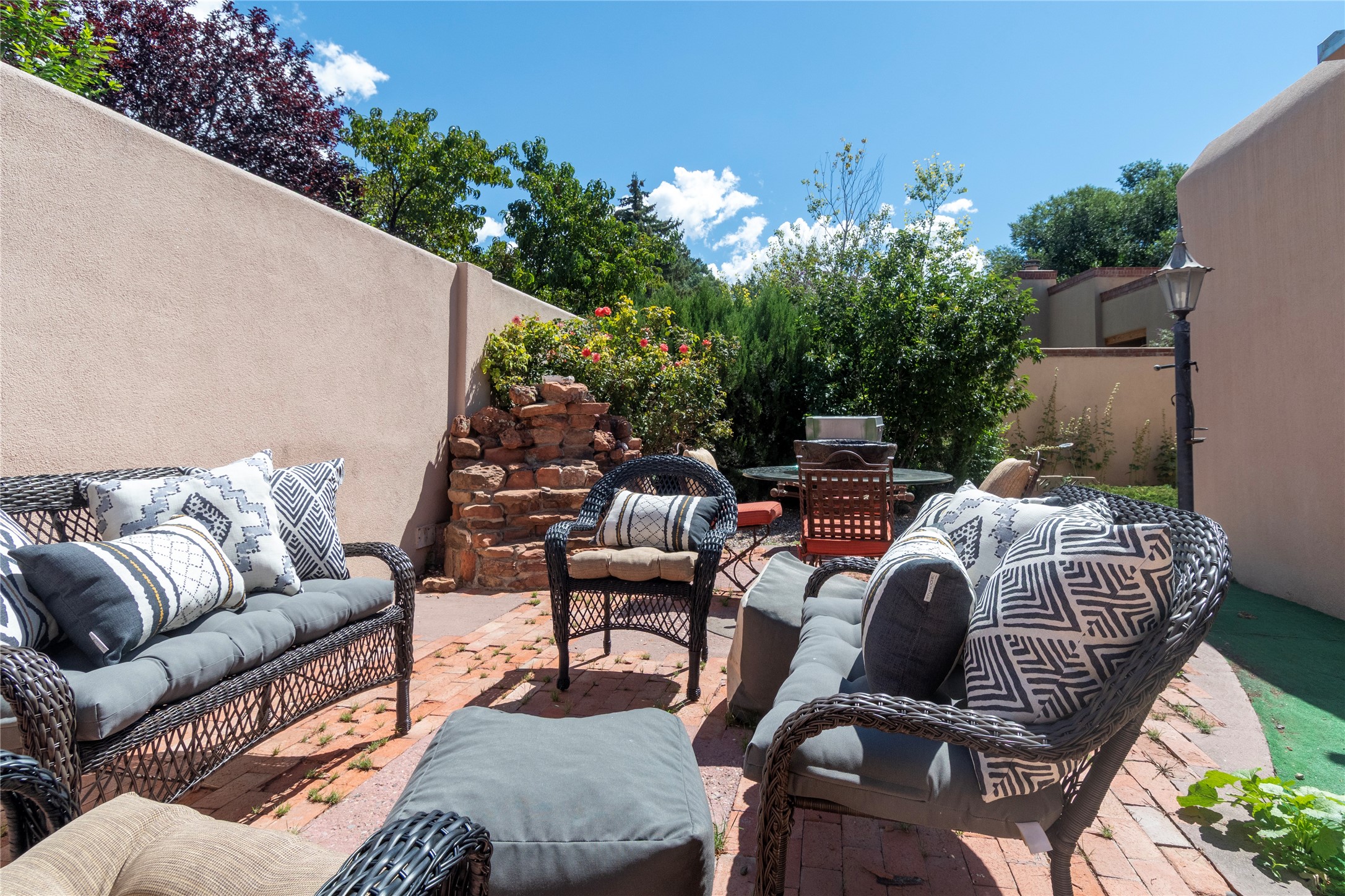 This charming residence located at 1011 Don Gaspar Ave offers a warm and inviting atmosphere with its thoughtfully designed layout and appealing features. The main house boasts three spacious bedrooms and three bathrooms, providing ample space for family and guests. The large, cozy living room is a highlight that creates a welcoming ambiance, perfect for relaxing evenings. Adjacent to the living area is a quaint dining room, ideal for intimate dinners or entertaining friends. The eat-in kitchen is both functional and charming, equipped with enough space for casual family meals and meal preparation. The upstairs of the main house is a versatile space, perfect for use as a meditation or yoga room, offering tranquil views to the west and northeast that enhance relaxation and mindfulness. The property's outdoor areas are equally impressive, with a large inviting patio and grilling area, perfect for outdoor gatherings and enjoying the pleasant New Mexico climate. Two storage buildings are situated at the back of the house, providing convenient space for storage or hobbies. Privacy is a key feature of this property, as it is securely walled off, ensuring a secluded environment. The backyard is designed for outdoor enjoyment and entertaining. Additionally, there is a separate guest house that includes a bedroom, bathroom, and a delightful kitchen, along with an outdoor area that invites relaxation and socializing. The property's location offers easy access to downtown Santa Fe and Canyon Road, making it convenient for exploring local art, culture, and dining options. This property combines comfort, privacy, and functionality, making it an ideal retreat in the Capitol District.