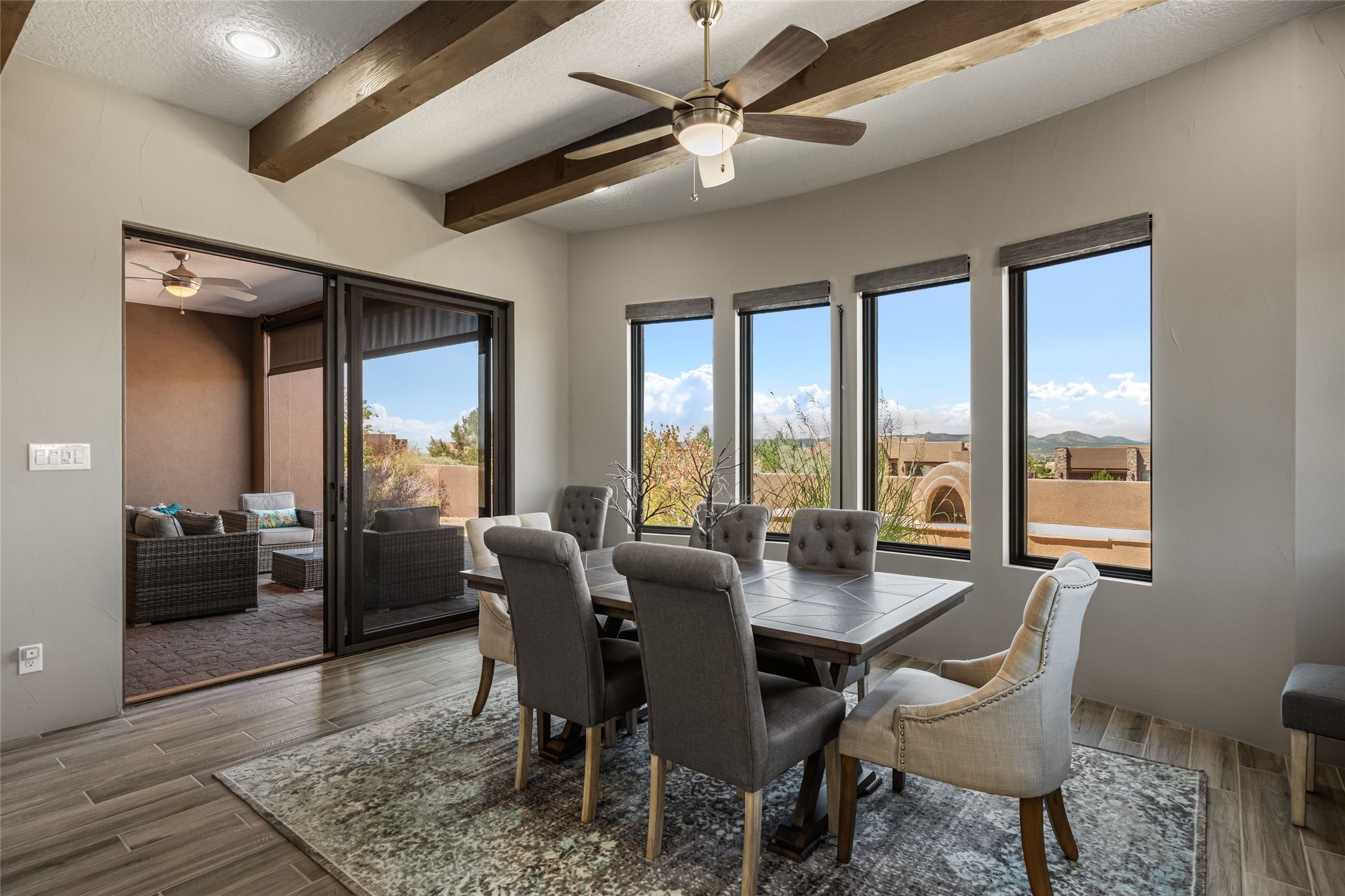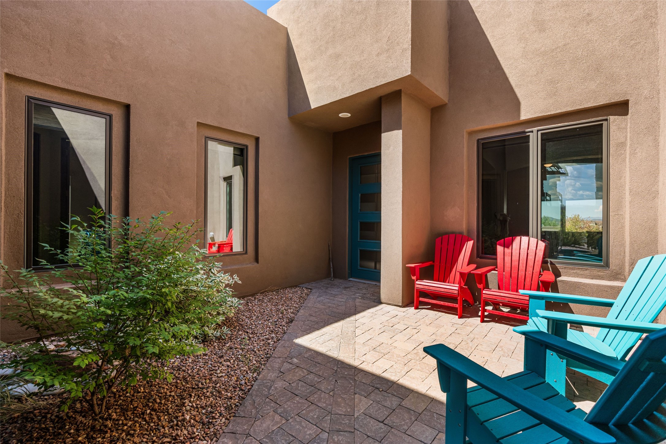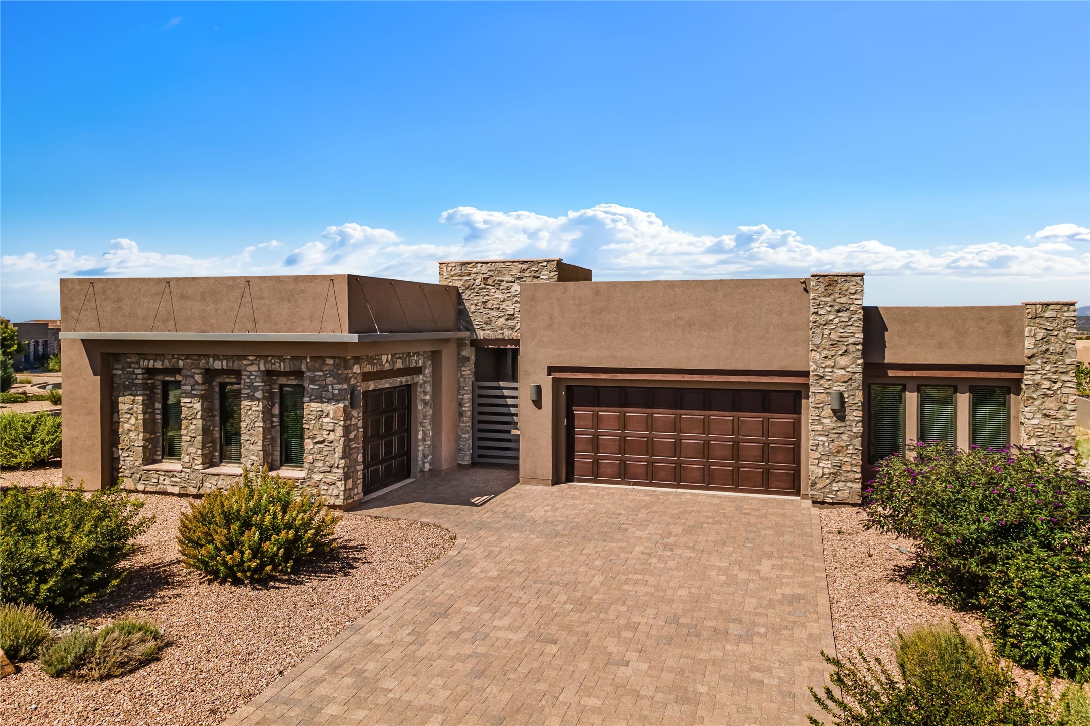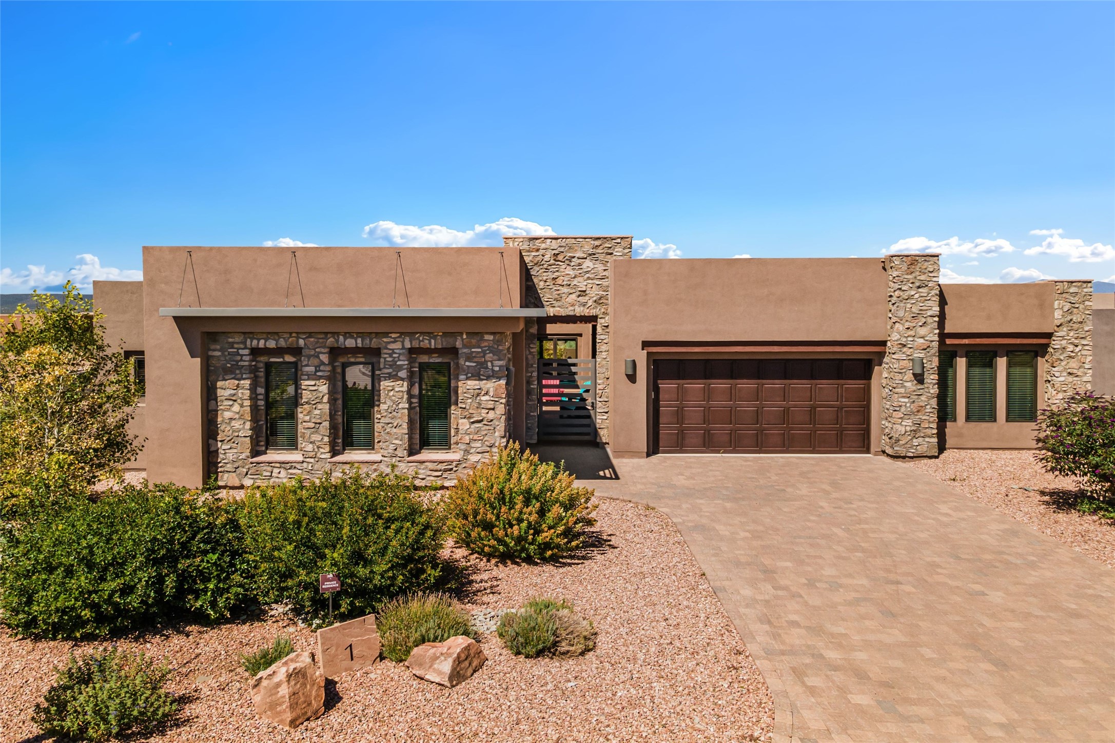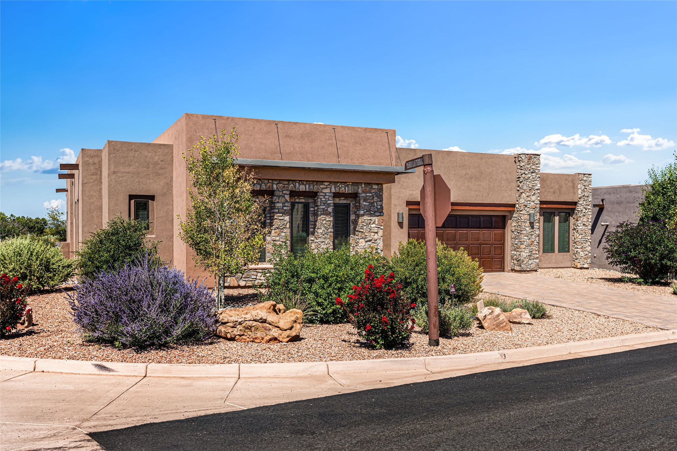 Well-sited Las Campanas 3-bedroom 2.5-bath home with breathtaking sunset mountain views. Single level, no interior steps. Inviting open floor plan that seamlessly connects two living areas. The ceramic tile floors throughout the home not only enhance the aesthetic appeal but also offer easy maintenance. The kitchen is appointed with upgraded cabinets and counter tops, spacious center island with prep sink and generous walk-in pantry. Large laundry room, complete with a sink and extra cabinets. Outdoor portal expands dining and entertaining space. Third bedroom offers flexibility as a studio/office. Over $268k builder upgrades include premium lot and elevation, fireplace, BBQ/Grill, storage room and California closets. With a 3-car garage, you'll have plenty of room for vehicles, tools, and recreational gear. State of the art security system that includes inside and outside cameras that can be viewed on- site or remotely. Las Campanas is gated community with a 24-hour security and EMT service. Membership in the Club at Las Campanas is available upon approval and for an extra fee.