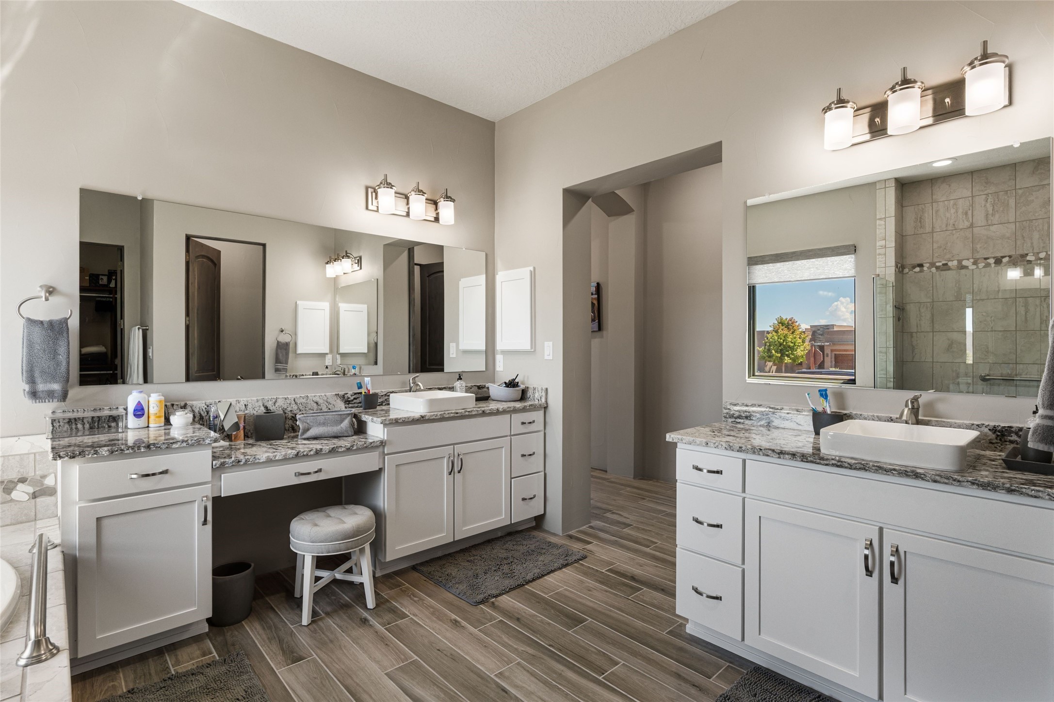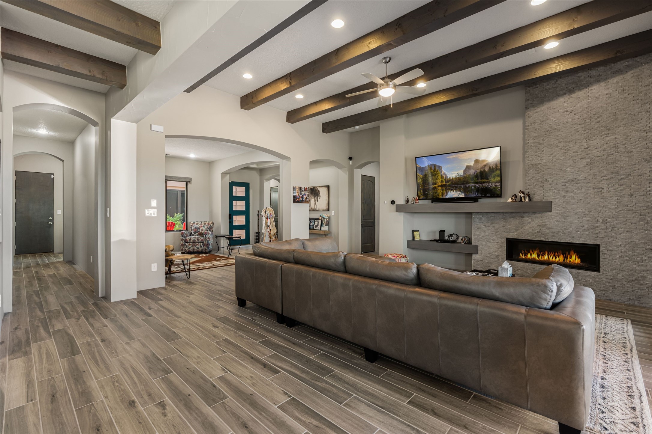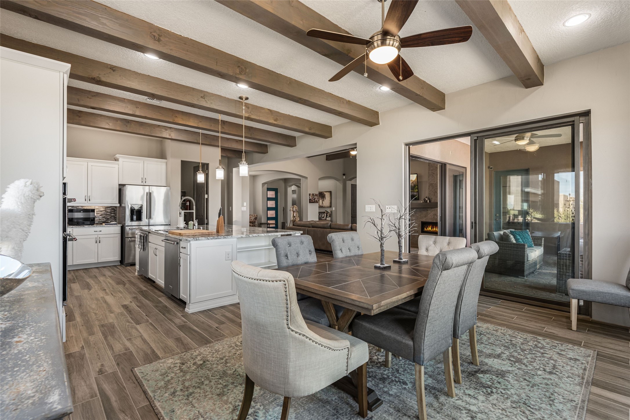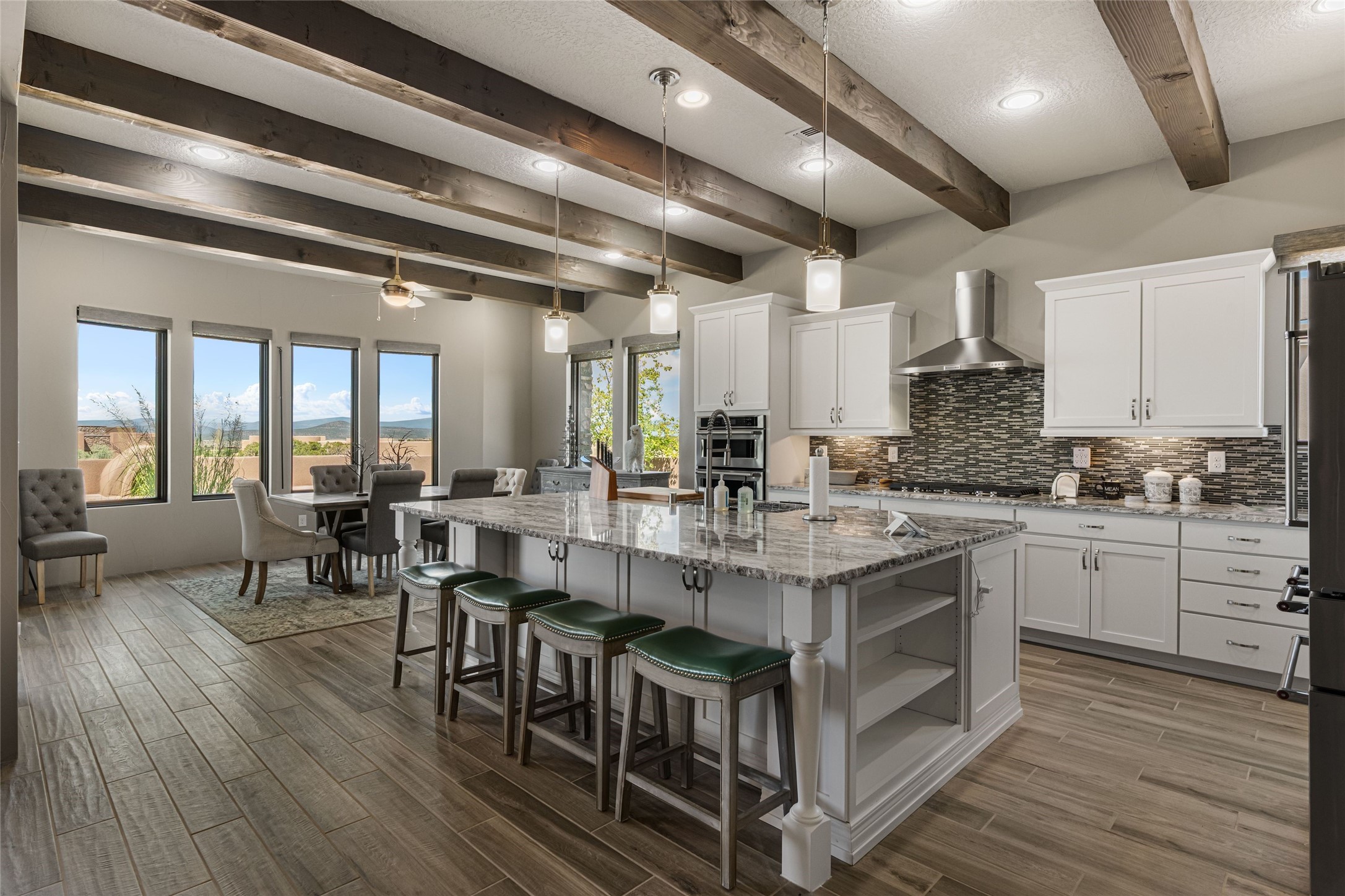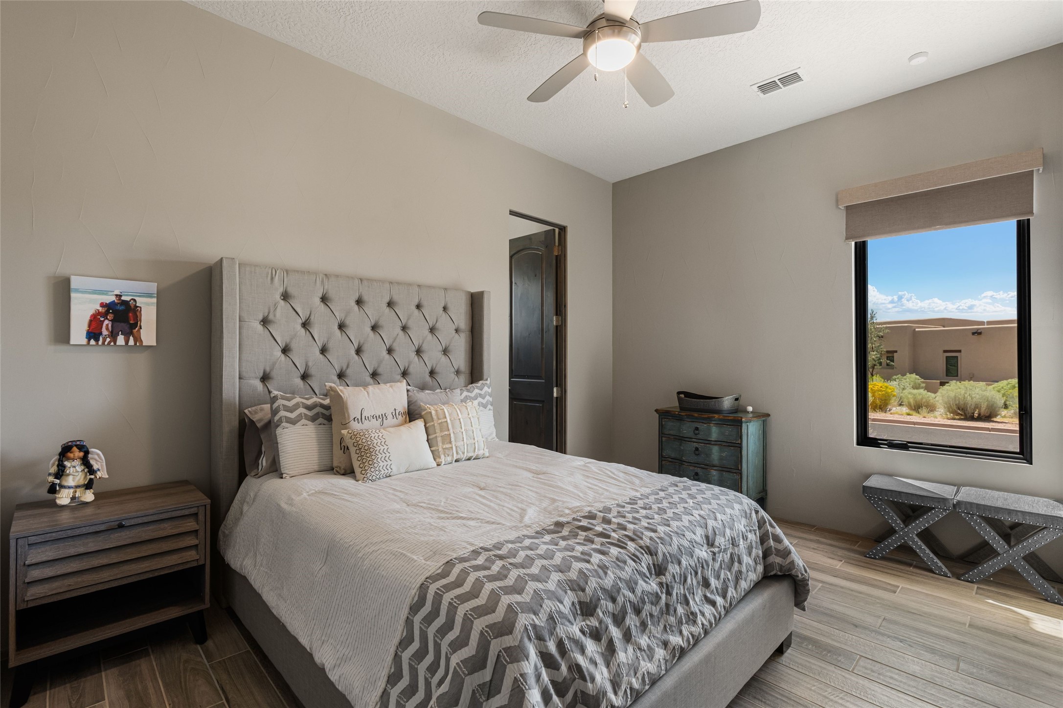 Well-sited Las Campanas 3-bedroom 2.5-bath home with breathtaking sunset mountain views. Single level, no interior steps. Inviting open floor plan that seamlessly connects two living areas. The ceramic tile floors throughout the home not only enhance the aesthetic appeal but also offer easy maintenance. The kitchen is appointed with upgraded cabinets and counter tops, spacious center island with prep sink and generous walk-in pantry. Large laundry room, complete with a sink and extra cabinets. Outdoor portal expands dining and entertaining space. Third bedroom offers flexibility as a studio/office. Over $268k builder upgrades include premium lot and elevation, fireplace, BBQ/Grill, storage room and California closets. With a 3-car garage, you'll have plenty of room for vehicles, tools, and recreational gear. State of the art security system that includes inside and outside cameras that can be viewed on- site or remotely. Las Campanas is gated community with a 24-hour security and EMT service. Membership in the Club at Las Campanas is available upon approval and for an extra fee.