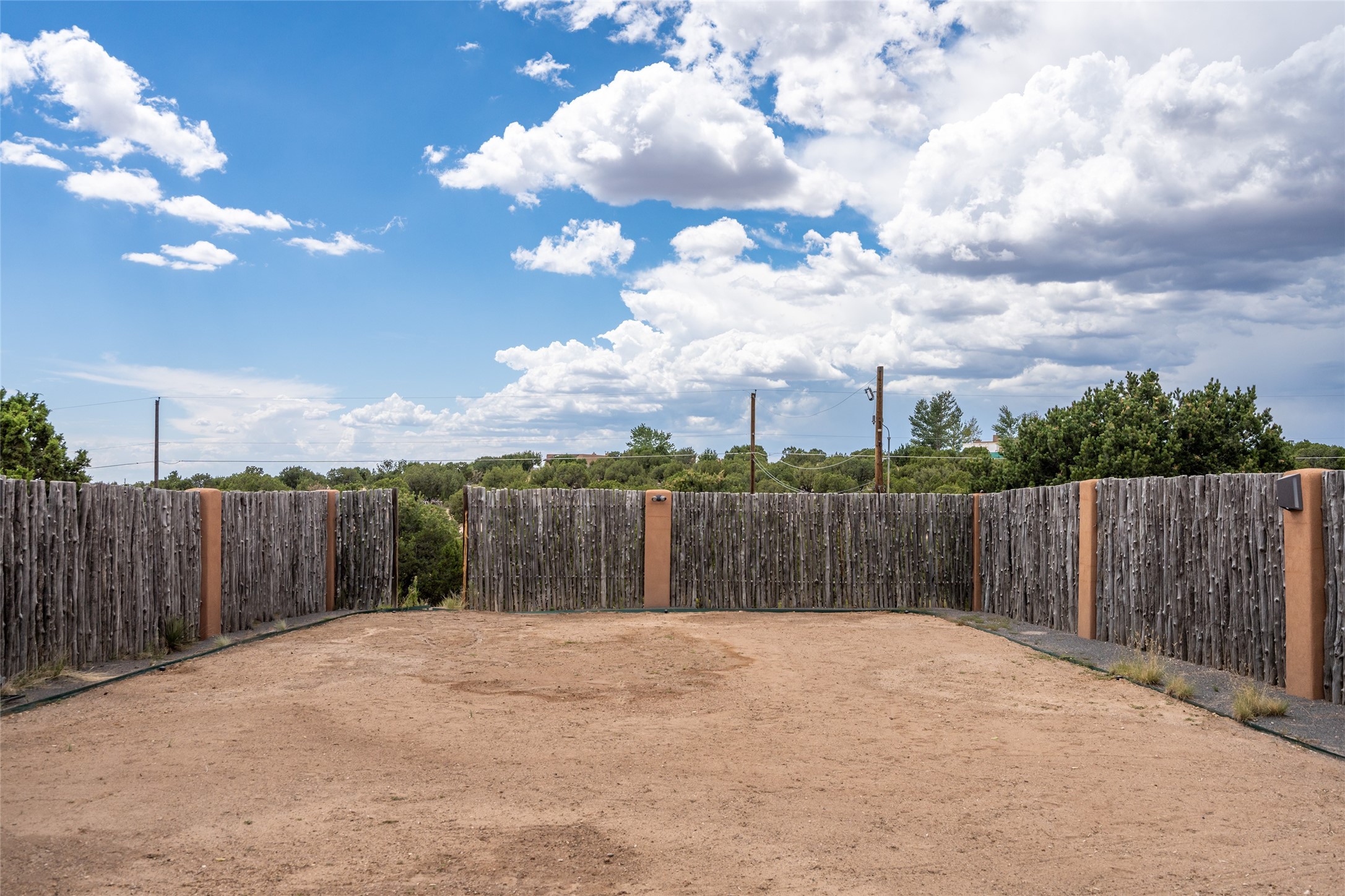 Price Improved below appraisal!!! This home has gorgeous land and NO HOA fees for restrictions!! Lovely Santa Fe estate blends traditional adobe charm with modern comfort. A coyote fence outlines the entry and welcomes you to a light-filled sunroom that seamlessly connects indoor and outdoor spaces. The original adobe home features classic Santa Fe details--exposed vigas, rough-sawn ceilings, a kiva fireplace, banco seating, and brick floors. A 2004 addition introduced a barrel-ceiling hallway linking a 5-bedroom, 4-bath layout. The flexible office/5th bedroom with its own bath and fireplace opens to a private courtyard. The primary suite offers a spa-like retreat with dual vanities, a corner tub, and a walk-in closet. Bright, tastefully tiled bathrooms add charm throughout. Outside, mature trees, xeriscaping, and irrigated courtyards provide serene spaces for gathering, gardening, or sunset views. With easy access to town, this home is both a tranquil retreat and a convenient base for enjoying Santa Fe. Your animals are welcome!!!!