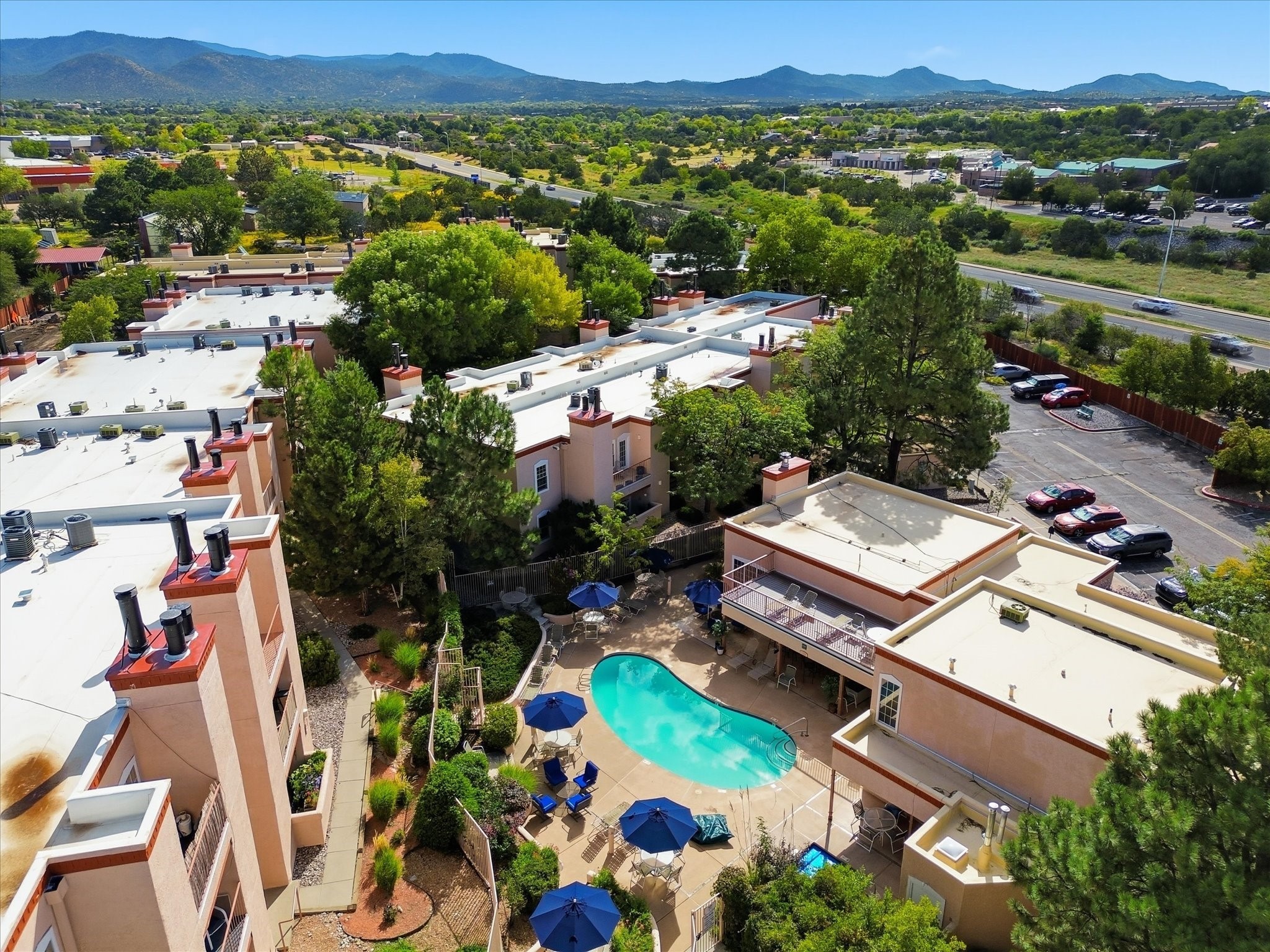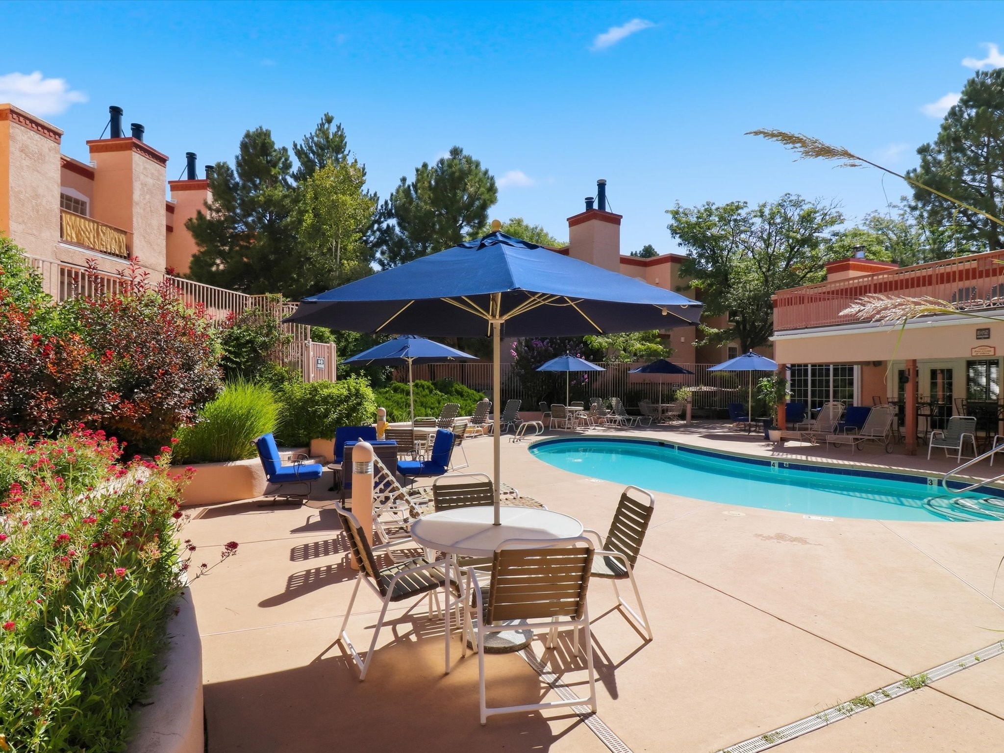 A well-maintained 2-bedroom, 2-bathroom ground-floor condo nestled within the sought-after Zia Vista community. Move-in ready and thoughtfully designed, this home offers the perfect blend of comfort, functionality, and modern convenience. Step inside to a bright, inviting space featuring an enclosed kitchen with granite countertops, complete with essential appliances for the new homeowner. The breakfast counter seamlessly connects the kitchen to the dining area, which flows naturally into the spacious living room--perfect for entertaining or relaxing after a long day. From the living area, step out to your enclosed balcony, a sun-filled retreat ideal for morning coffee or quiet reading. The primary bedroom features a private ensuite bath with a full glass-enclosed shower, while the second bedroom and bath provide flexibility for guests or a home office. A separate laundry area adds everyday convenience, and your reserved parking space right out-front makes coming home a breeze. Located close to the main gate and clubhouse, this condo offers easy access to Zia Vista's lots of amenities, including a heated swimming pool, relaxing hot tub, community clubhouse, activity court, scenic walking trails, and on-site laundry facilities--all within a secure, gated environment for added peace of mind. Whether you're a young professional, starting a family, or enjoying retirement, this home offers the ideal mix of comfort, convenience, and community. Situated just minutes from shopping, dining, and outdoor recreation, you'll experience the best of Santa Fe living right at your doorstep.