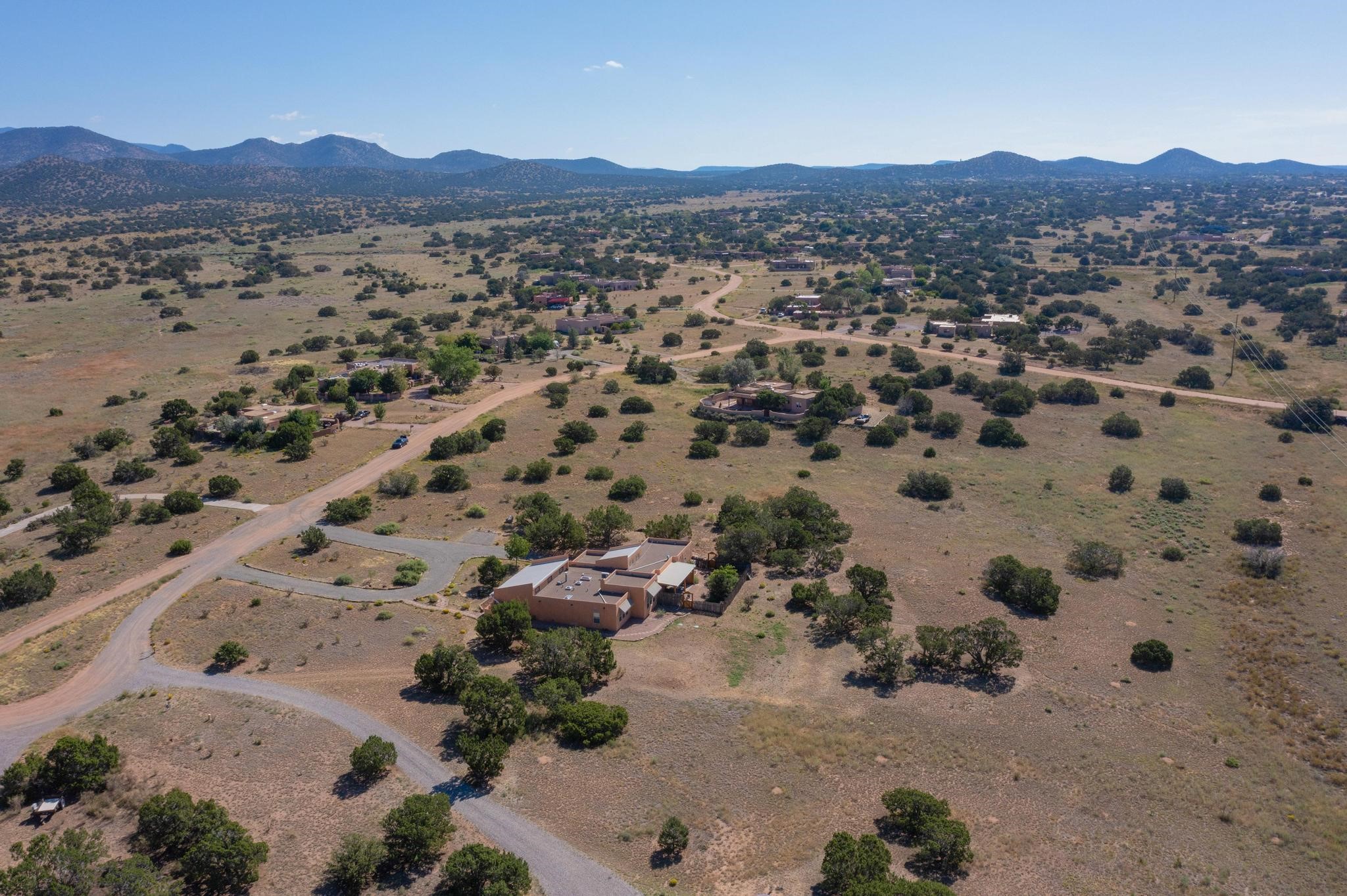 Lovely sunset view rolling terrain on a cul de sac and bordering a large greenbelt. This lot has good solar exposure building sites with natural gas, public electric and internet in the street, just requires a well. One of very few remaining lots left in Eldorado. This lot accesses all of Eldorado community amenities, pool. pickleball, tennis, basketball, disc golf, greenbelt, trails and more. It is close to local shopping centers, schools, library, senior center and parks, only minutes into historic Santa Fe.