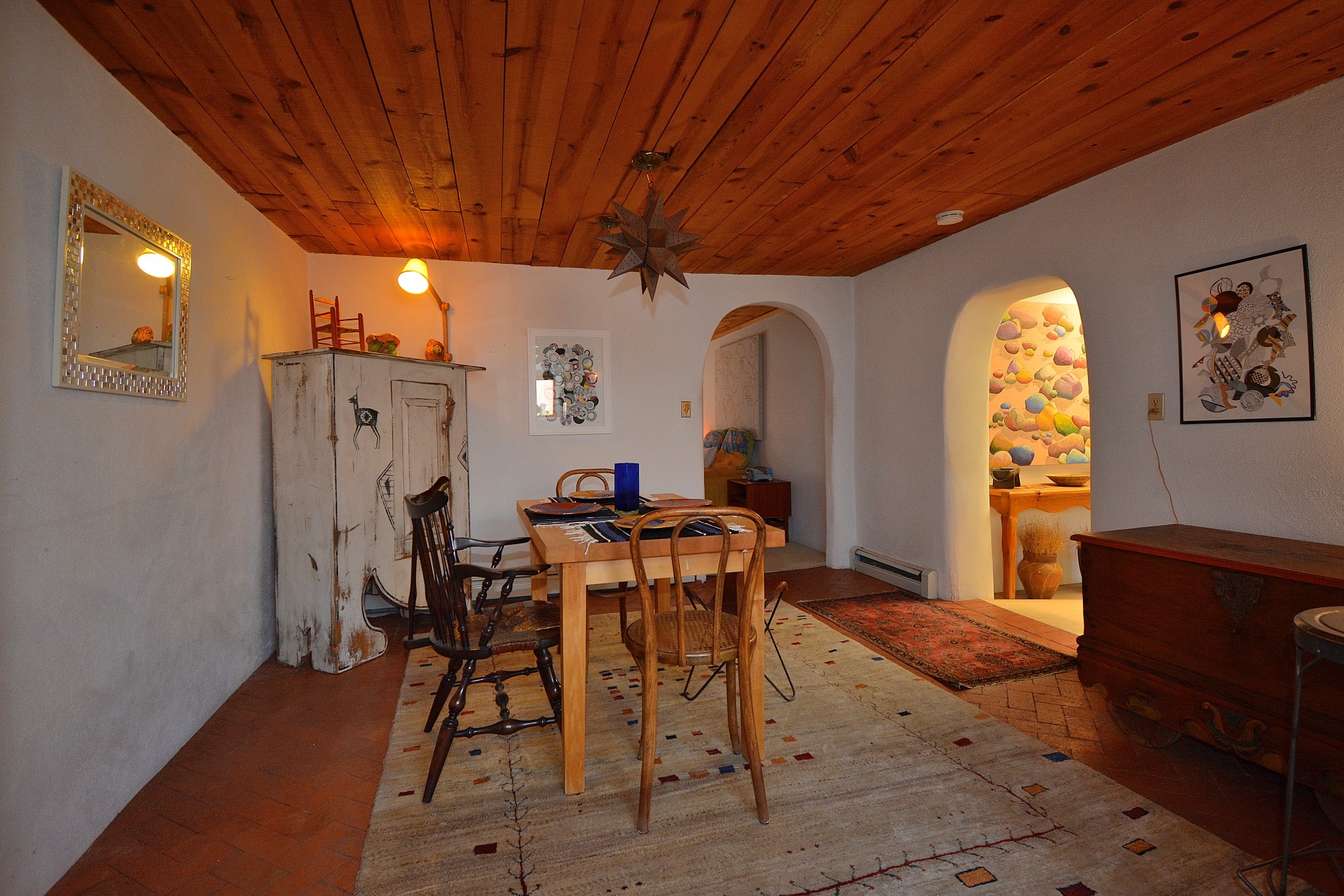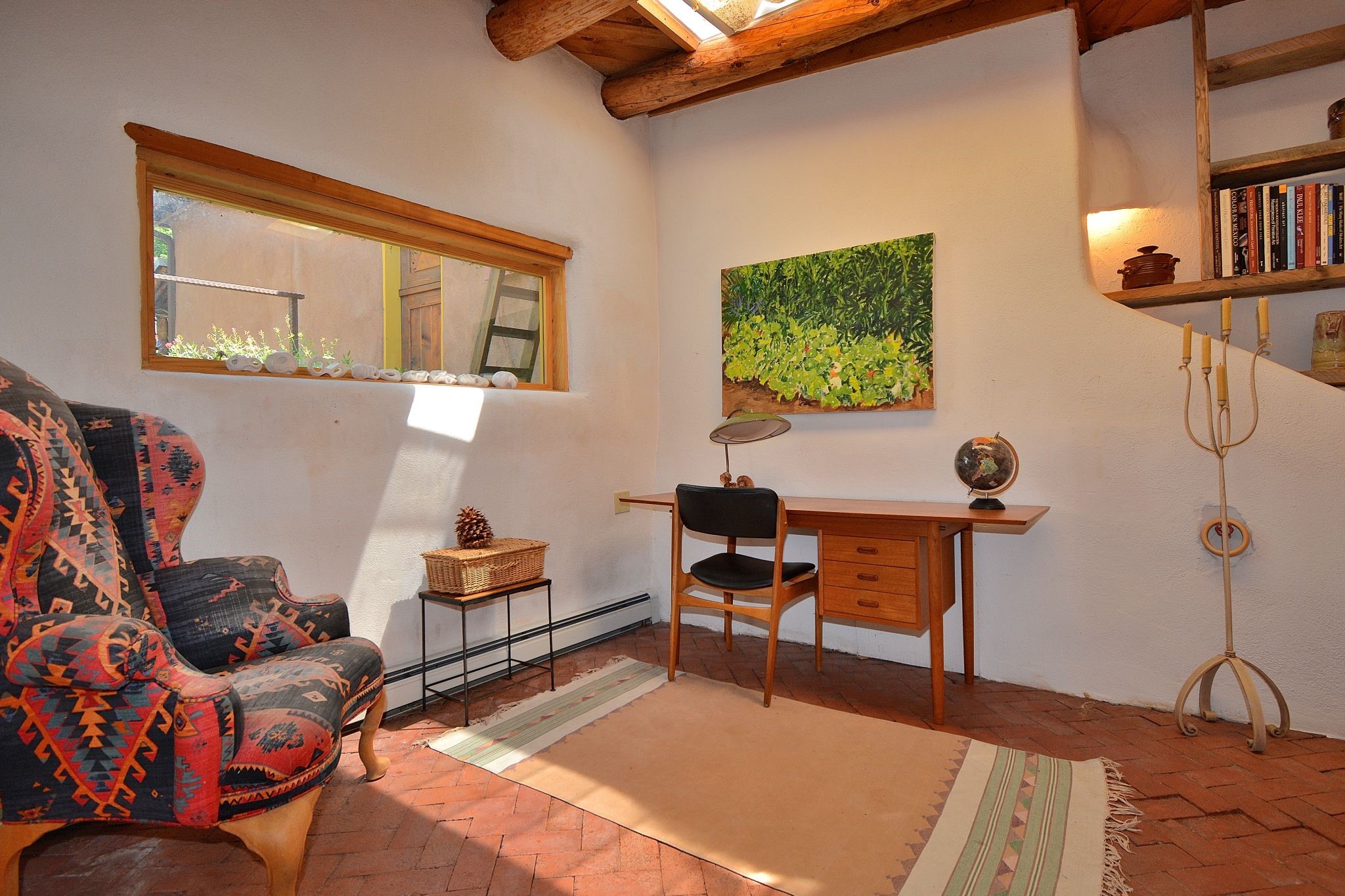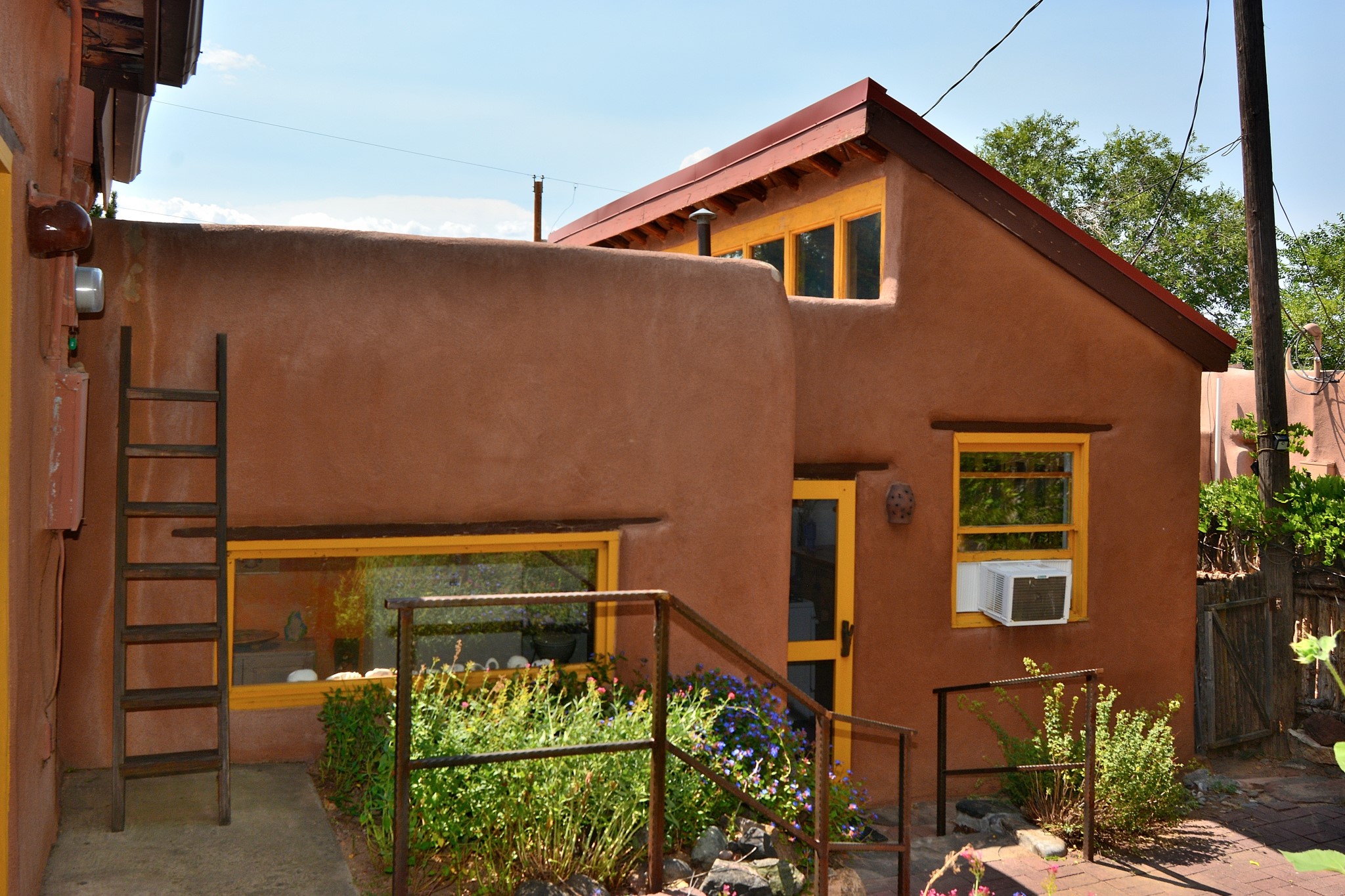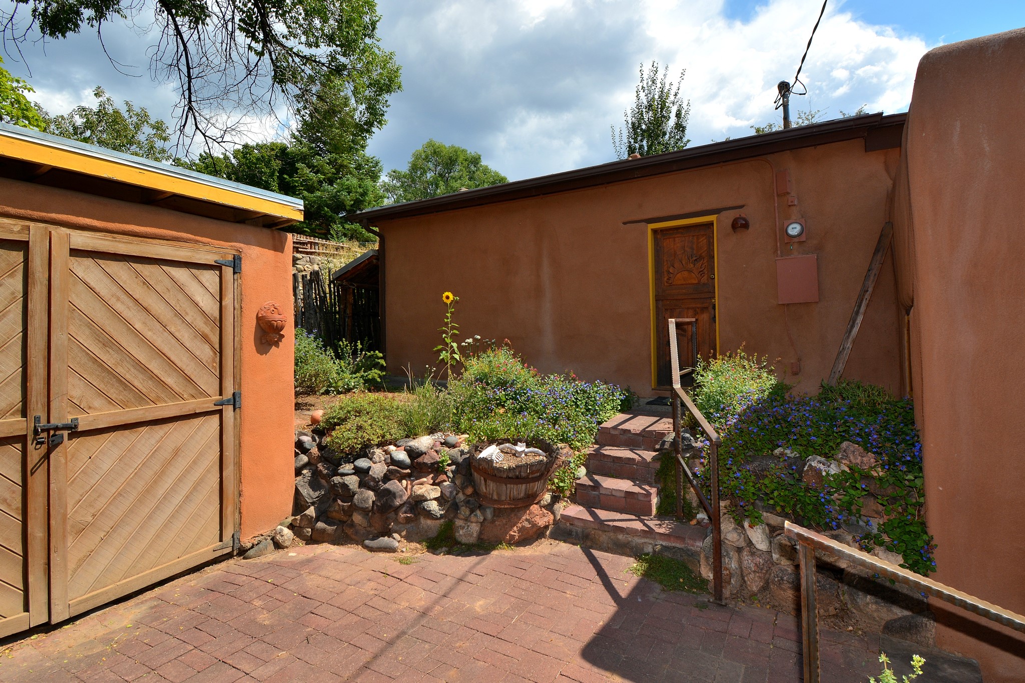 If your looking for an Ideal Santa Fe Home with historic Charm Stop and See! LOCATION LOCATION LOCATIONRecent price reduction and a new TPO roof overlay/ Brand New Skylights installed in November 2025..what's not to love! This home is located in the coveted Historic Eastside. This home is Quintessential Santa Fe Charm! Partial Adobe construction, Wood Frame, wood ceilings, vigas, 2 wood burning Kiva Fireplaces, Brick floors with radiant heat. CASITA round back with Separate entrance. Home is a 10 minute walk to Canyon Road featuring Art galleries and many of SF best Dining establishments. The home offers mature gardens front/back and a secret terrace. The main house features a kitchen with amazing sunlit tall ceilings and windows. You will appreciate the original wood cabinetry and wood countertops. Breakfast area or office space off of the kitchen. laundry area is conveniently adjoined with the 1/2 bath. Behind the main house you'll find a private courtyard and an attached Casita complete with a loft space that currently serves as a sleeping area. There is a kitchenette, and a full bathroom(Shower needs to be remodeled but is functional). Occupy the casita as an extension of your home or use as an office or artist studio. The home has undergone a pre-inspection and is priced accordingly.