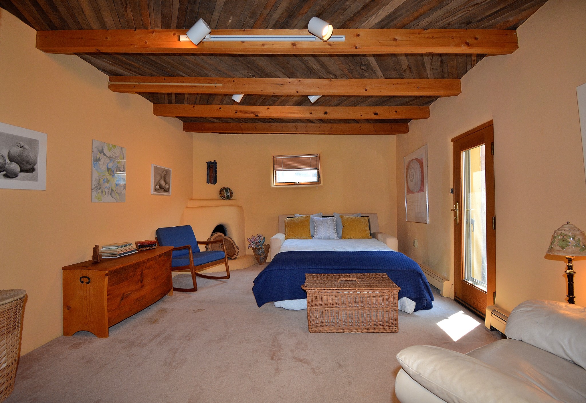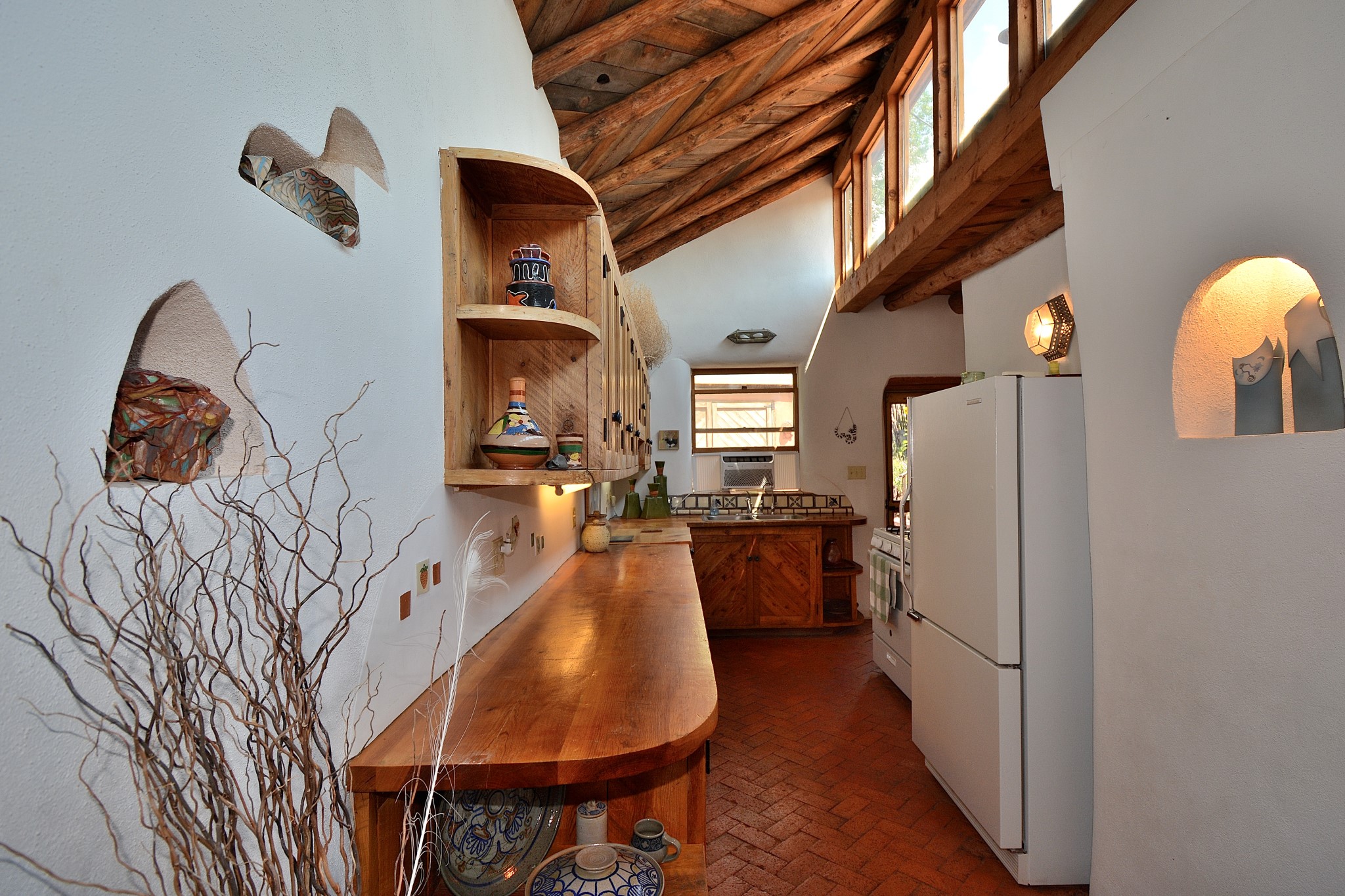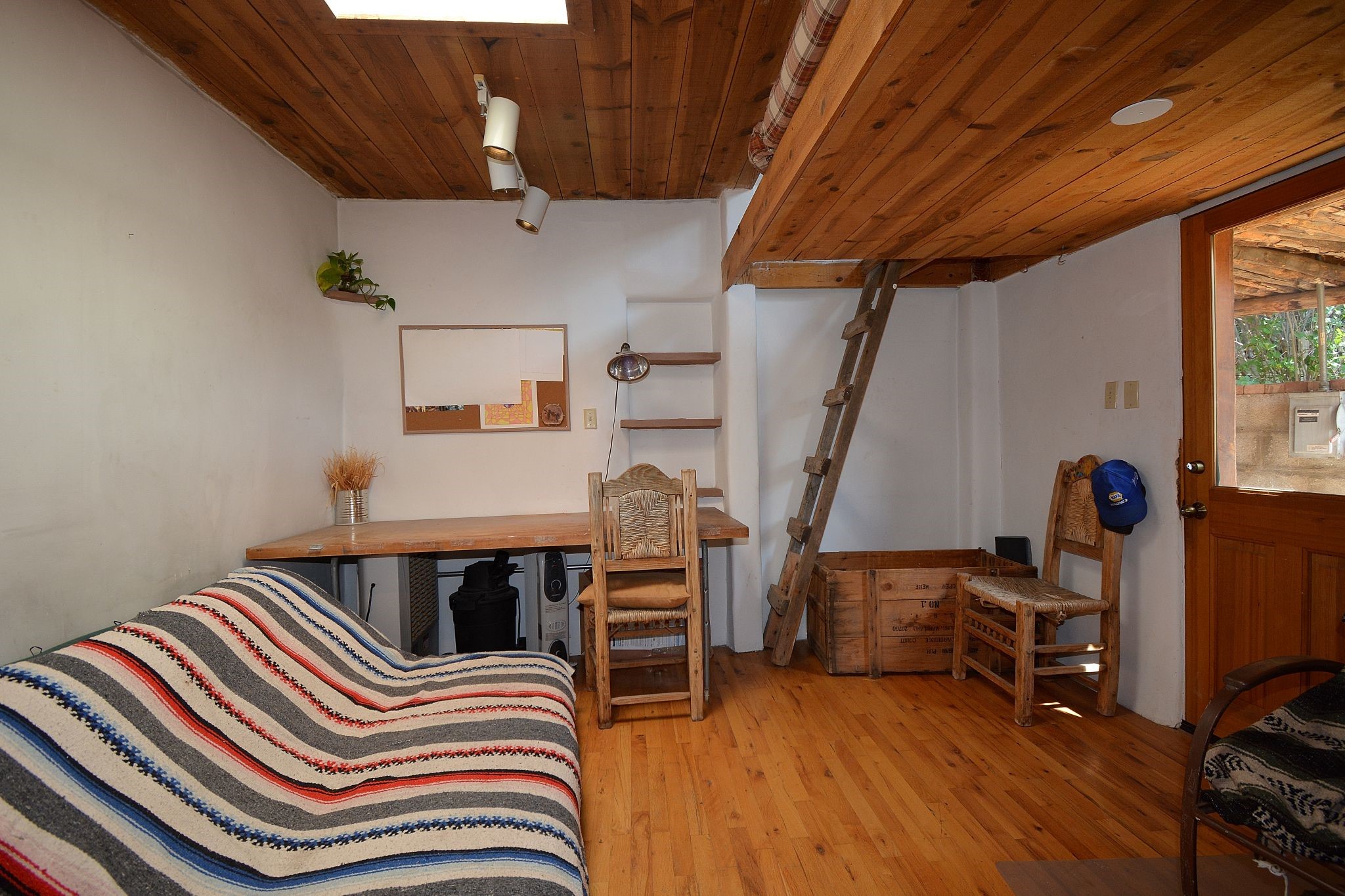 If your looking for an Ideal Santa Fe Home with historic Charm Stop and See! LOCATION LOCATION LOCATIONRecent price reduction and a new TPO roof overlay/ Brand New Skylights installed in November 2025..what's not to love! This home is located in the coveted Historic Eastside. This home is Quintessential Santa Fe Charm! Partial Adobe construction, Wood Frame, wood ceilings, vigas, 2 wood burning Kiva Fireplaces, Brick floors with radiant heat. CASITA round back with Separate entrance. Home is a 10 minute walk to Canyon Road featuring Art galleries and many of SF best Dining establishments. The home offers mature gardens front/back and a secret terrace. The main house features a kitchen with amazing sunlit tall ceilings and windows. You will appreciate the original wood cabinetry and wood countertops. Breakfast area or office space off of the kitchen. laundry area is conveniently adjoined with the 1/2 bath. Behind the main house you'll find a private courtyard and an attached Casita complete with a loft space that currently serves as a sleeping area. There is a kitchenette, and a full bathroom(Shower needs to be remodeled but is functional). Occupy the casita as an extension of your home or use as an office or artist studio. The home has undergone a pre-inspection and is priced accordingly.