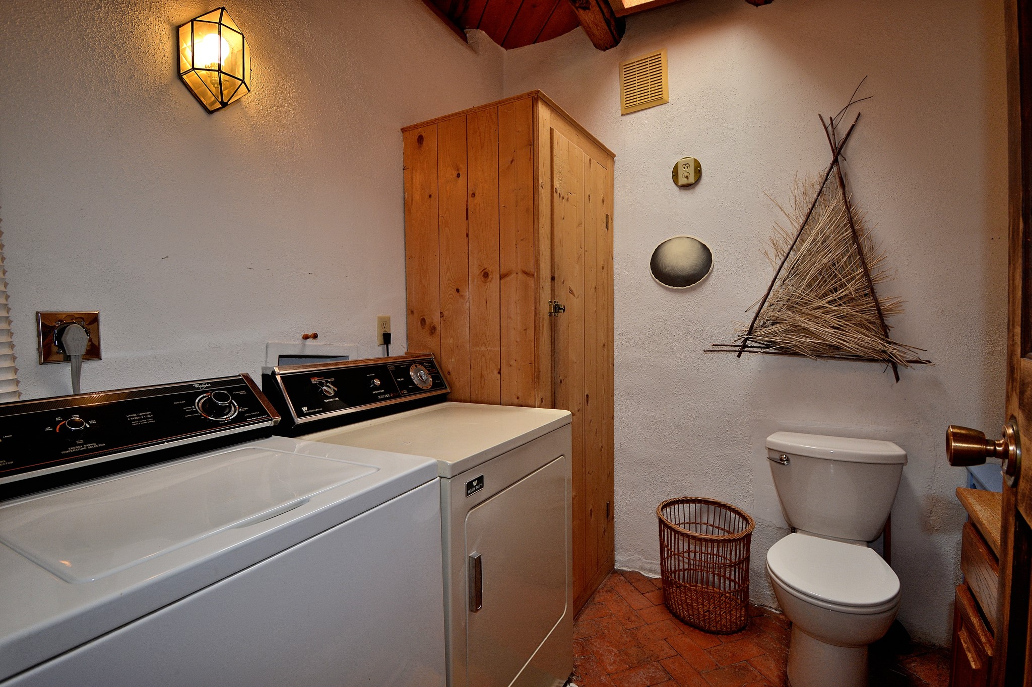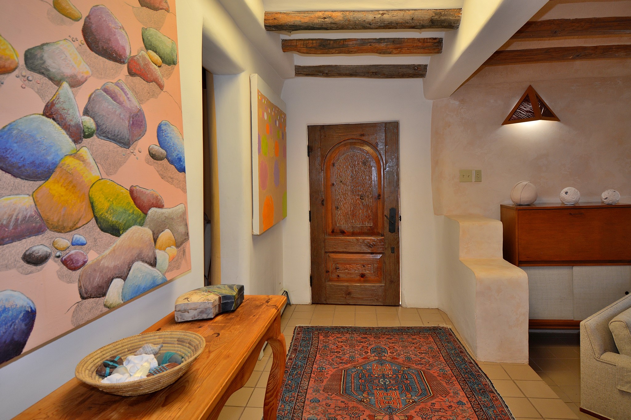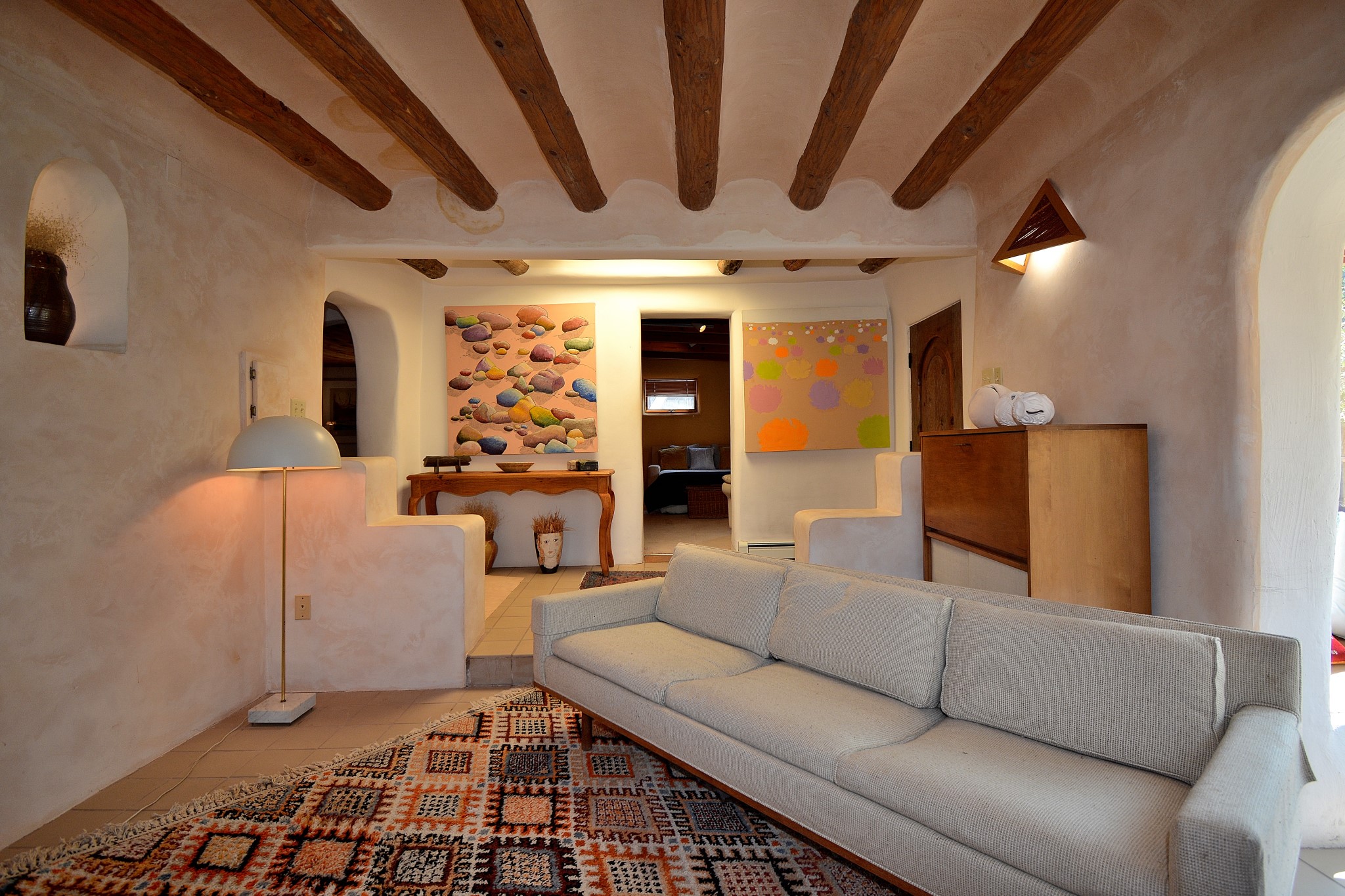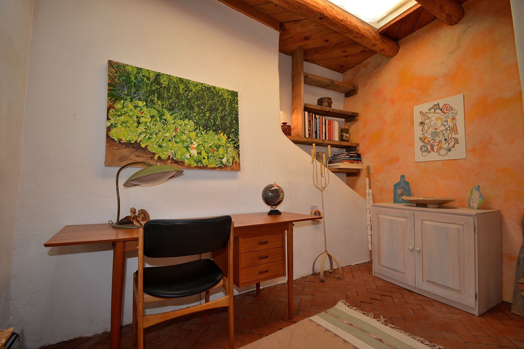 If your looking for an Ideal Santa Fe Home with historic Charm Stop and See! LOCATION LOCATION LOCATIONRecent price reduction and a new TPO roof overlay/ Brand New Skylights installed in November 2025..what's not to love! This home is located in the coveted Historic Eastside. This home is Quintessential Santa Fe Charm! Partial Adobe construction, Wood Frame, wood ceilings, vigas, 2 wood burning Kiva Fireplaces, Brick floors with radiant heat. CASITA round back with Separate entrance. Home is a 10 minute walk to Canyon Road featuring Art galleries and many of SF best Dining establishments. The home offers mature gardens front/back and a secret terrace. The main house features a kitchen with amazing sunlit tall ceilings and windows. You will appreciate the original wood cabinetry and wood countertops. Breakfast area or office space off of the kitchen. laundry area is conveniently adjoined with the 1/2 bath. Behind the main house you'll find a private courtyard and an attached Casita complete with a loft space that currently serves as a sleeping area. There is a kitchenette, and a full bathroom(Shower needs to be remodeled but is functional). Occupy the casita as an extension of your home or use as an office or artist studio. The home has undergone a pre-inspection and is priced accordingly.