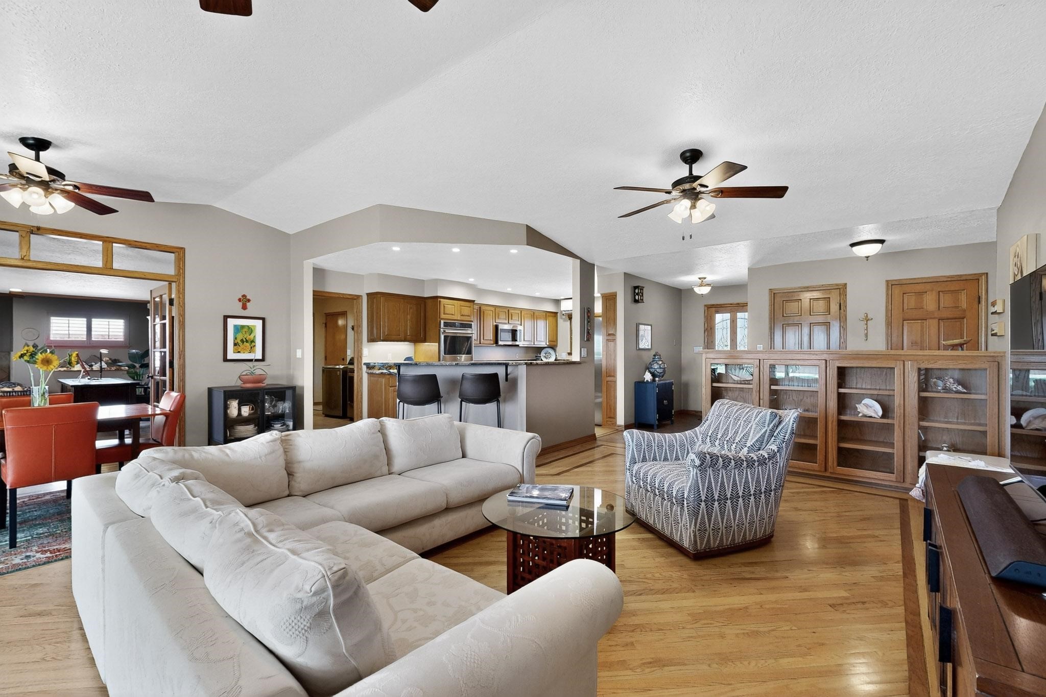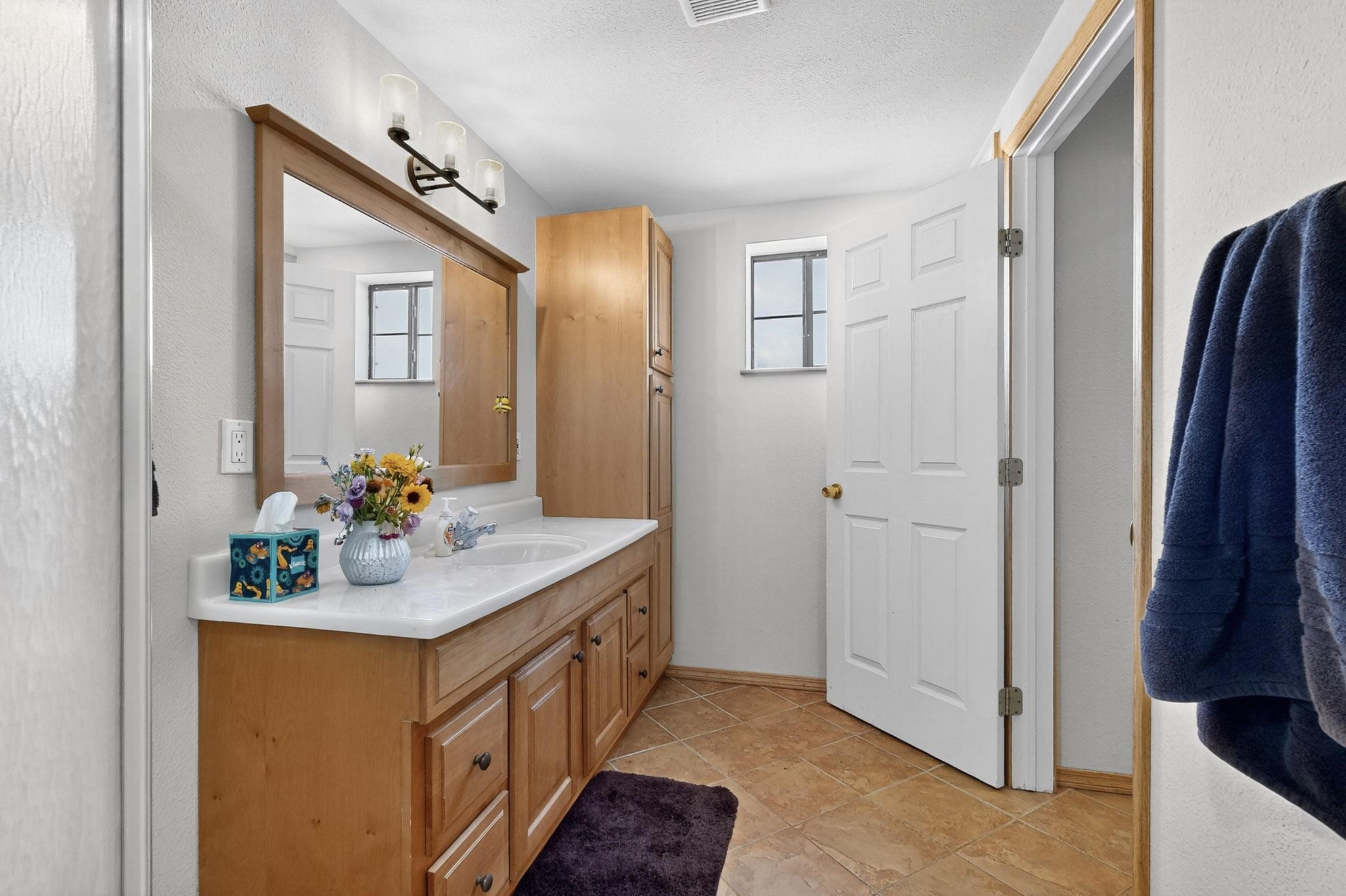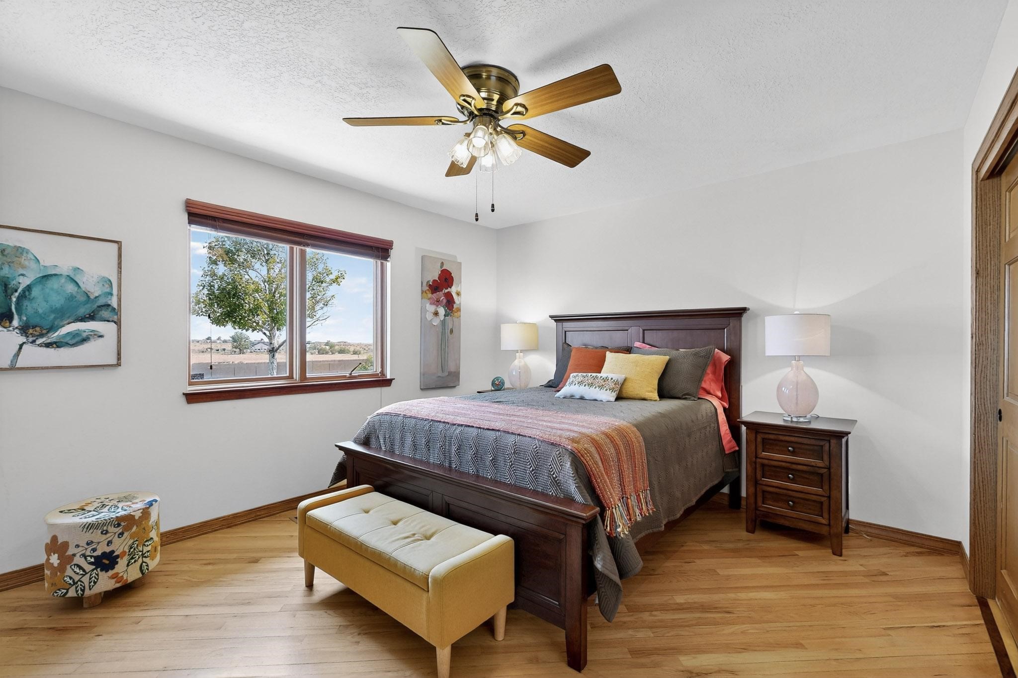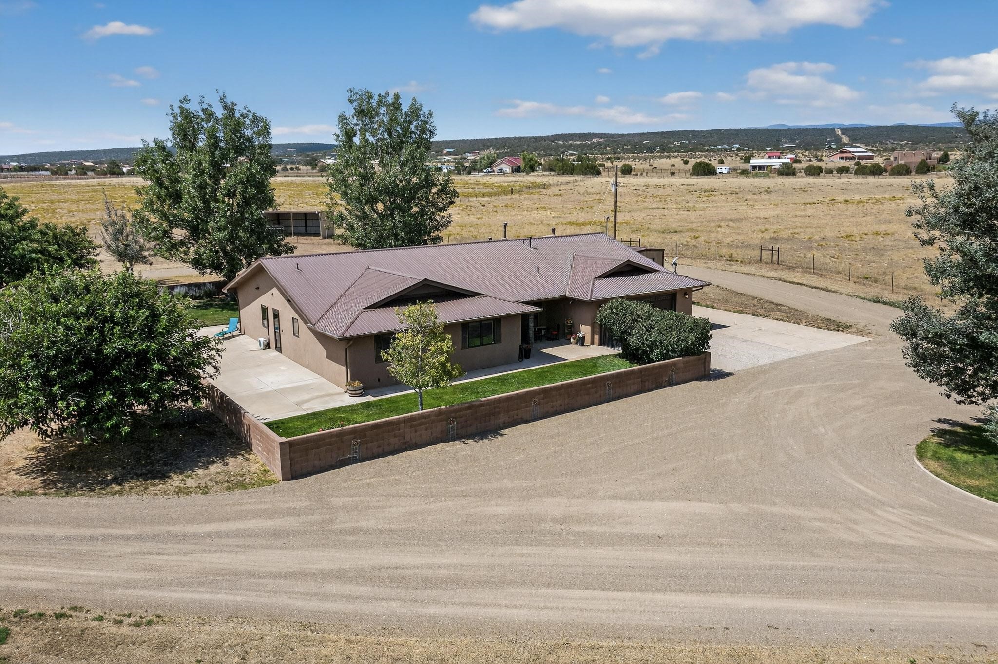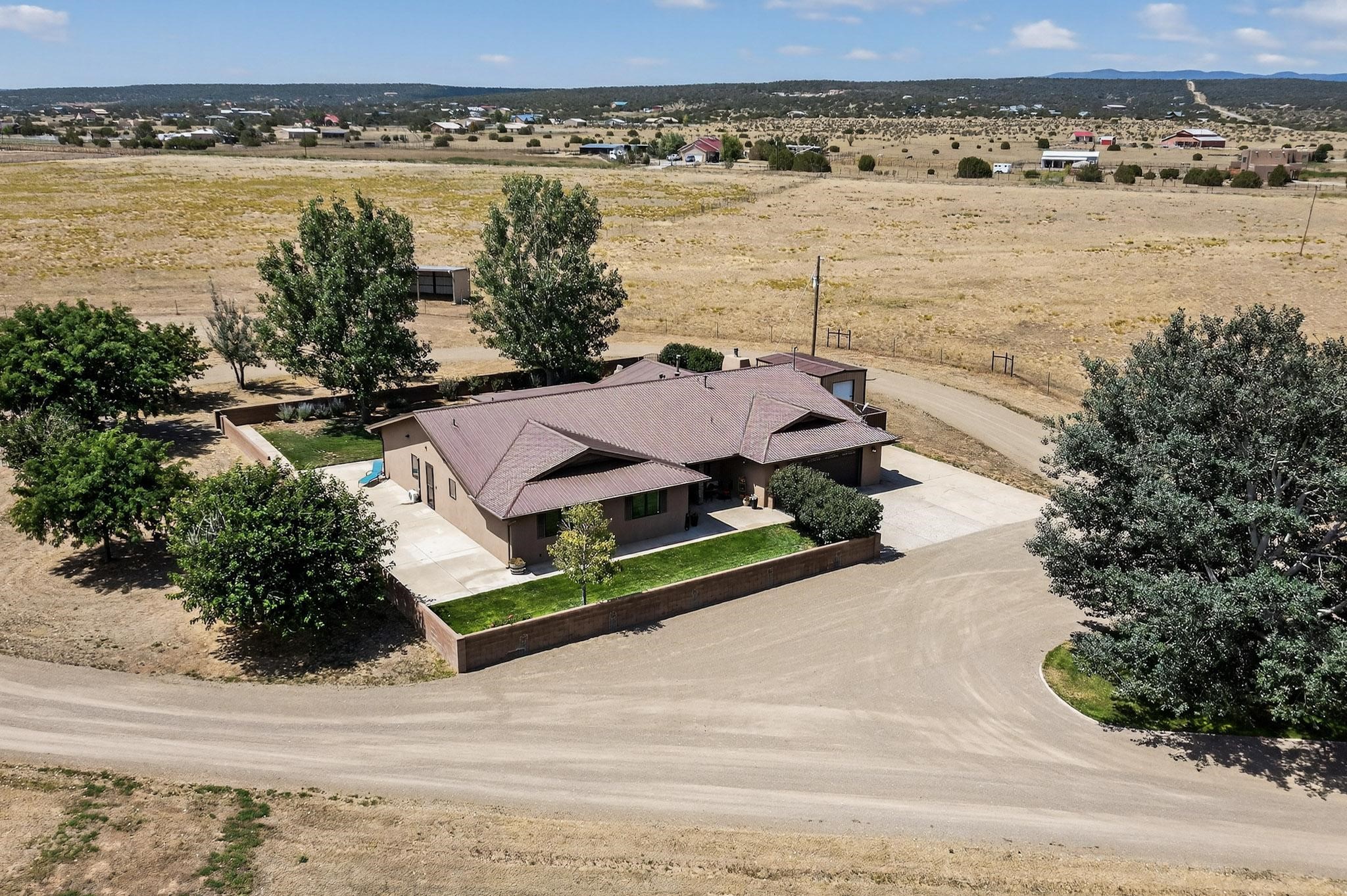 This true equine estate has finally come on the market so don't miss your opportunity to own this amazing property. 38.8 acres fully fenced and cross fenced! 3051 heated sqft of main home and guest suite. This estate home boasts hardwood floors throughout, with custom touches, large spacious open floor plan with great room and kitchen for entertaining, primary bedroom suite with wall to wall closets, double vanities, and exterior access. 3bed 2bath main home, 2 living areas, gourmet stainless steel kitchen, laundry room with storage. There are so many built in storage and closets the possibilities are endless on how you use it. Oversized finished 2 car garage with built in storage. 4 stall barn with finished tack room, and 1 bedroom, 1 bath, kitchenette, walk in closet: guest suite.Not only are you going to love this estate, but your animals will love it too! Full sized arena for your use and three cross fenced pastures all with barn loafing sheds. Water has been run throughout the property to the barns for the convenience of keeping the critters taken care of. The approx. 2300 sqft barn has pull through capability, a finished tack room, 4 walk out stalls, hay storage, rubber floor mats, and a 363 sqft guest living quarters! A large equine estate like this doesn't come up for sale in the East Mountains/Southern Santa Fe County area too often, and none are as nice and custom as this property. If you are needing a place to kick up your boots, let your critters stretch their legs, and for yourself to relax from dawn to dusk, you have found your 38.8 acre slice of paradise with this equine estate.