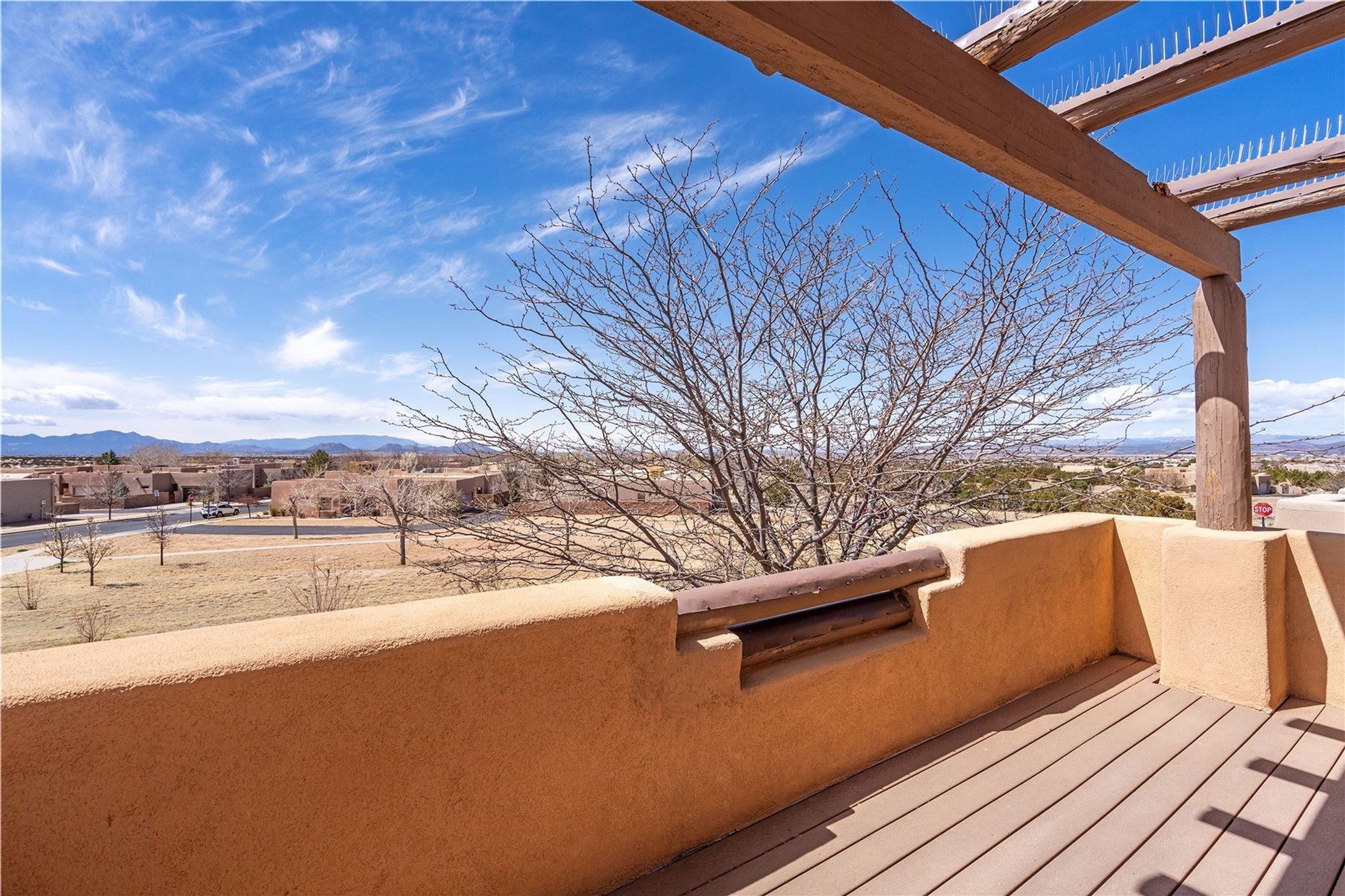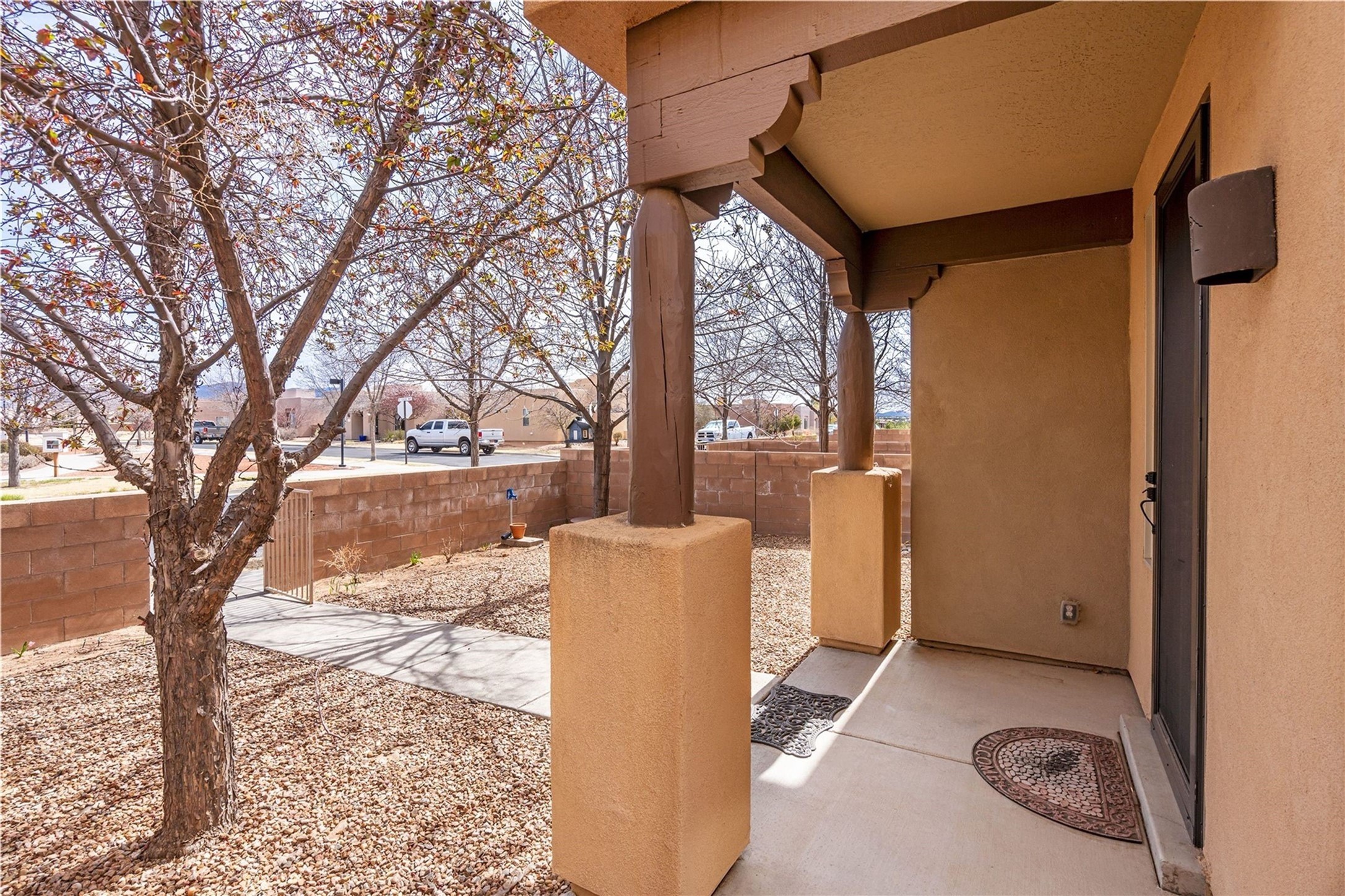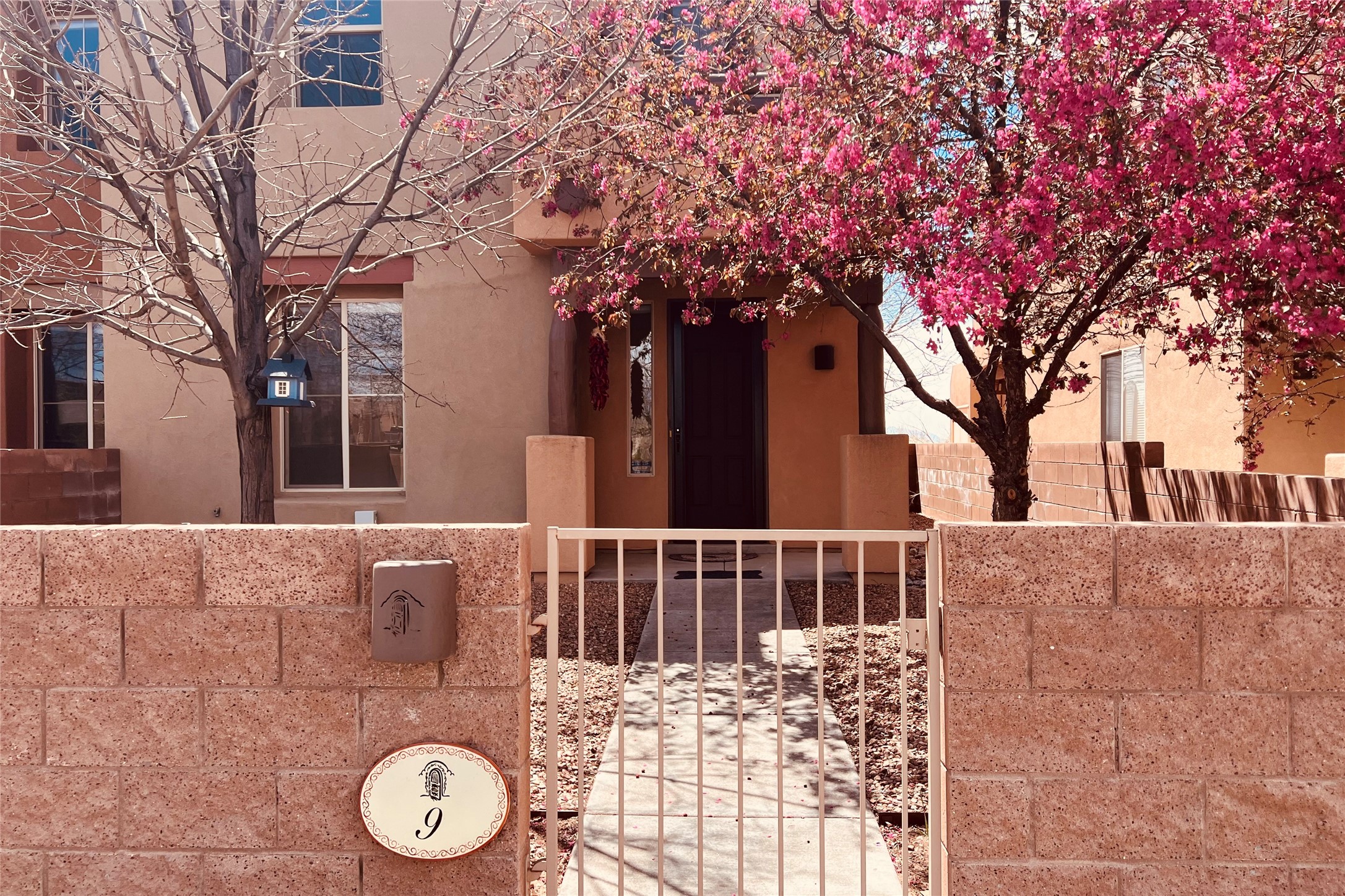 Lovely corner townhome in highly sought-after neighborhood of Rancho Viejo! The property features a light and bright open floor plan, spacious great room, high ceilings and granite kitchen countertops. Upstairs are two balconies with views of mountains, sunrise and sunset. Dining area opens to the great room and the front of the home has a gated courtyard that faces to the open space to one of the neighborhoods welcoming parks. This beautiful home features 2 bedrooms, 2 bathrooms, a downstairs half bath for convenience and an attached 2 car garage. The main bedroom has private deck with mountain views, walk in closet and updated bathroom with a rainfall shower head. In addition to the 2 bedrooms there is an open loft/office area that leads to the second deck with mountain sunrise views. Additional upgrades include newer washer/dryer, reverse osmosis system in the kitchen, water heater replaced in 2022, drip irrigation in the front courtyard. Quiet and serene location with access to the miles of paved trails the community has to offer. All while being a short distance to shopping centers, restaurants and 599/I-25. Come see this move in ready Rancho Viejo gem today!