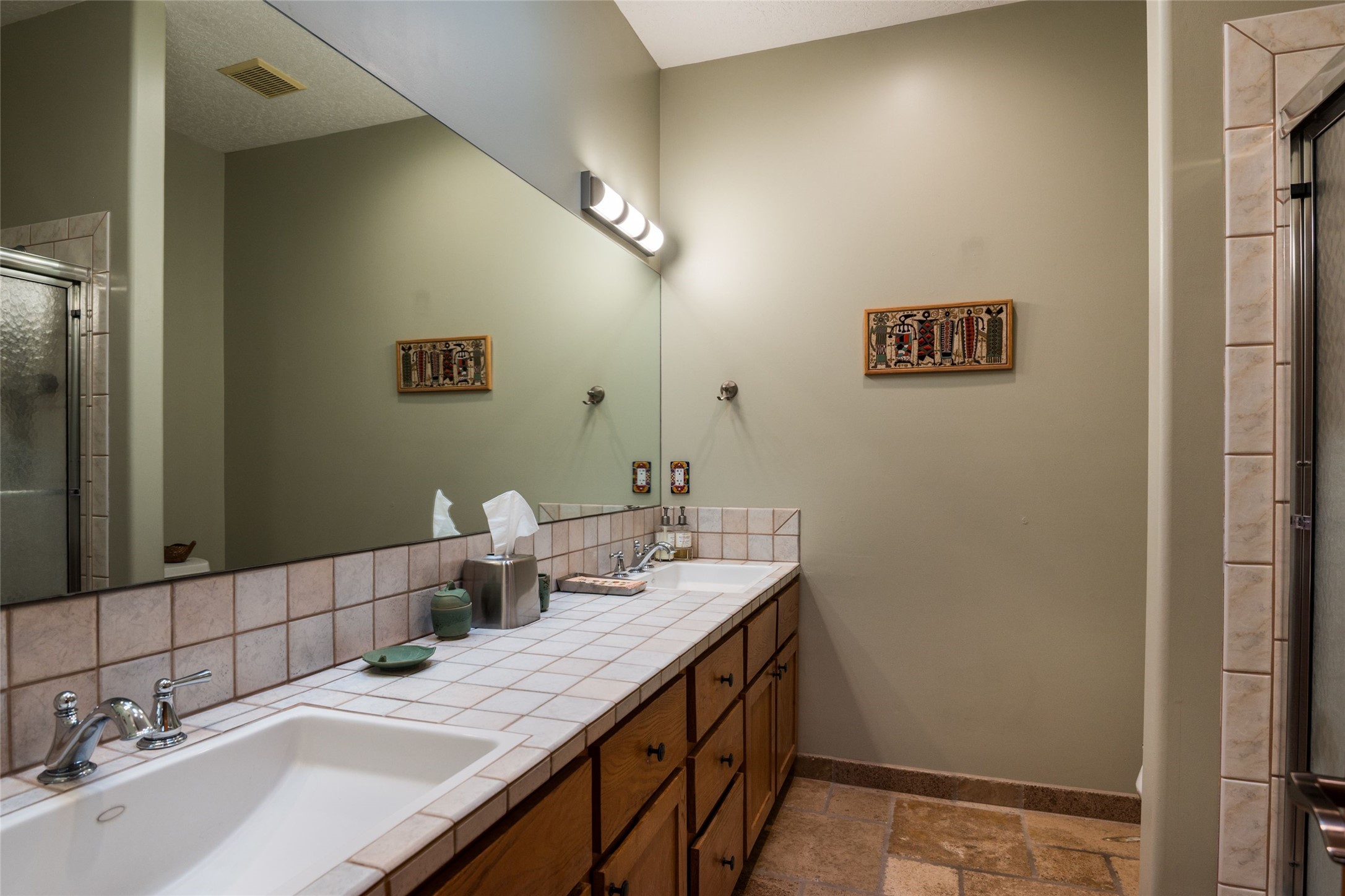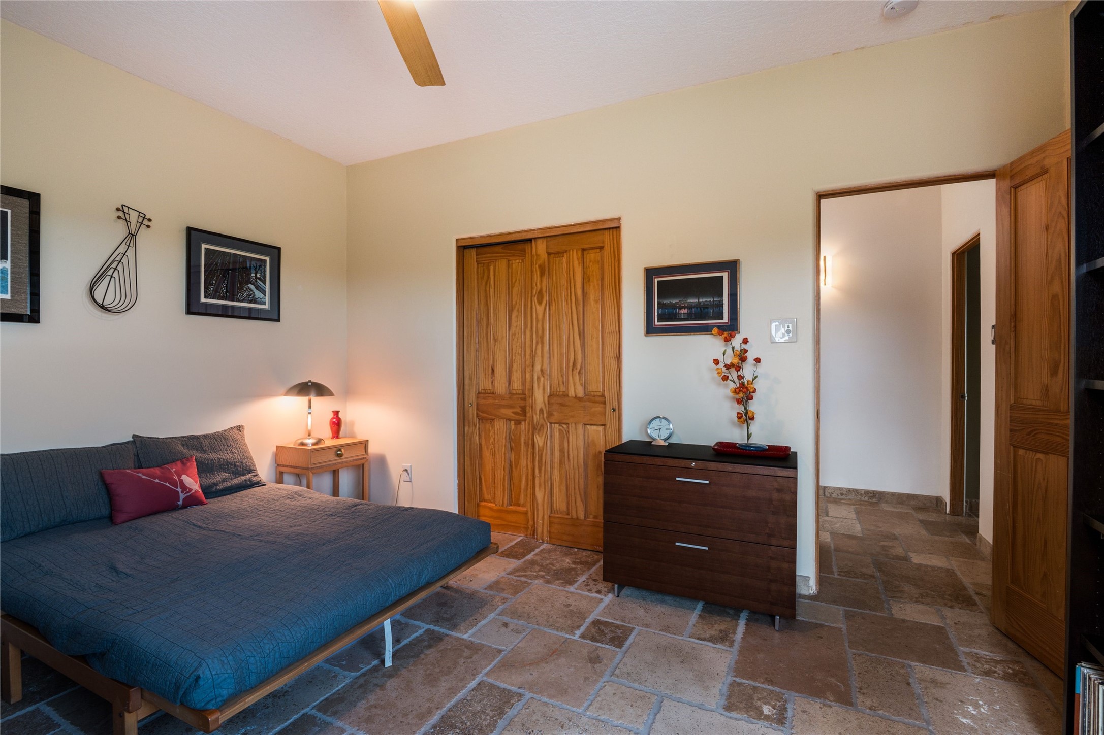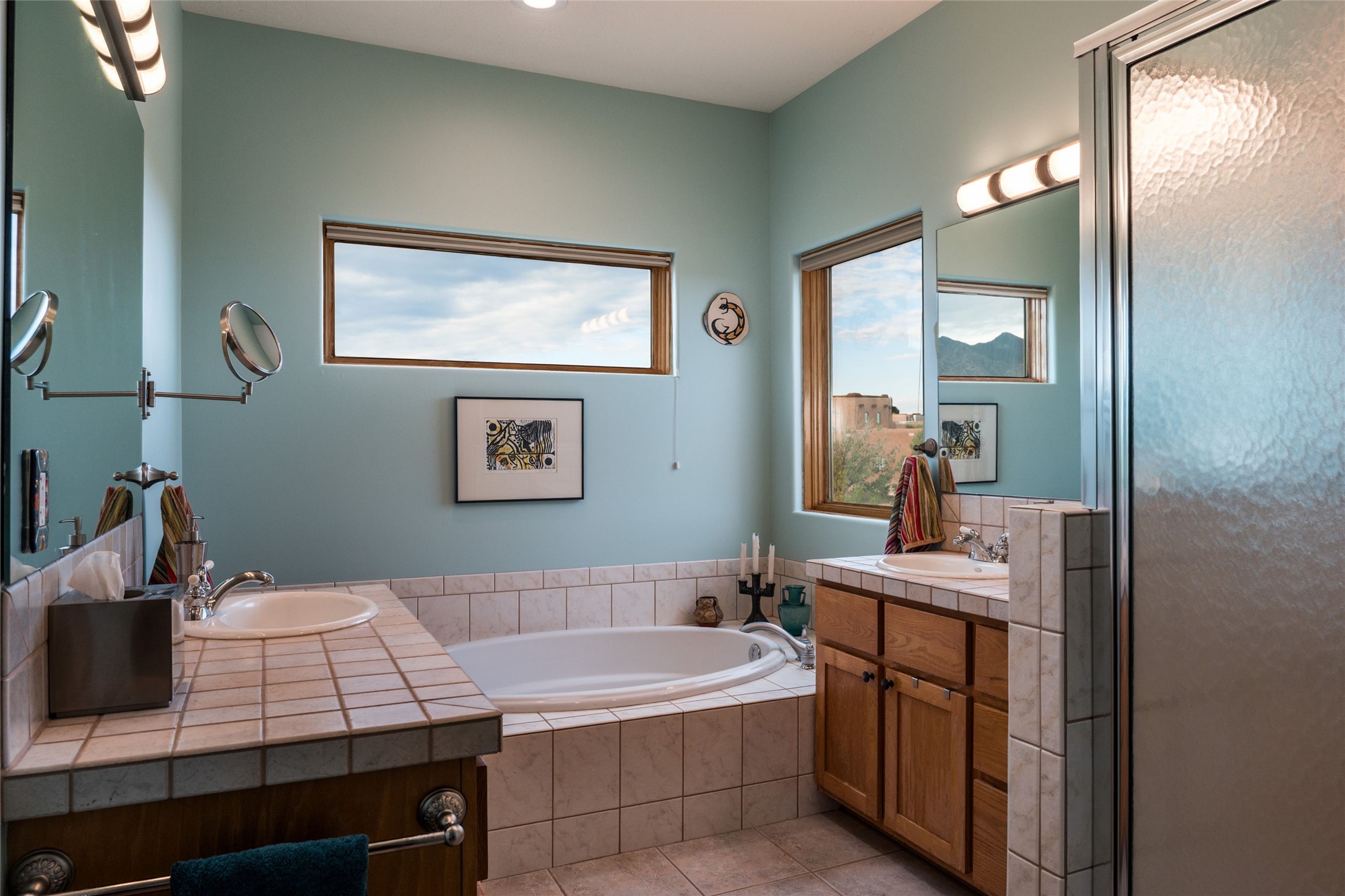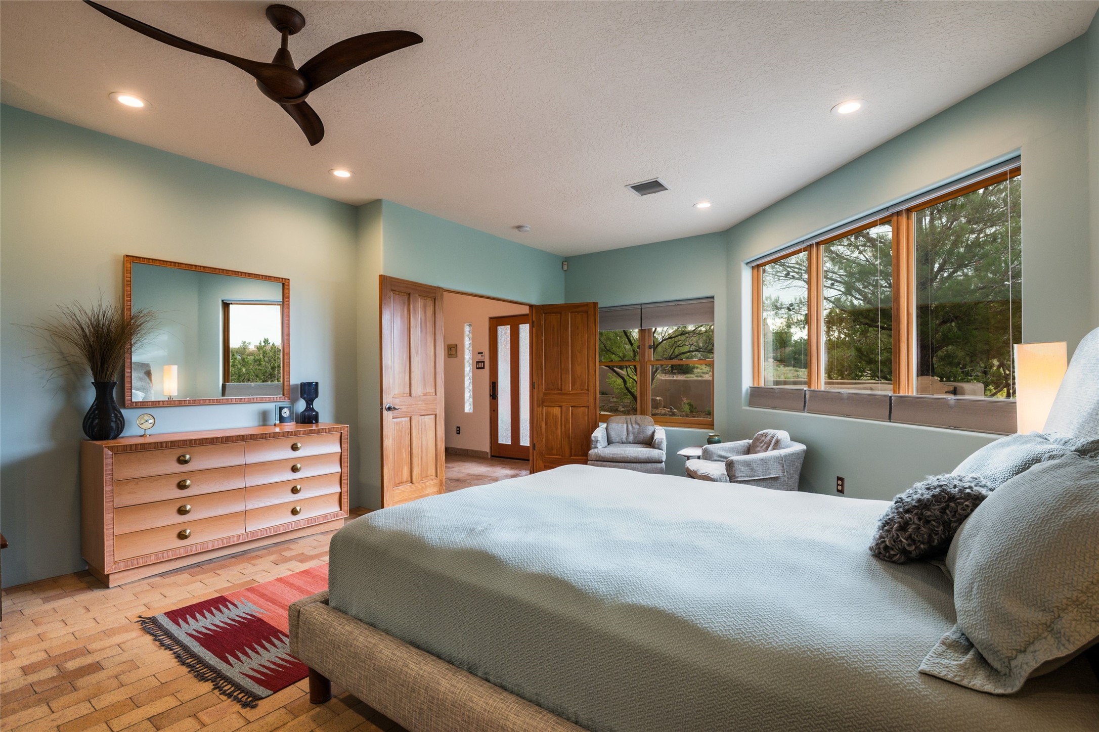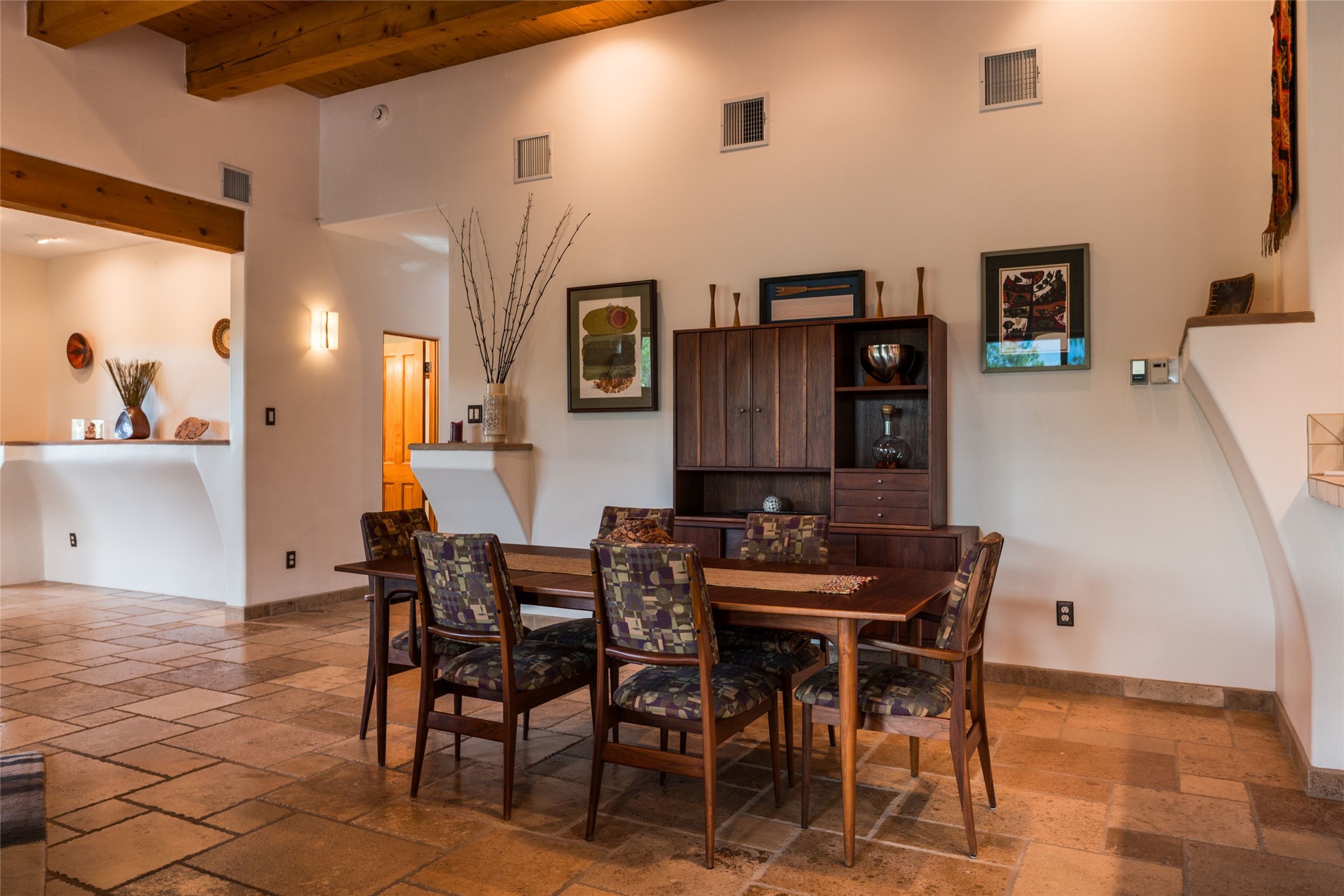 Discover the perfect Placitas home that offers peace, stunning views, charm, and an ideal location. This meticulously maintained single-level residence features 3 bedrooms and 2 bathrooms, with an updated kitchen including a Wolf cooktop. The spacious 3-car garage is ideal for parking or a workshop, and a separate 351 sq ft heated and cooled building provides versatile space as an office, studio, or craft room. Located at the end of a quiet road, it's just a 35-minute drive to Santa Fe, close to the RailRunner, grocery stores, golf, and amenities. The home boasts beautiful stone floors throughout, with brick flooring and a large walk-in closet in the primary suite. The landscaped front courtyard and covered patio offers breathtaking mountain views, perfect for relaxing and entertaining.