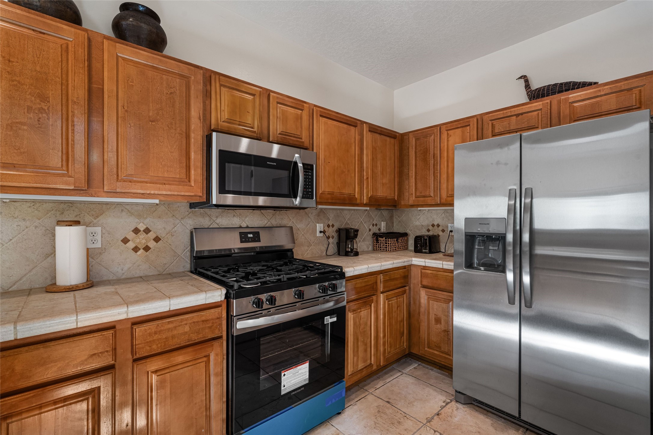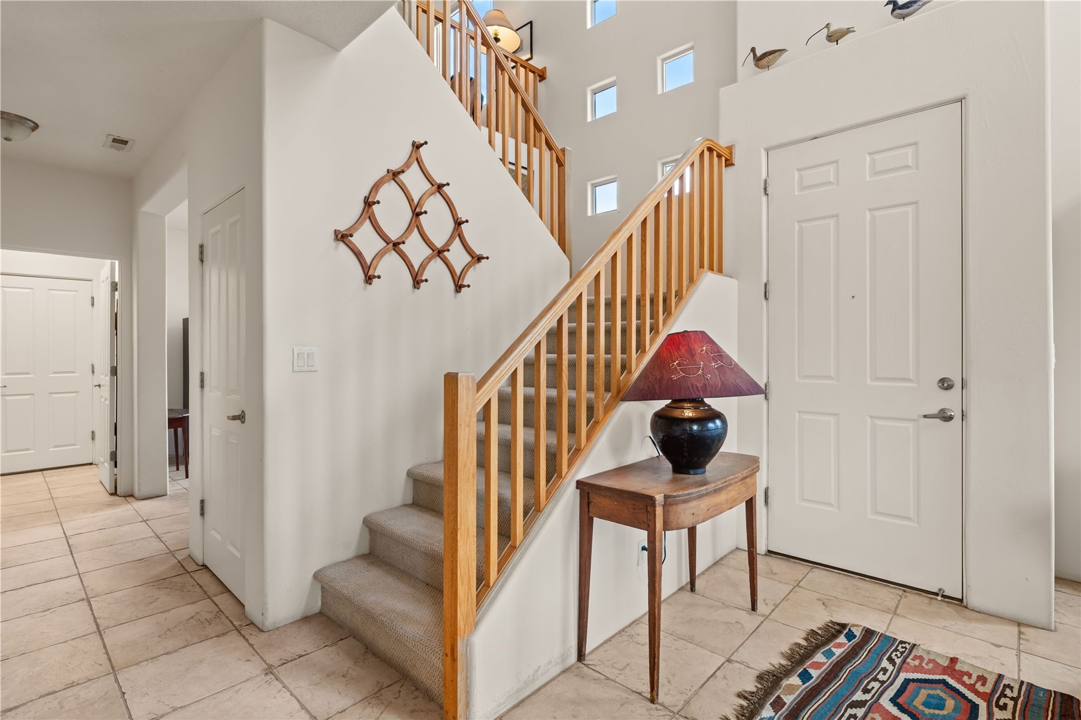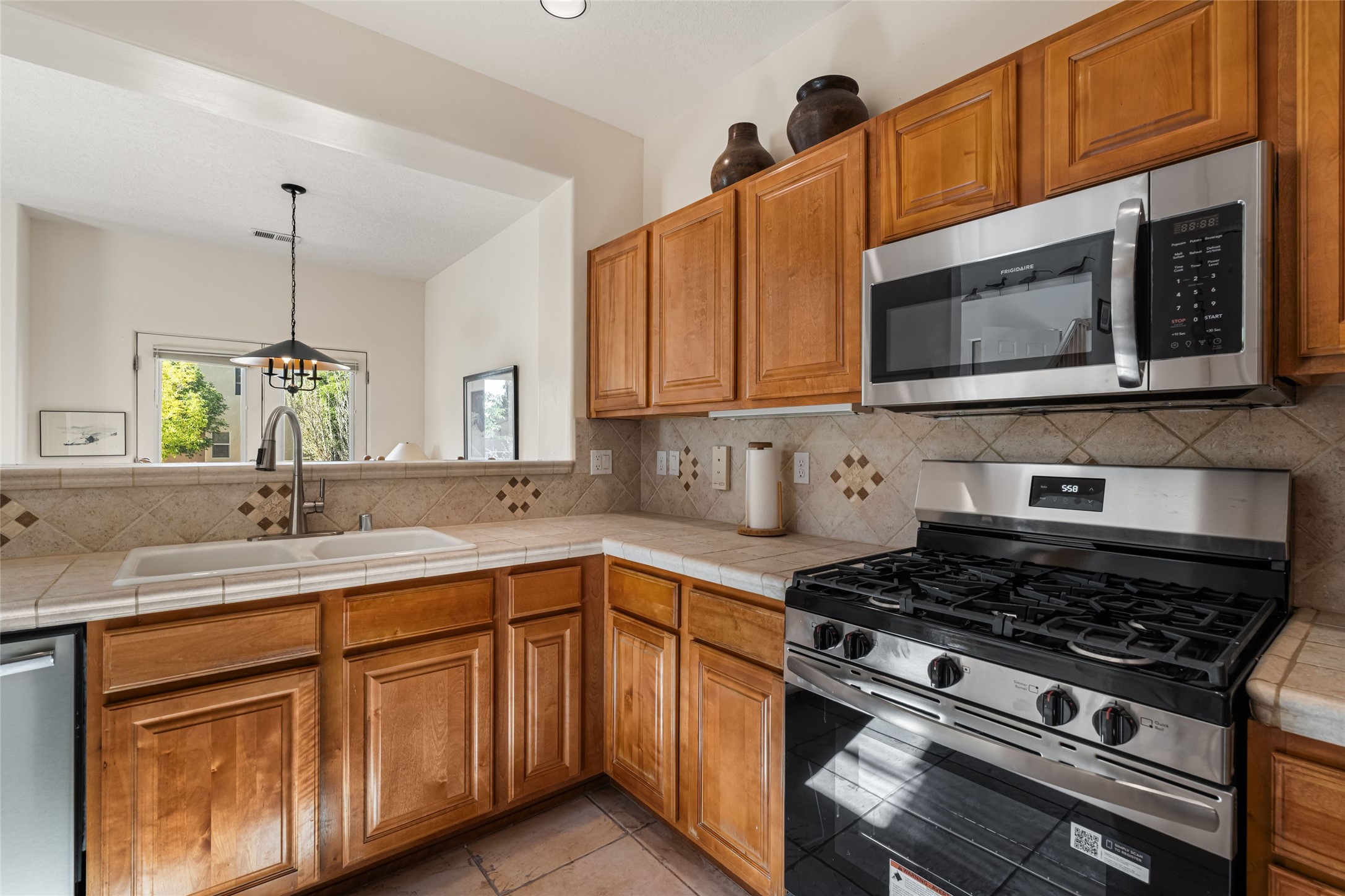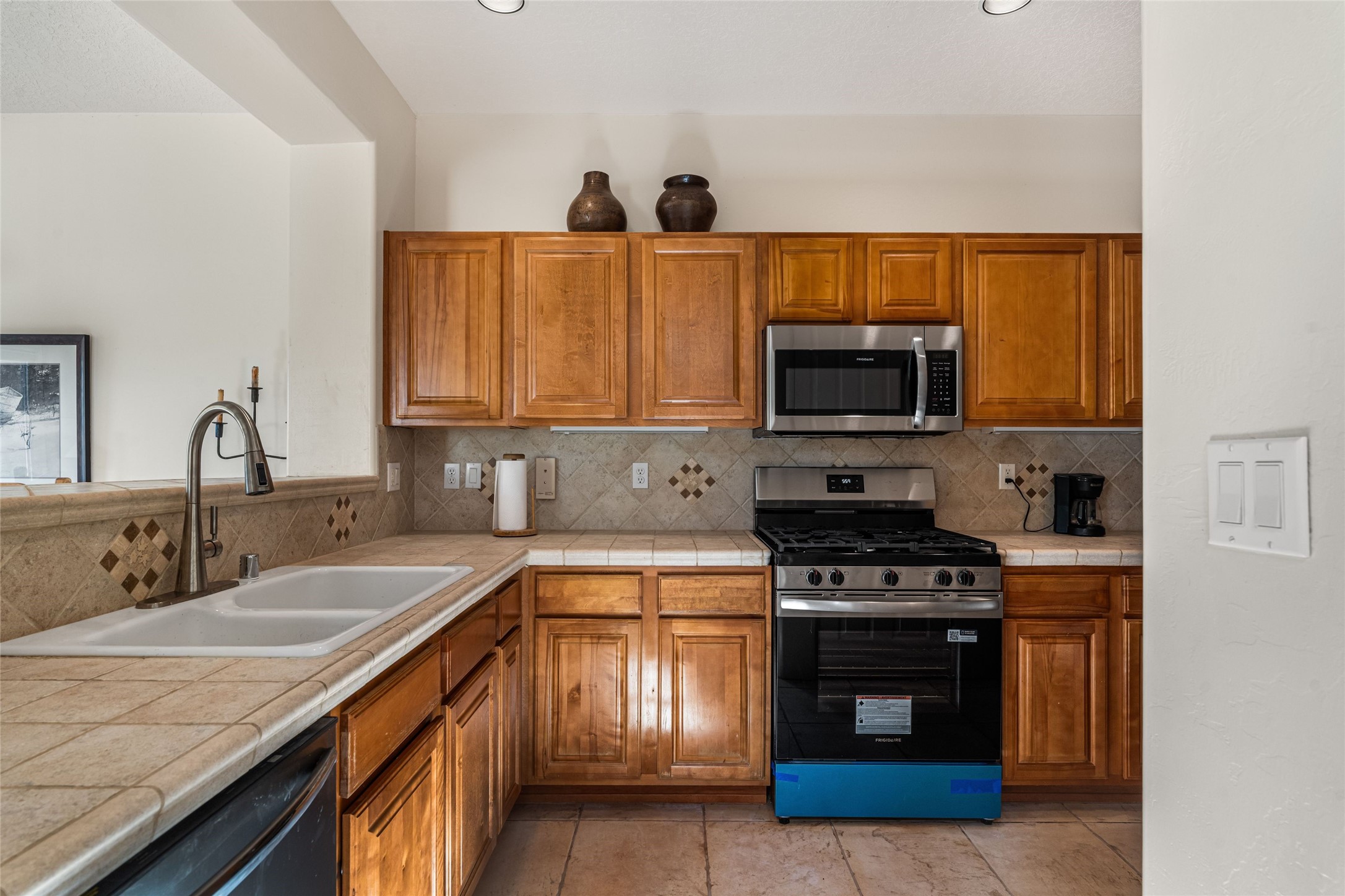 This updated end-unit townhome in Rancho Viejo offers low-maintenance living, modern upgrades, and convenient access to parks, trails, and Santa Fe amenities. With 2 bedrooms, 3 bathrooms, and 1,642 square feet of living space, the home features an open, light-filled layout ideal for comfortable living and entertaining. The living room with gas fireplace flows into a dining area and kitchen with new stainless steel appliances installed in July 2025. Upstairs, the spacious primary suite includes a balcony with northeast orientation capturing both sunrise and sunset light, along with a walk-in closet and ensuite bath. A second bedroom and full bath complete the upper level. Major systems and components have been updated, including a new HVAC system and hot water heater (2023), new balcony decking and roof (2024), and all exterior maintenance covered by the HOA. High-speed internet is available, and the attached two-car garage provides direct interior access. Enjoy outdoor space with a private deck and courtyard, plus proximity to trails, a park directly across the street, and Santa Fe Community College just 1.6 miles (about 5 minutes) away. Shopping and restaurants are 4.7 miles (about 12 minutes) away, and downtown Santa Fe is within easy reach. HOA dues also cover exterior maintenance, adding to the property's lock-and-leave appeal. Combining a prime location with significant recent improvements, this townhome offers a turnkey lifestyle in a peaceful community setting.